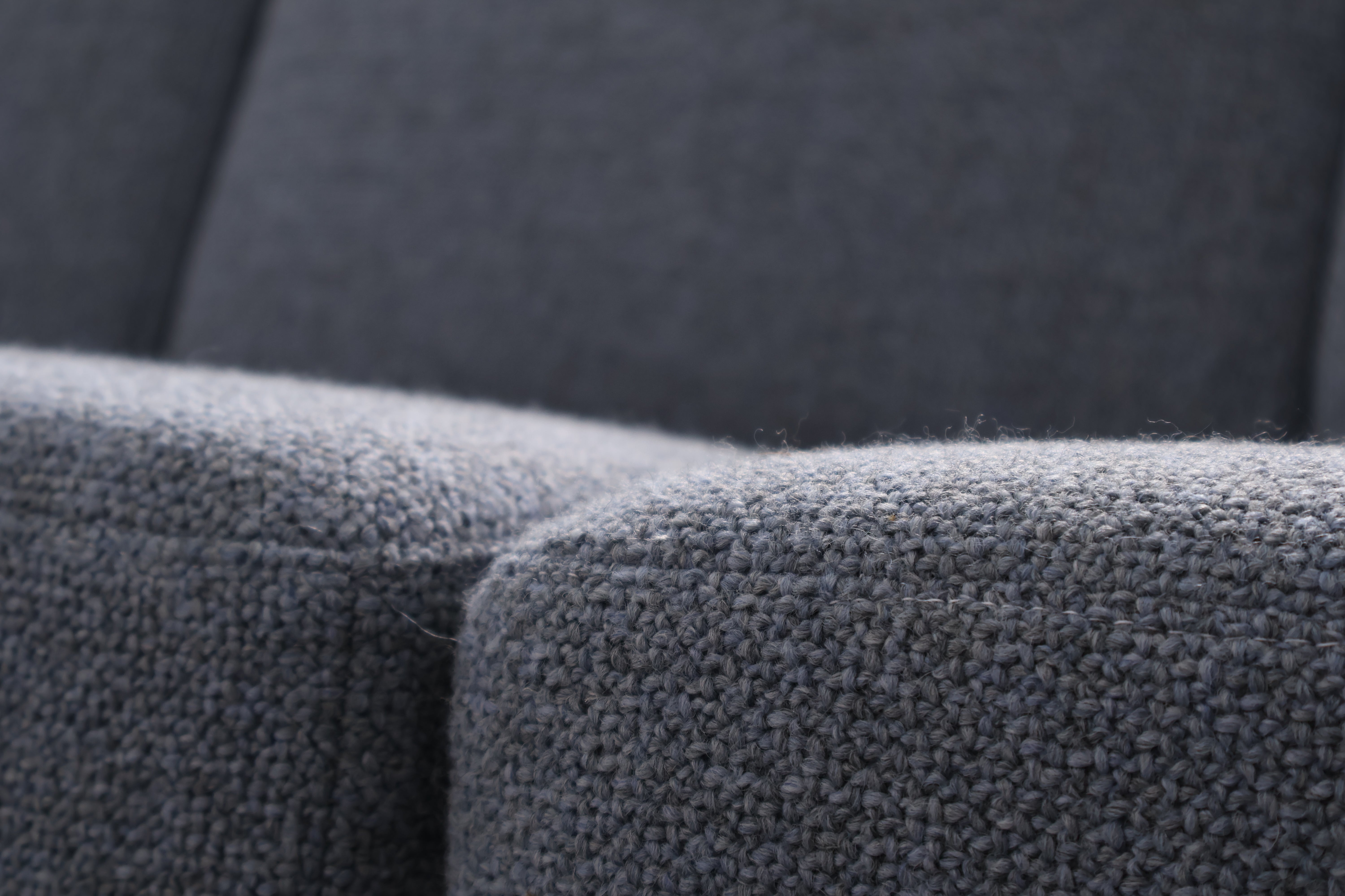 3er-Sofa „GE 290“ aus den 60er-Jahren von Hans Wegner. Hergestellt in Dänemark. Gefertigt aus Eiche. Höhe 74 cm, Breite 180 cm, Tiefe 82 cm.