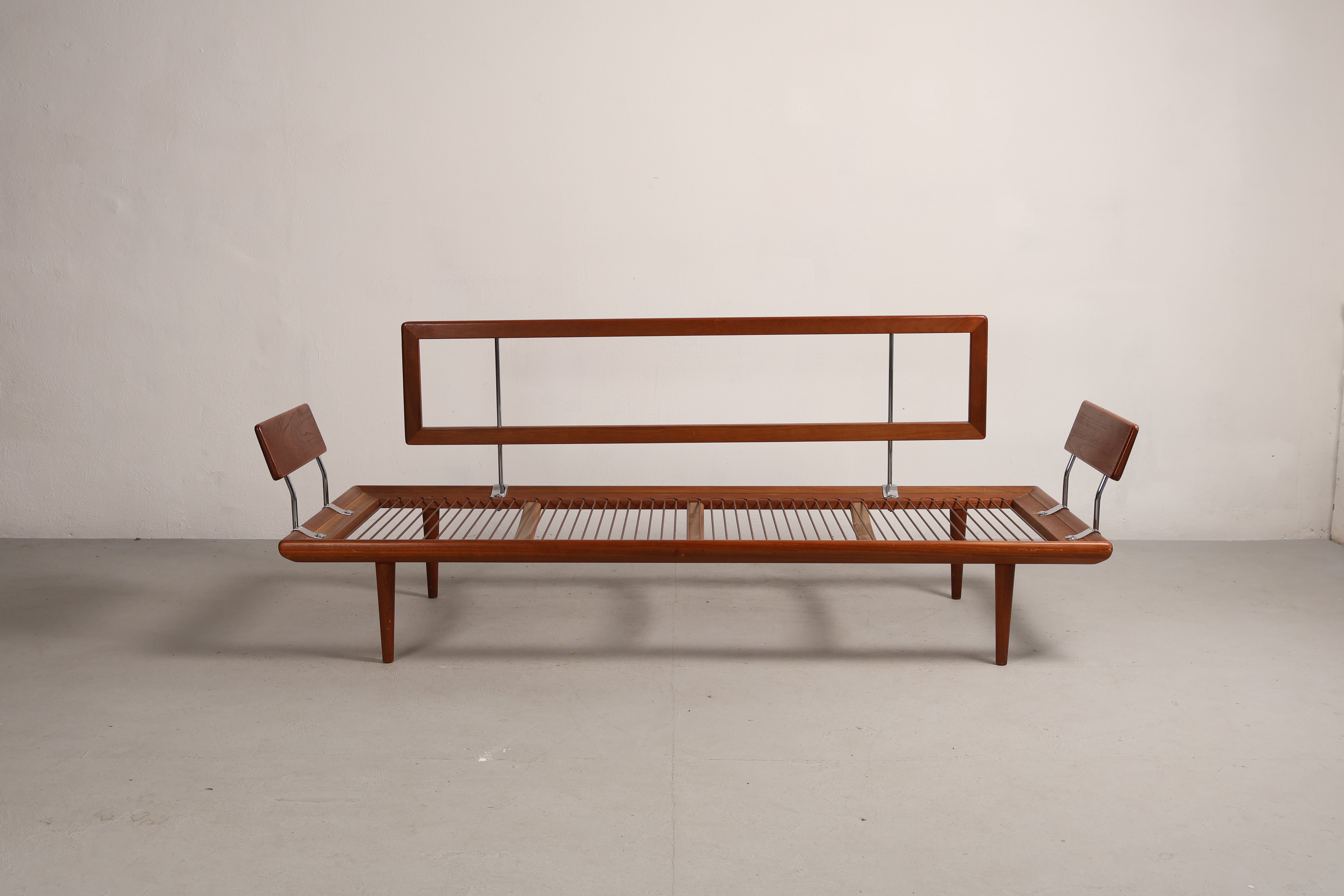 3er-Sofa „Minerva“ aus den 60er-Jahren von Peter Hvidt für France & Son. Hergestellt in Dänemark. Gefertigt aus Teak. Höhe 87 cm, Breite 205 cm, Tiefe 79 cm.