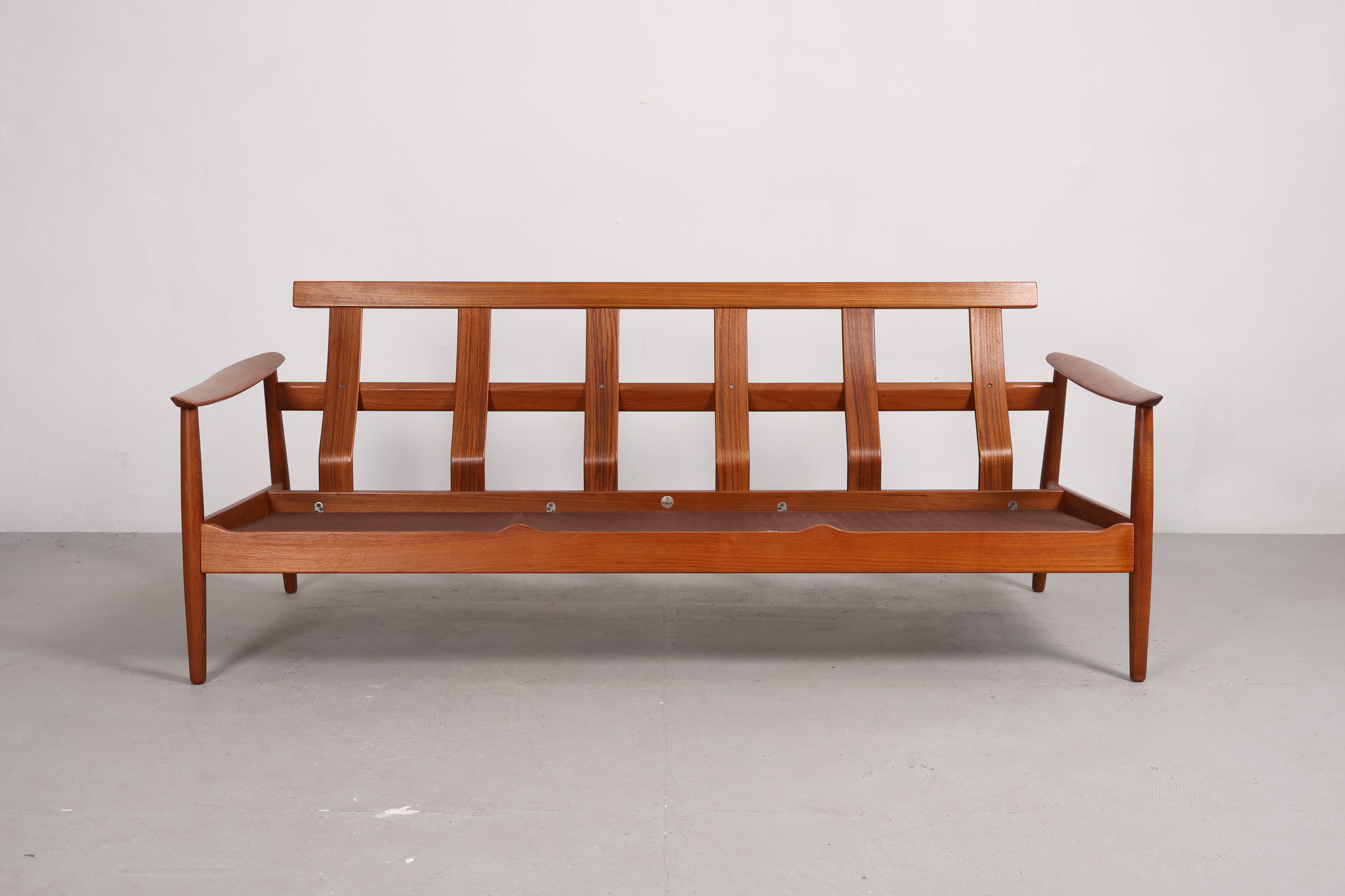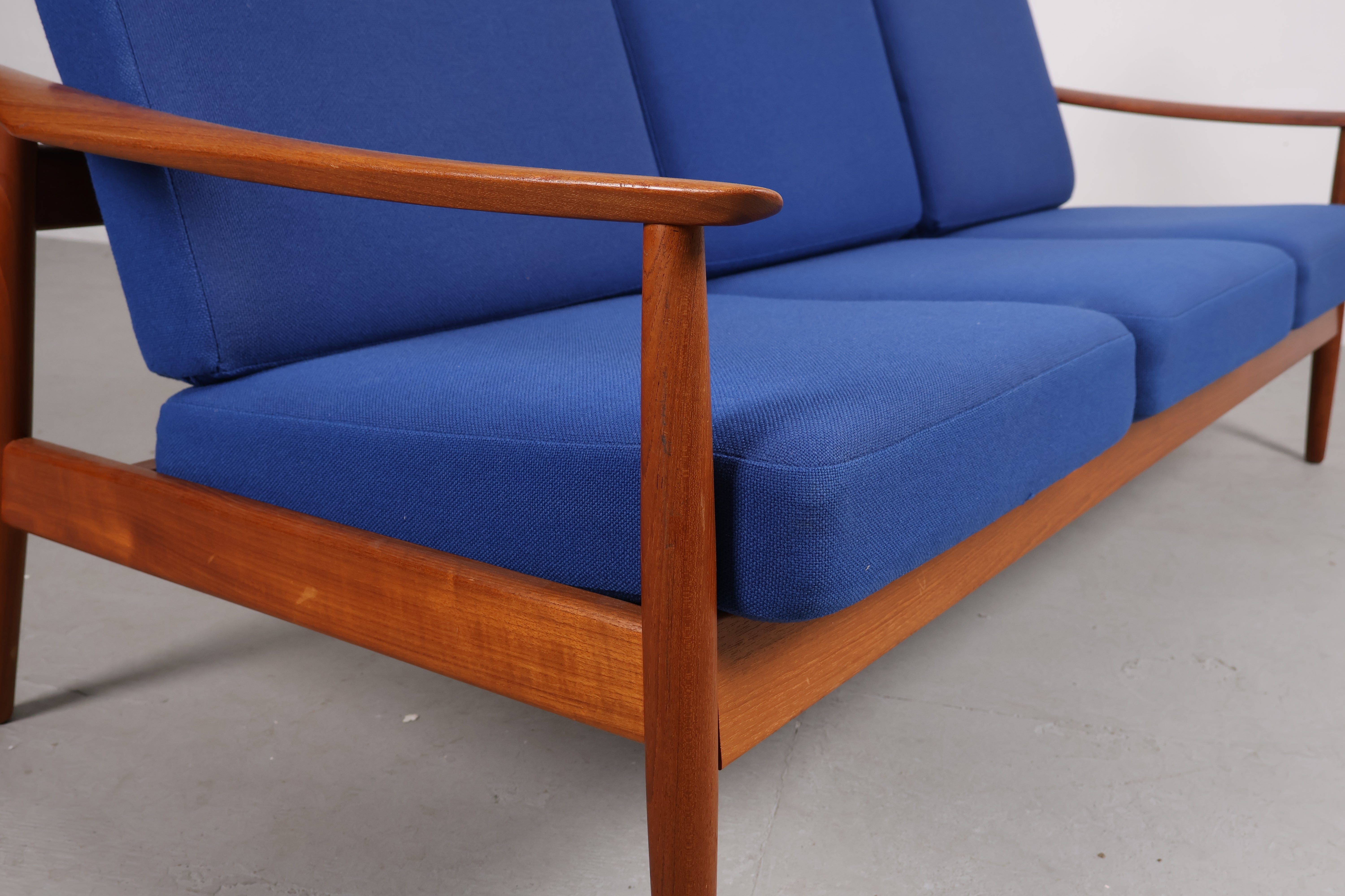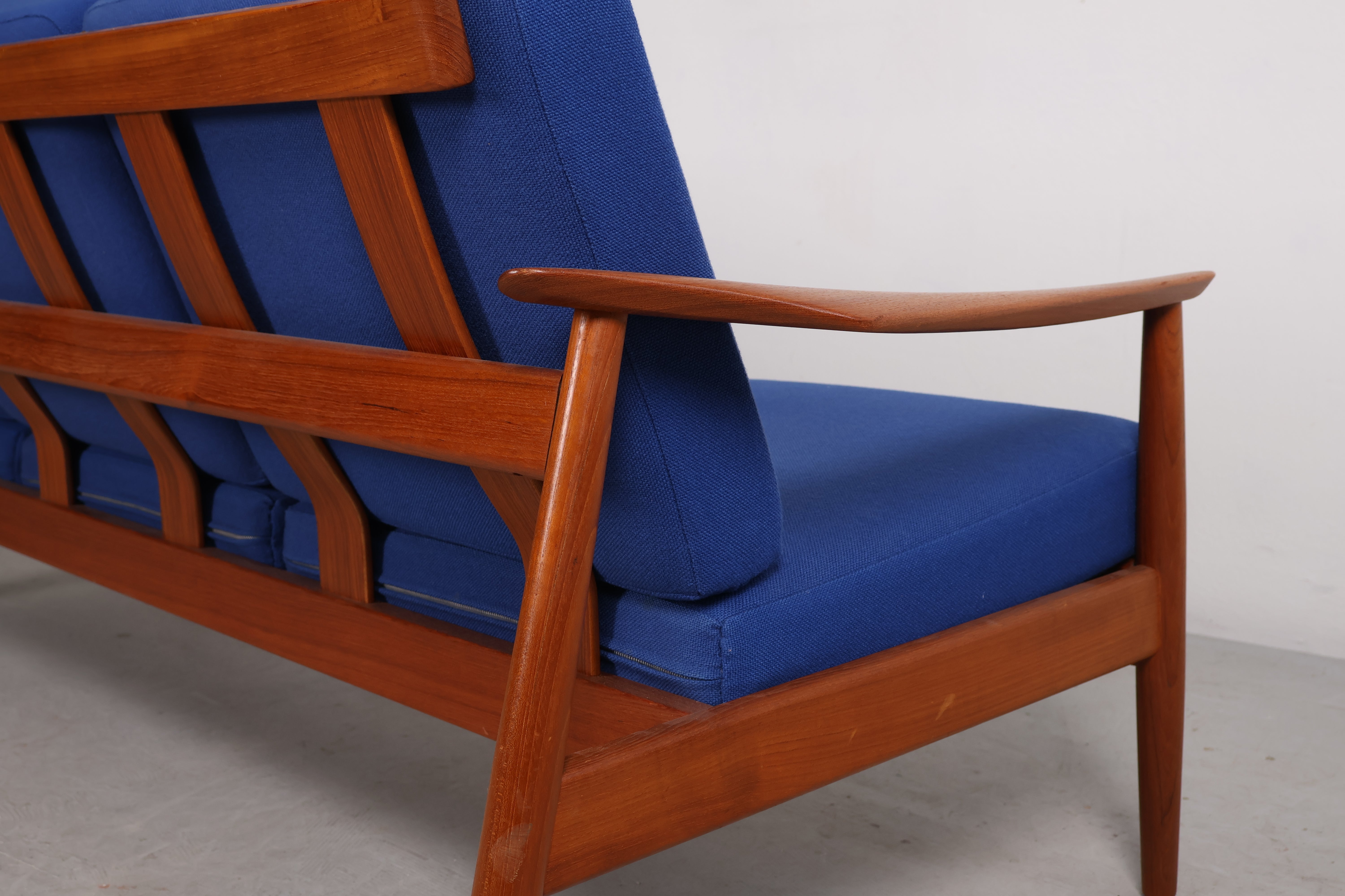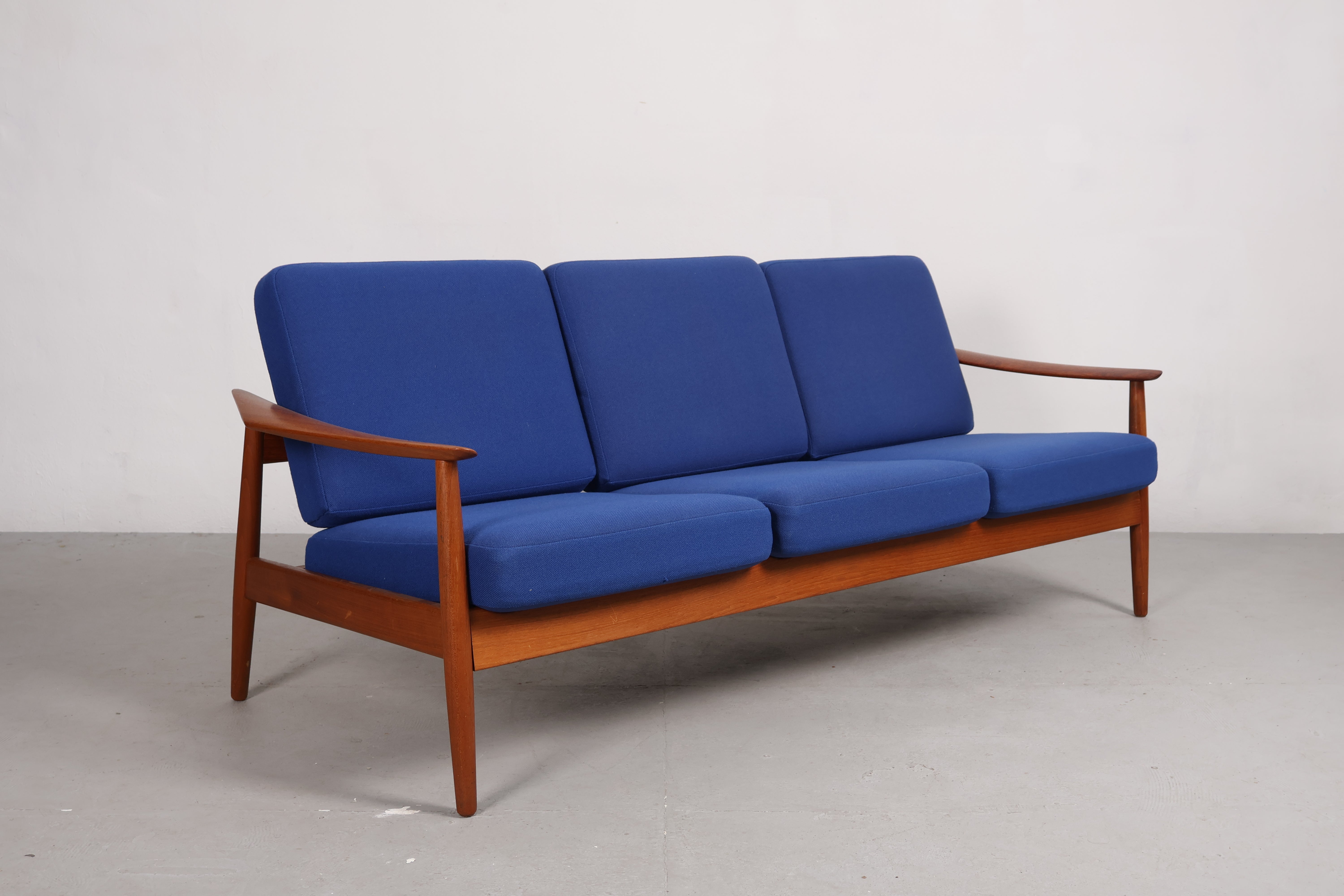 3er-Sofa aus den 60er-Jahren von Arne Vodder. Hergestellt in Dänemark. Gefertigt aus Teak. Höhe 77 cm, Breite 180 cm, Tiefe 82 cm.