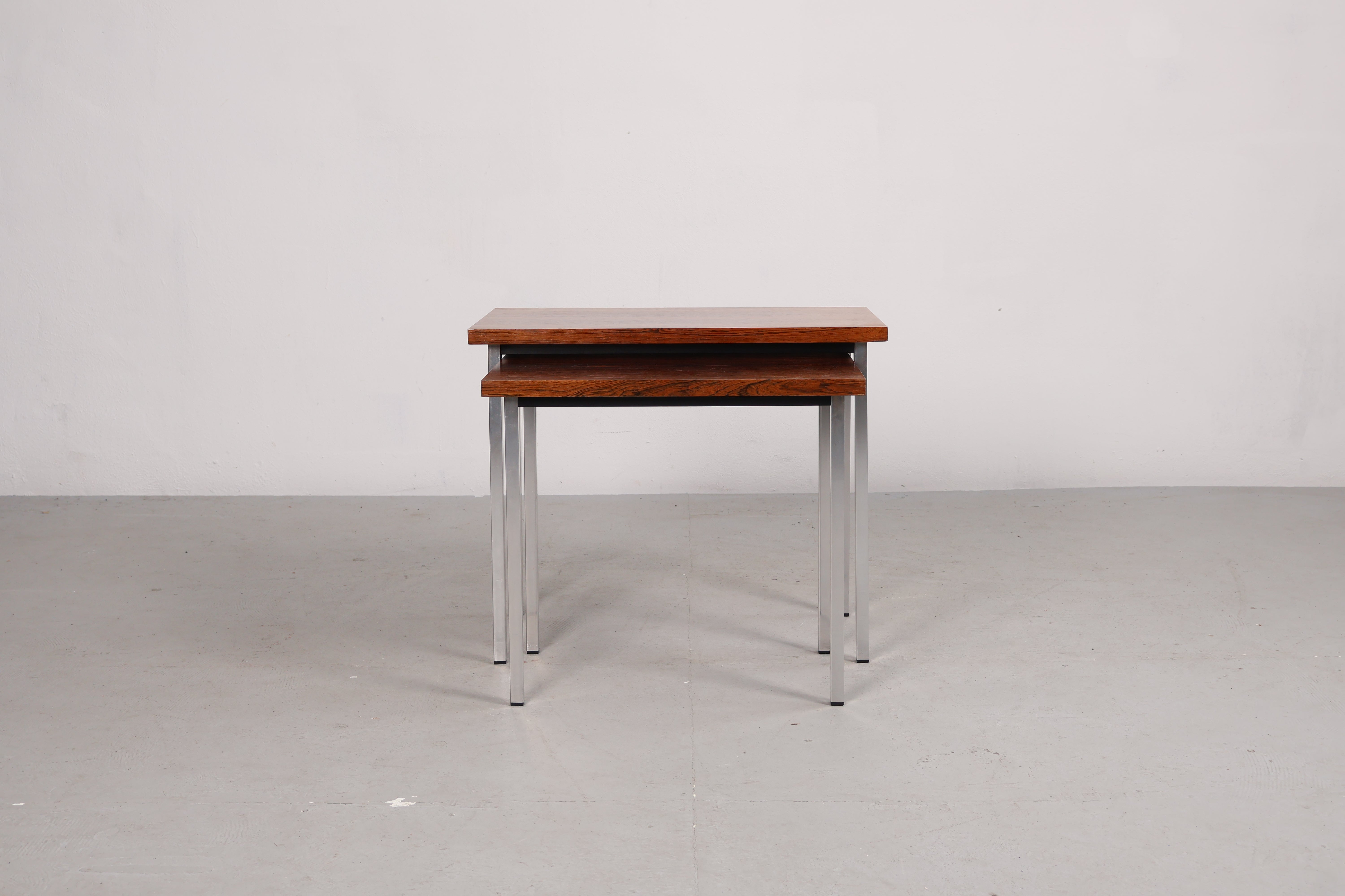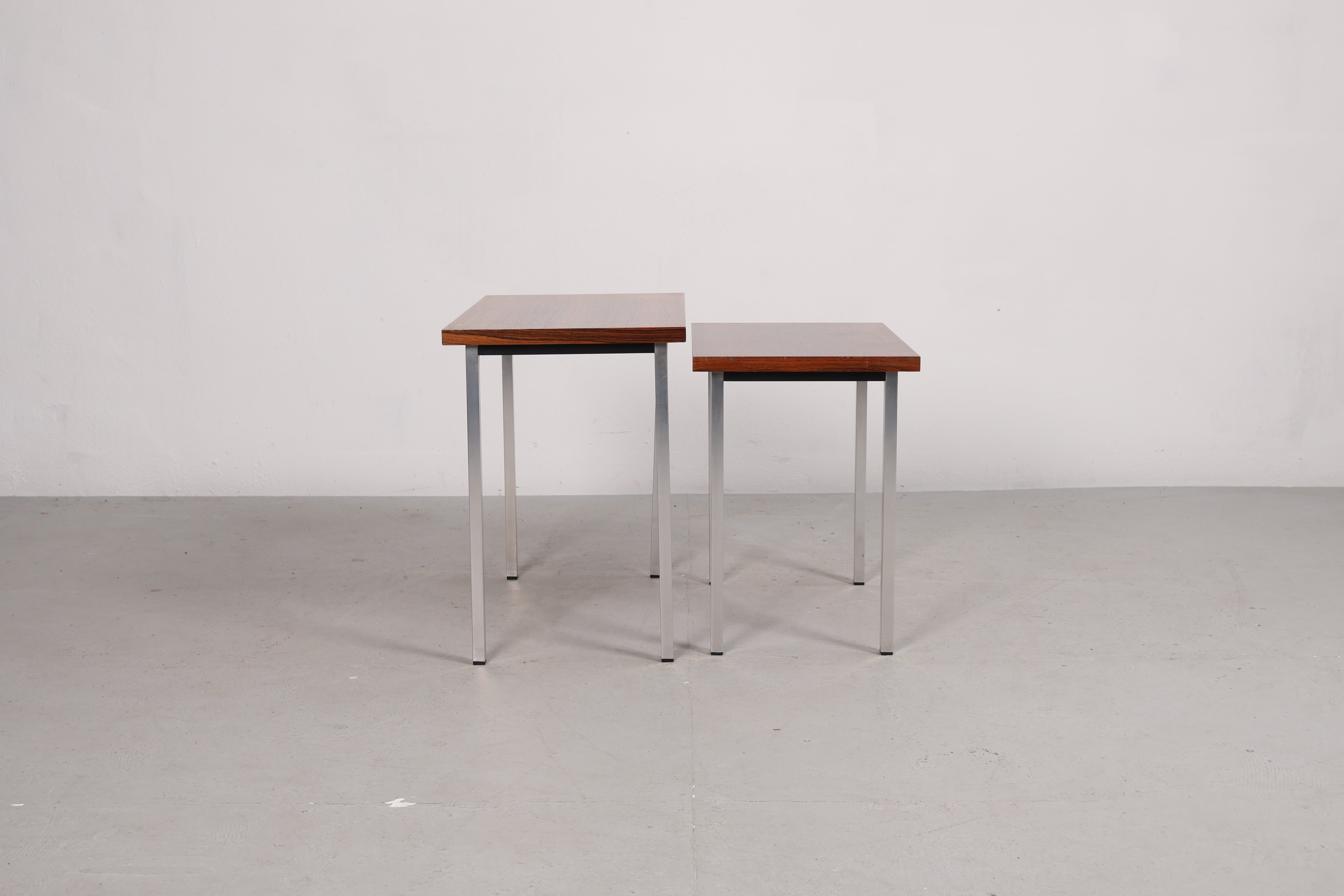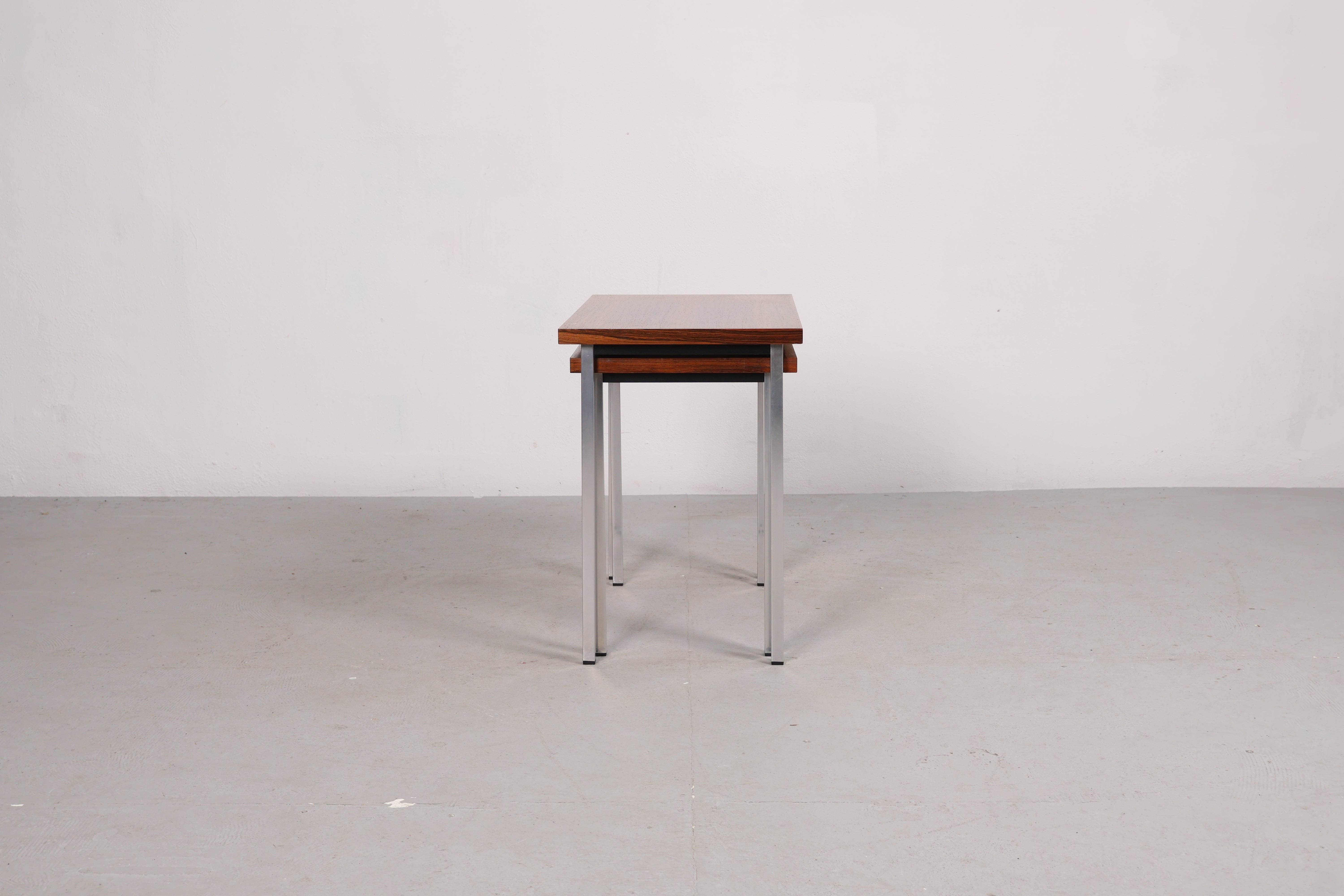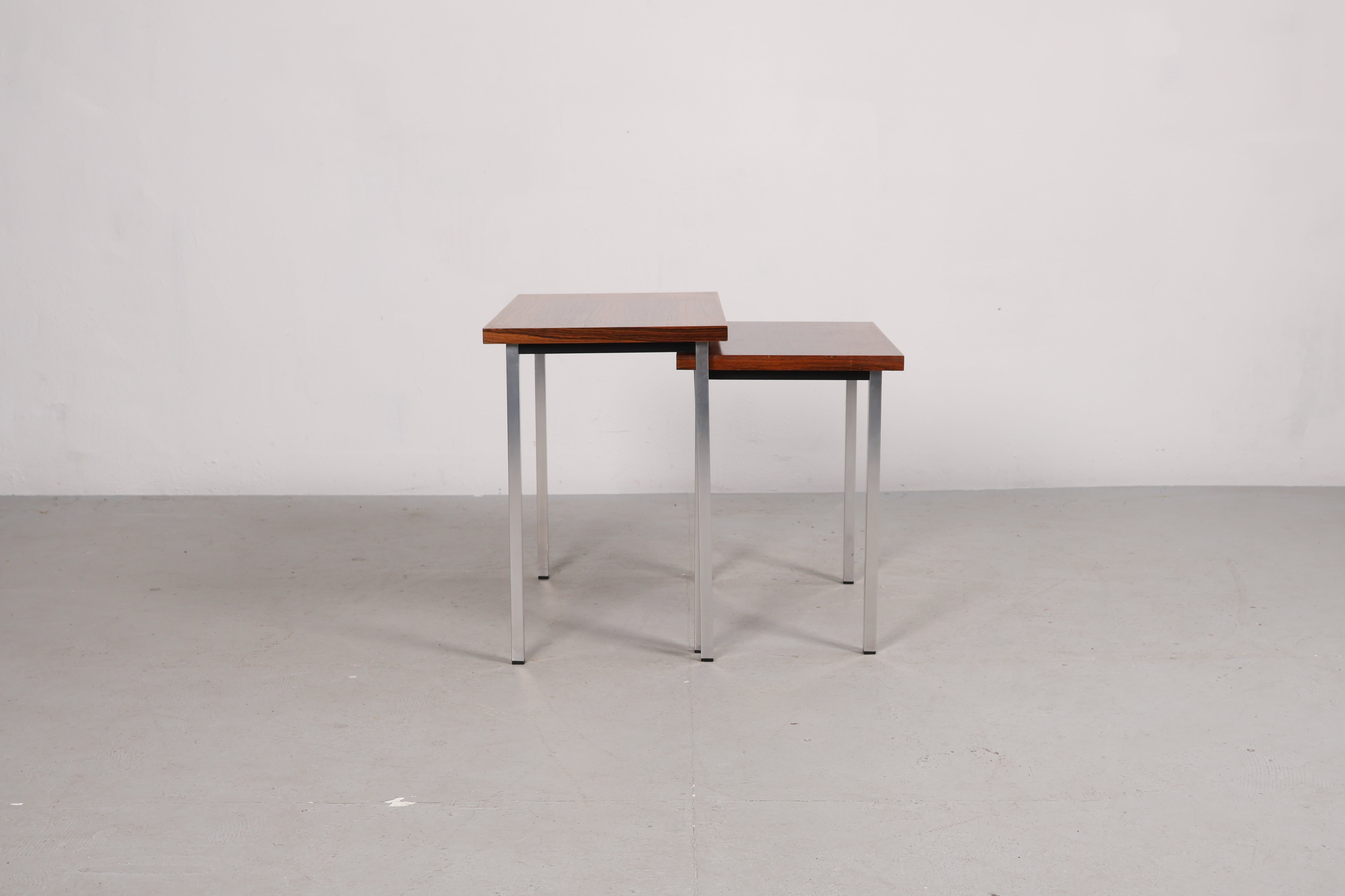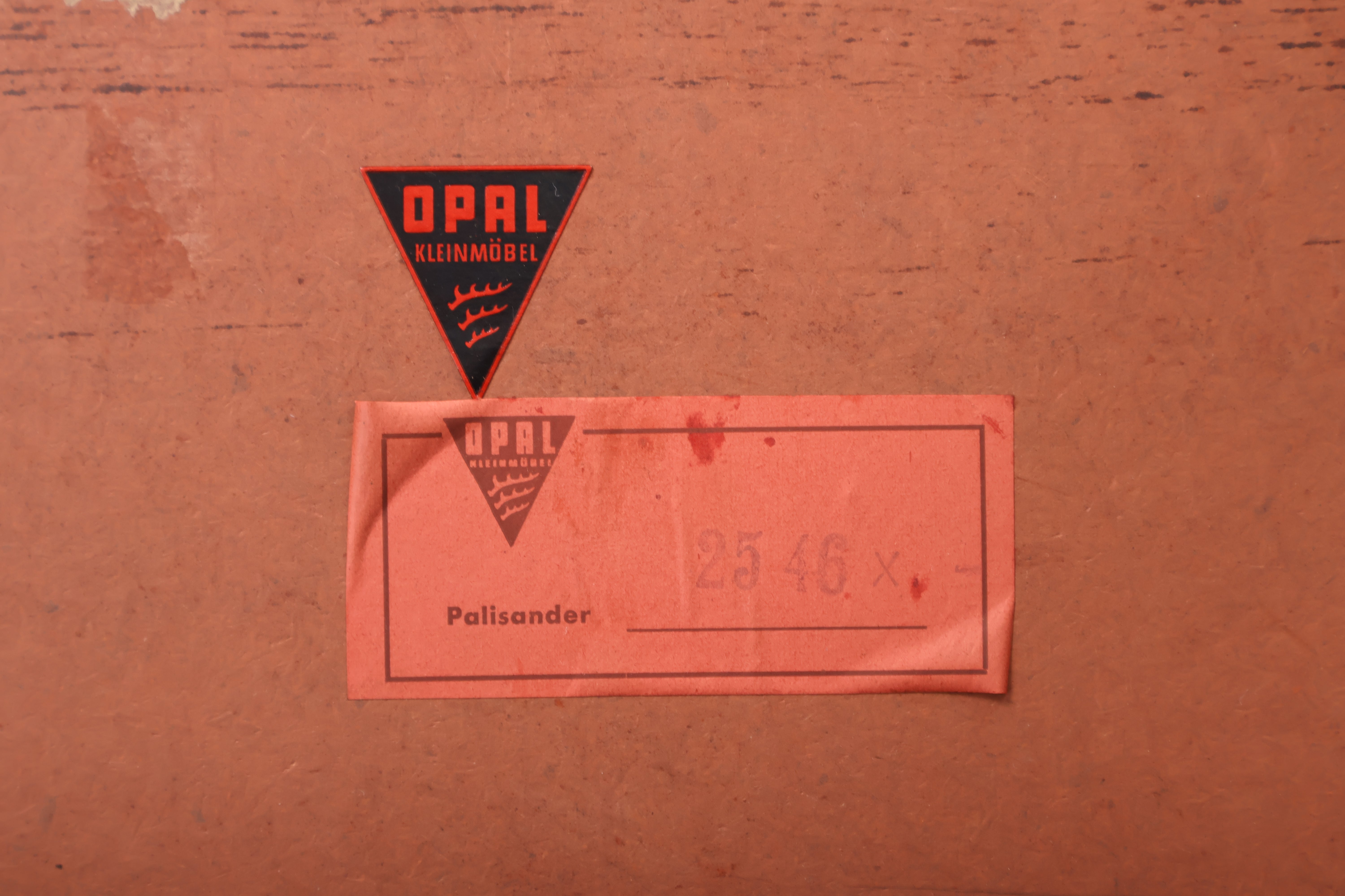 Beistelltisch aus den 60er-Jahren. Hergestellt in Deutschland. Gefertigt aus Palisander. Höhe 55 cm, Breite 65 cm, Tiefe 38 cm.