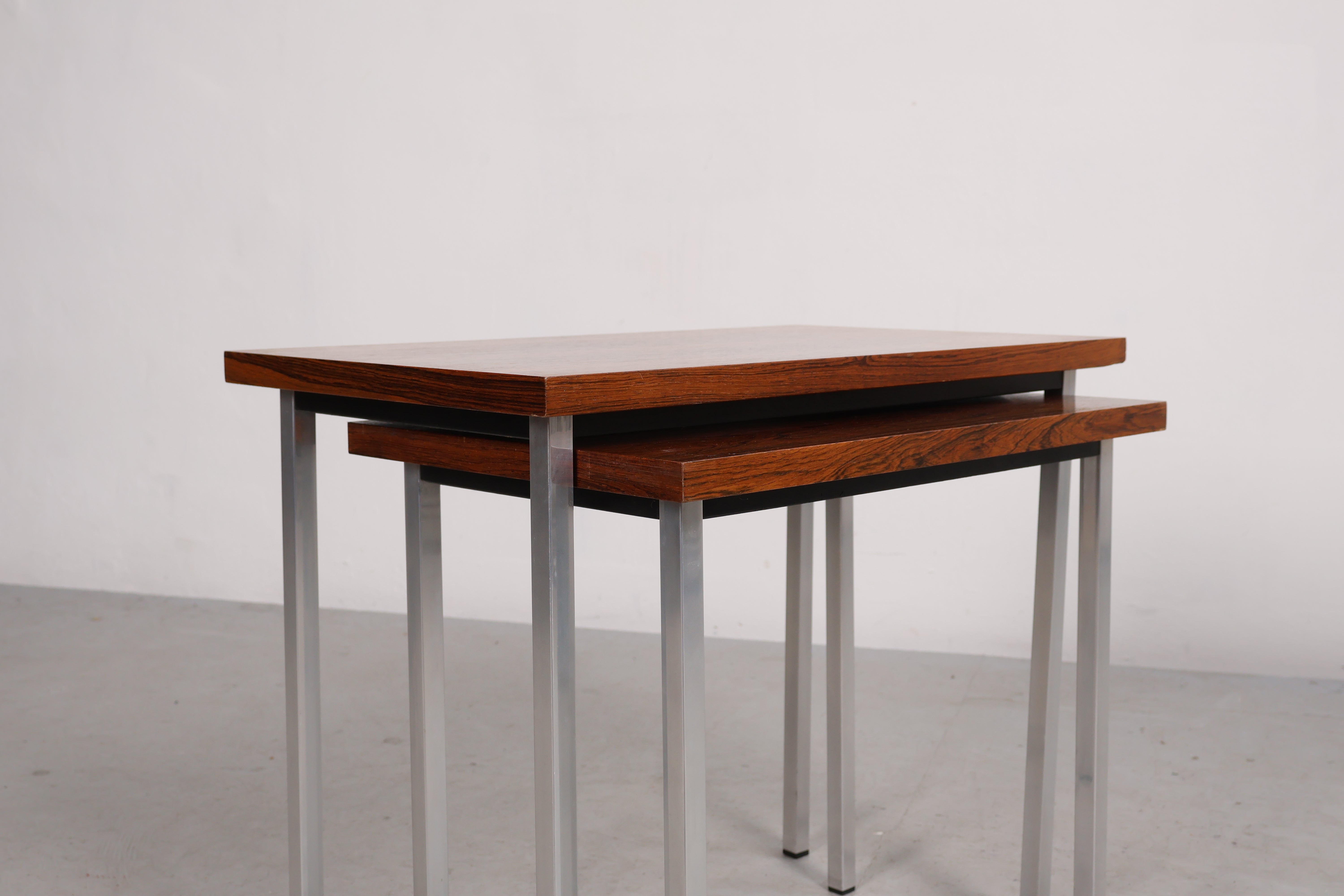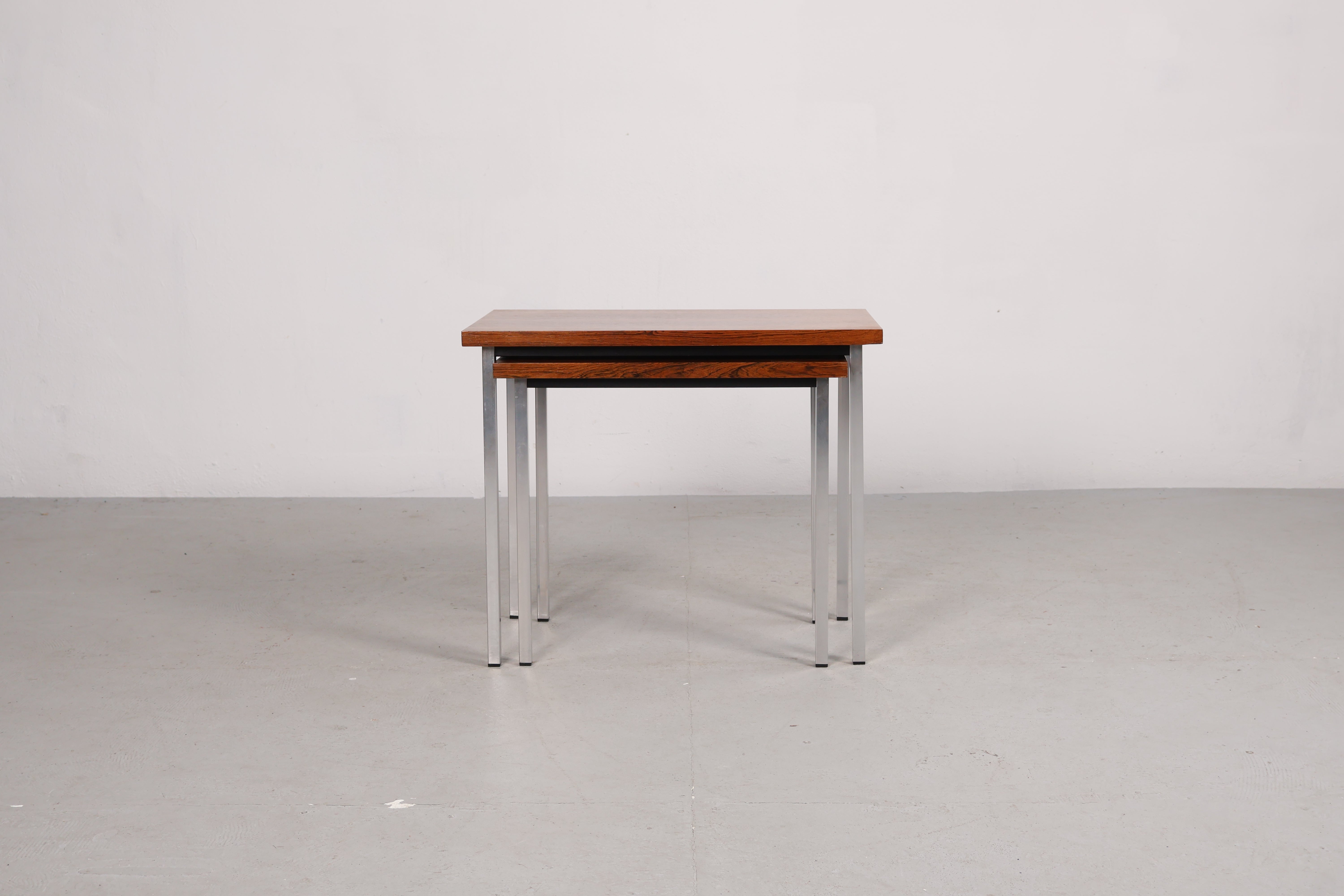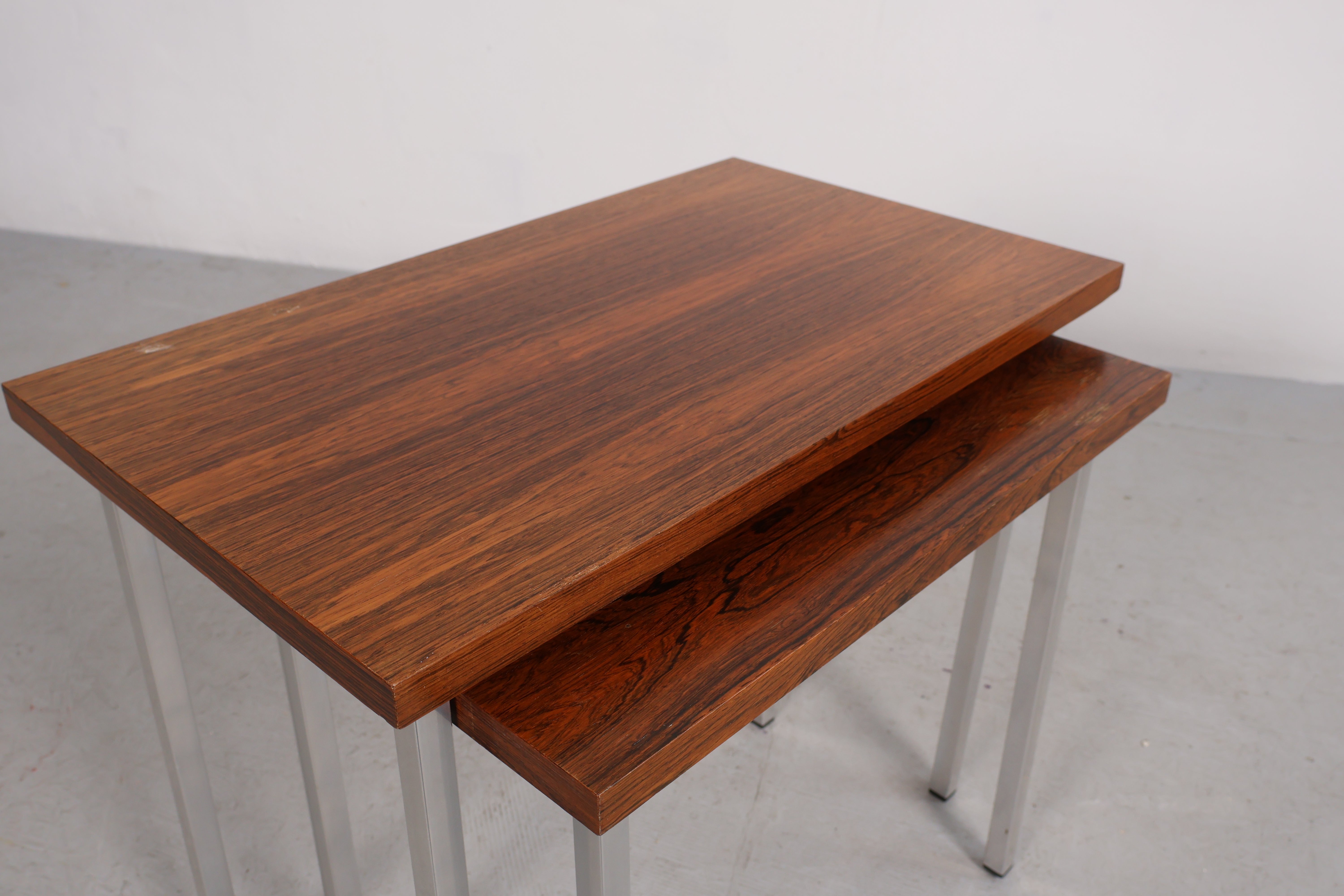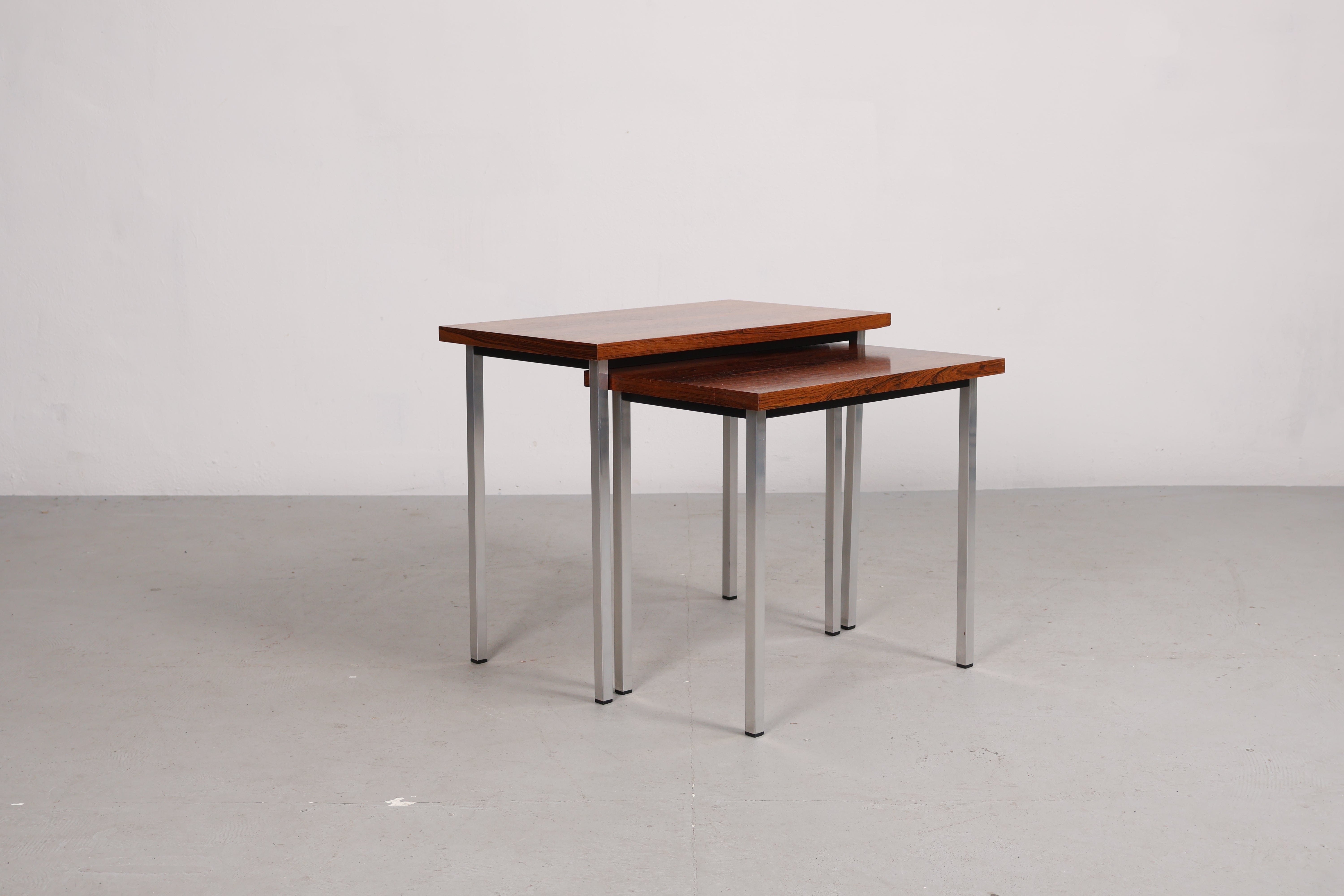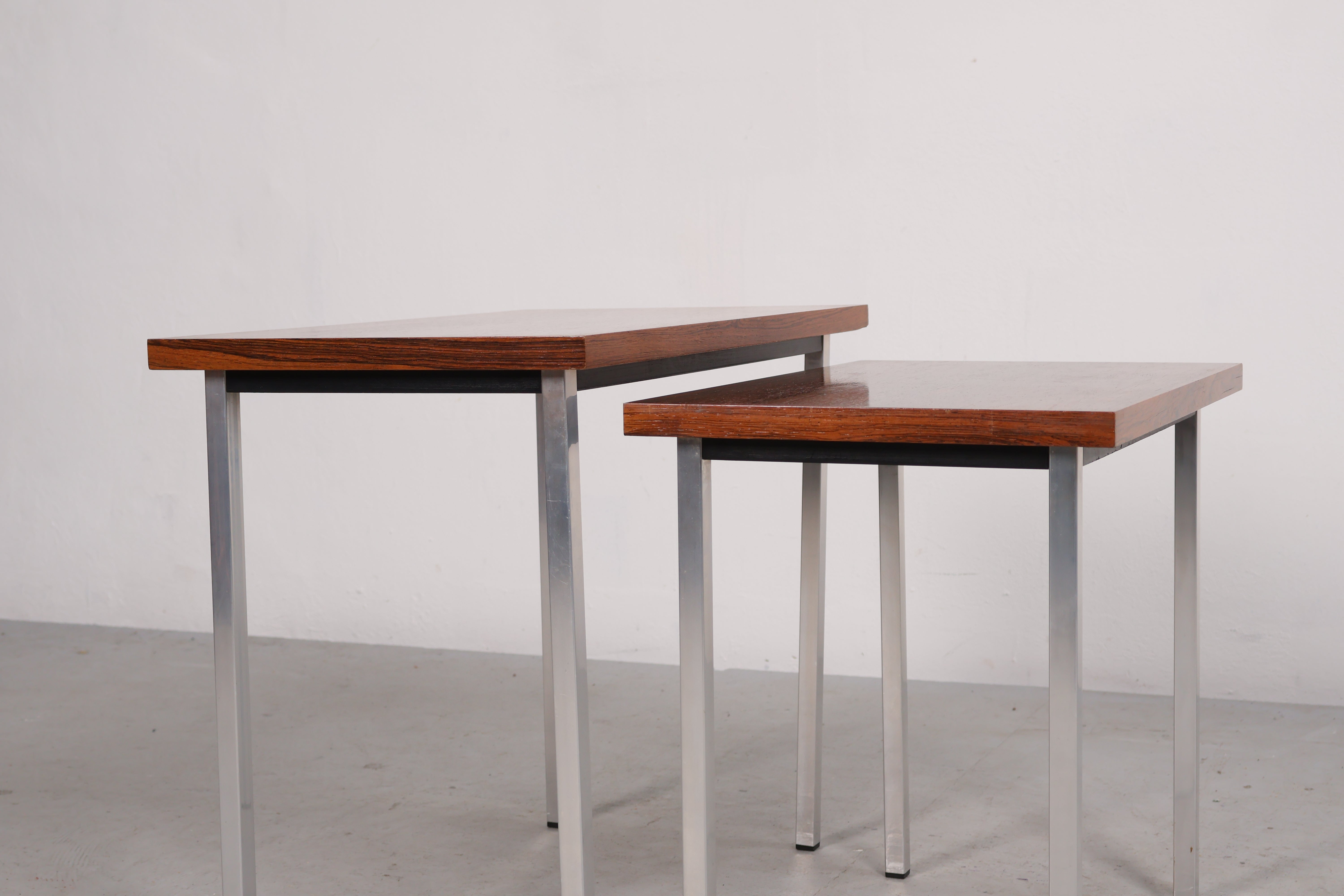 Beistelltisch aus den 60er-Jahren. Hergestellt in Deutschland. Gefertigt aus Palisander. Höhe 55 cm, Breite 65 cm, Tiefe 38 cm.