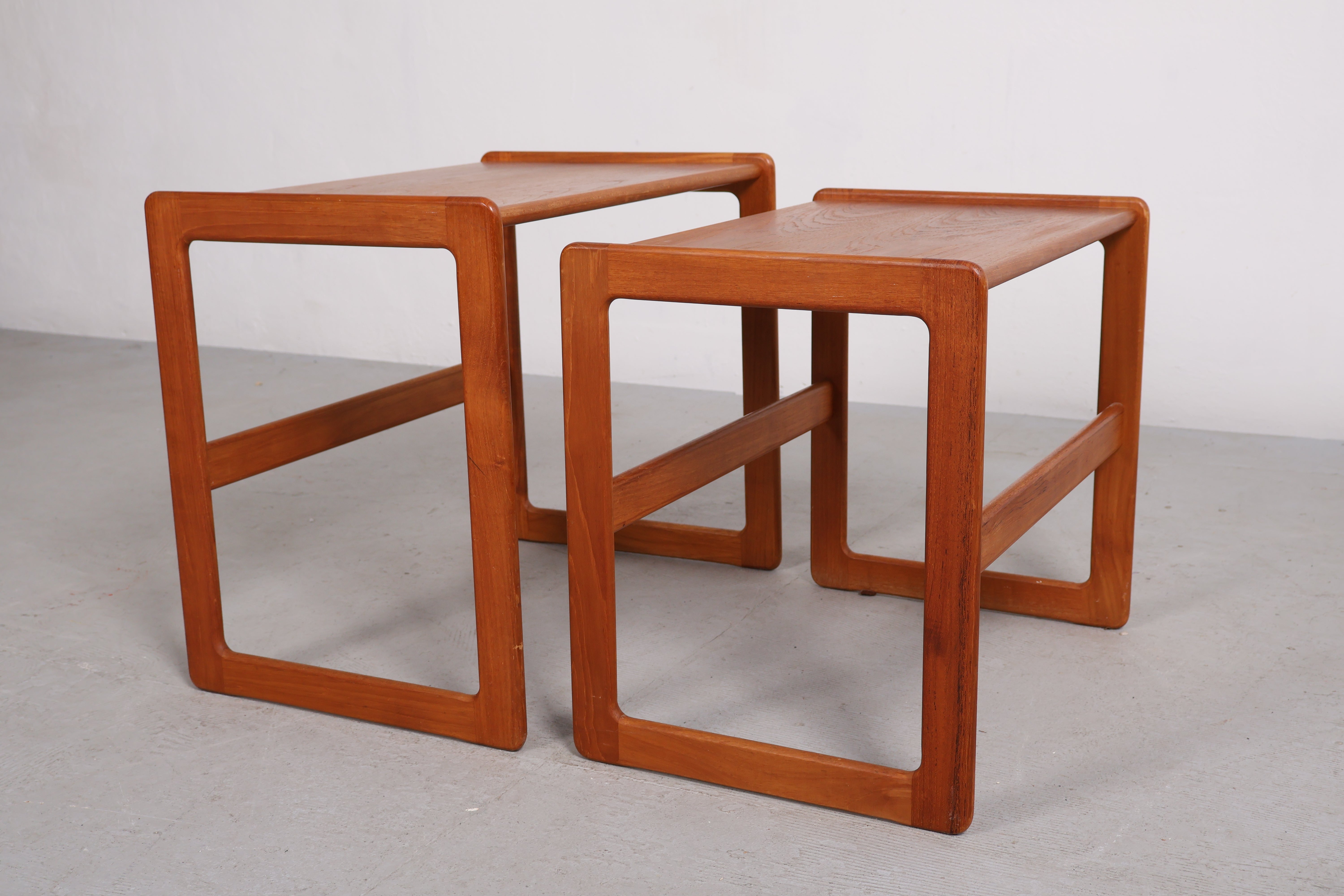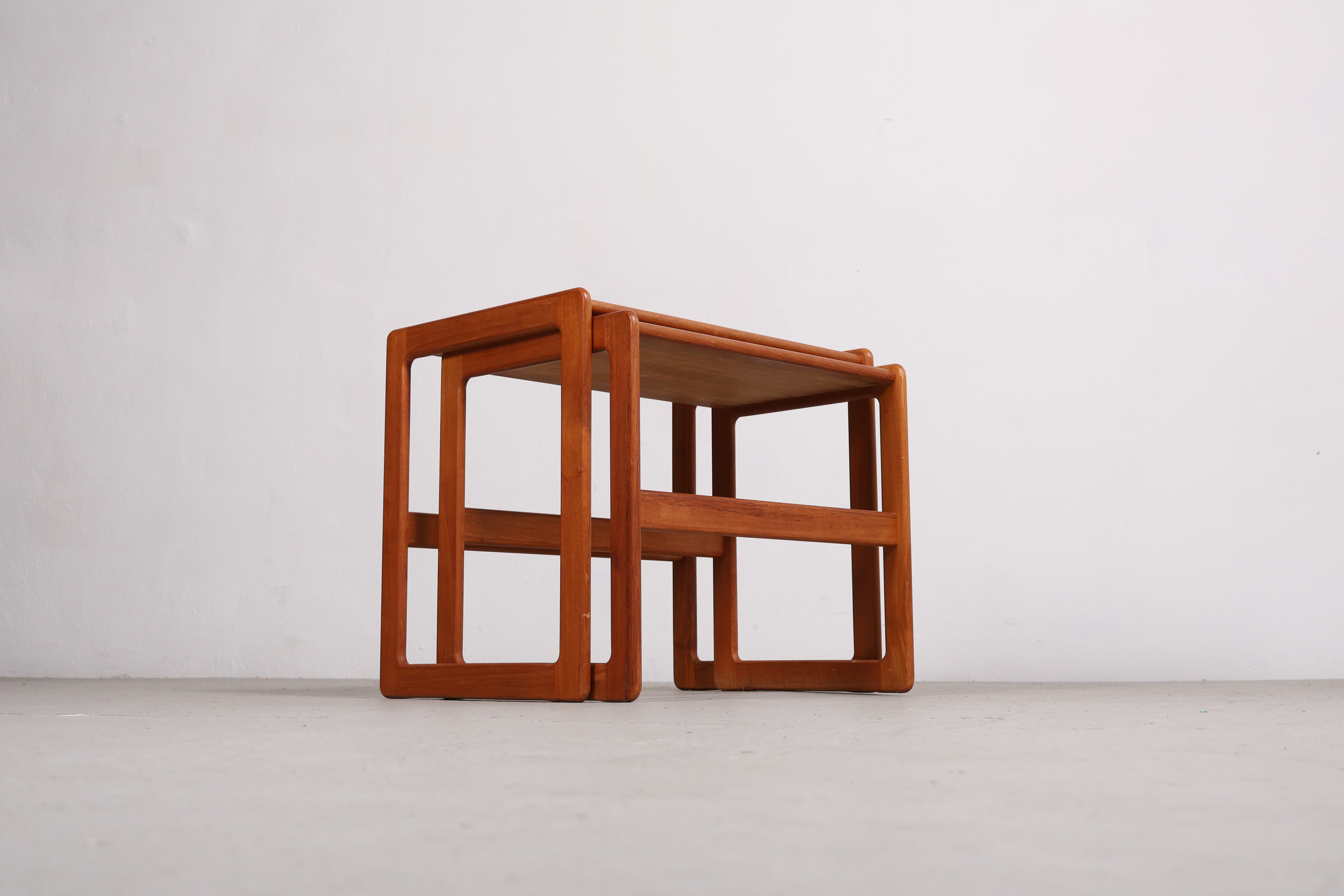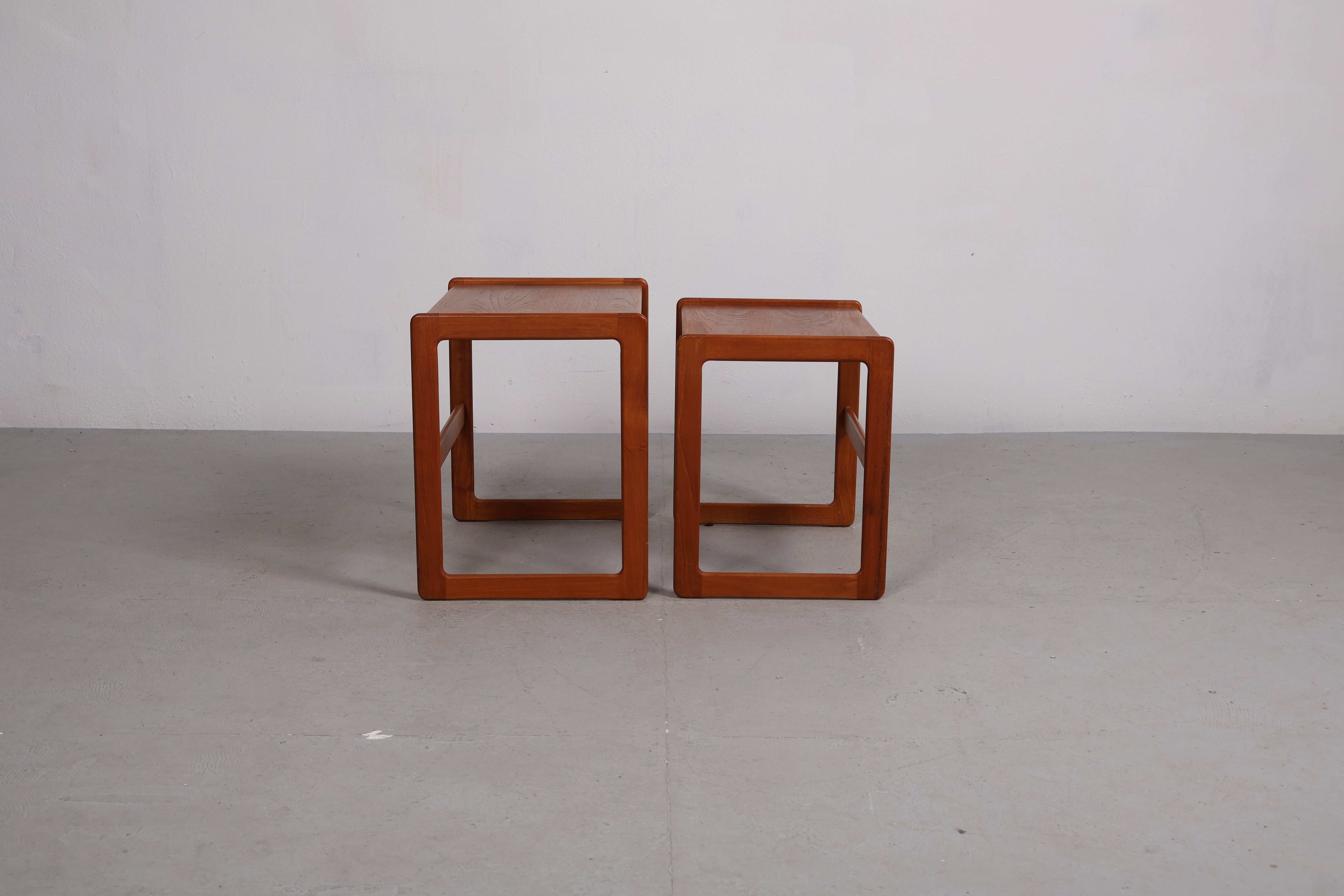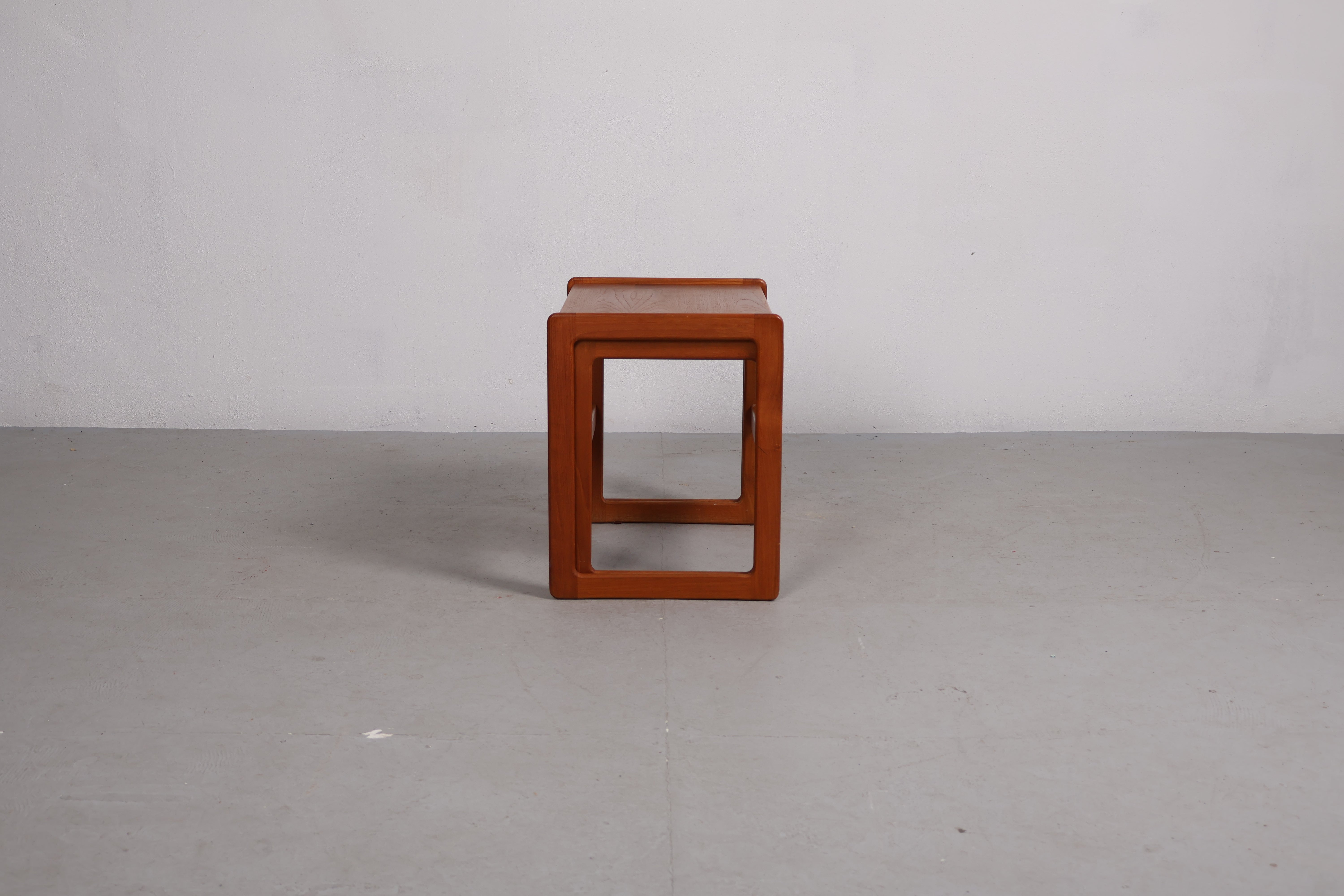 Beistelltisch aus den 60er-Jahren. Hergestellt in Dänemark. Gefertigt aus Teak. Höhe 47 cm, Breite 55 cm, Tiefe 38 cm.