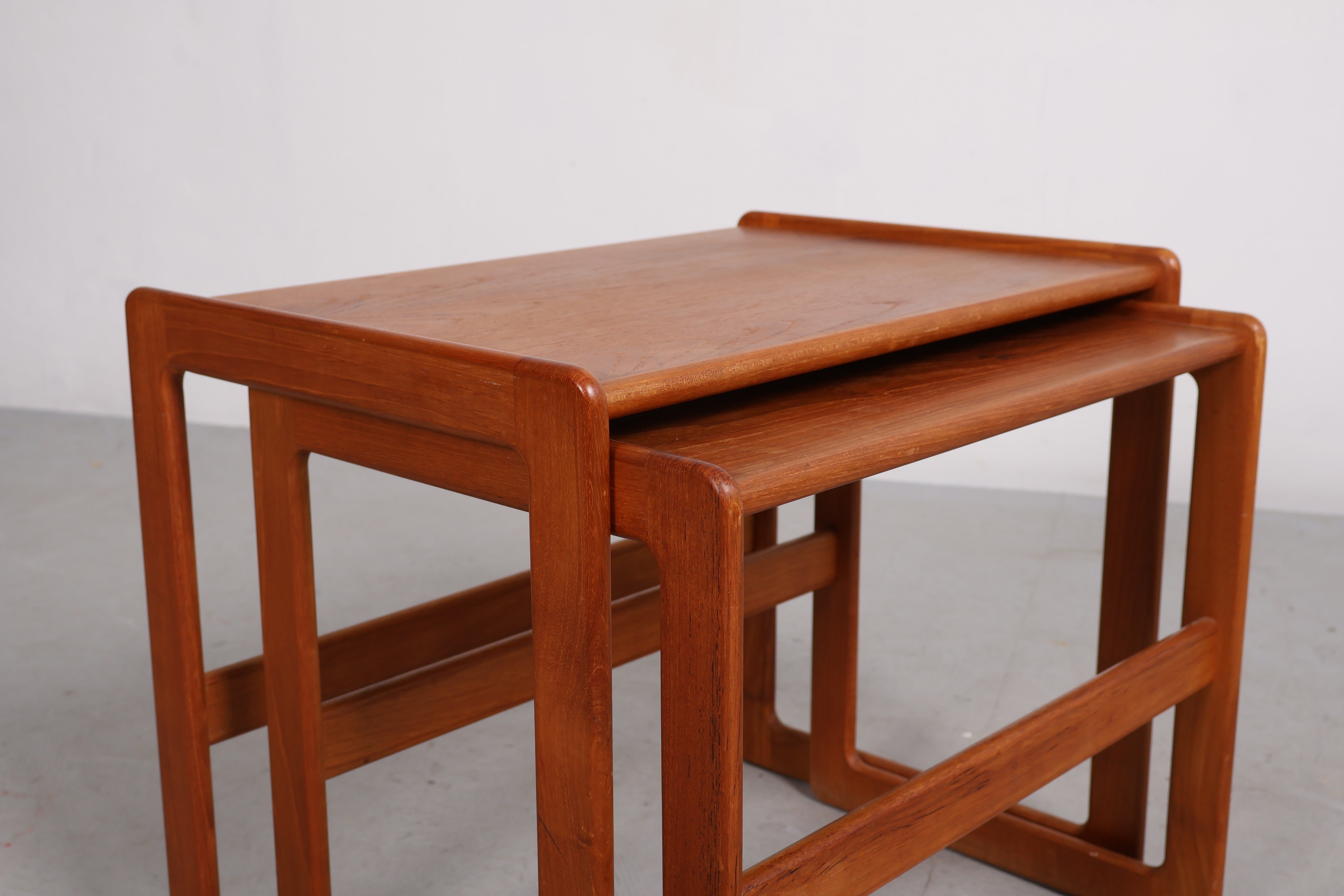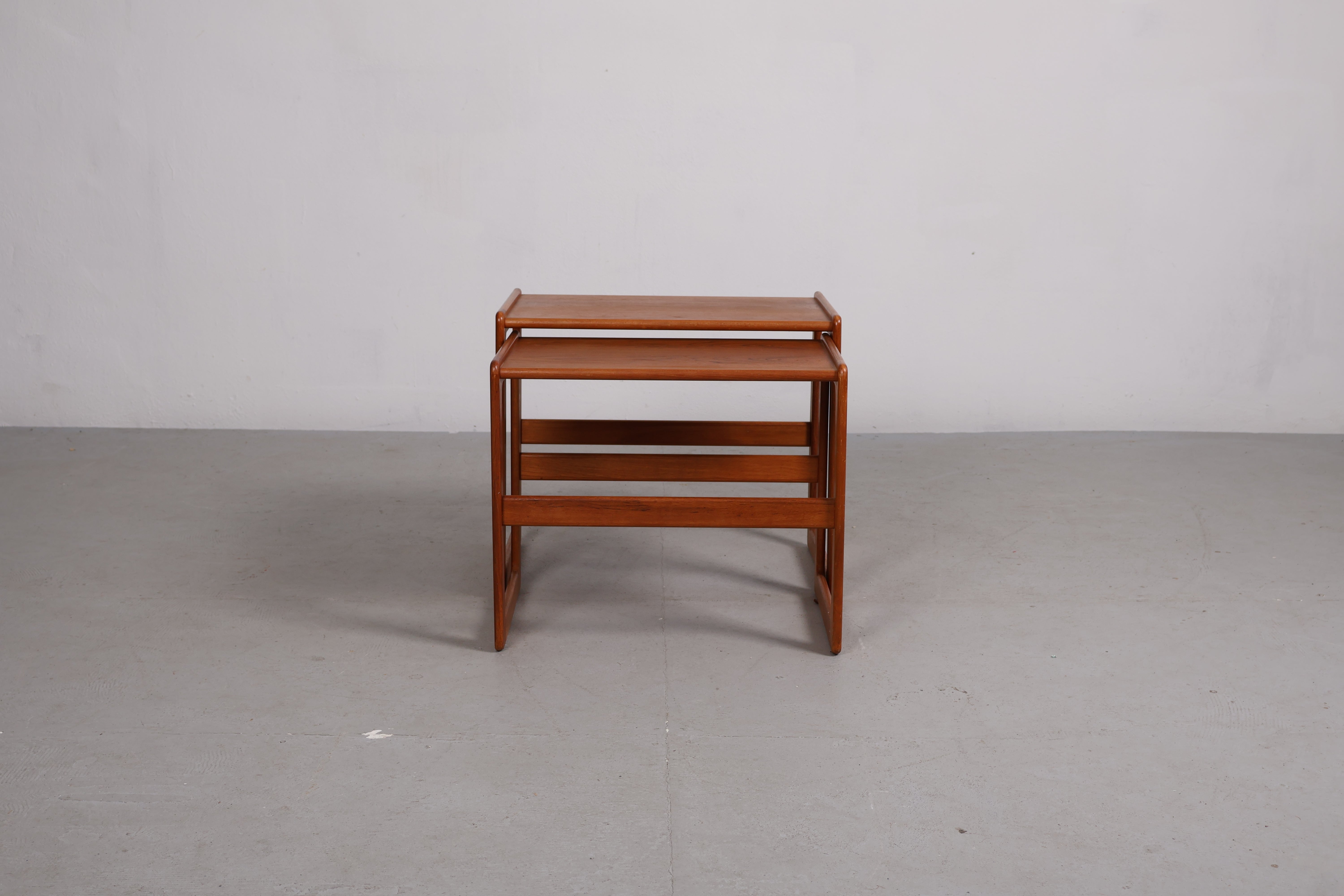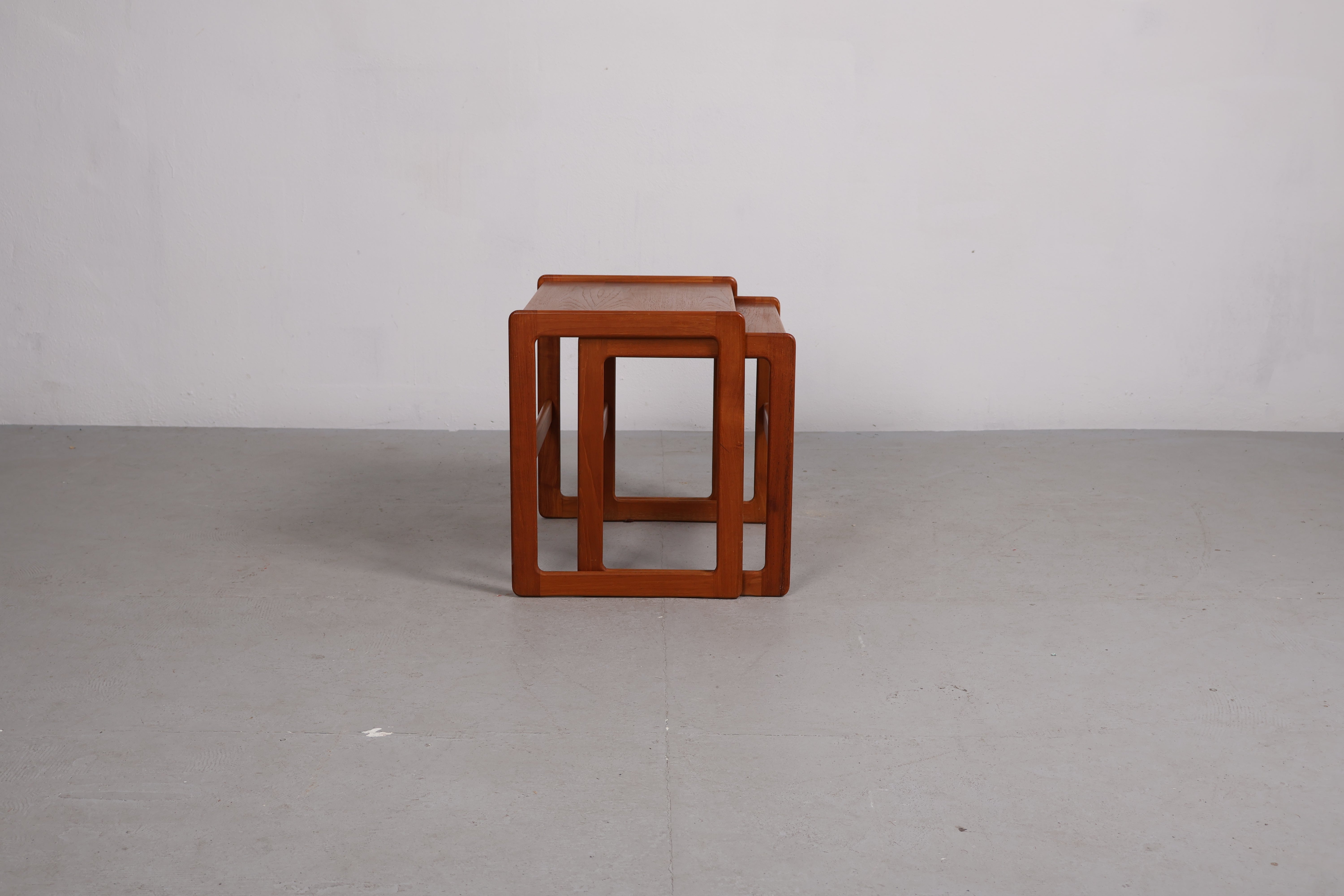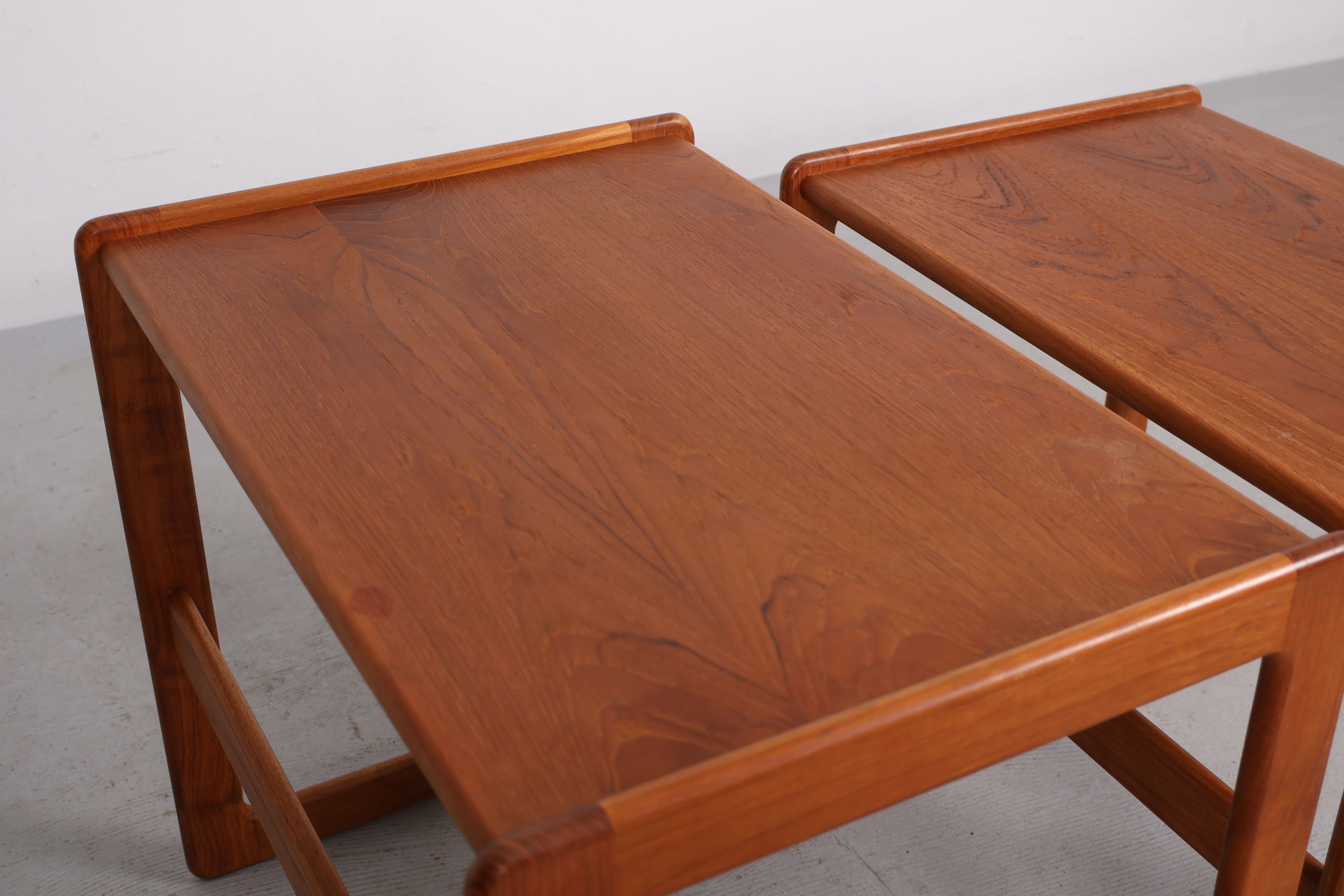 Beistelltisch aus den 60er-Jahren. Hergestellt in Dänemark. Gefertigt aus Teak. Höhe 47 cm, Breite 55 cm, Tiefe 38 cm.
