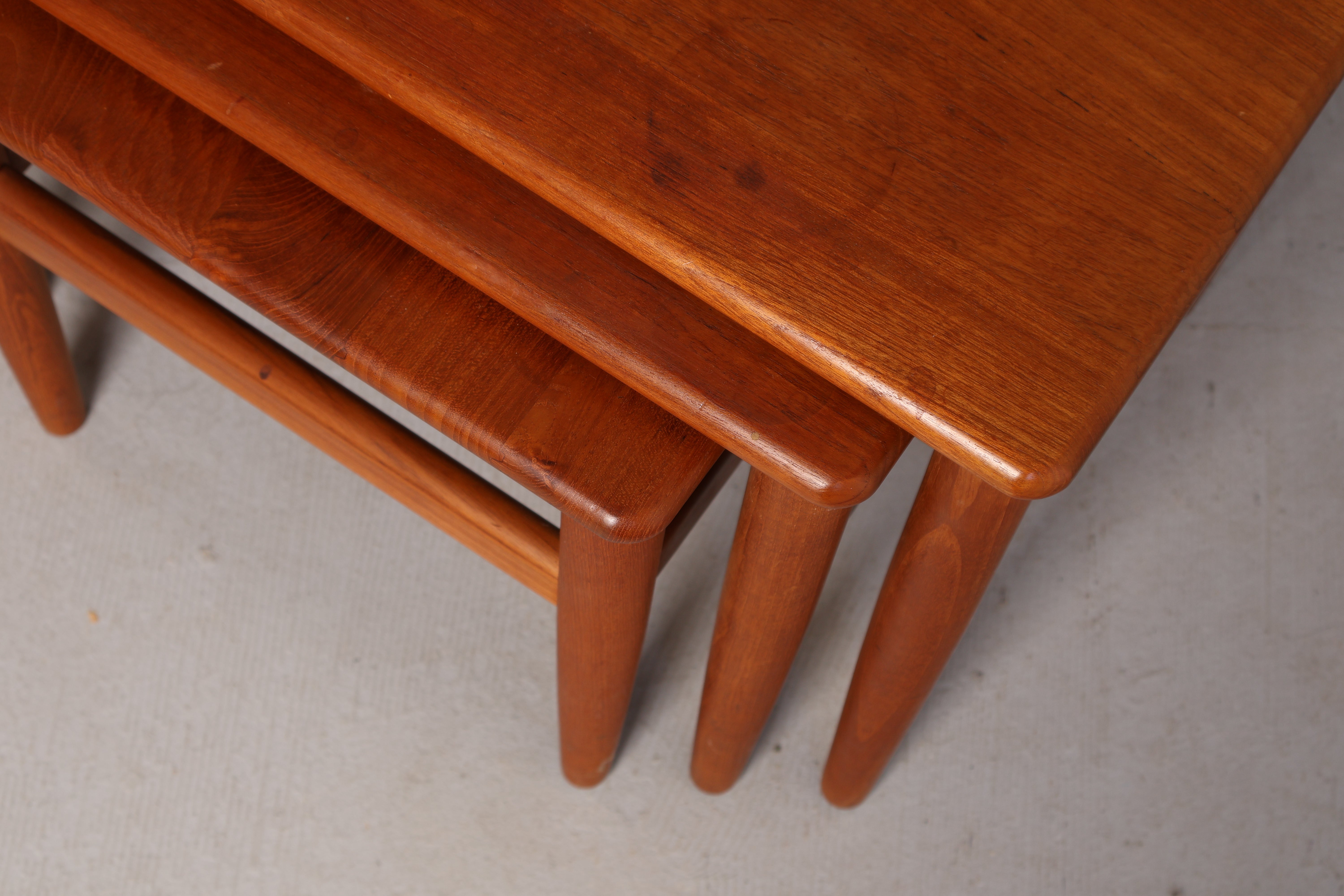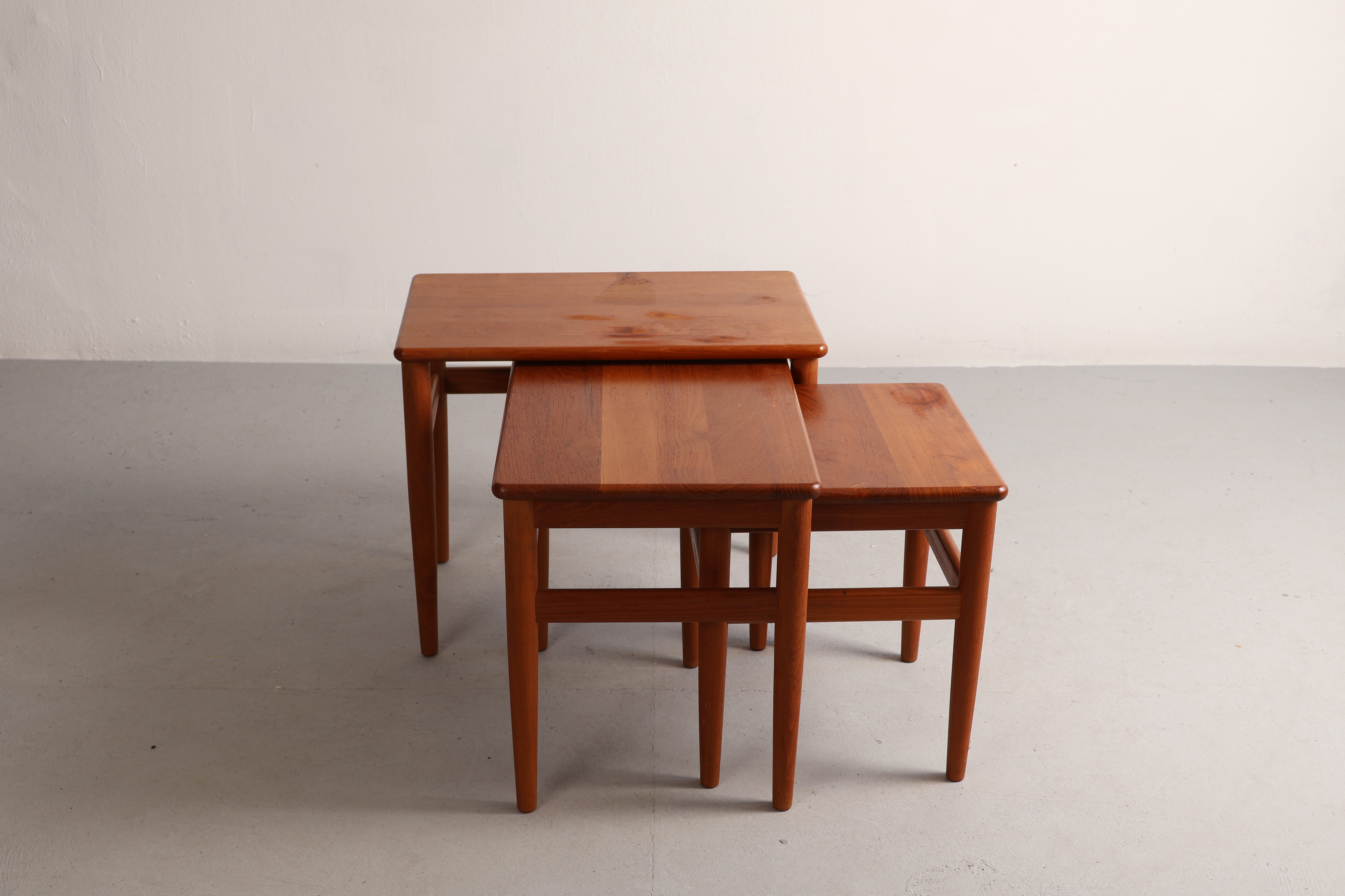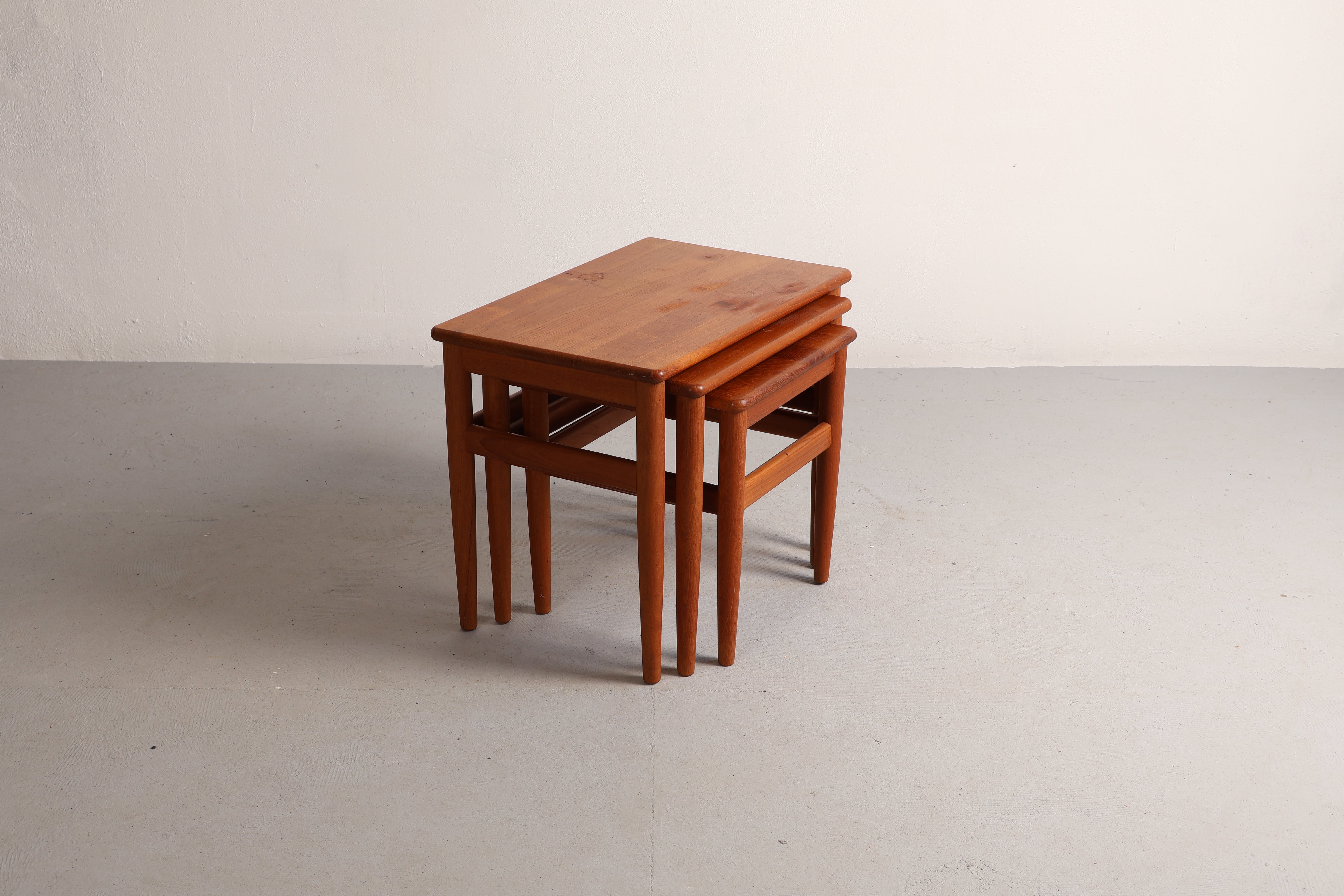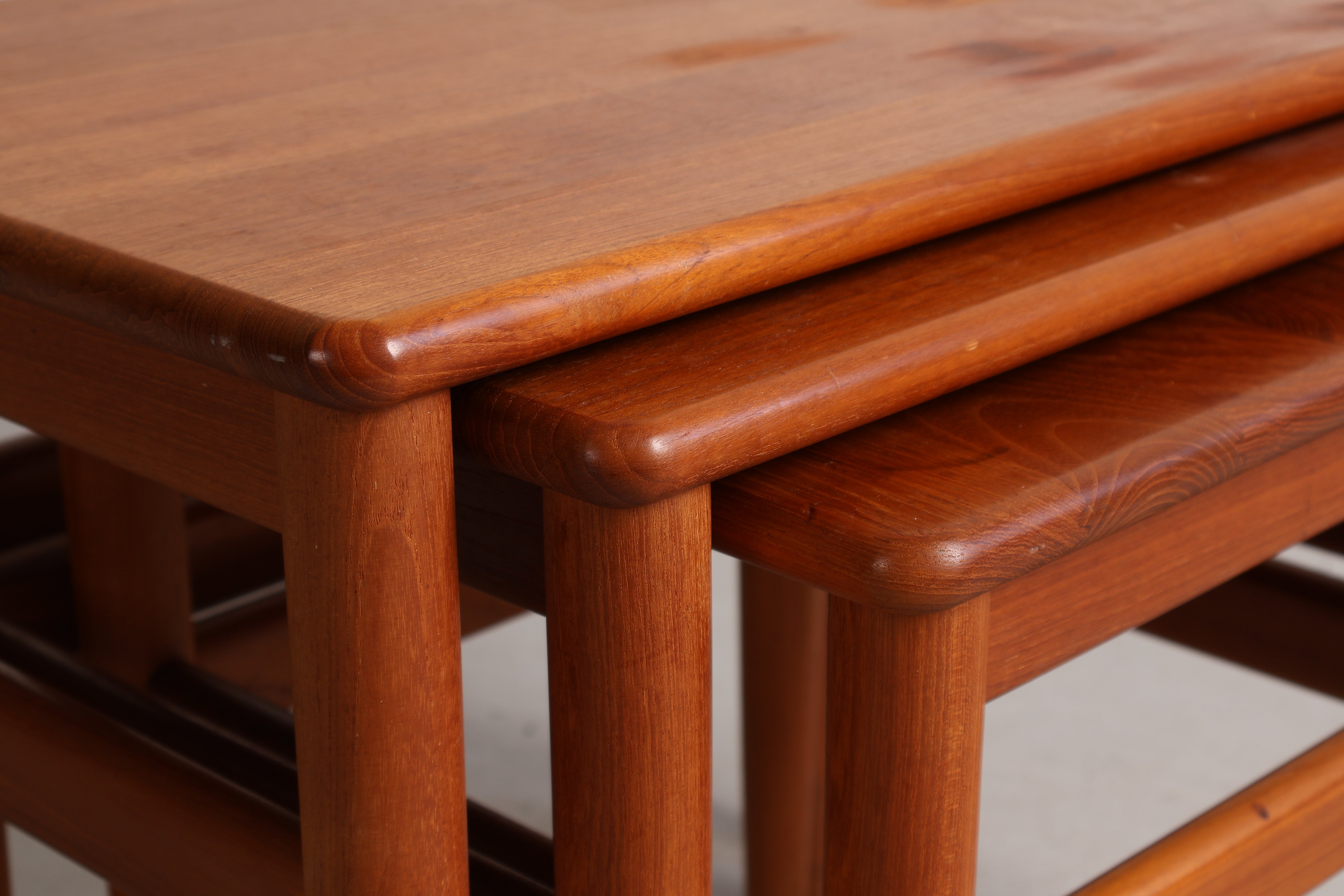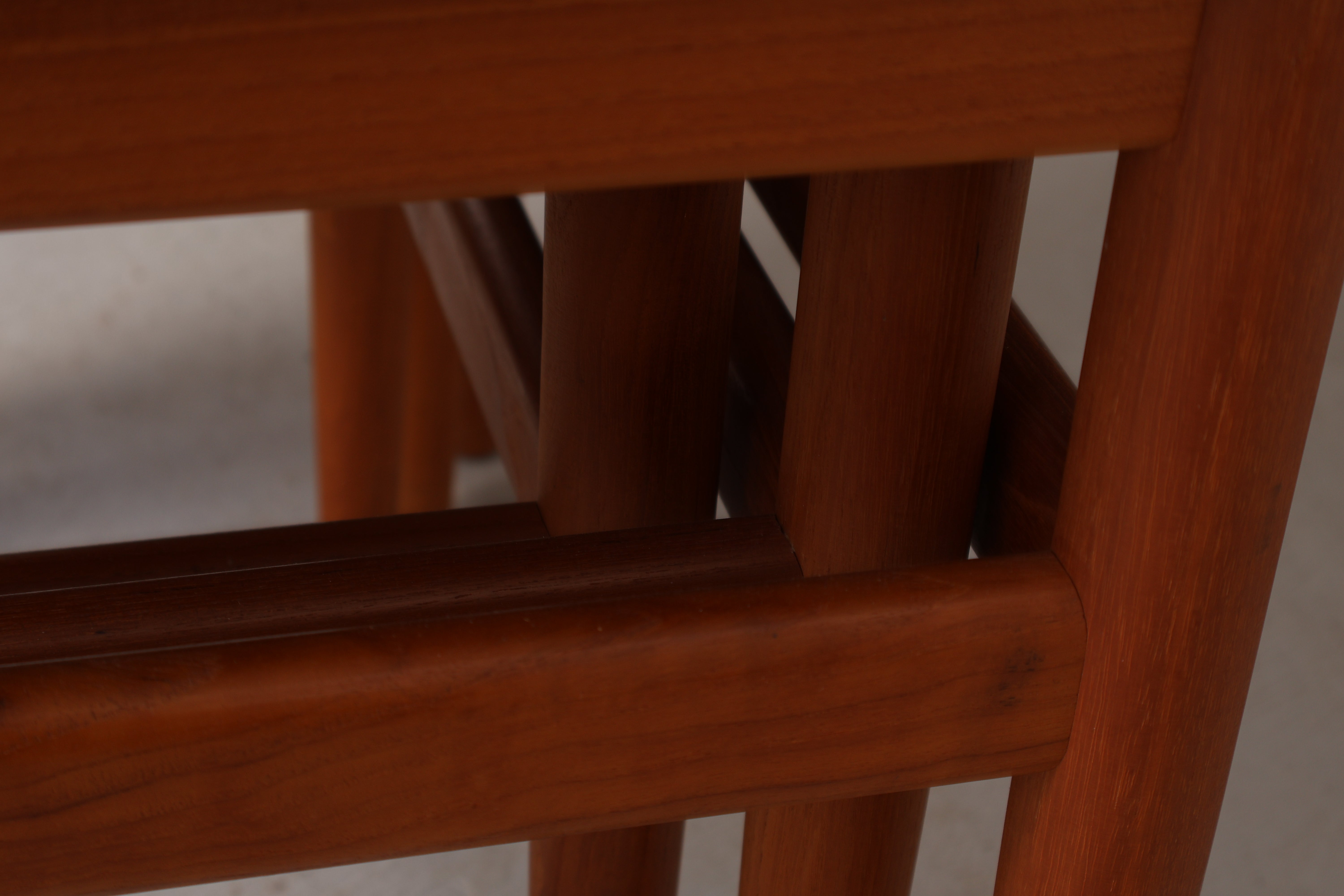 Beistelltisch aus den 70er-Jahren. Hergestellt in Dänemark. Gefertigt aus Teak. Höhe 48 cm, Breite 60 cm, Tiefe 39 cm.