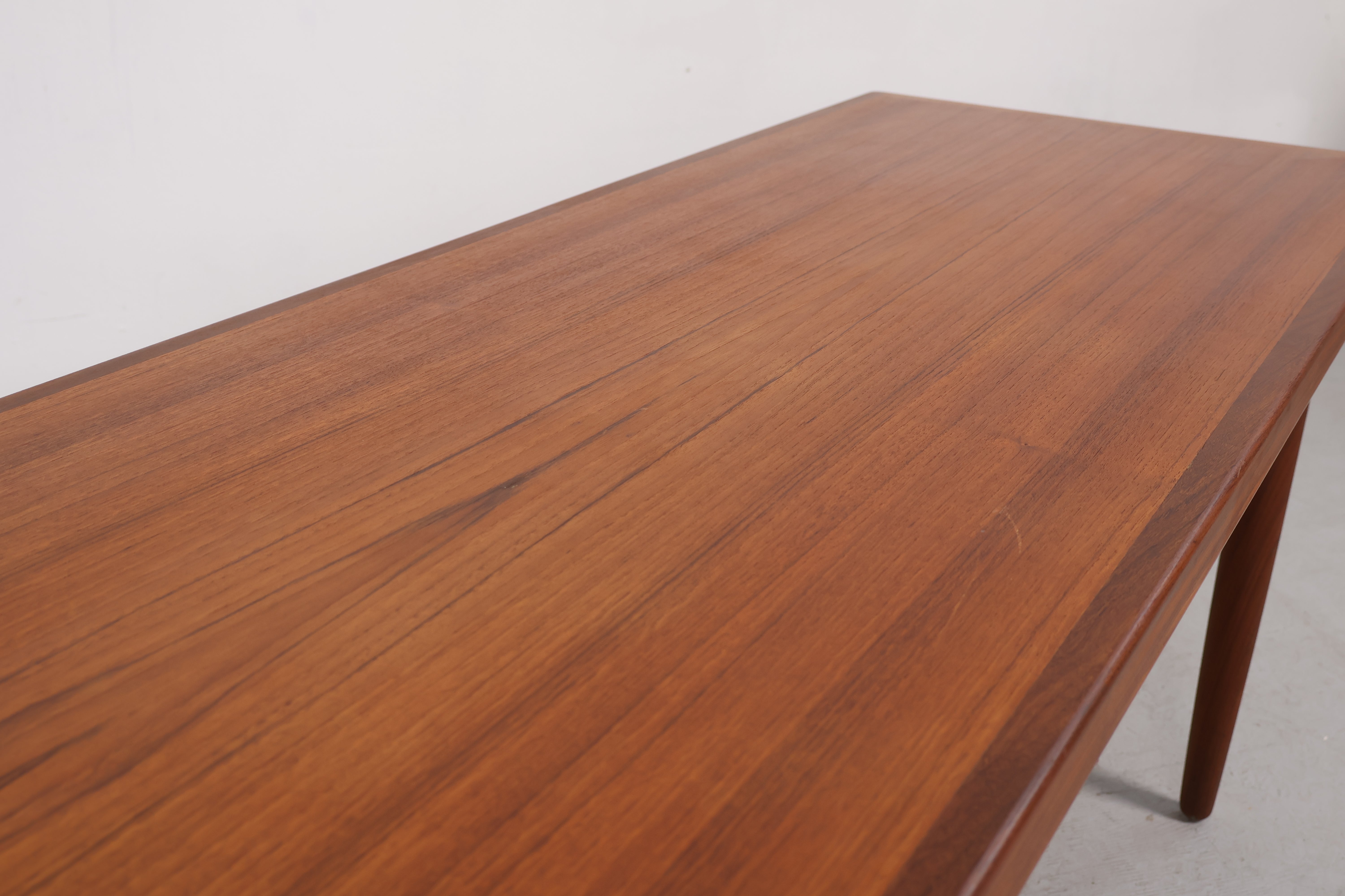 Couchtisch aus den 60er-Jahren. Hergestellt in Dänemark. Gefertigt aus Teak. Höhe 54 cm, Breite 155 cm, Tiefe 56 cm.