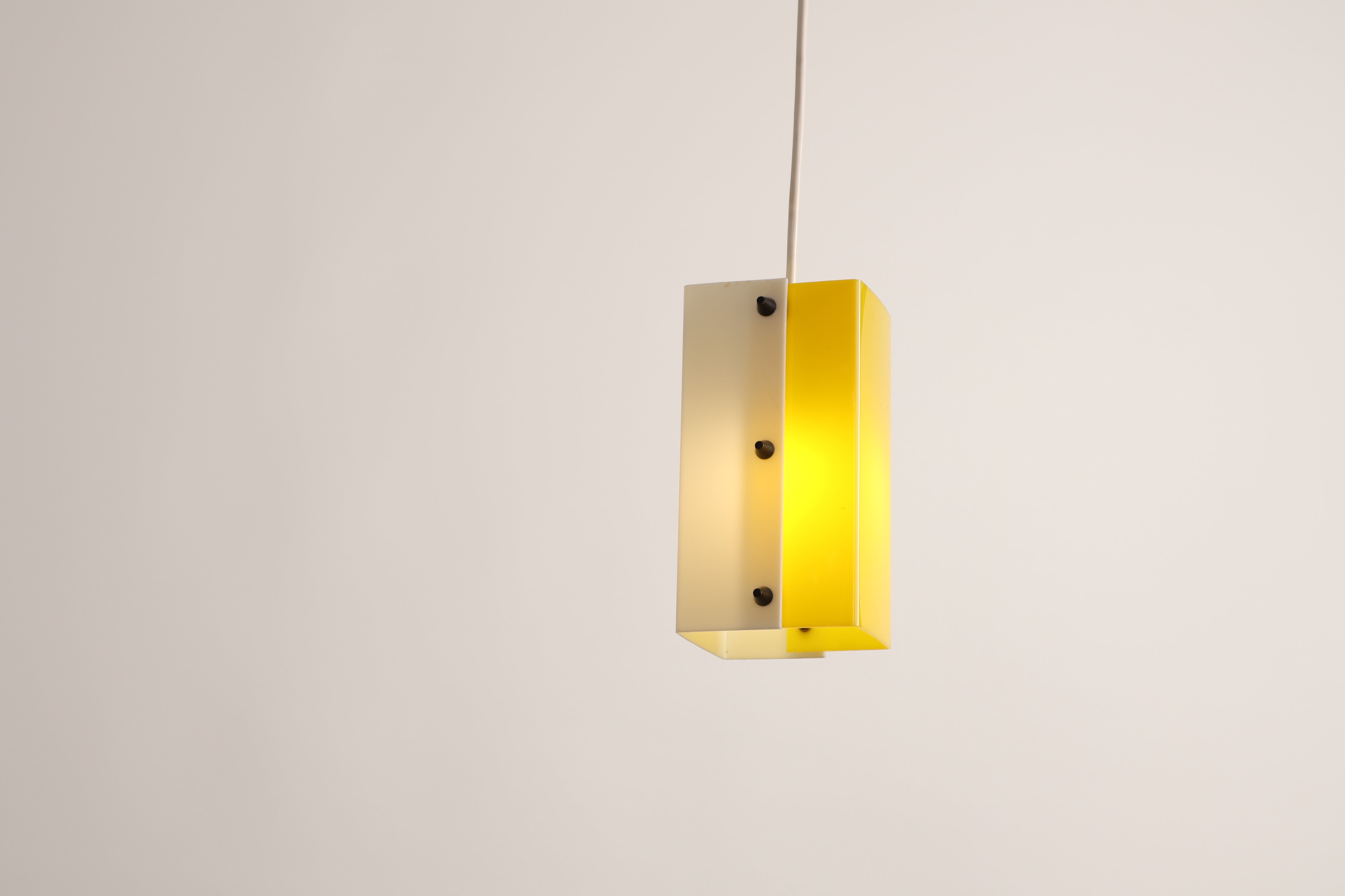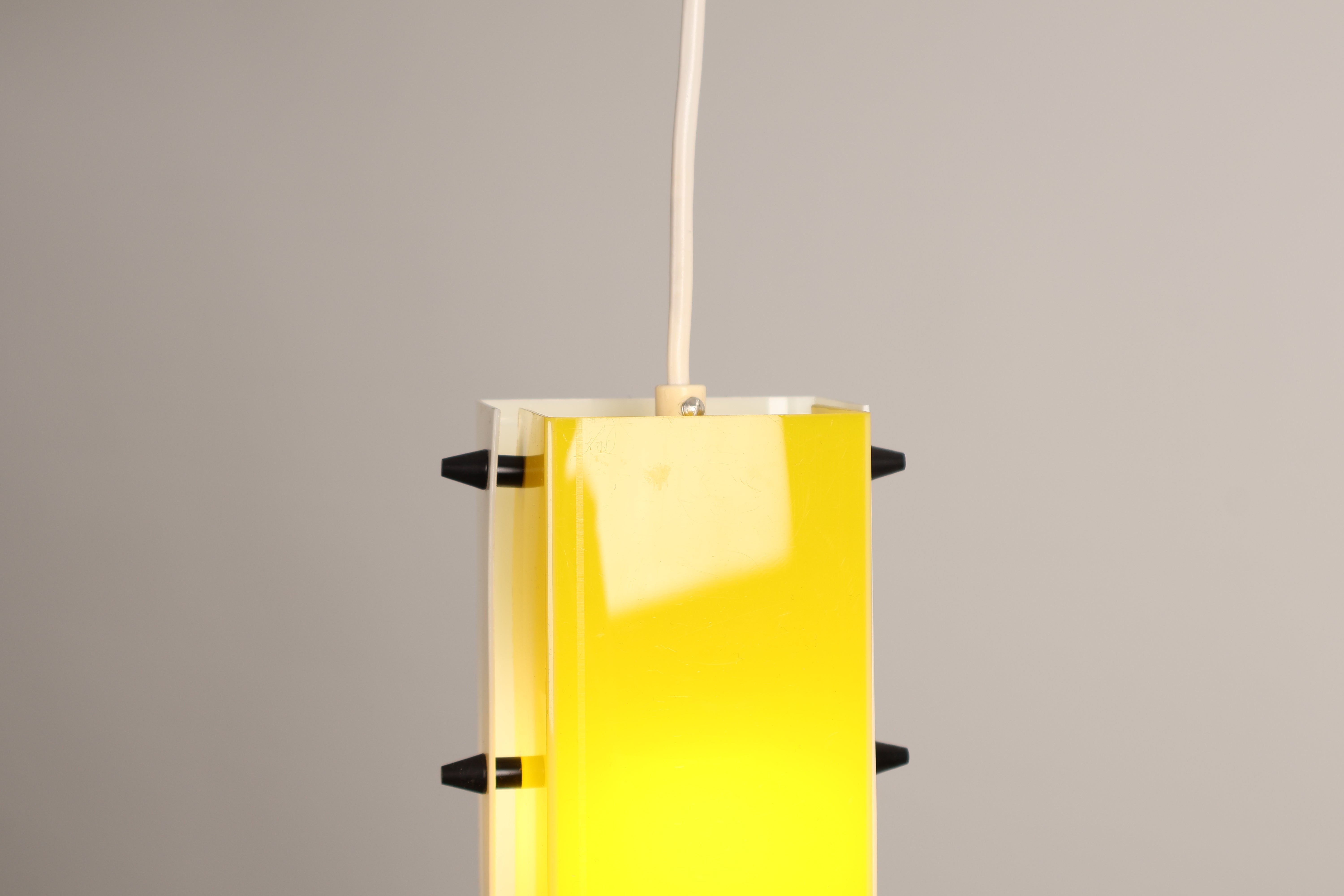 Deckenlampe aus den 60er-Jahren. Hergestellt in Italien. Gefertigt aus Acryl. Höhe 18 cm, Breite 10 cm, Tiefe 10 cm.