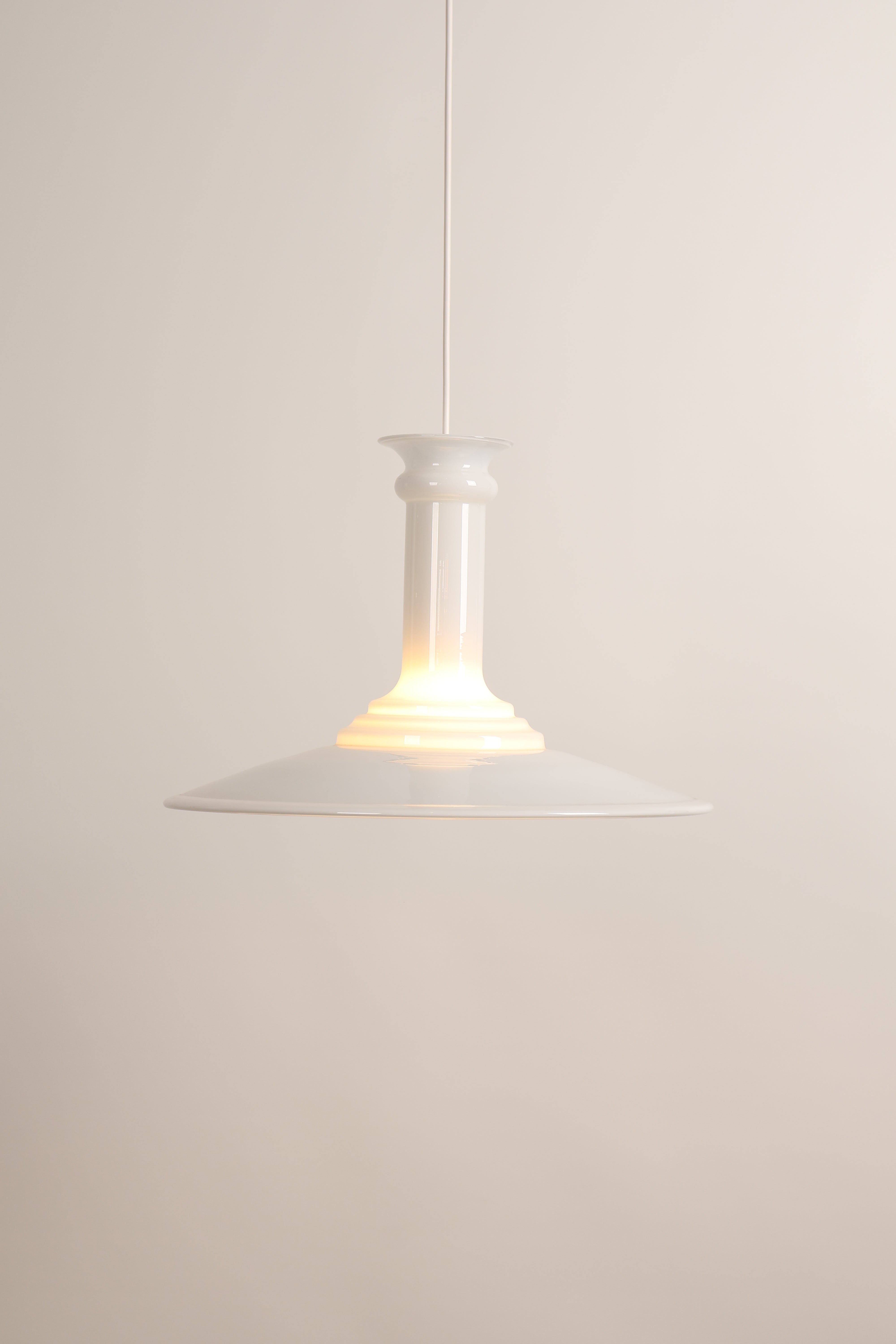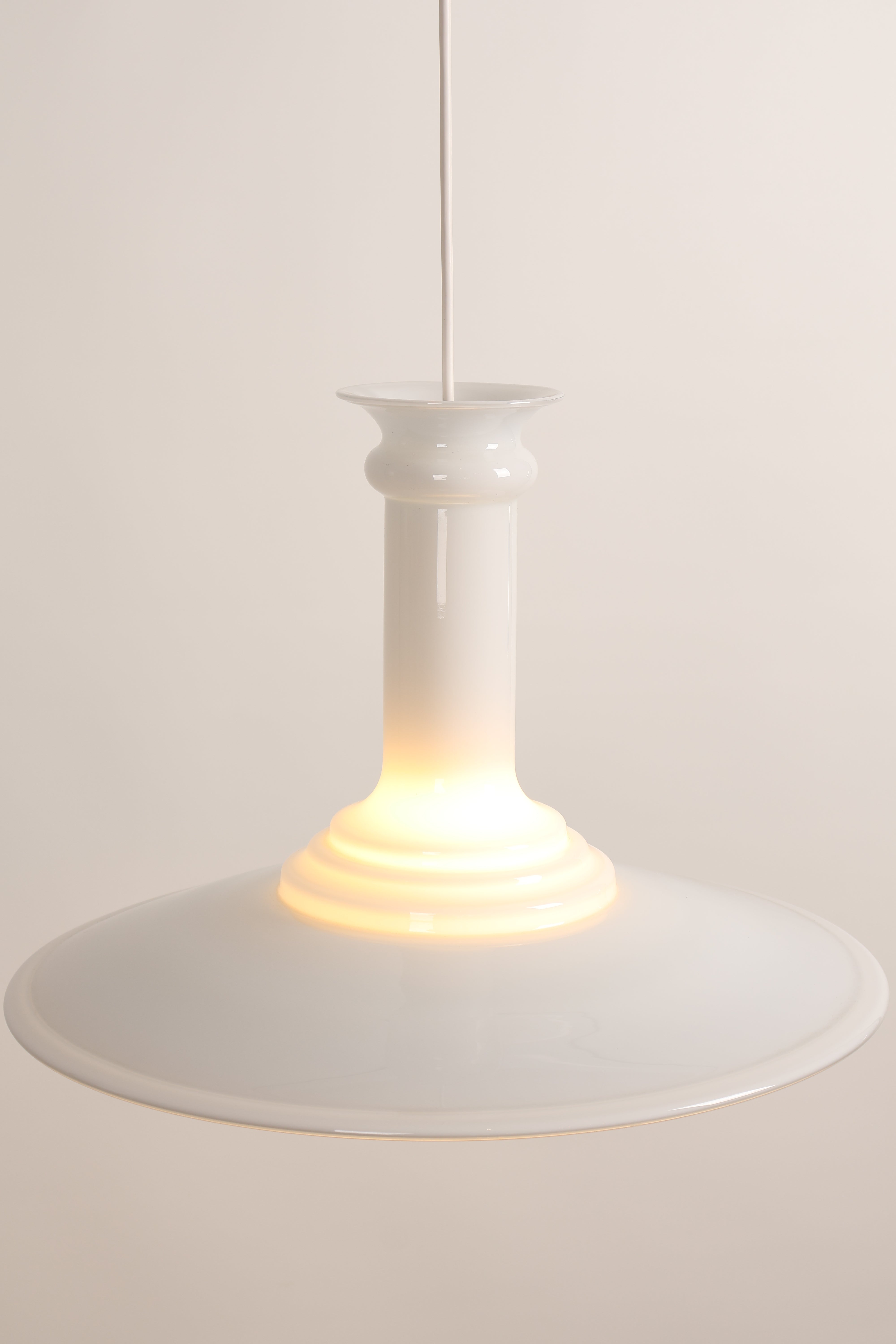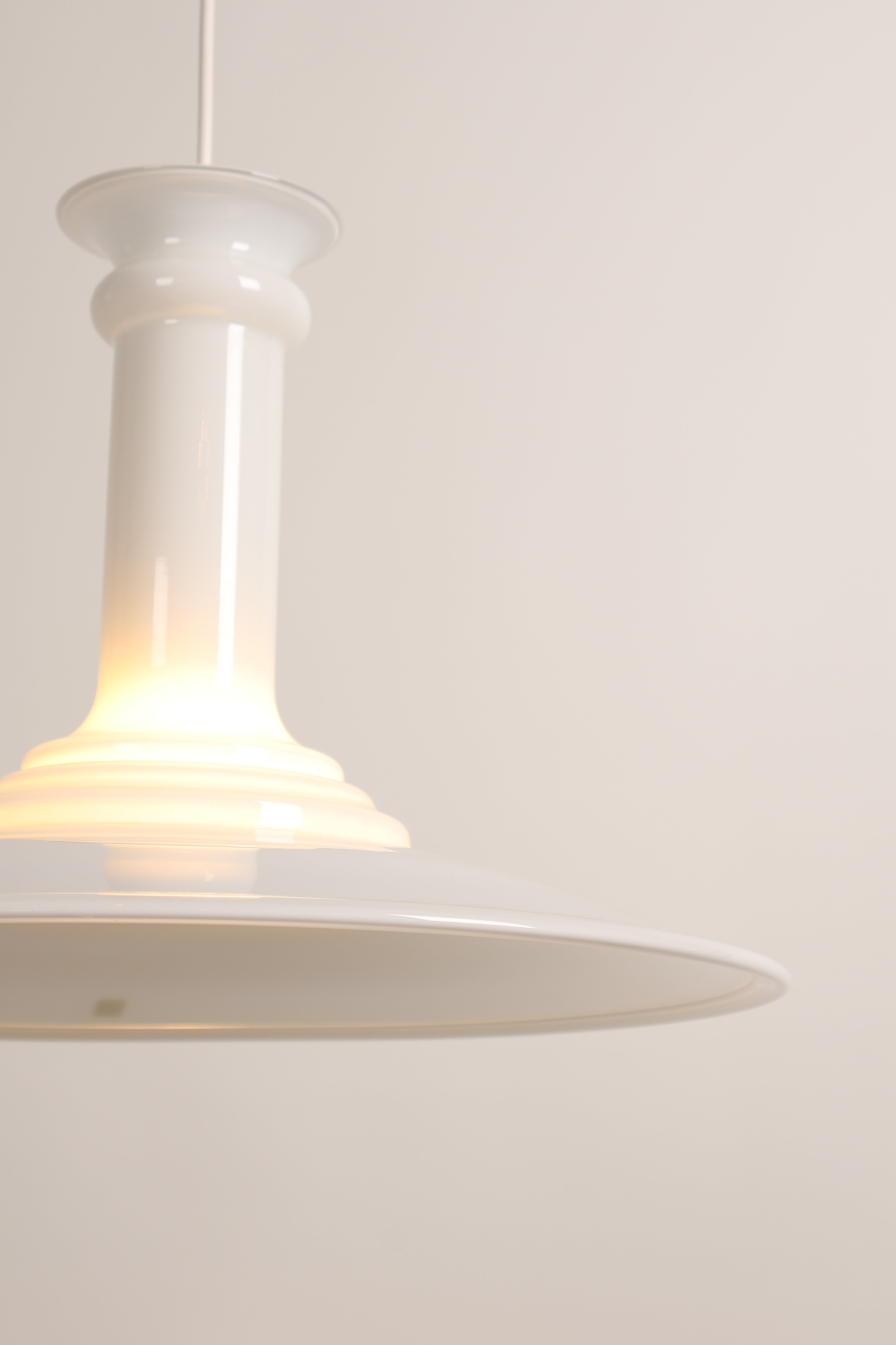 Deckenlampe aus den 70er-Jahren für Holmegaard. Hergestellt in Dänemark. Gefertigt aus Glas. Höhe 33 cm, Breite 46 cm, Tiefe 46 cm.