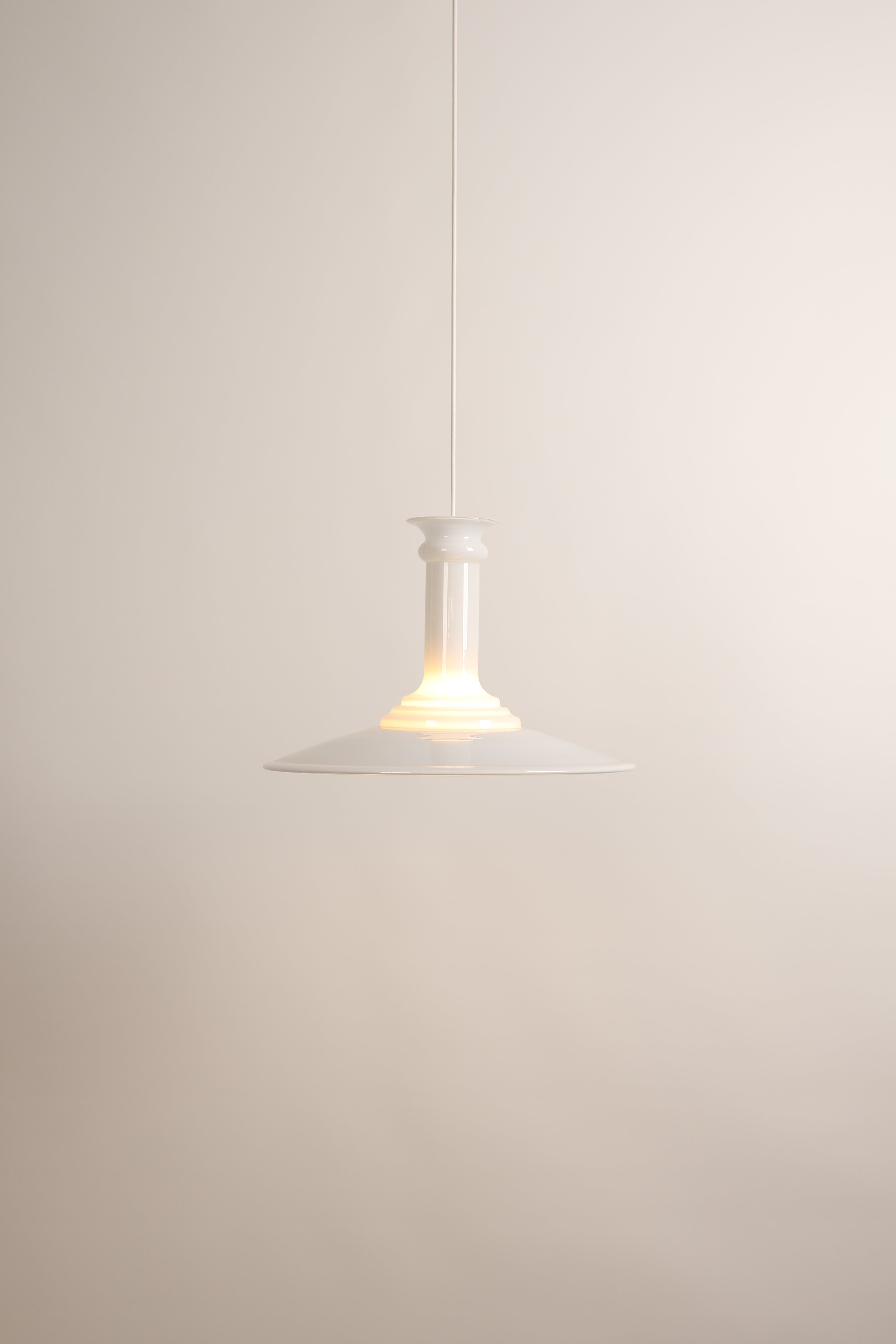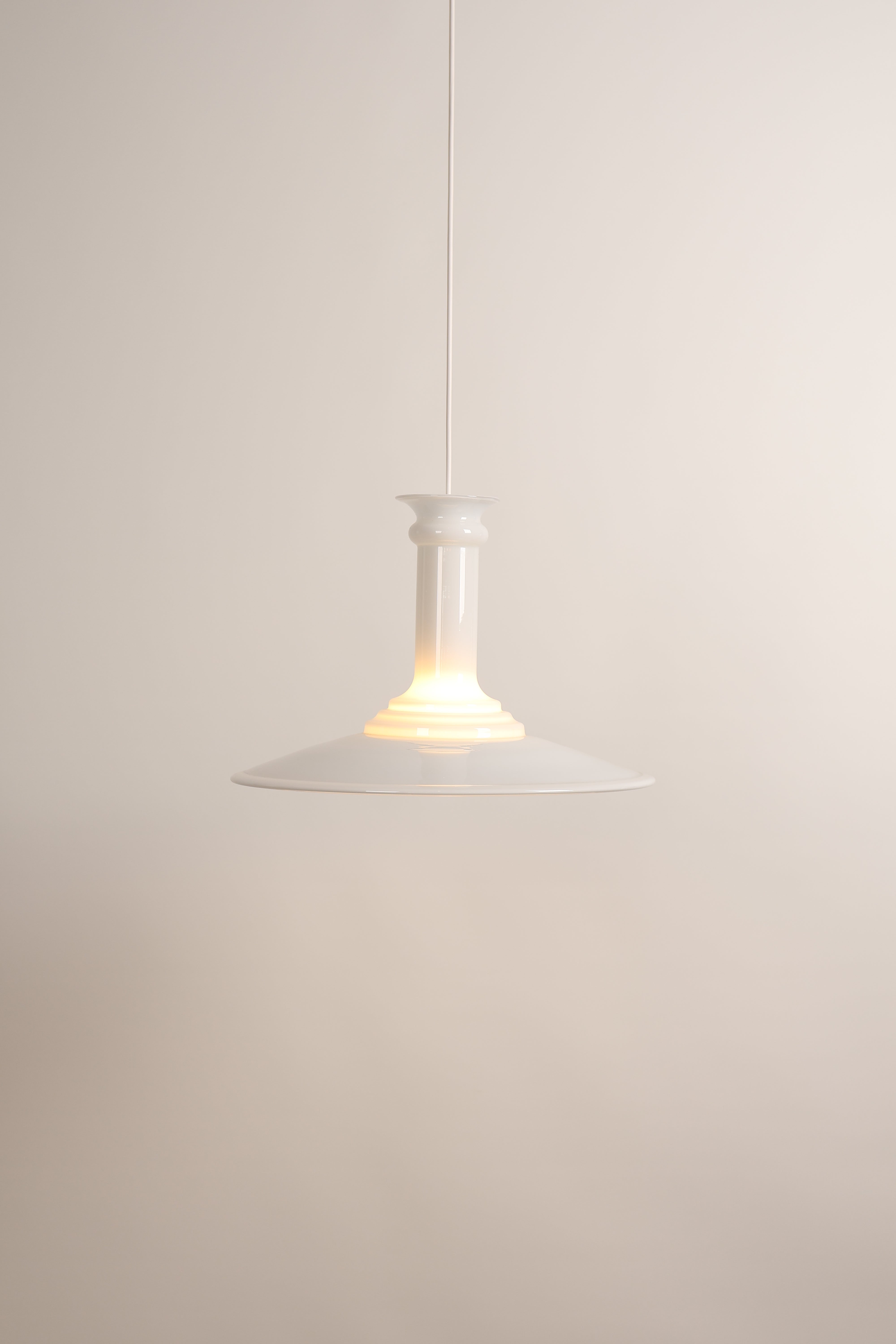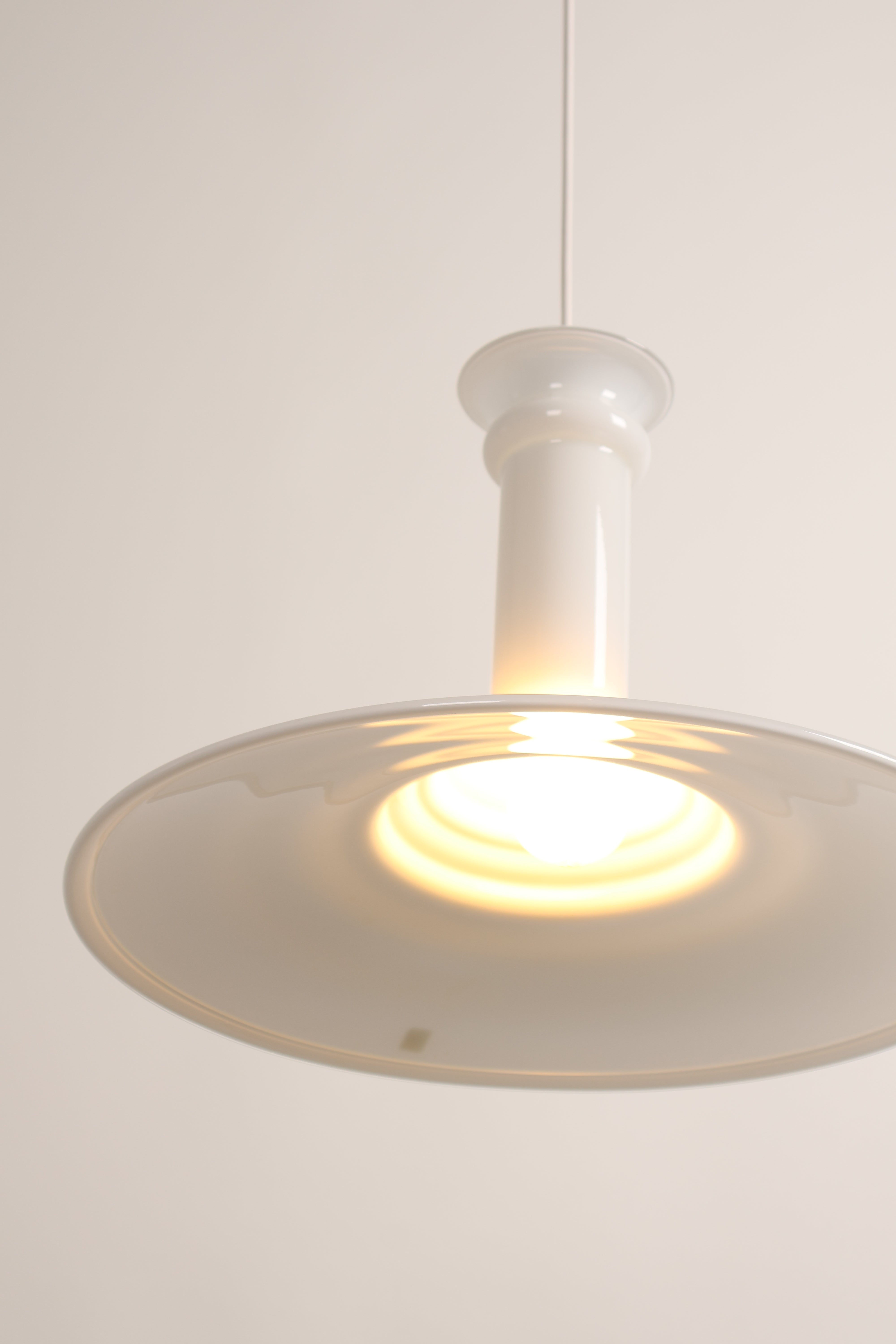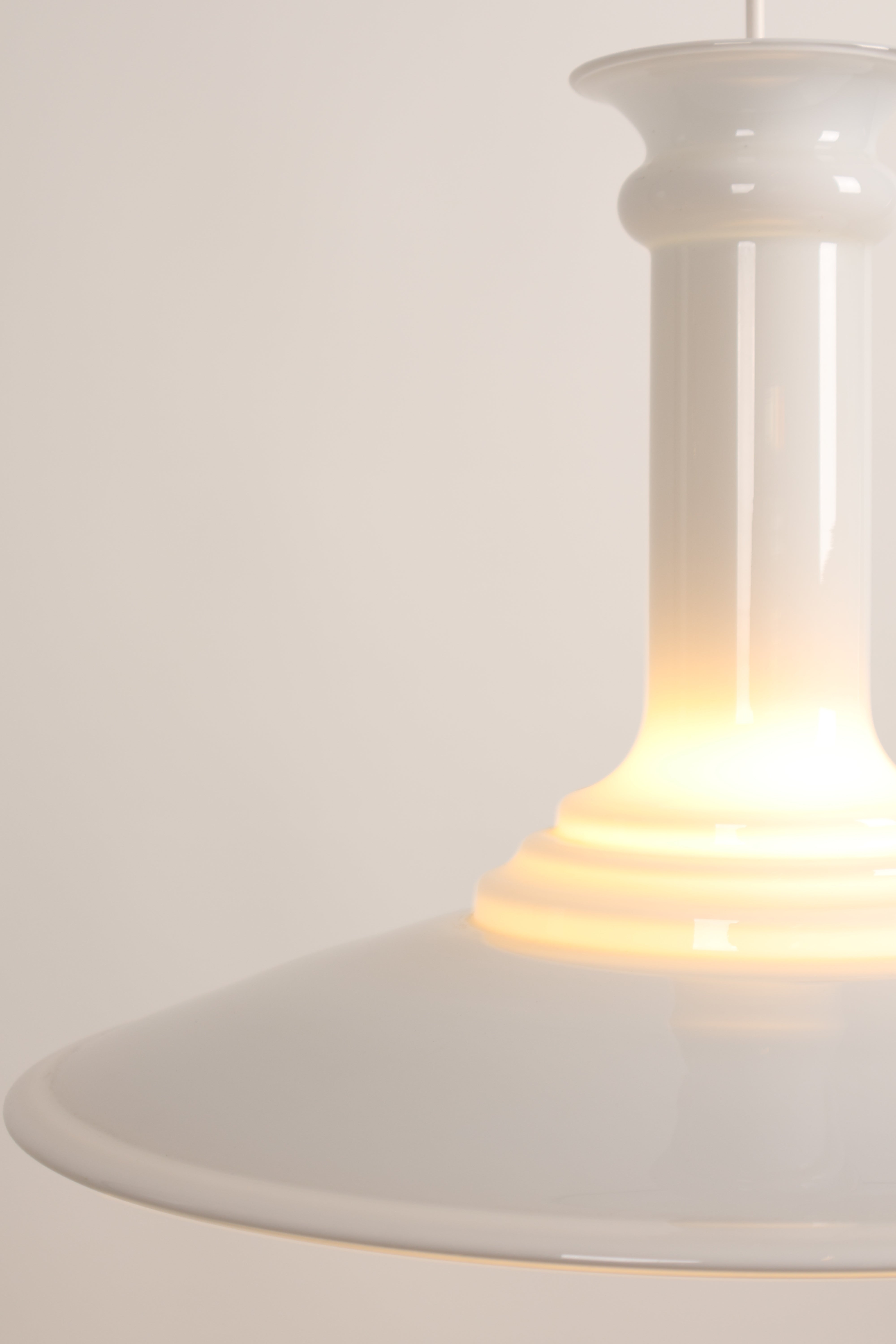Deckenlampe aus den 70er-Jahren für Holmegaard. Hergestellt in Dänemark. Gefertigt aus Glas. Höhe 33 cm, Breite 46 cm, Tiefe 46 cm.