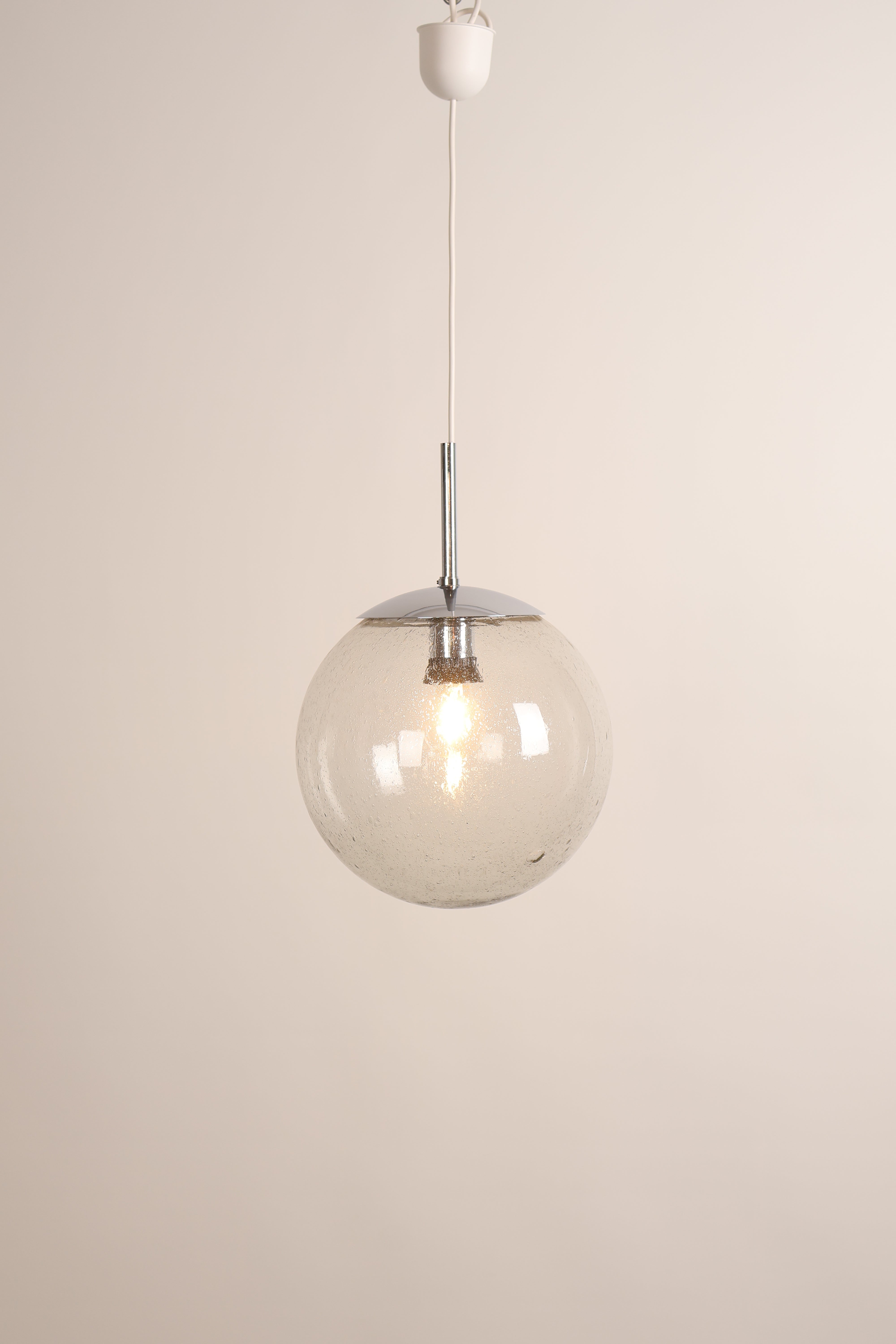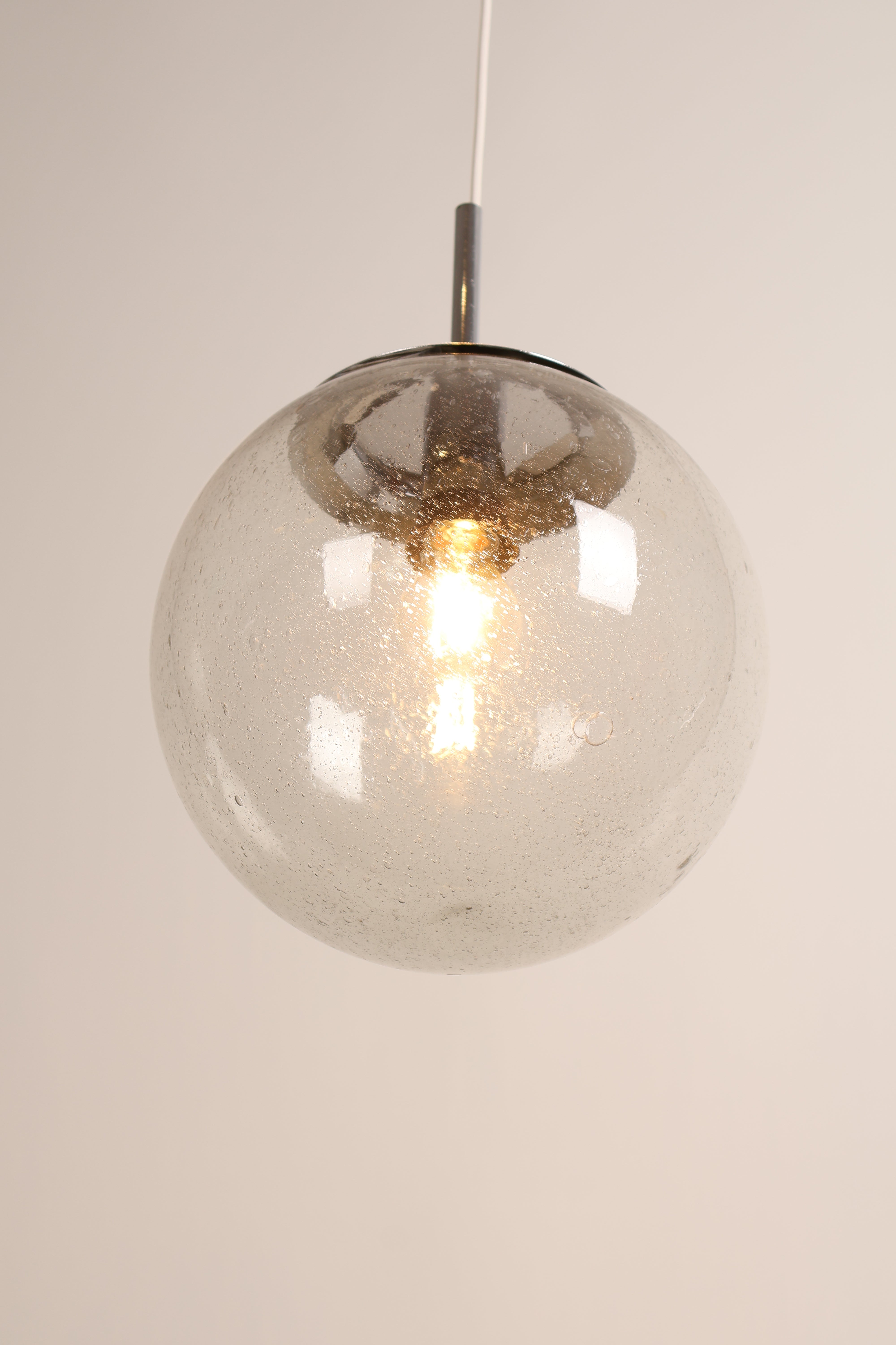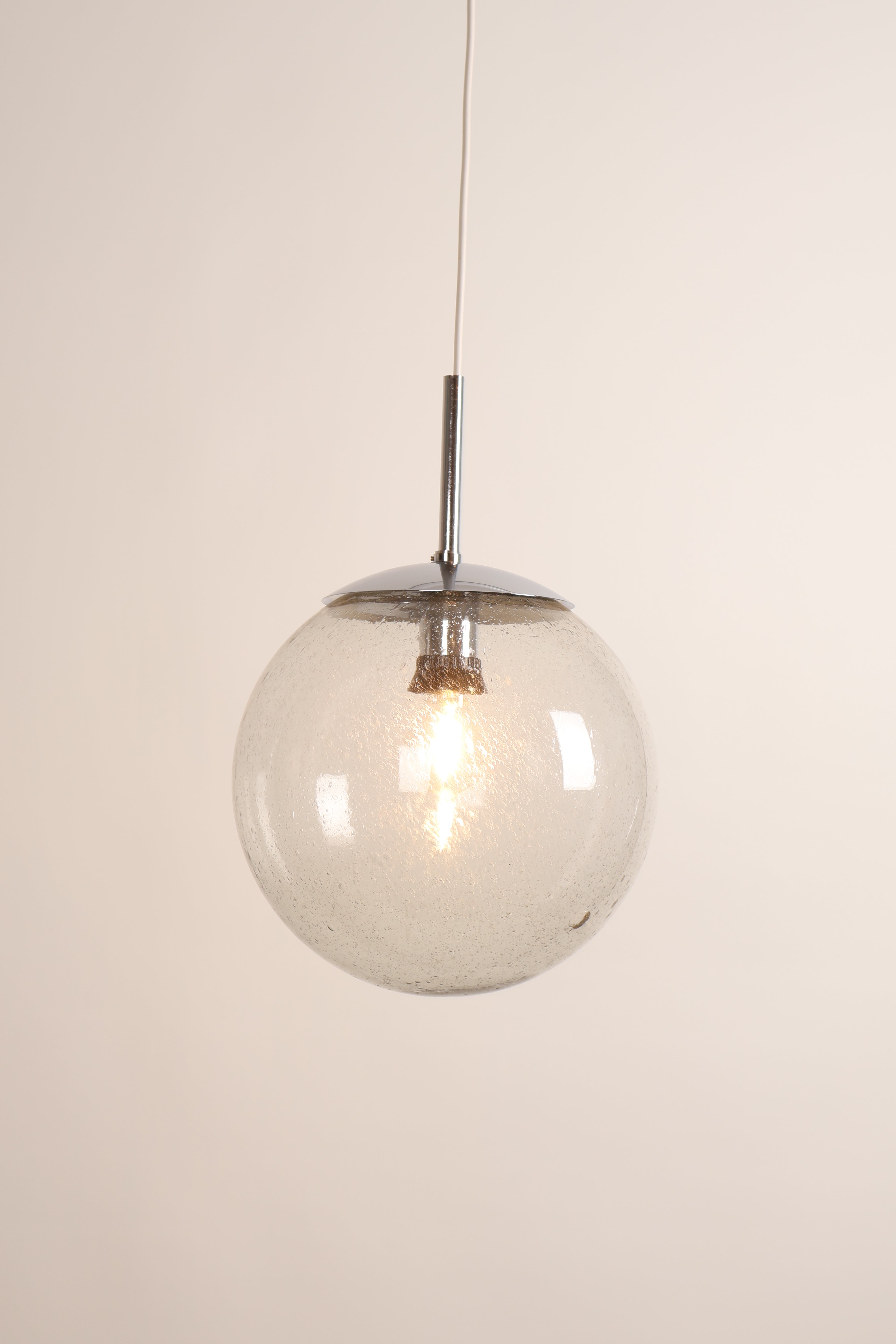 Deckenlampe aus den 70er-Jahren für Glashütte Limburg. Hergestellt in Deutschland. Gefertigt aus Glas. Höhe 40 cm, Breite 30 cm, Tiefe 30 cm.