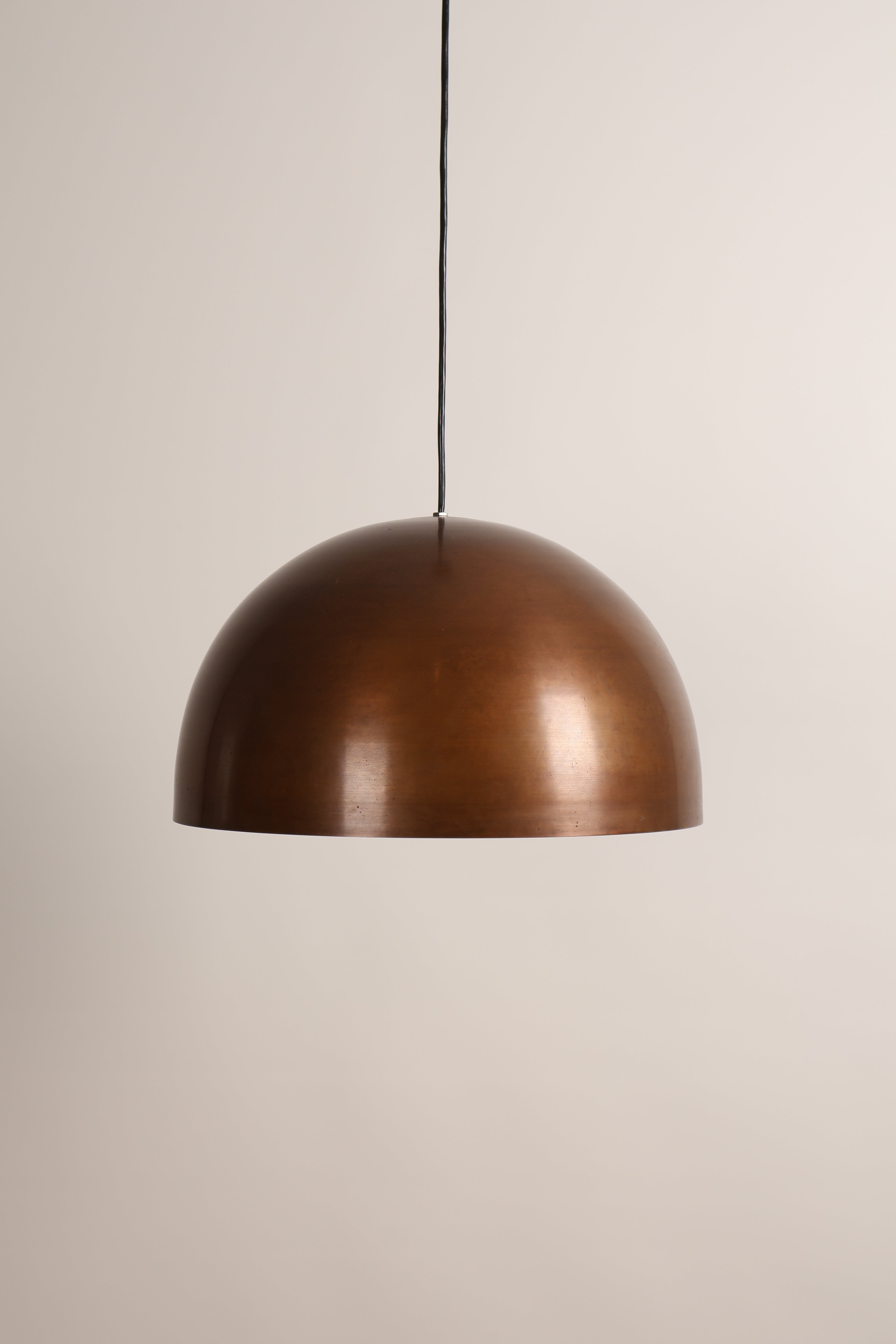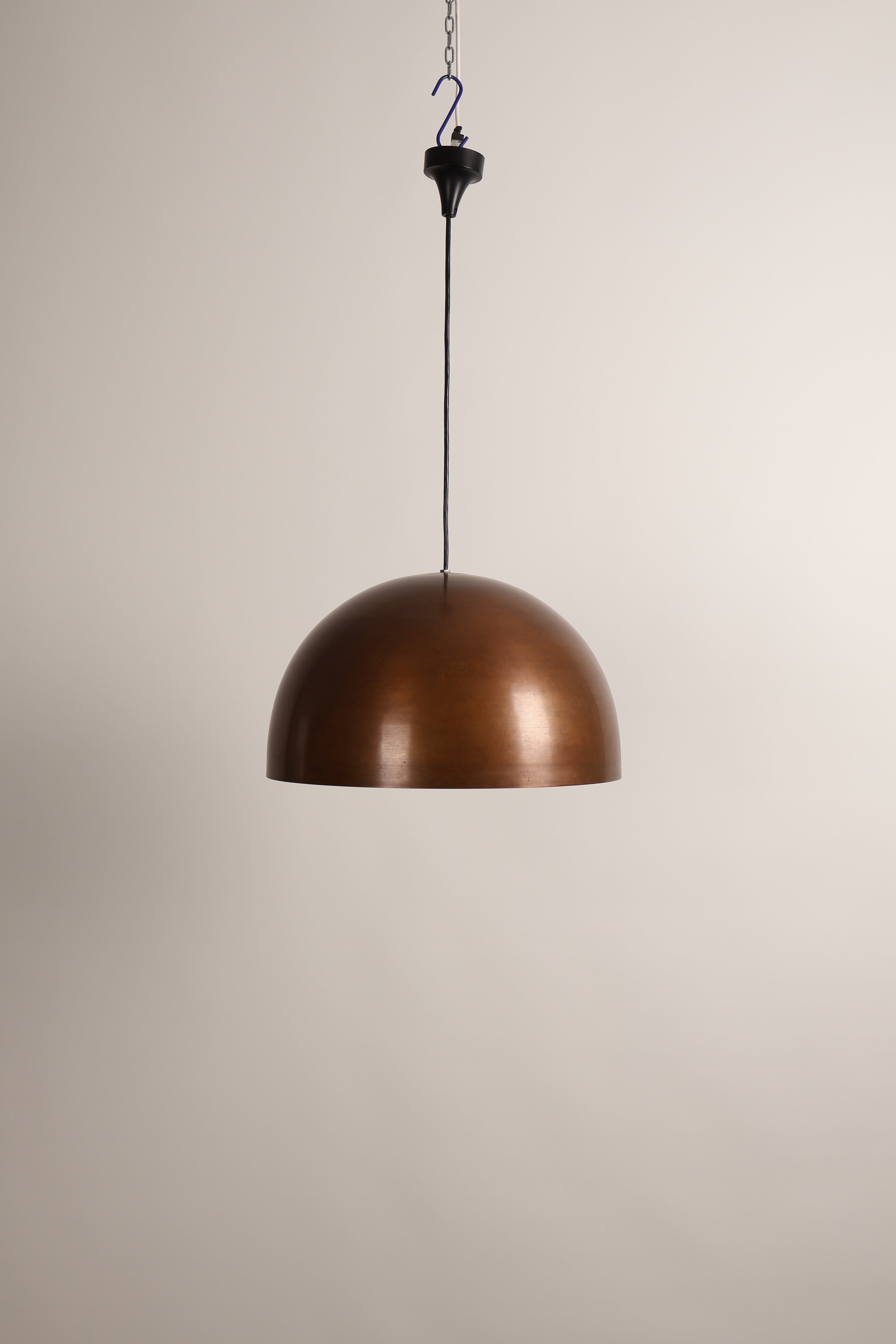 Deckenlampe aus den 70er-Jahren für Staff. Hergestellt in Deutschland. Gefertigt aus Kupfer, Glas. Höhe 26 cm, Breite 45 cm, Tiefe 45 cm.