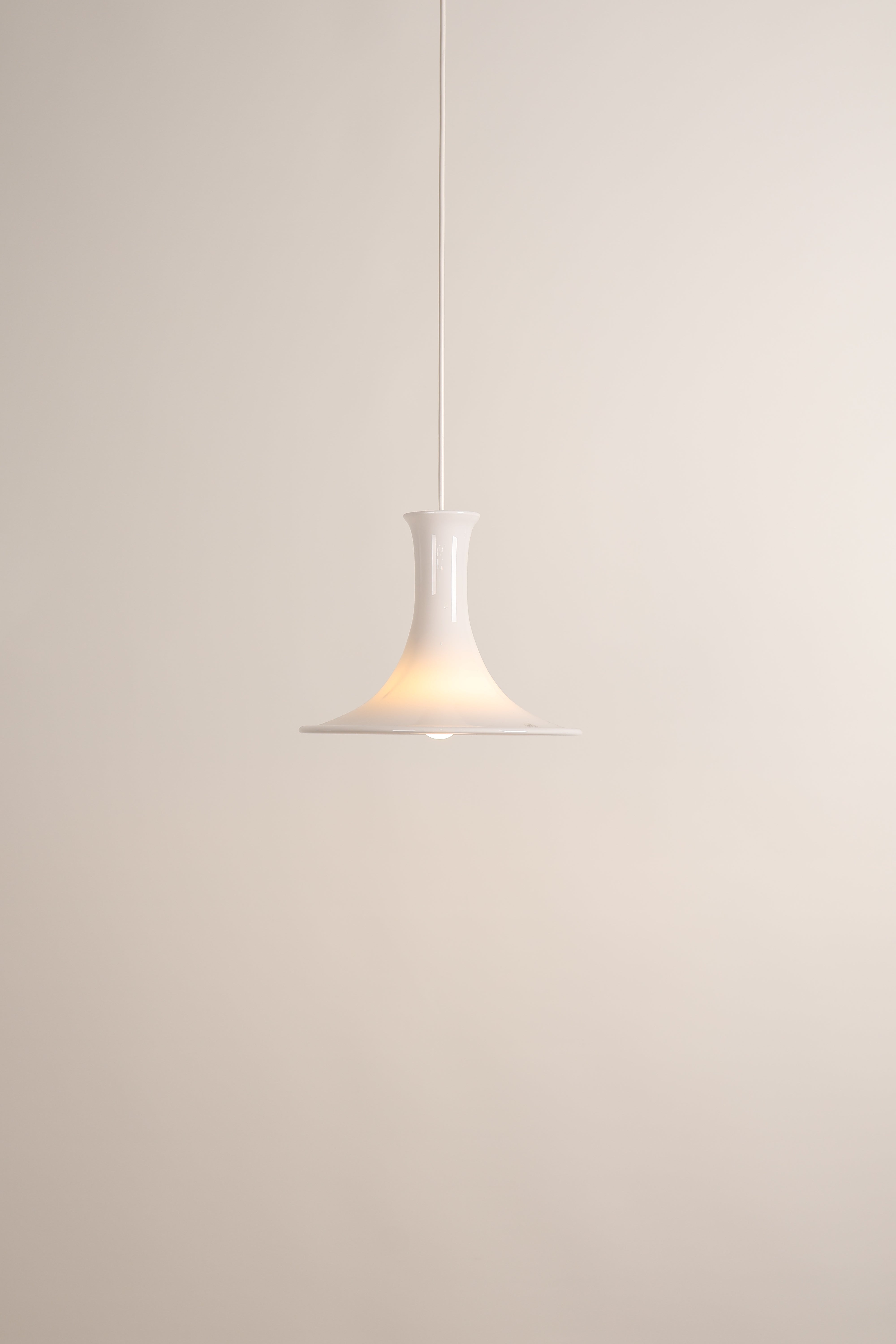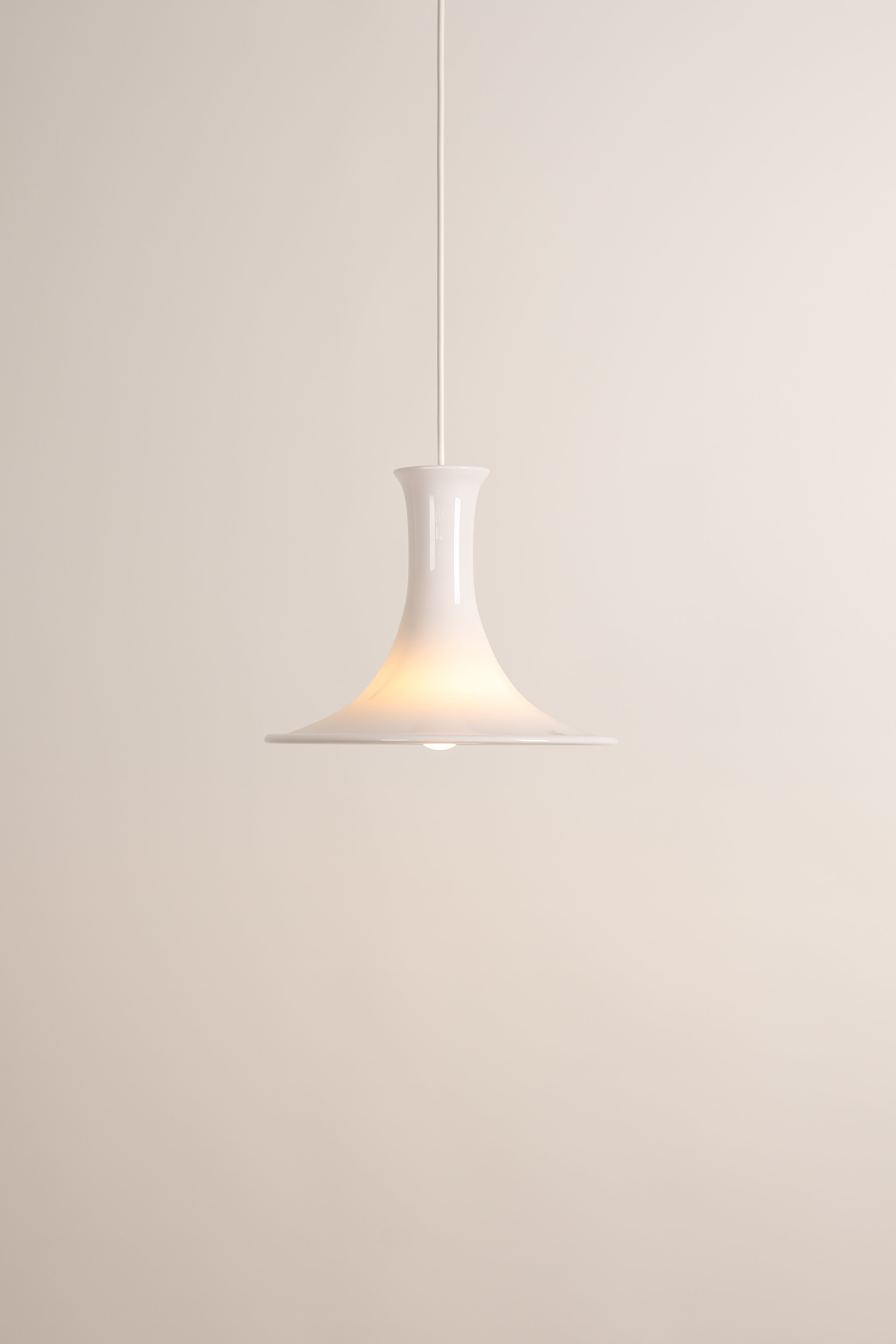 Deckenlampe „Mandarin“ aus den 70er-Jahren für Holmegaard. Hergestellt in Deutschland. Gefertigt aus Glas. Höhe 24 cm, Breite 30 cm, Tiefe 30 cm.