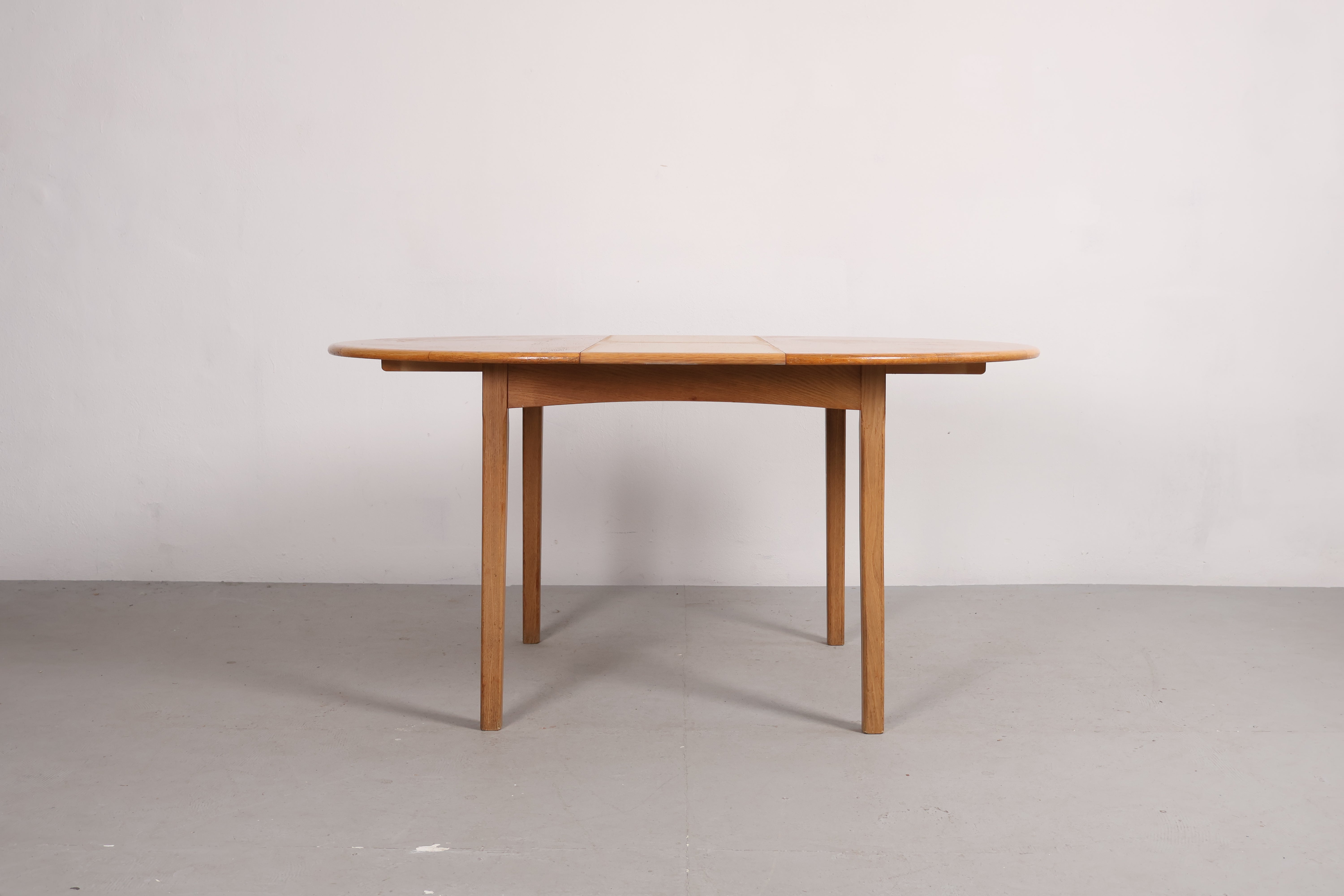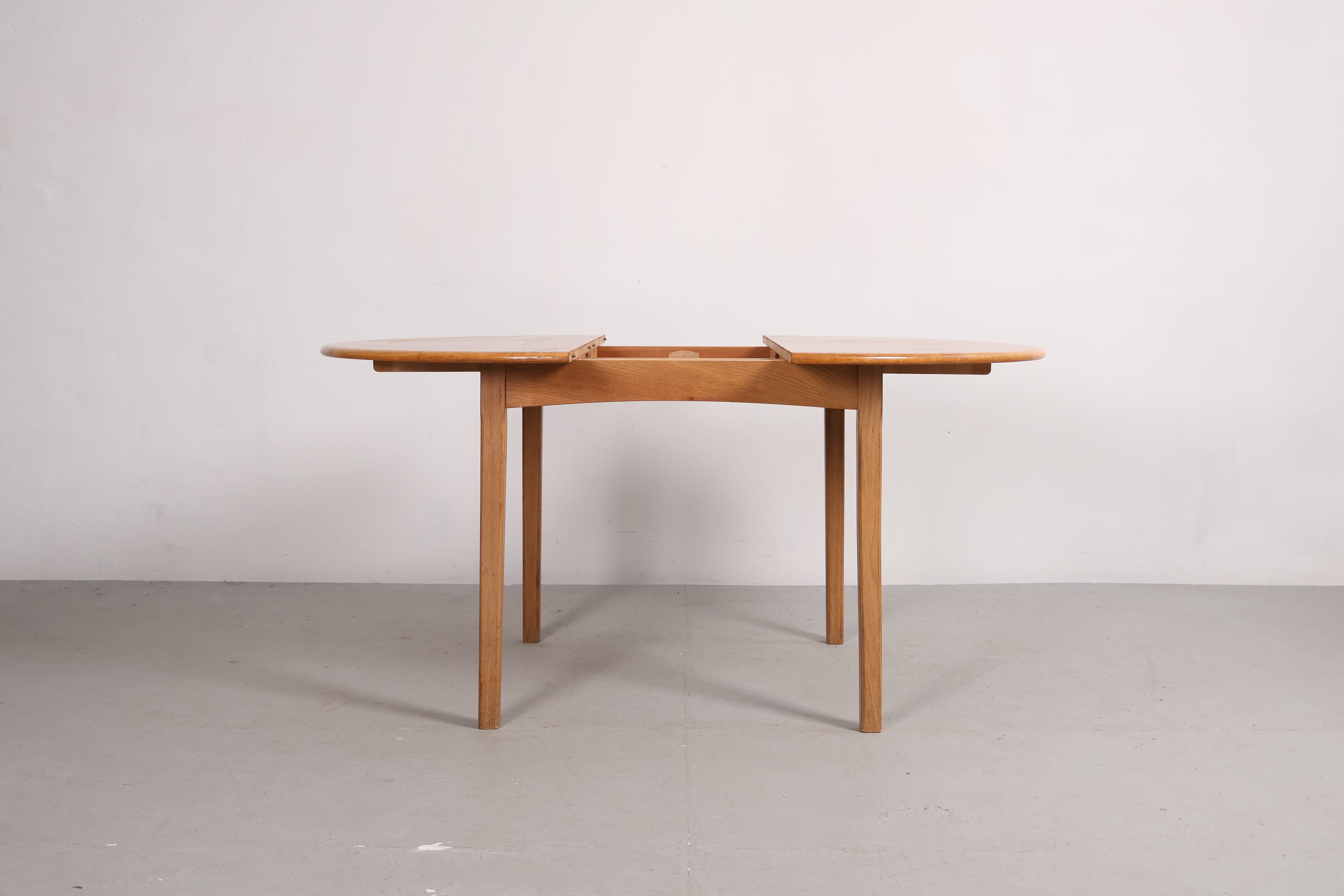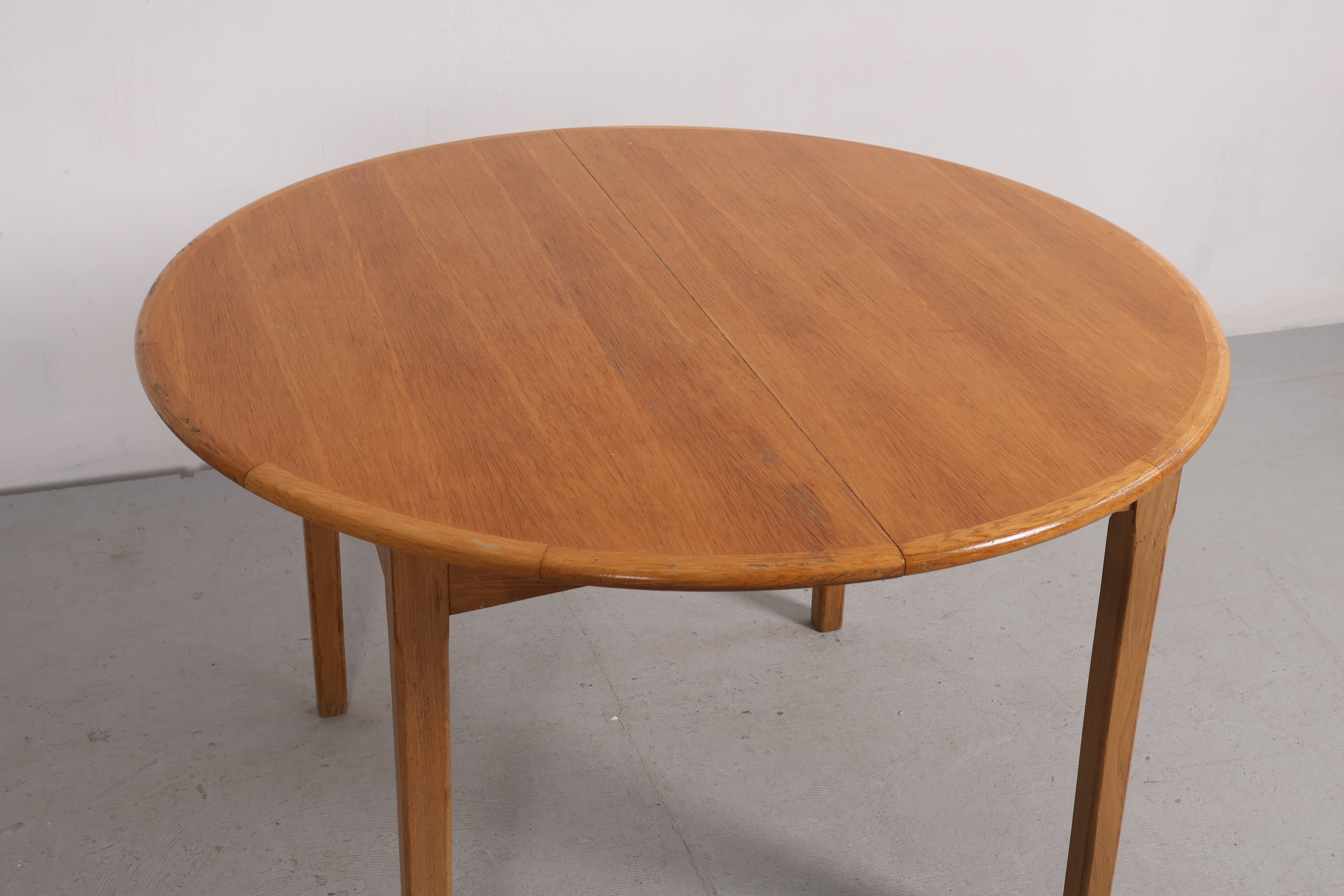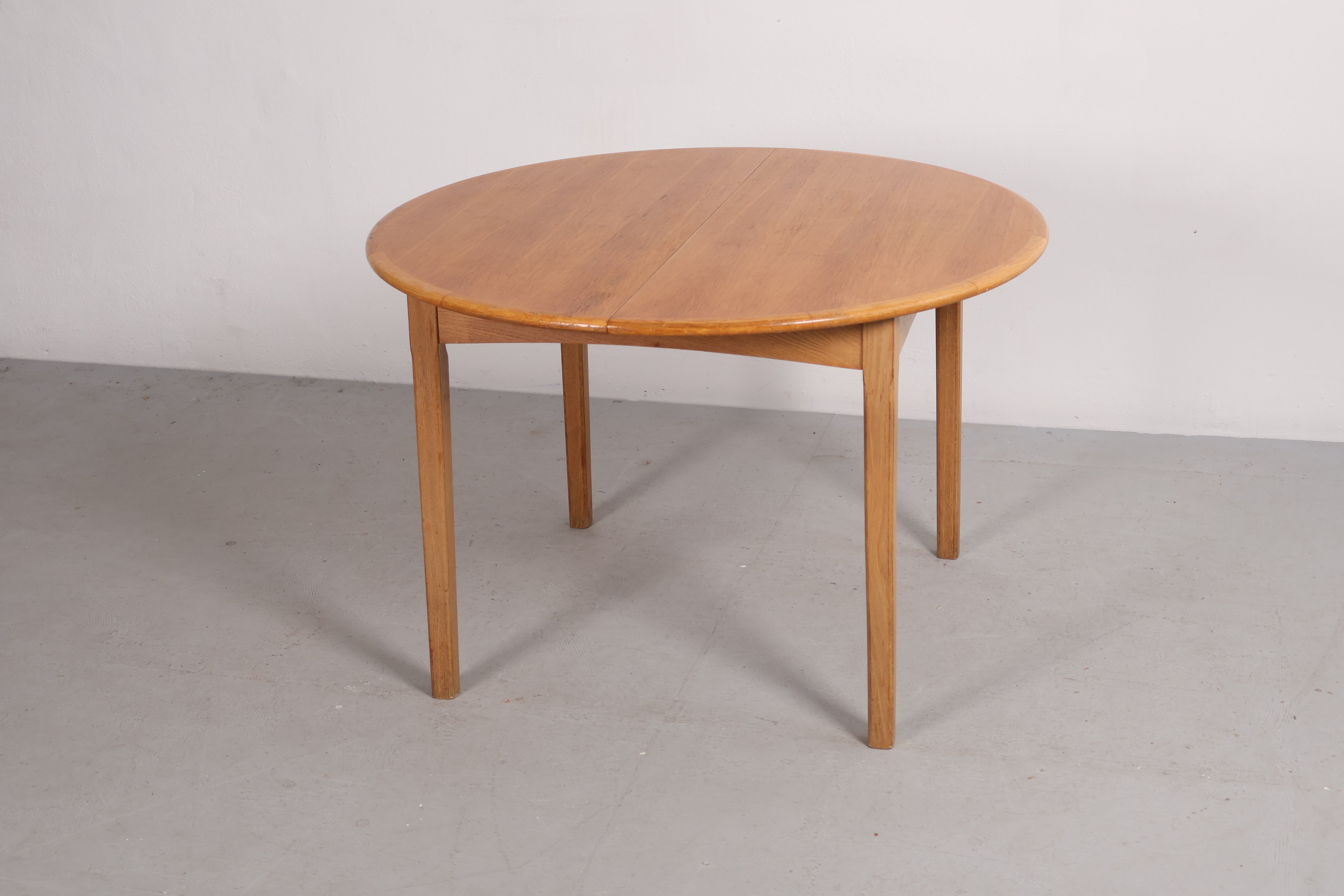Esstisch aus den 60er-Jahren für HS Møbler. Hergestellt in Dänemark. Gefertigt aus Eiche. Höhe 72 cm, Breite 110 cm, Tiefe 110 cm.