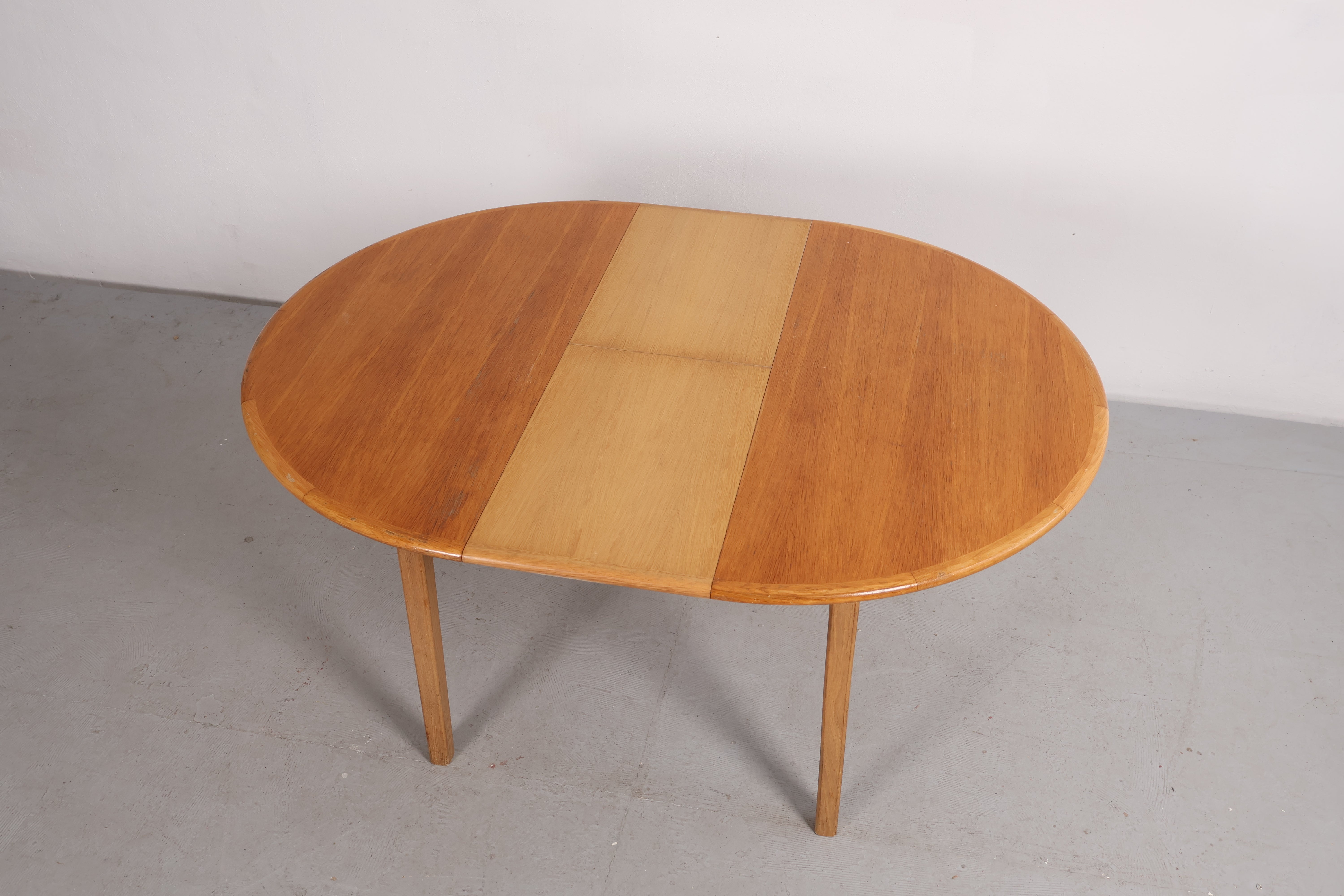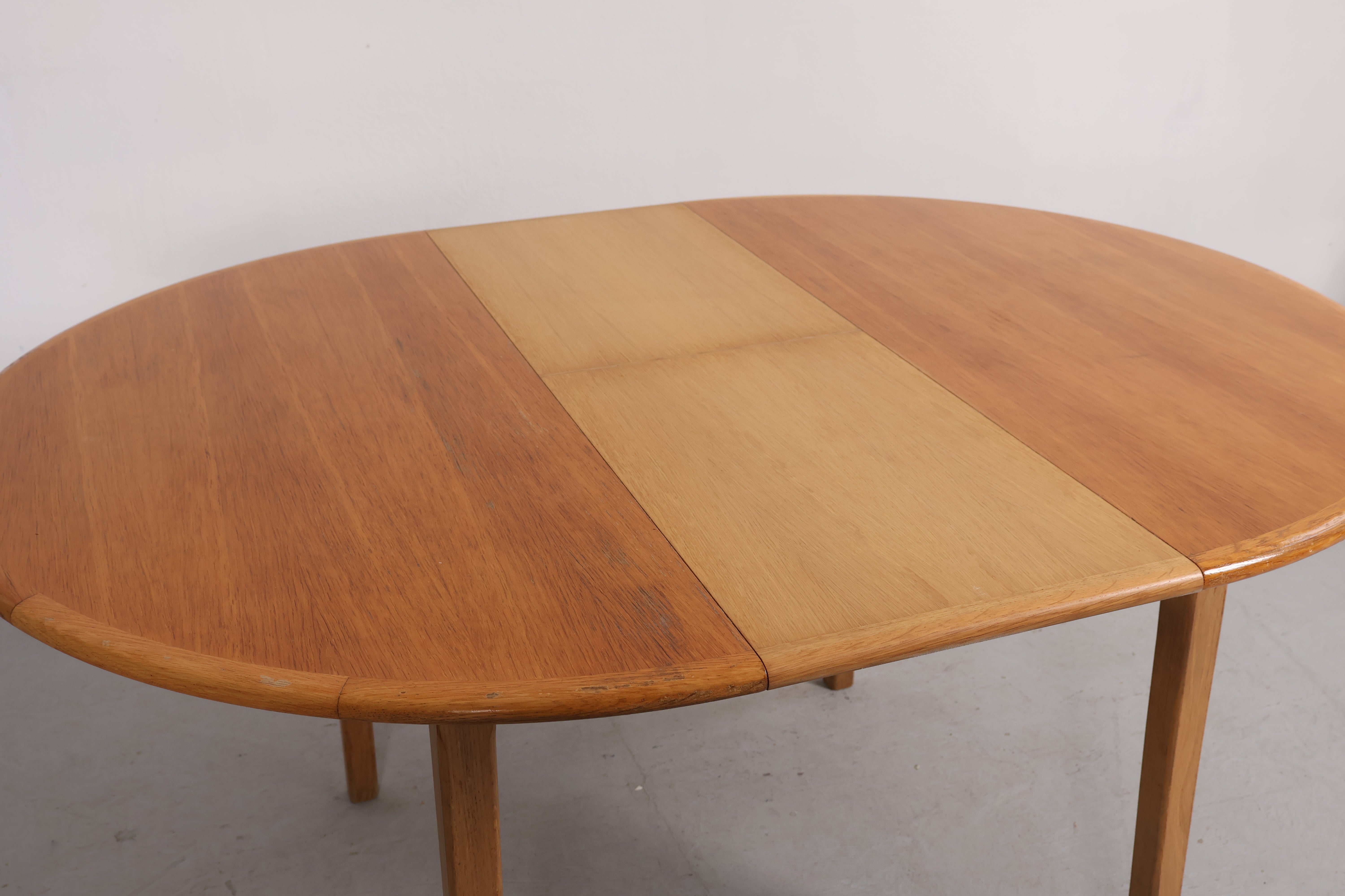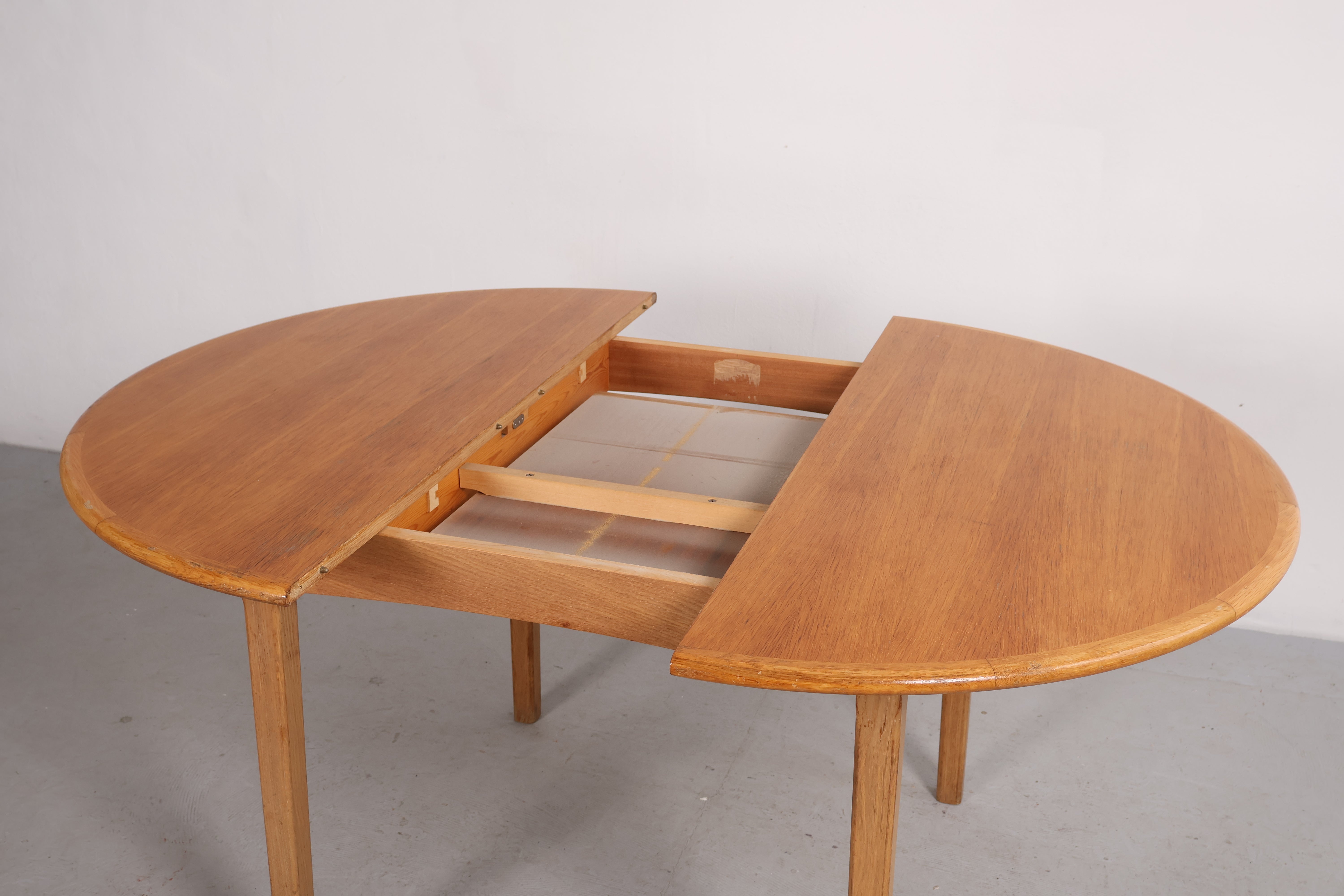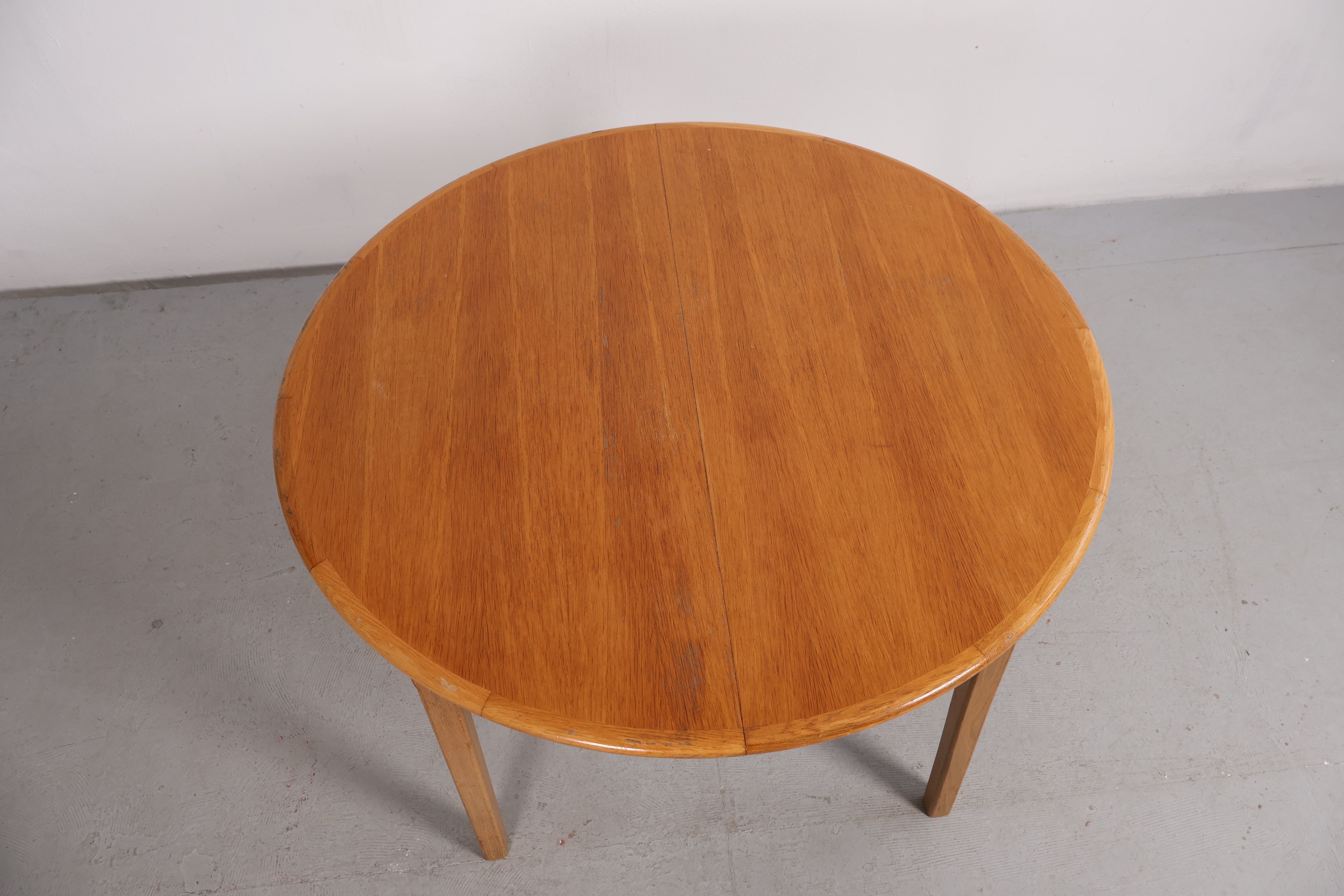 Esstisch aus den 60er-Jahren für HS Møbler. Hergestellt in Dänemark. Gefertigt aus Eiche. Höhe 72 cm, Breite 110 cm, Tiefe 110 cm.