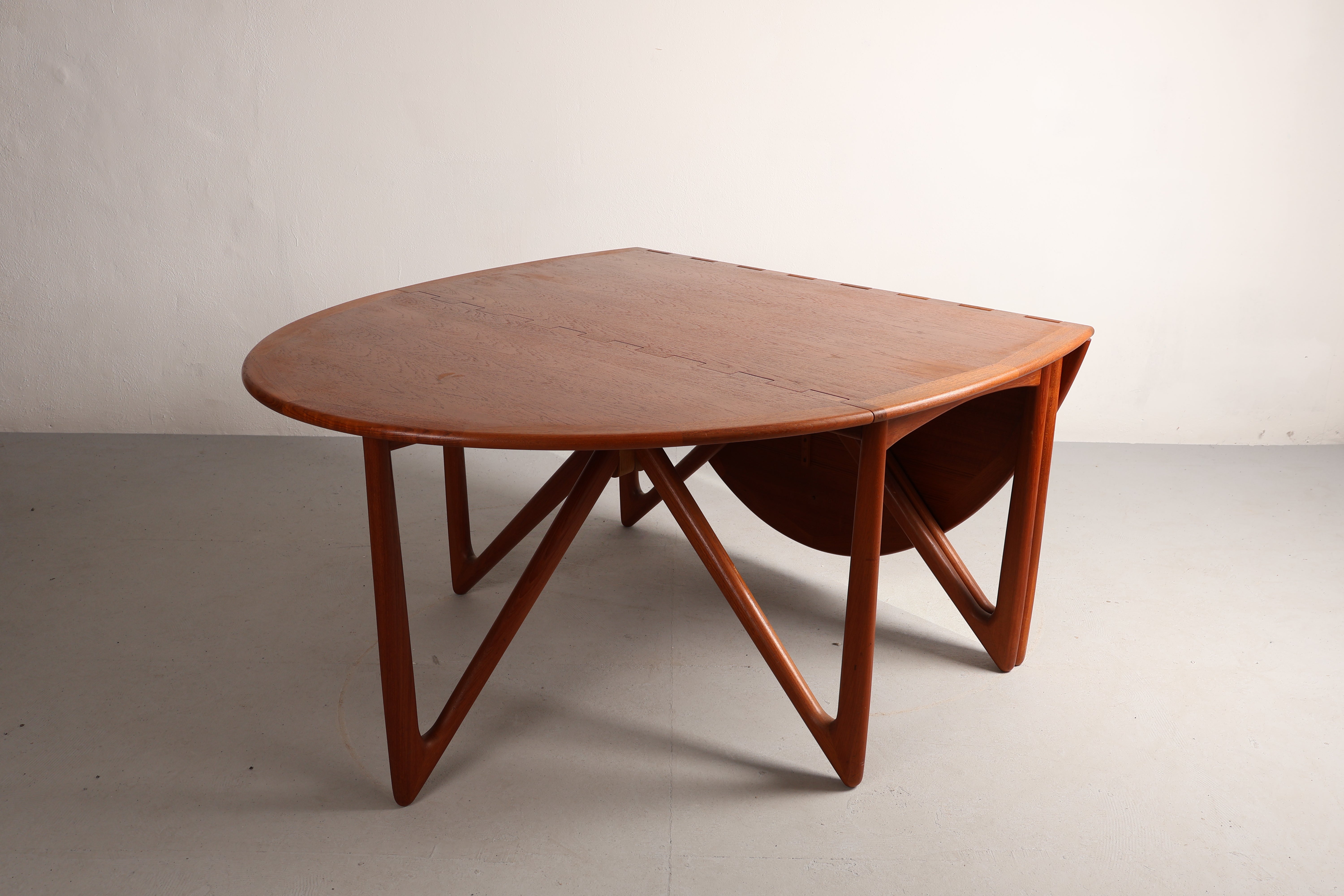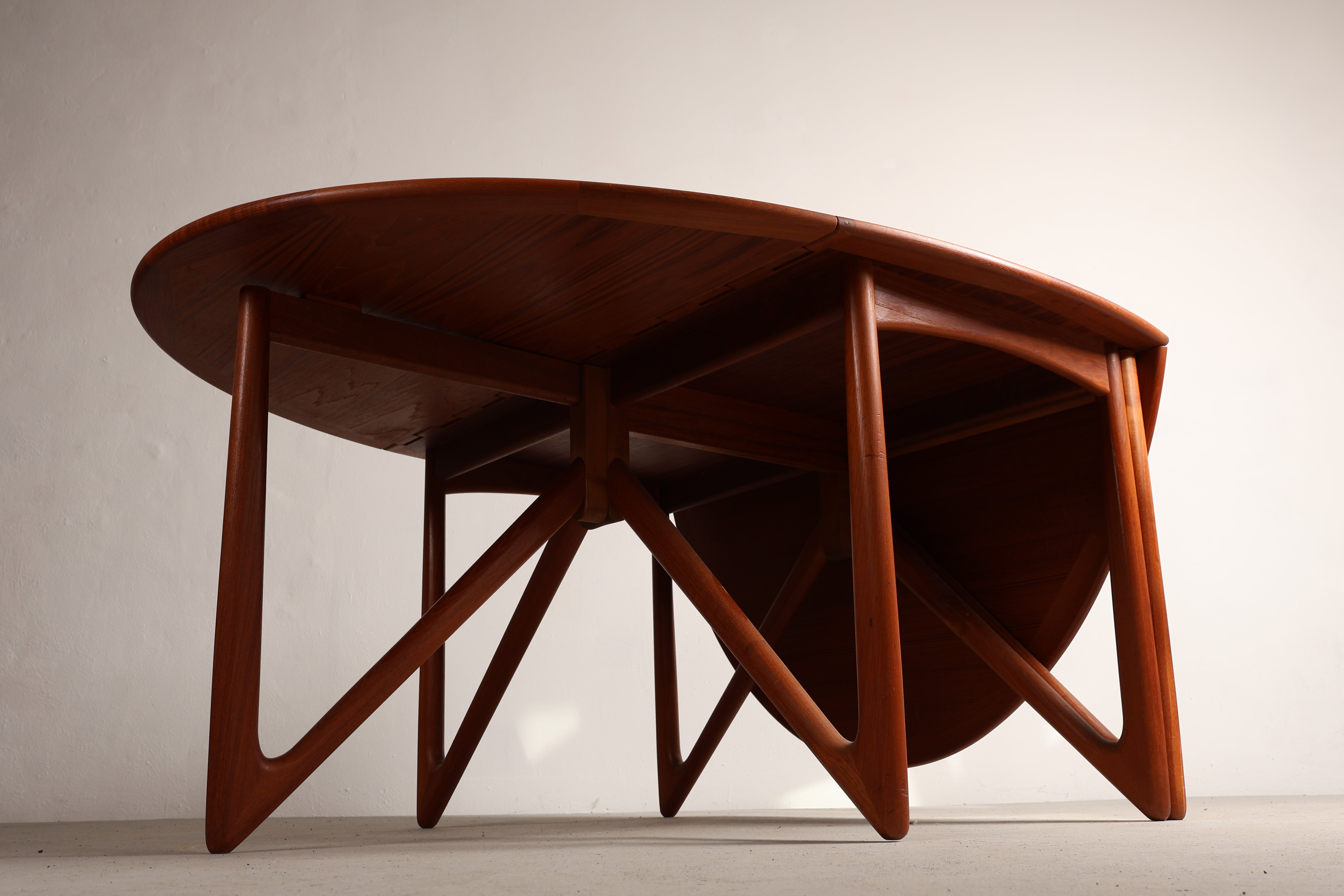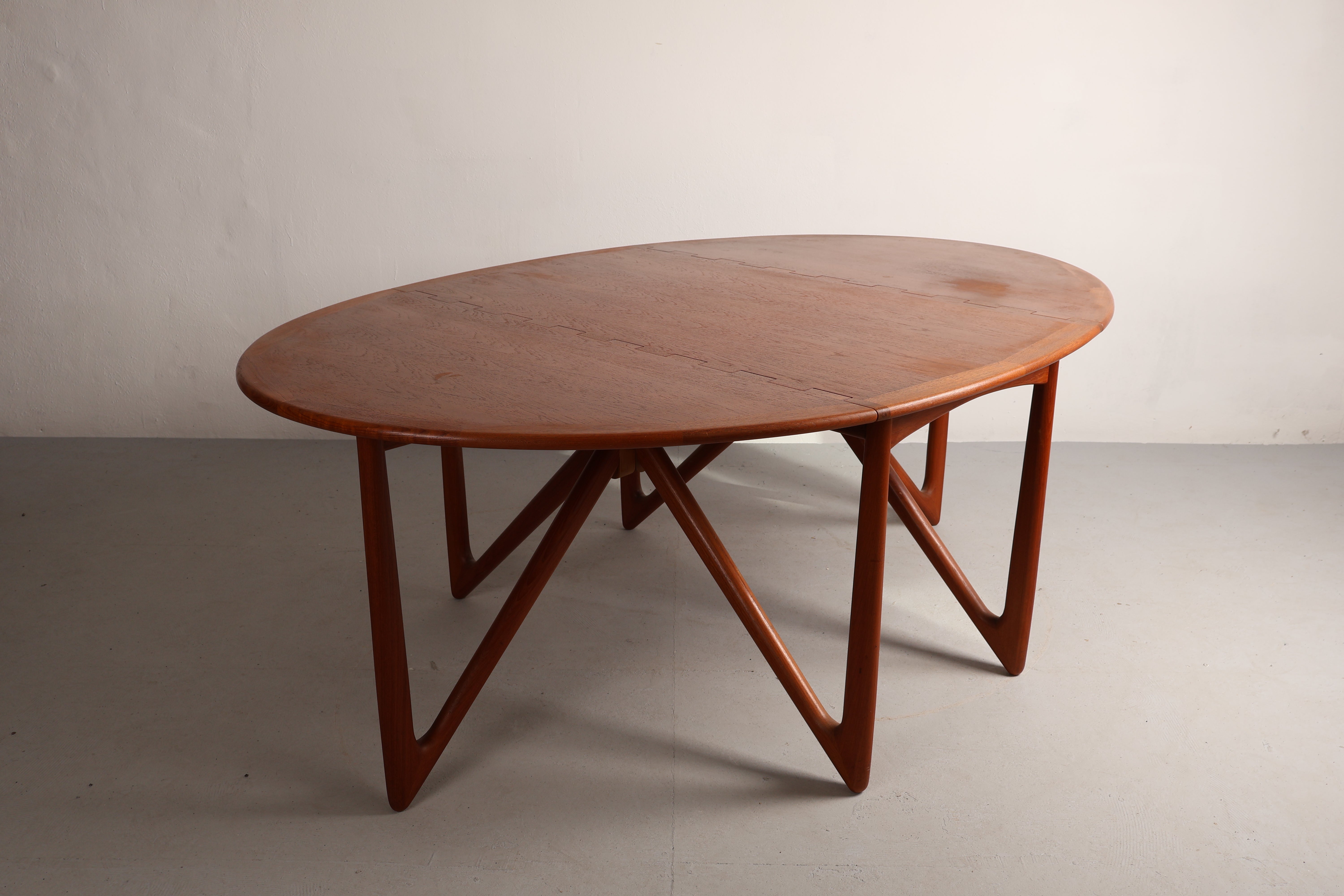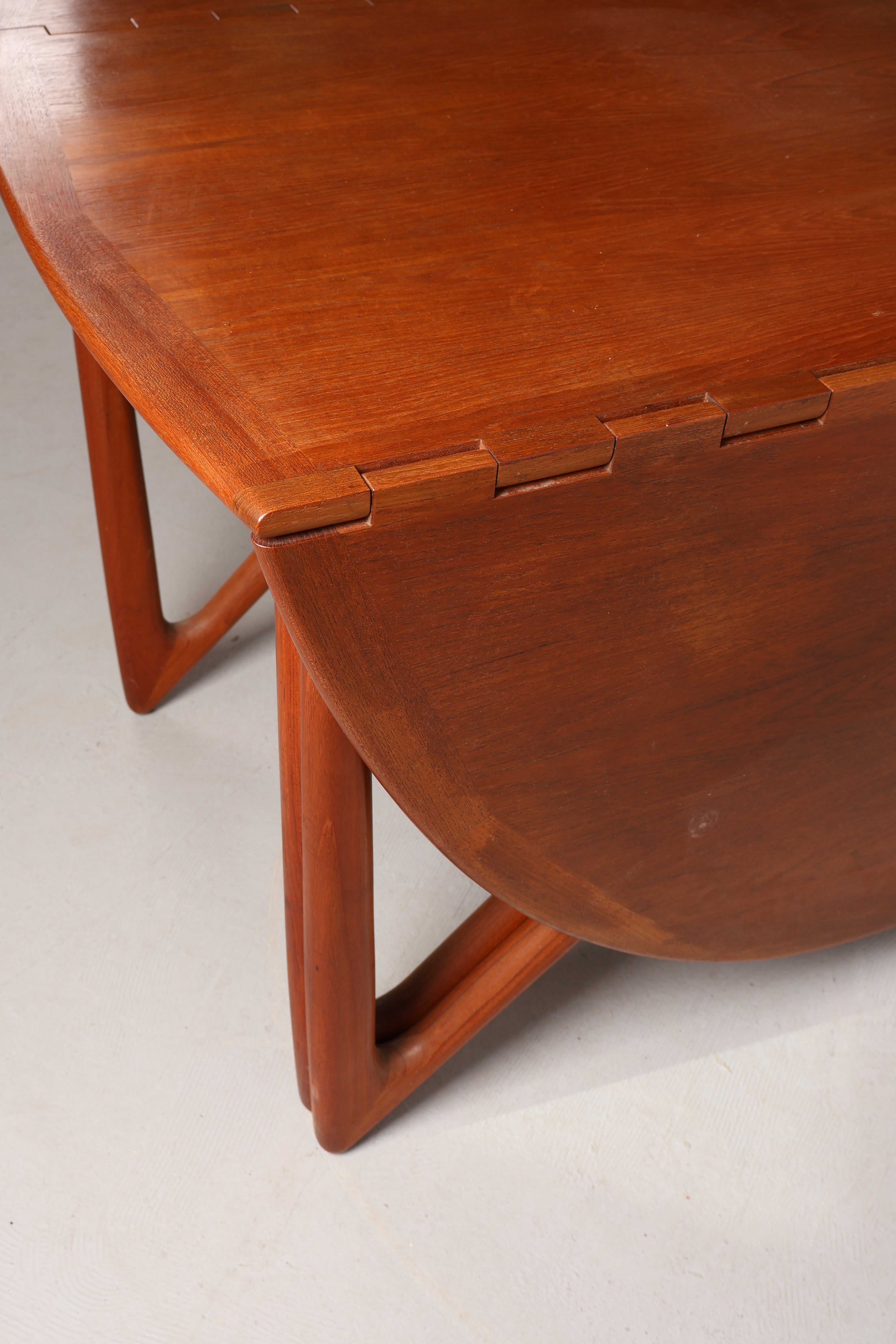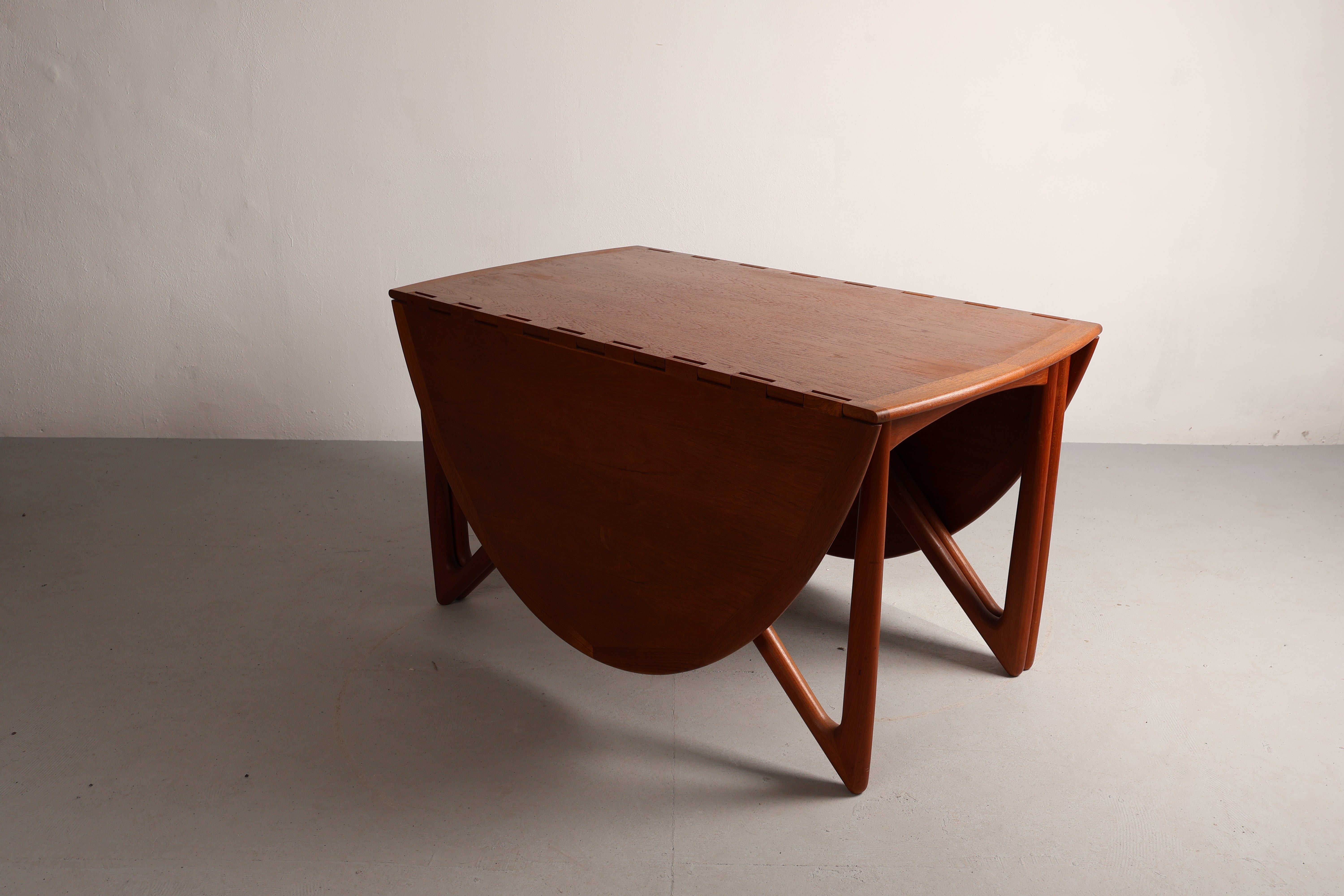 Esstisch „Gateleg“ aus den 60er-Jahren von Kurt Østervig. Hergestellt in Dänemark. Gefertigt aus Teak. Höhe 73 cm, Breite 130 cm, Tiefe 72 cm.