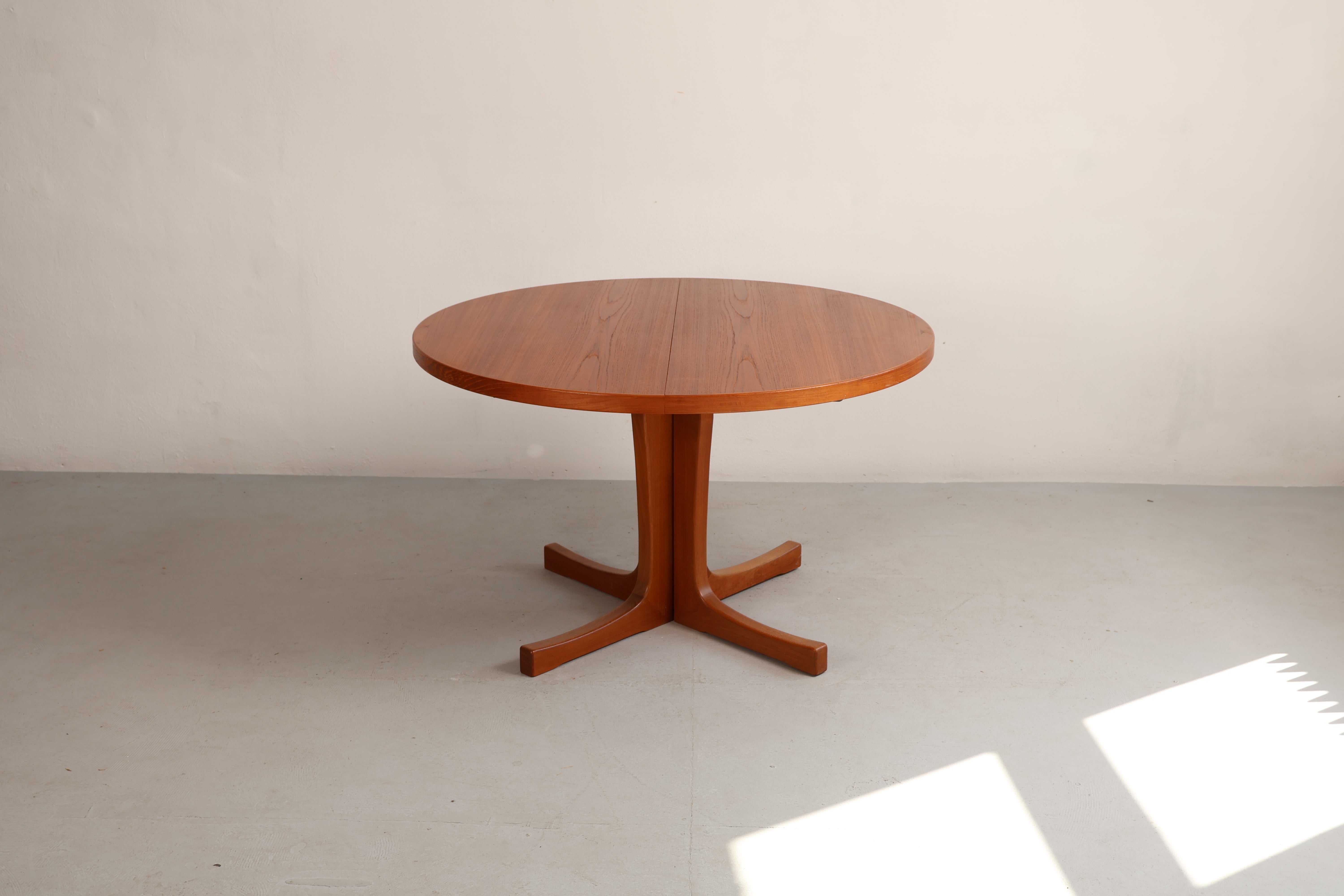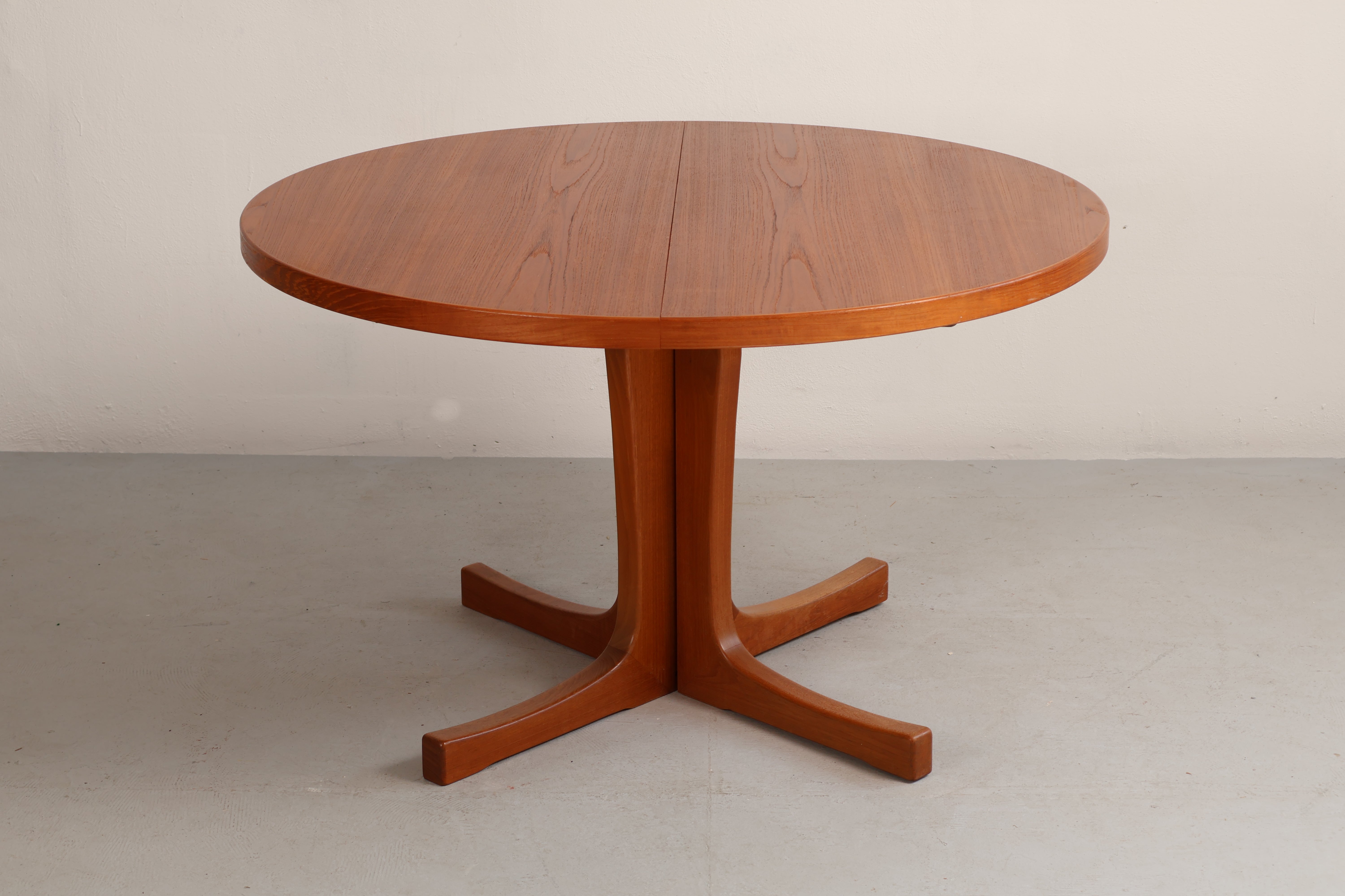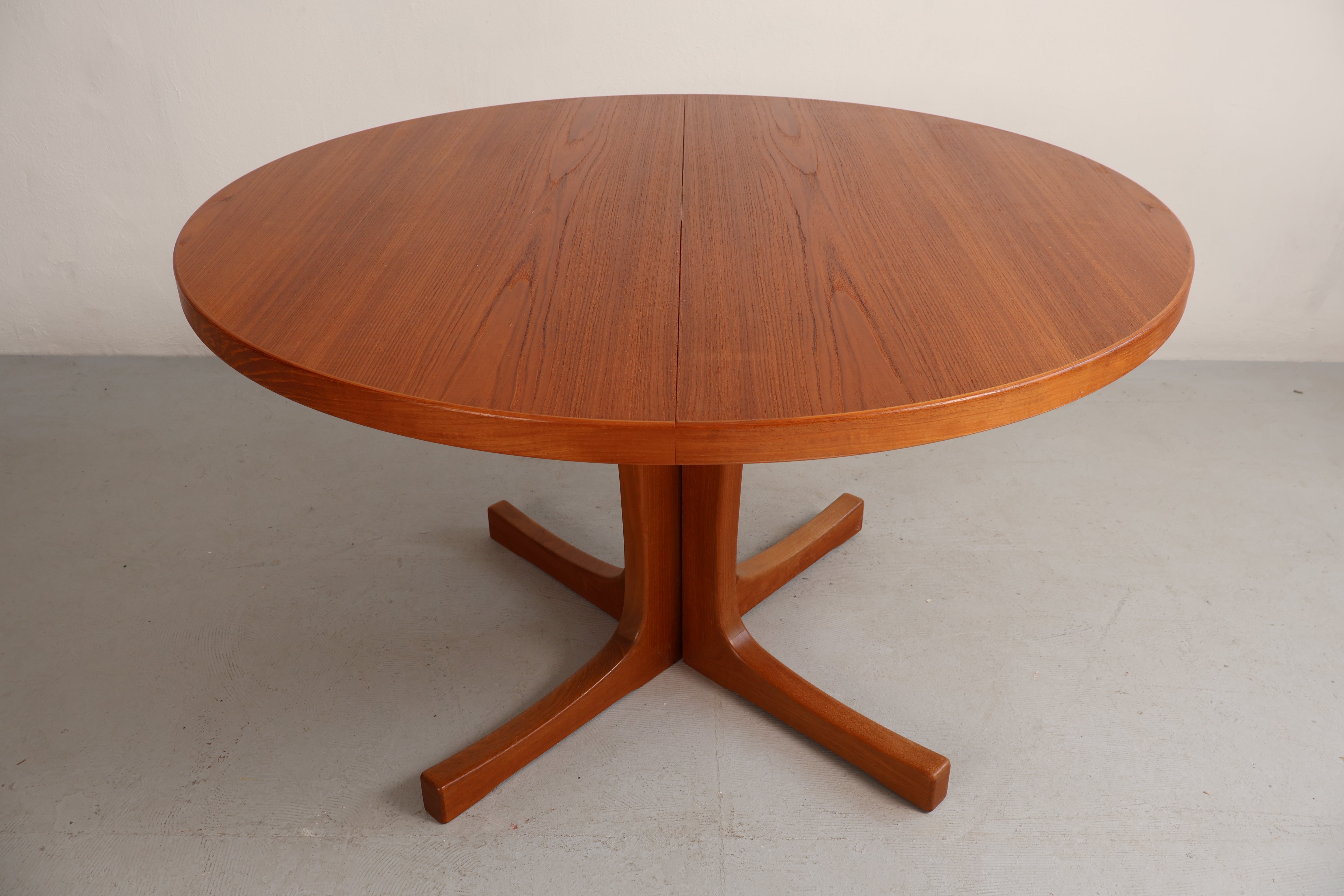 Esstisch aus den 60er-Jahren. Hergestellt in Dänemark. Gefertigt aus Teak. Höhe 73 cm, Breite 120 cm, Tiefe 120 cm.