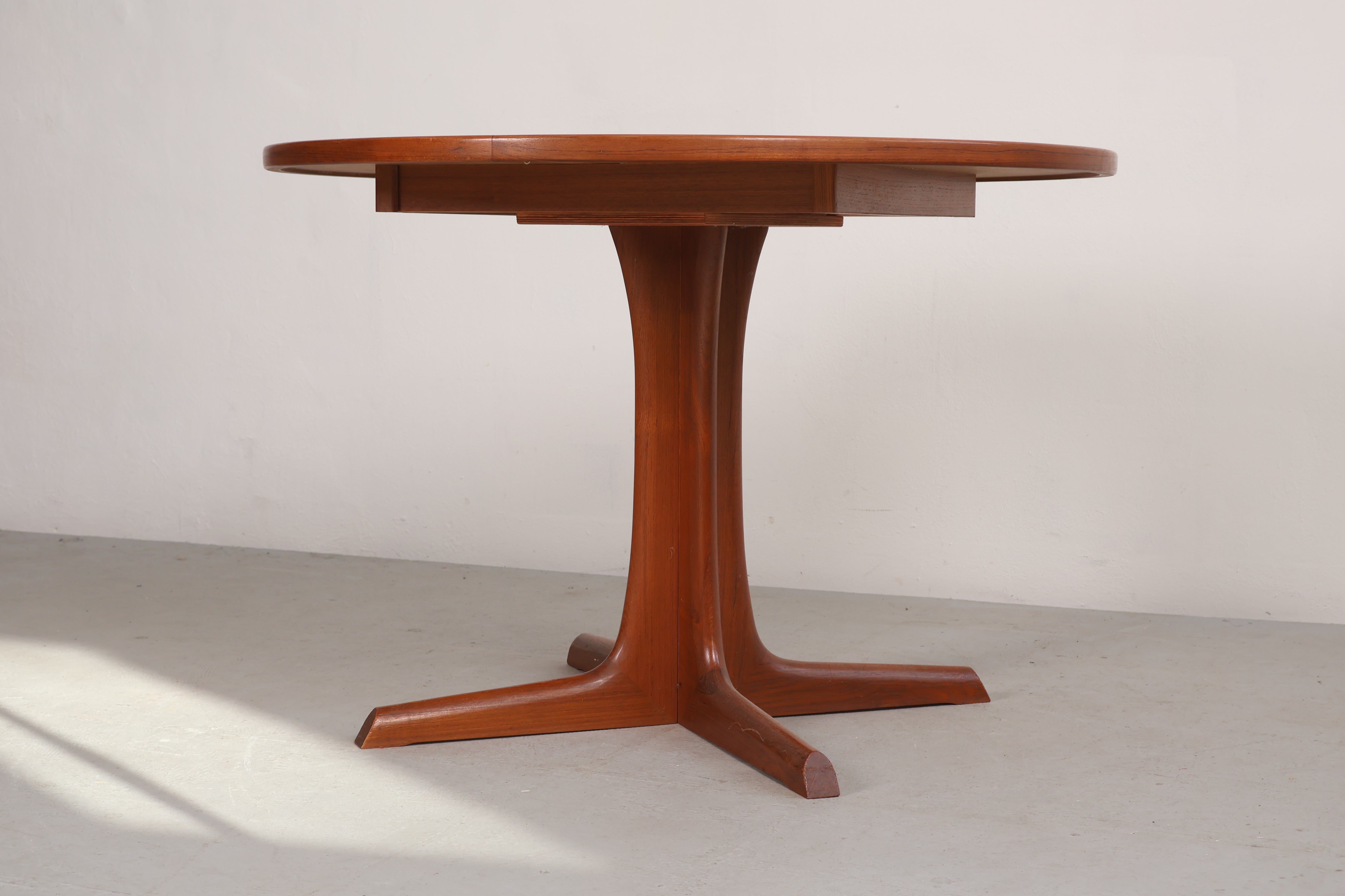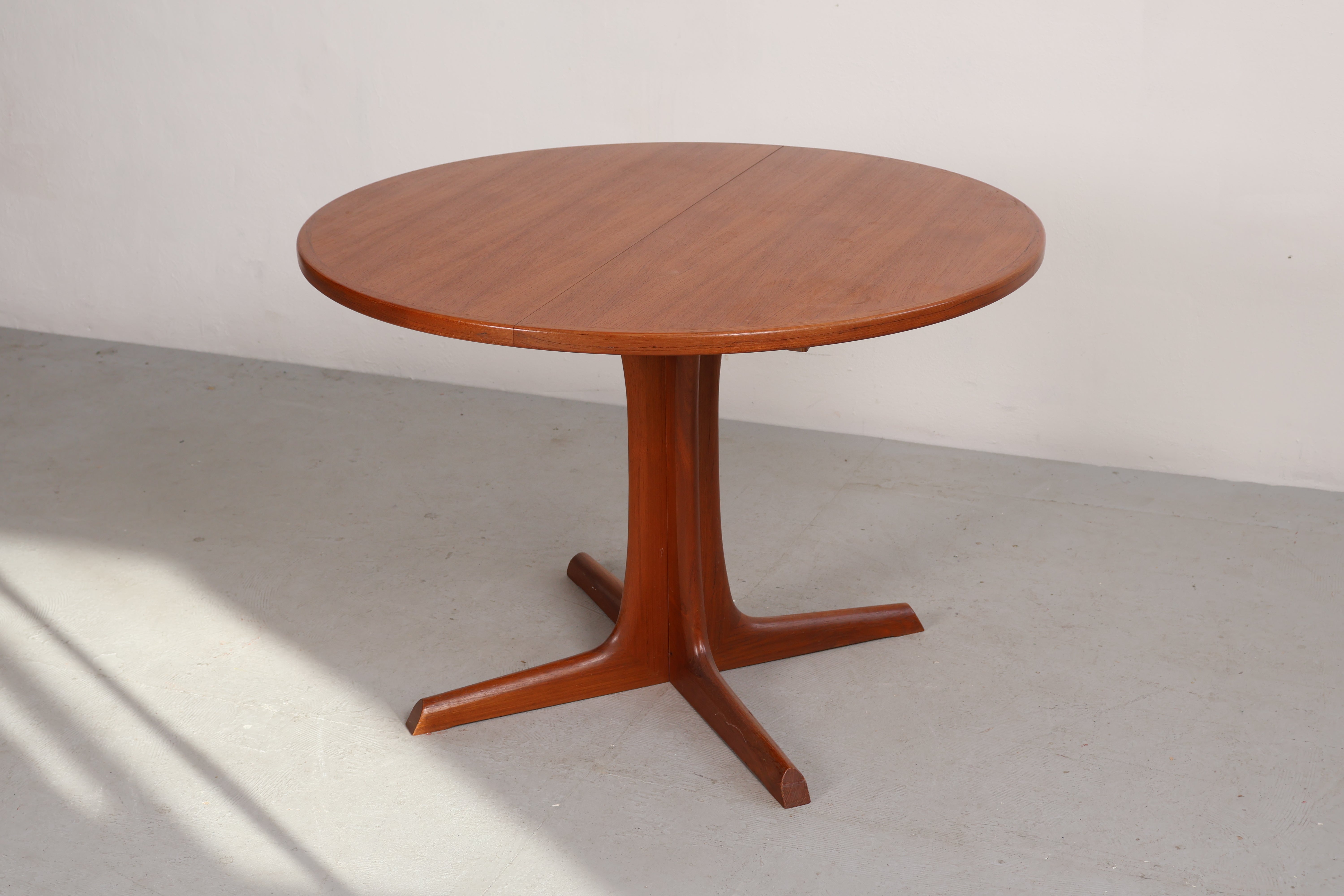 Esstisch aus den 60er-Jahren. Hergestellt in Dänemark. Gefertigt aus Teak. Höhe 73 cm, Breite 105 cm, Tiefe 105 cm.