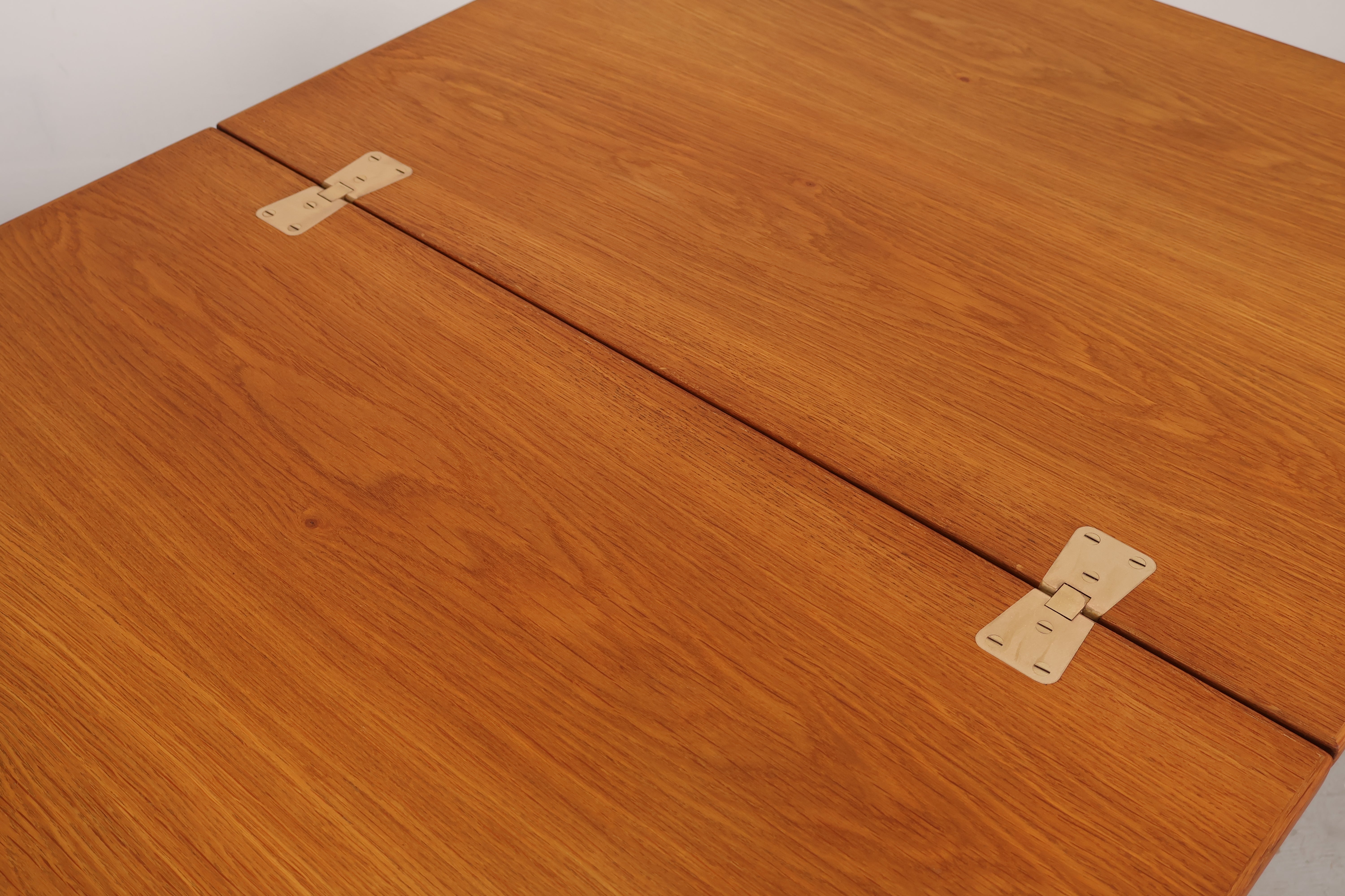 Esstisch aus den 60er-Jahren. Hergestellt in Dänemark. Gefertigt aus Teak. Höhe 72 cm, Breite 115 cm, Tiefe 115 cm.