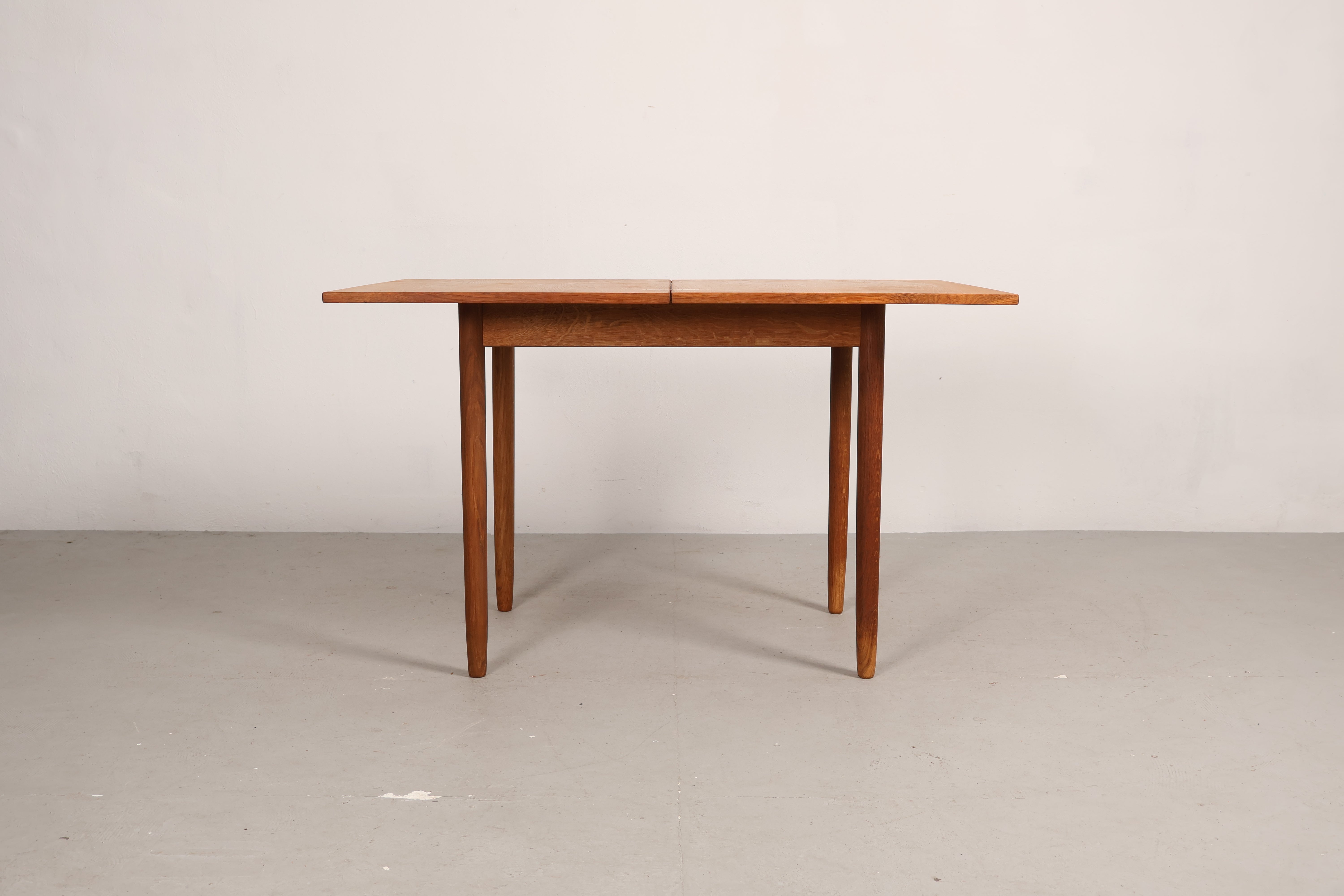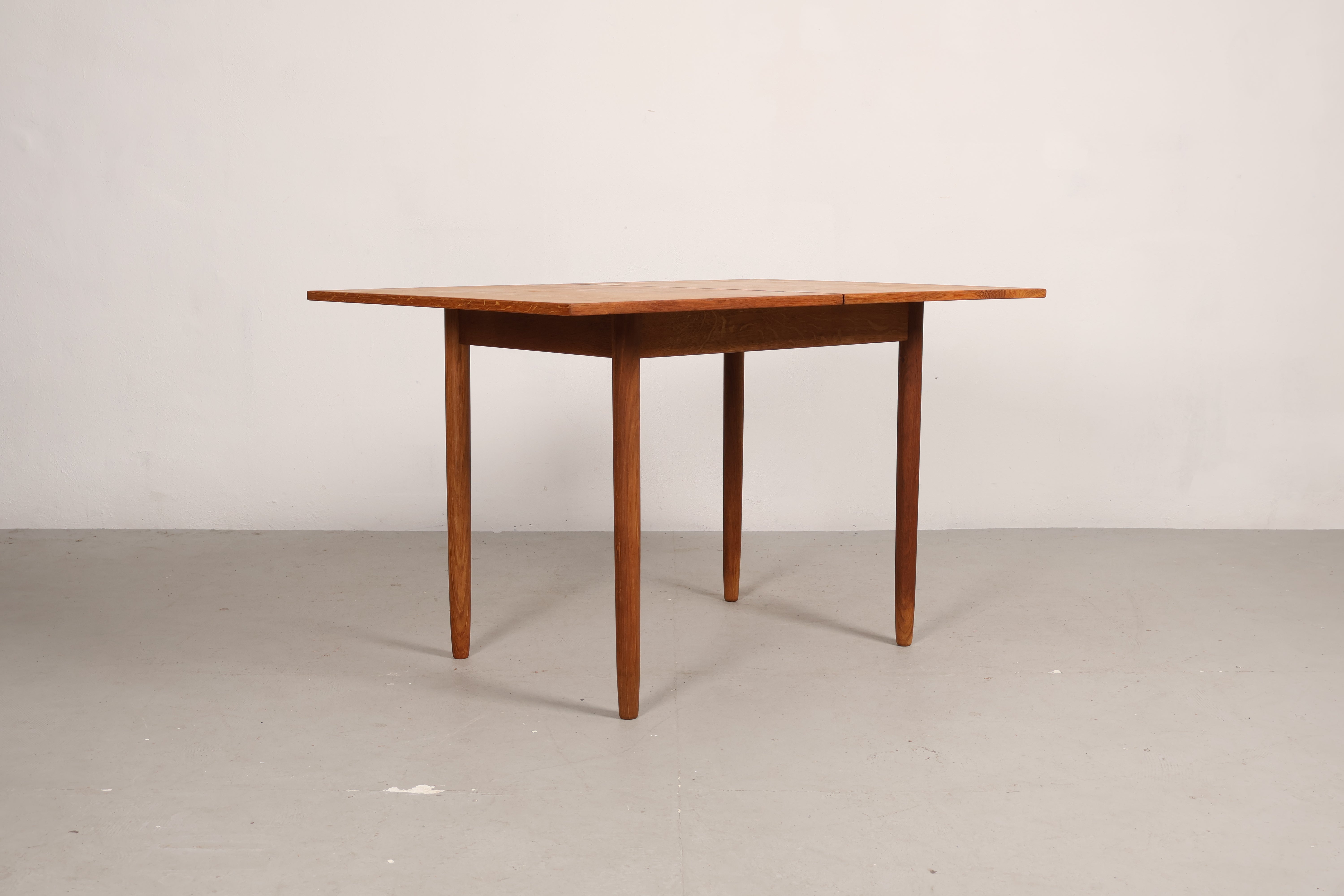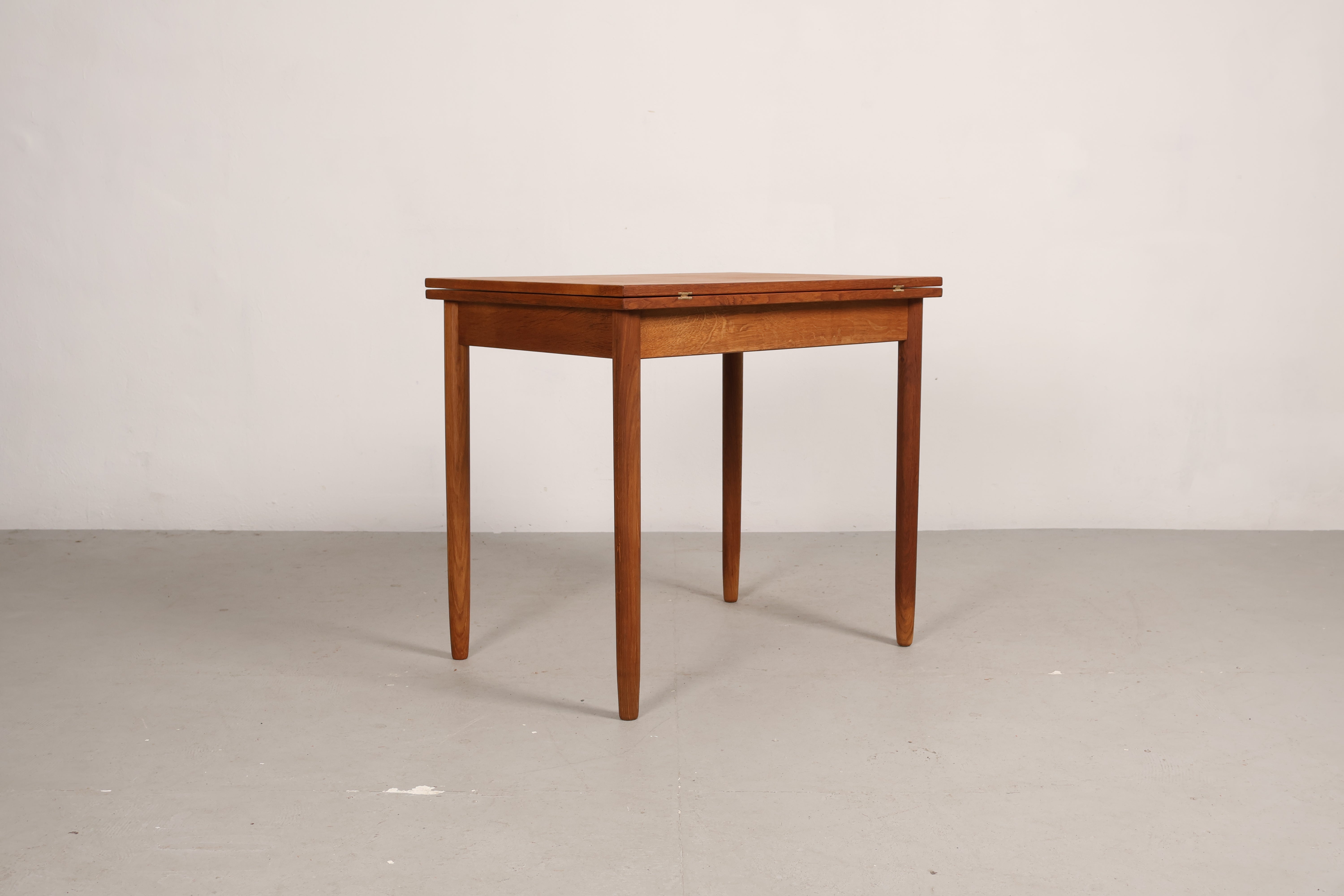 Esstisch aus den 60er-Jahren. Hergestellt in Dänemark. Gefertigt aus Teak. Höhe 75 cm, Breite 82 cm, Tiefe 60 cm.