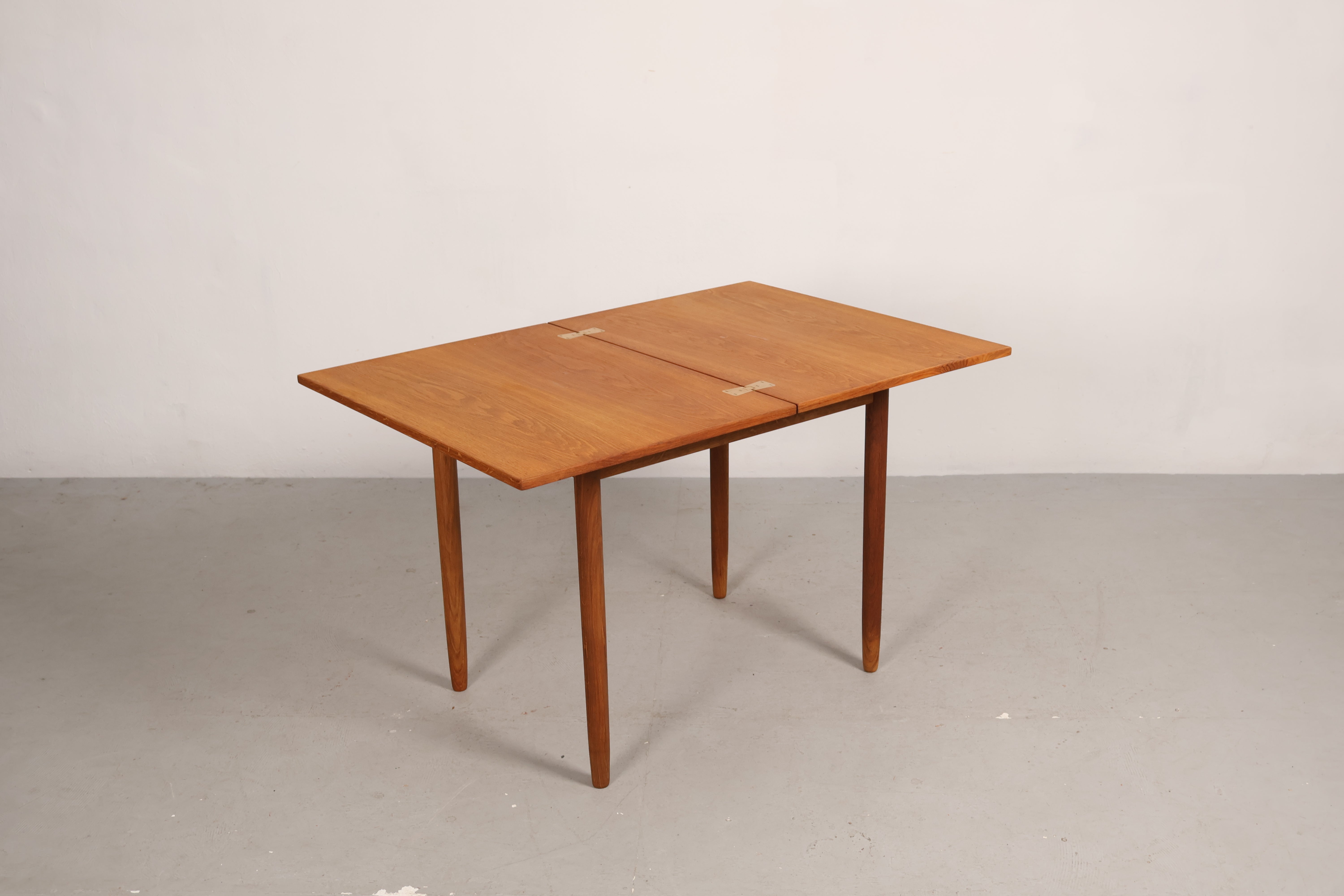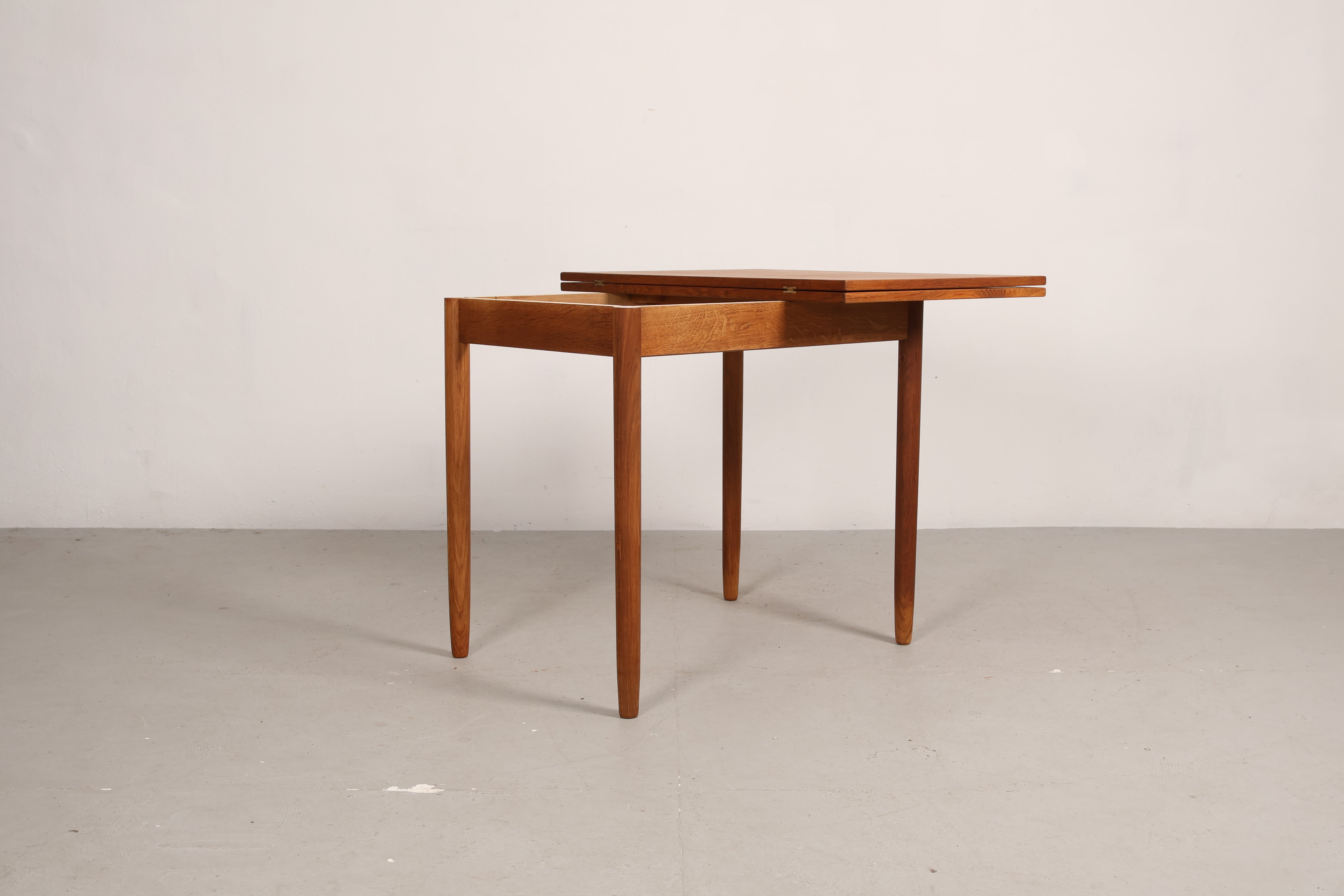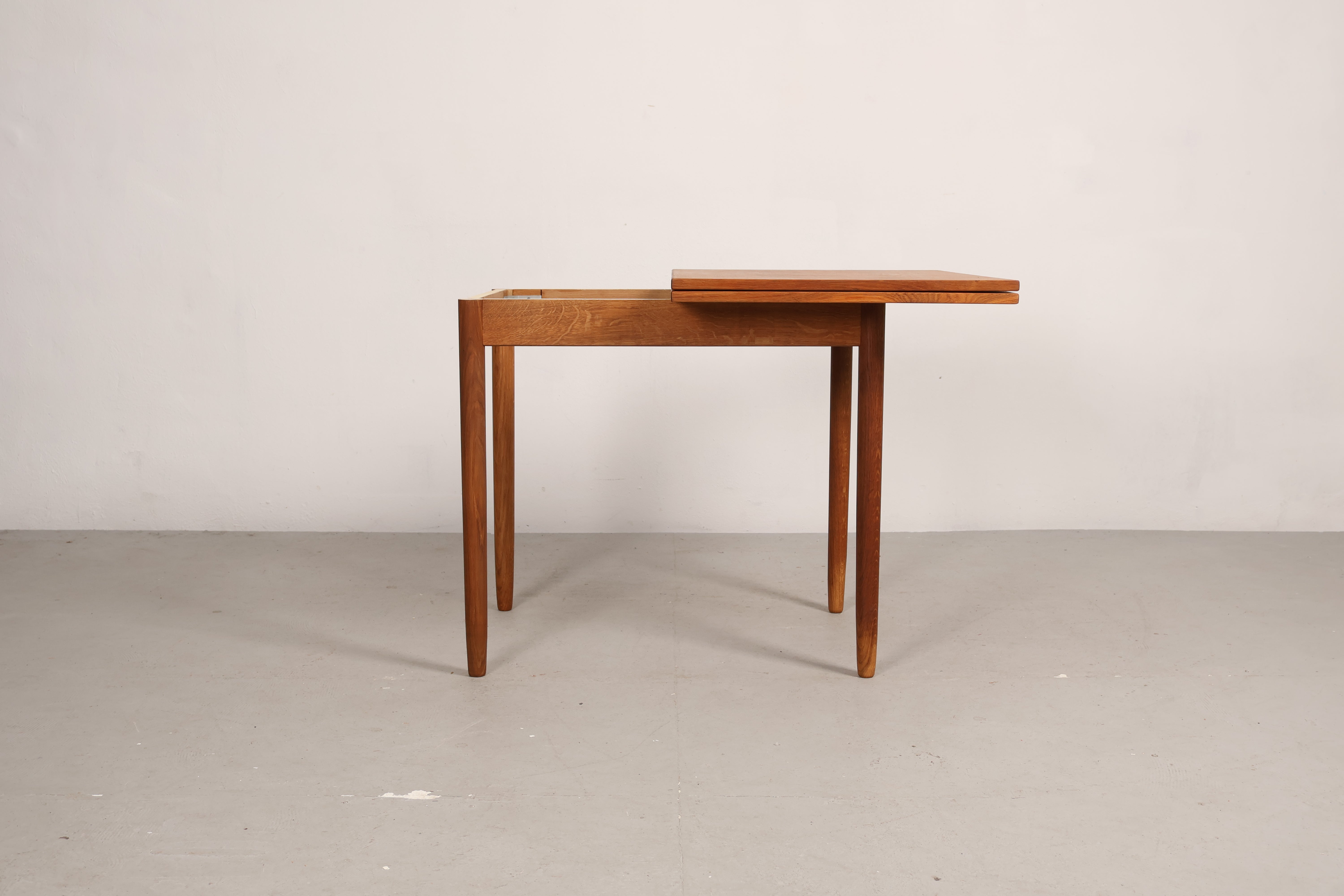 Esstisch aus den 60er-Jahren. Hergestellt in Dänemark. Gefertigt aus Teak. Höhe 75 cm, Breite 82 cm, Tiefe 60 cm.