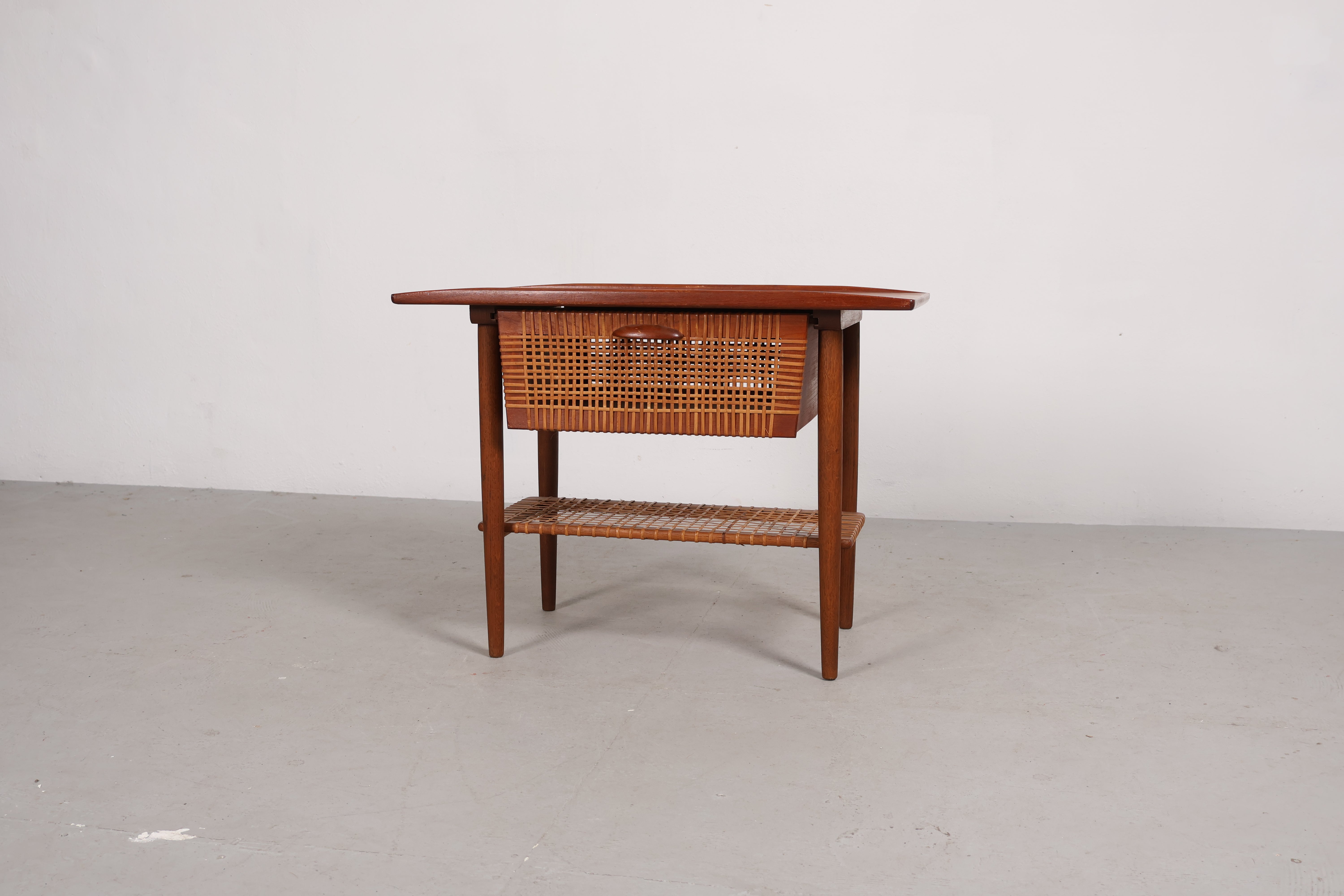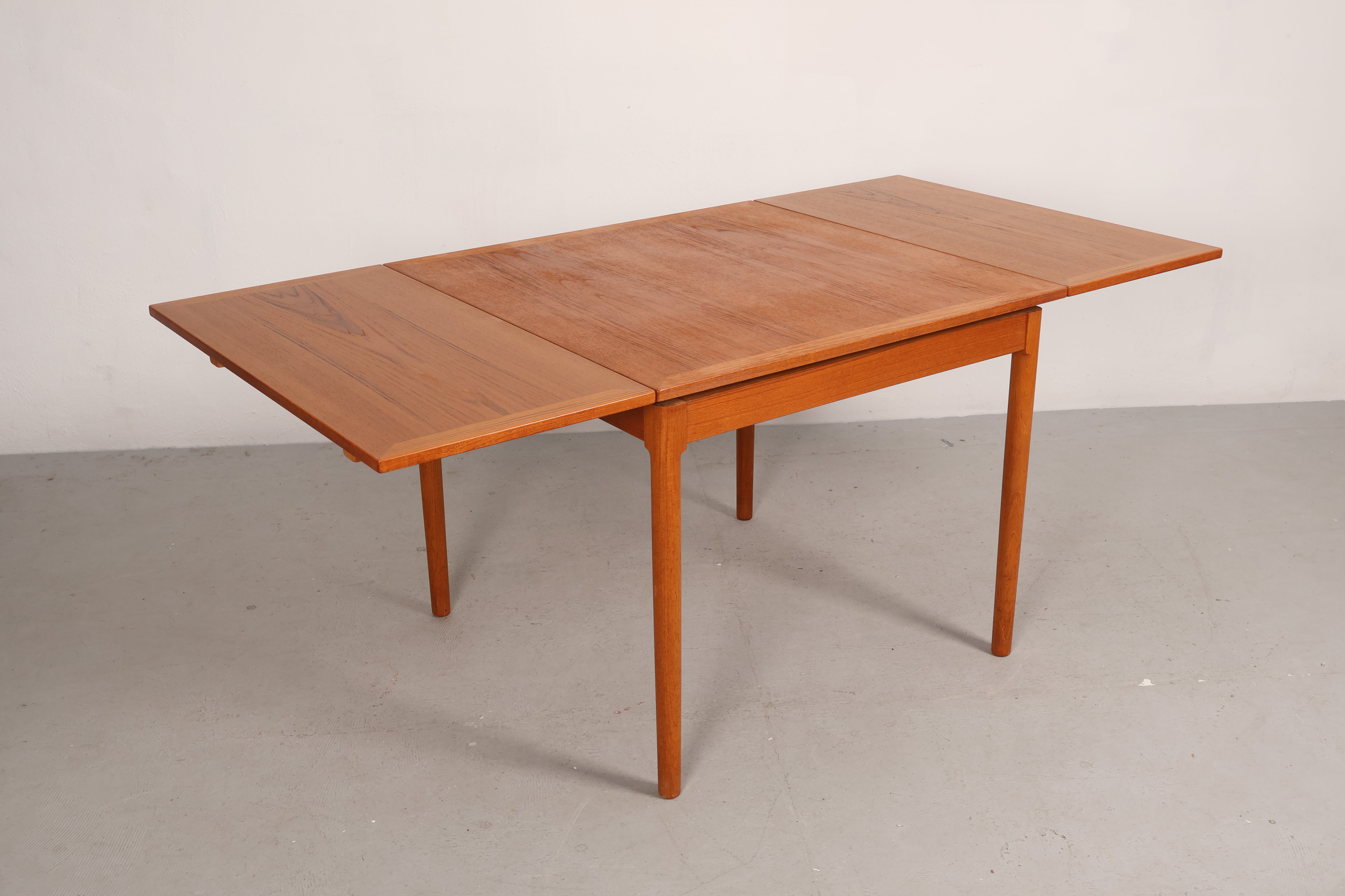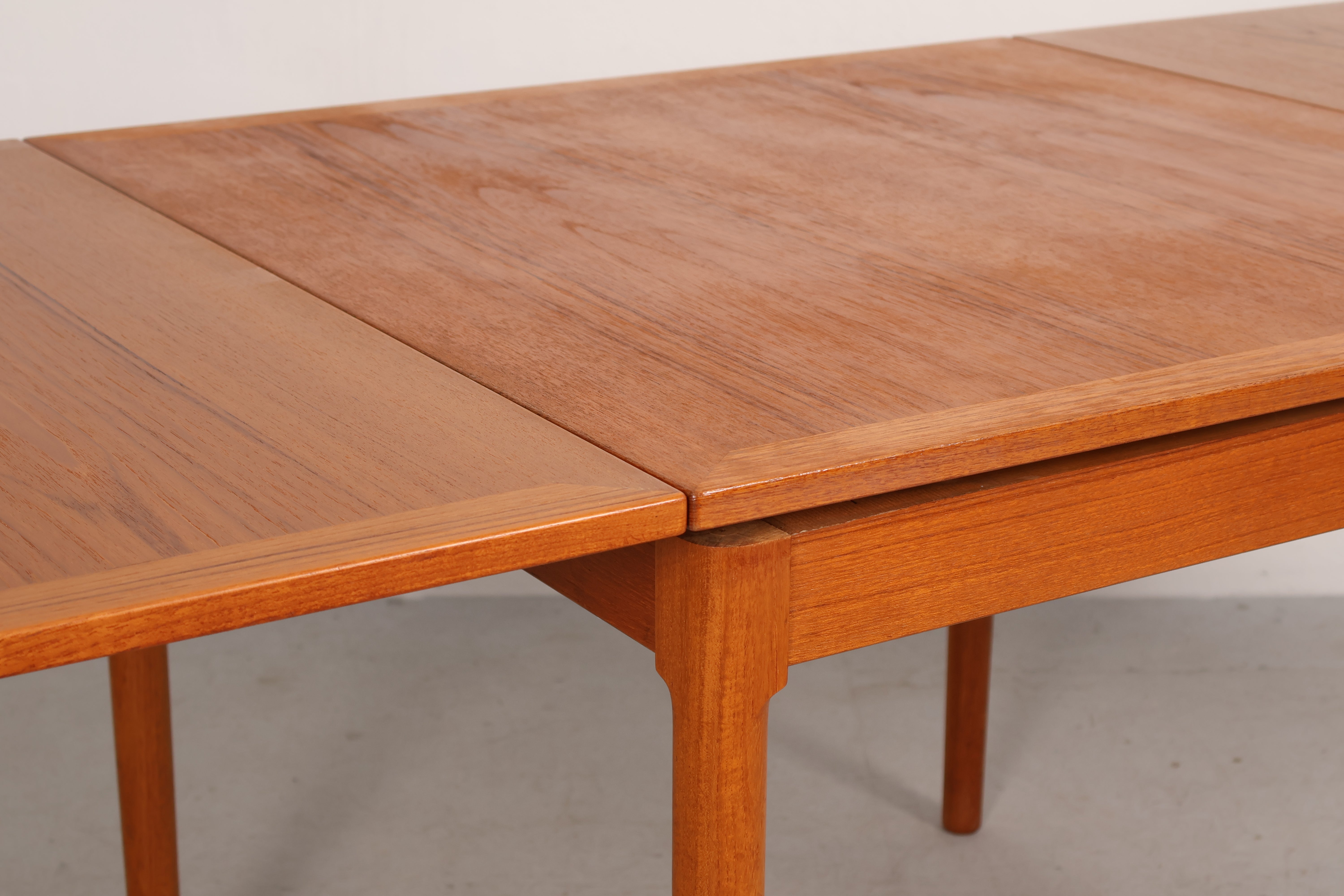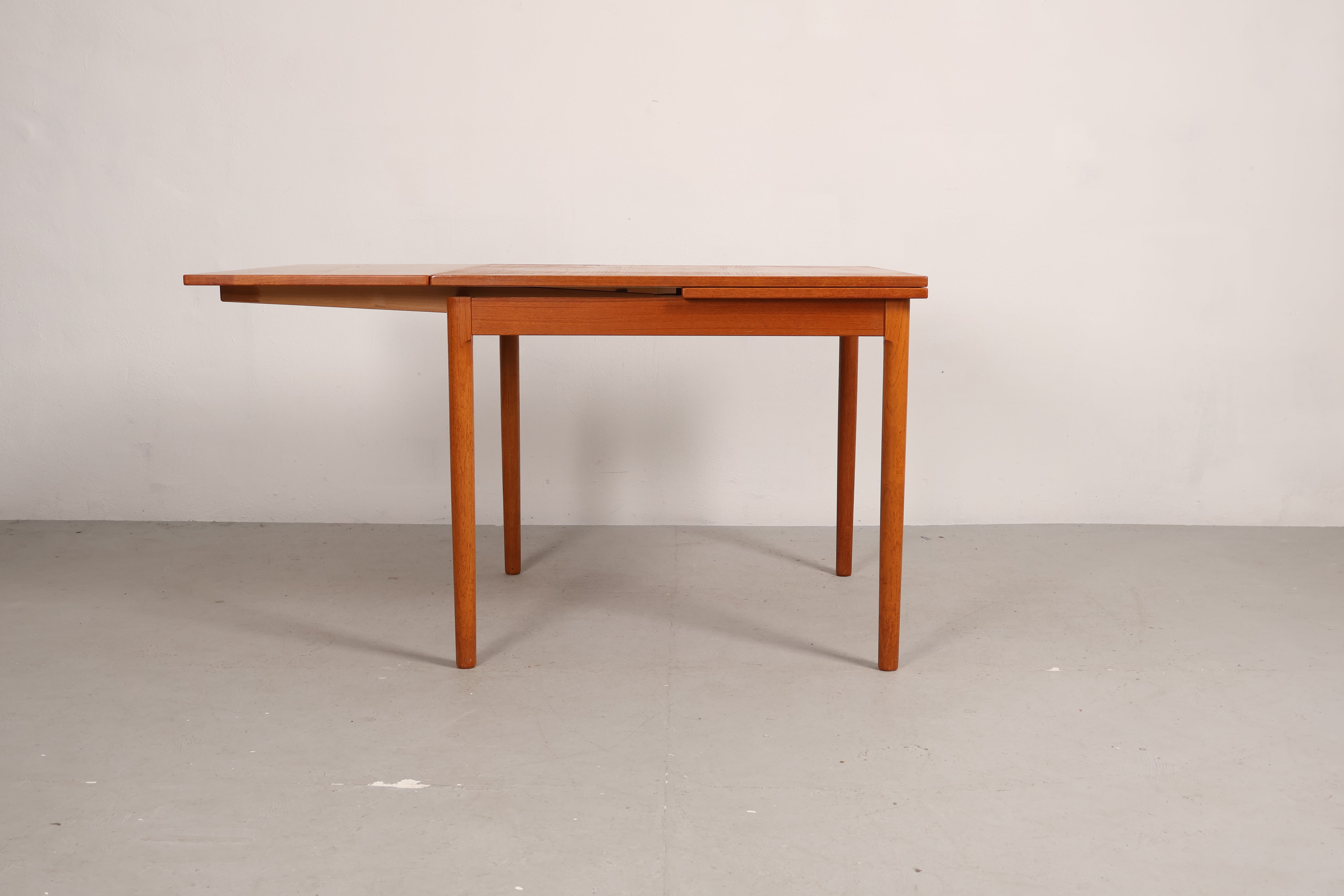 Esstisch aus den 60er-Jahren. Hergestellt in Dänemark. Gefertigt aus Teak. Höhe 74 cm, Breite 90 cm, Tiefe 90 cm.