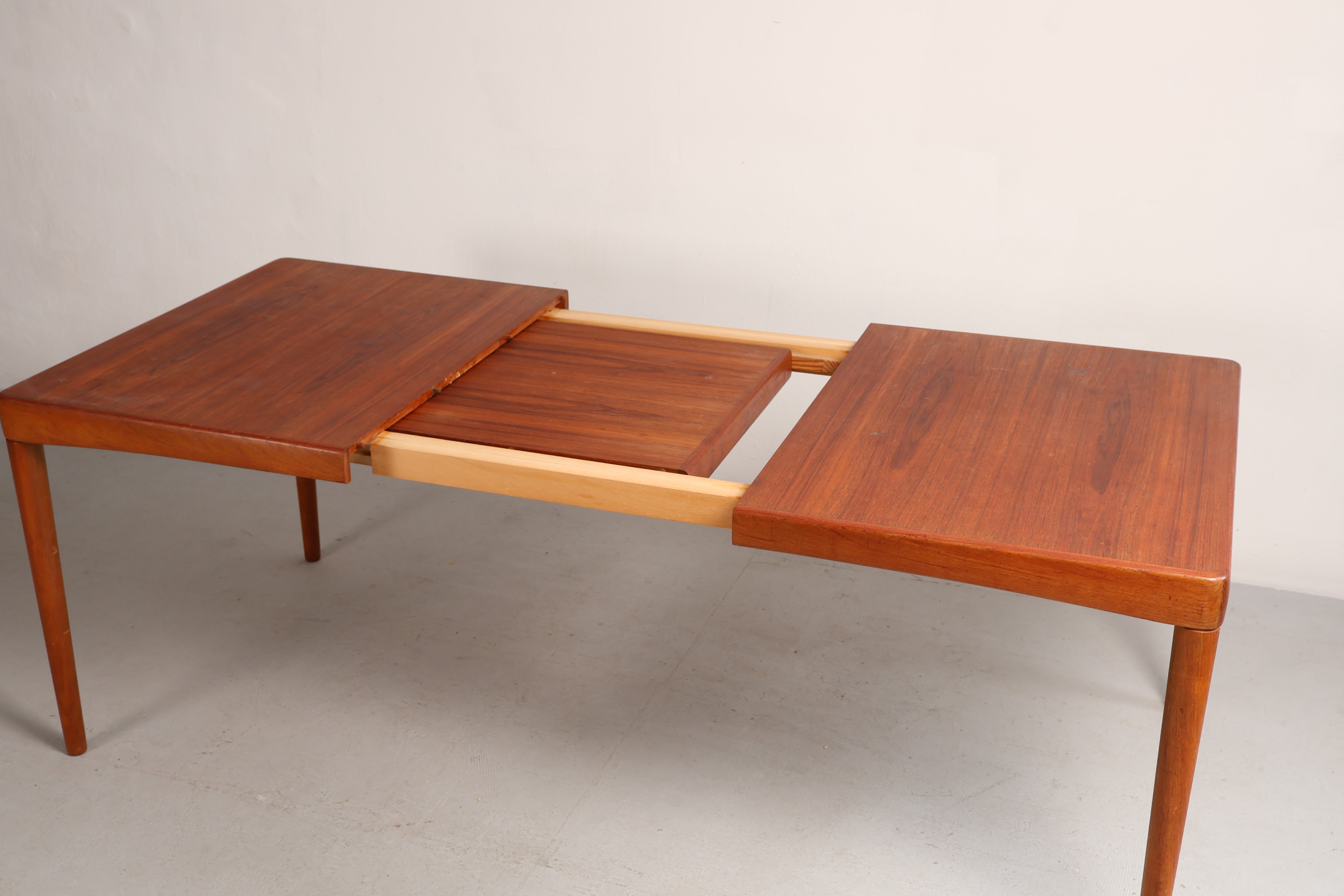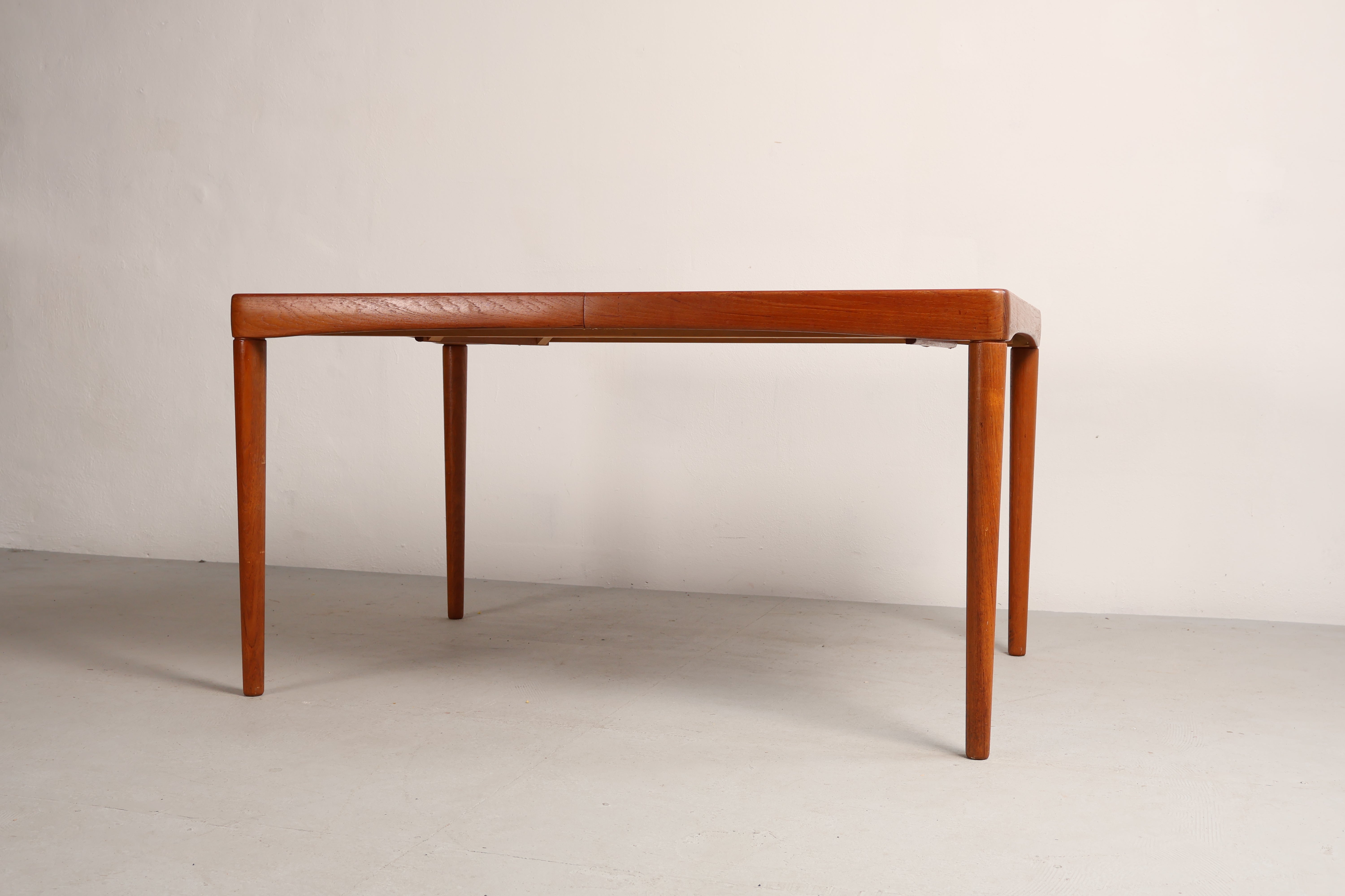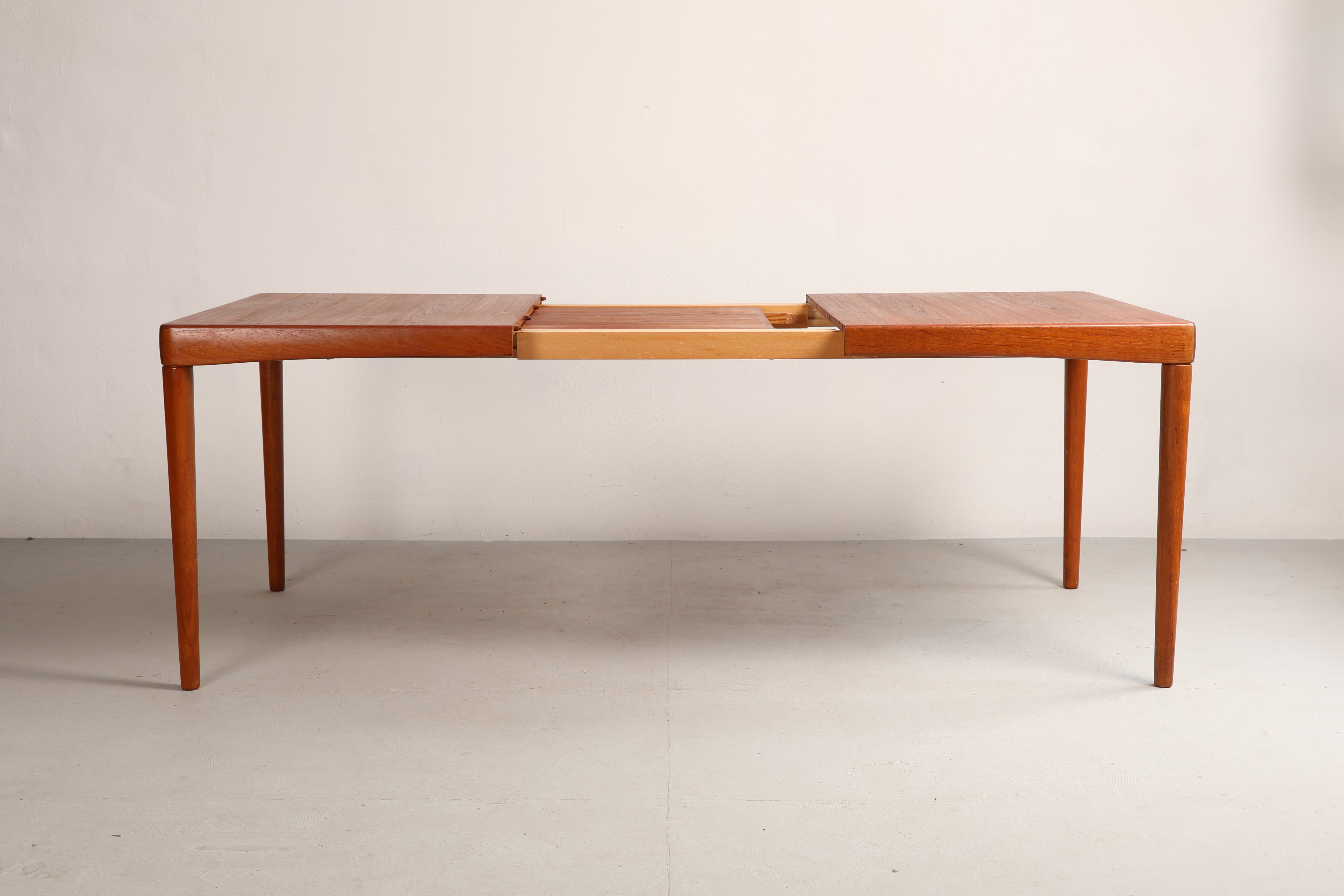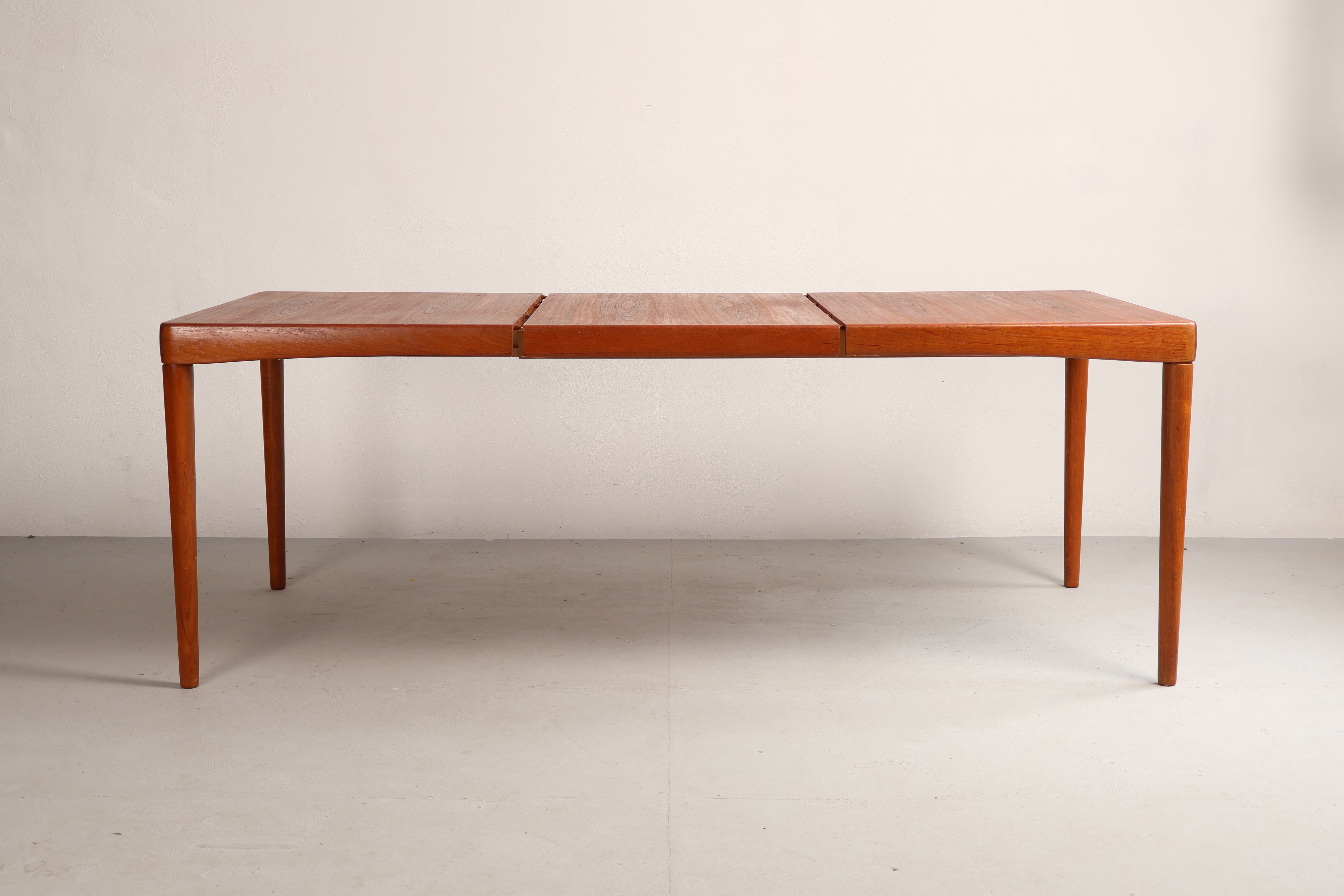 Esstisch aus den 60er-Jahren von H. W. Klein für Bramin. Hergestellt in Dänemark. Gefertigt aus Teak. Höhe 72 cm, Breite 135 cm, Tiefe 90 cm.