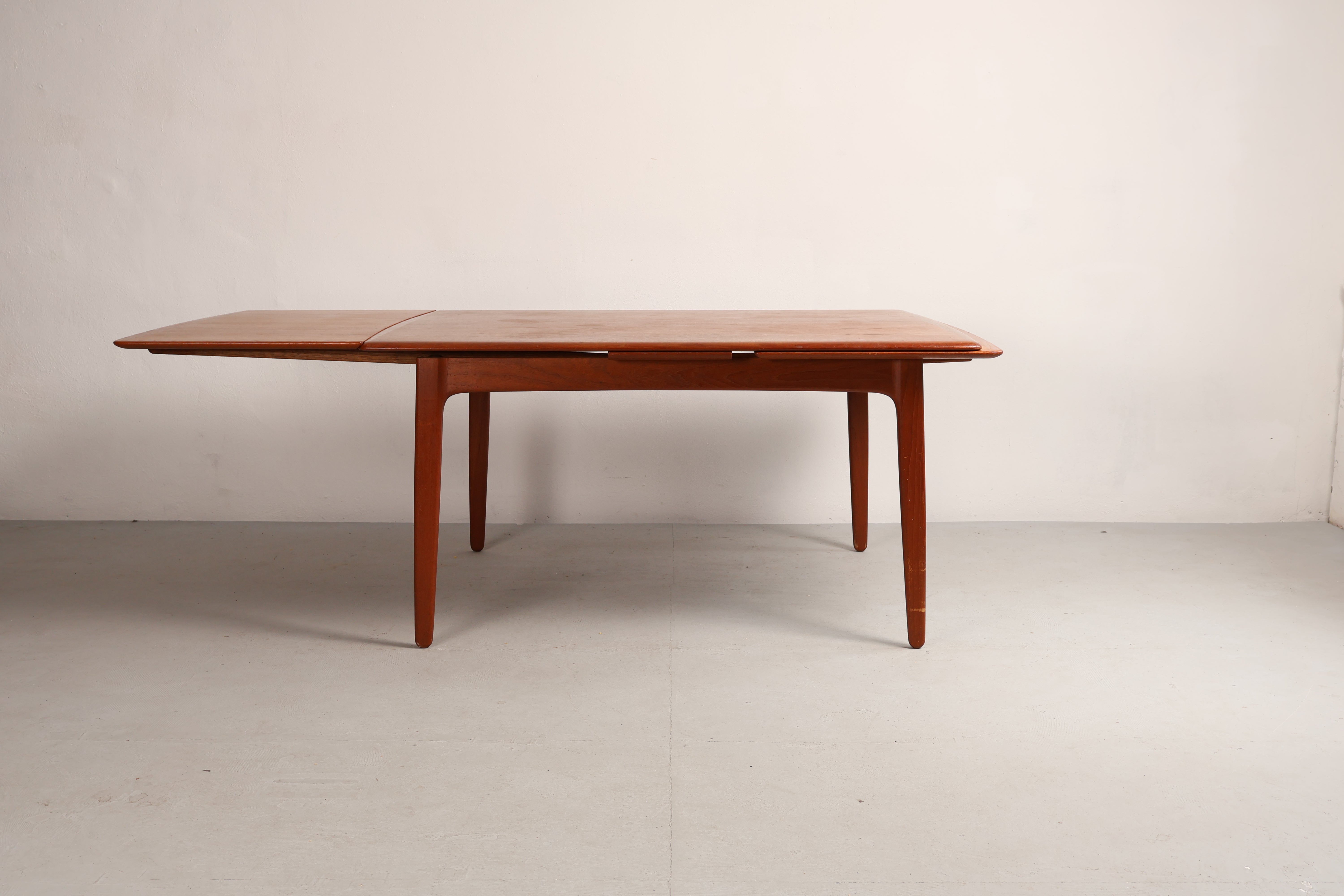Esstisch aus den 60er-Jahren von Svend Aage Madsen. Hergestellt in Dänemark. Gefertigt aus Teak. Höhe 72 cm, Breite 146 cm, Tiefe 85 cm.