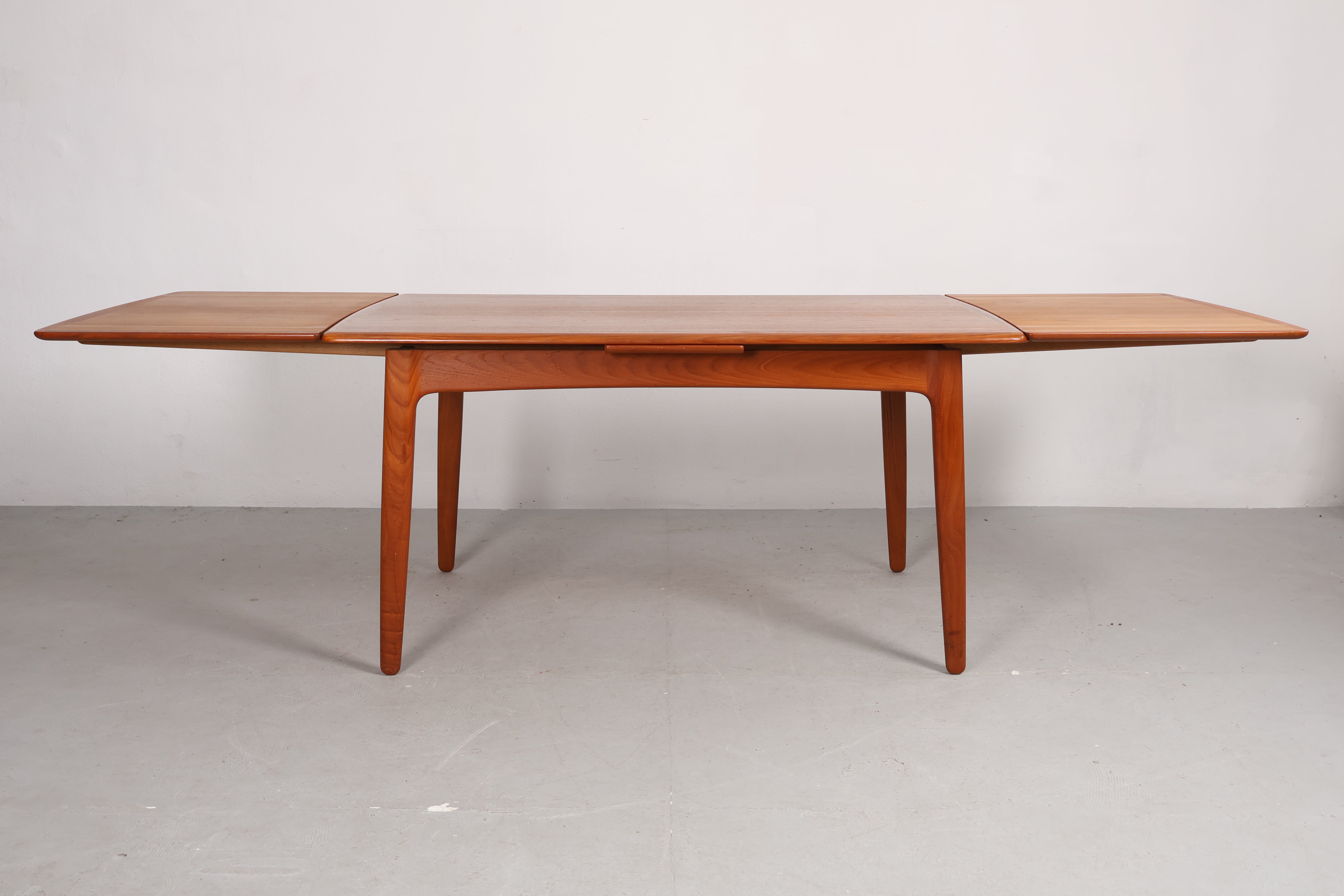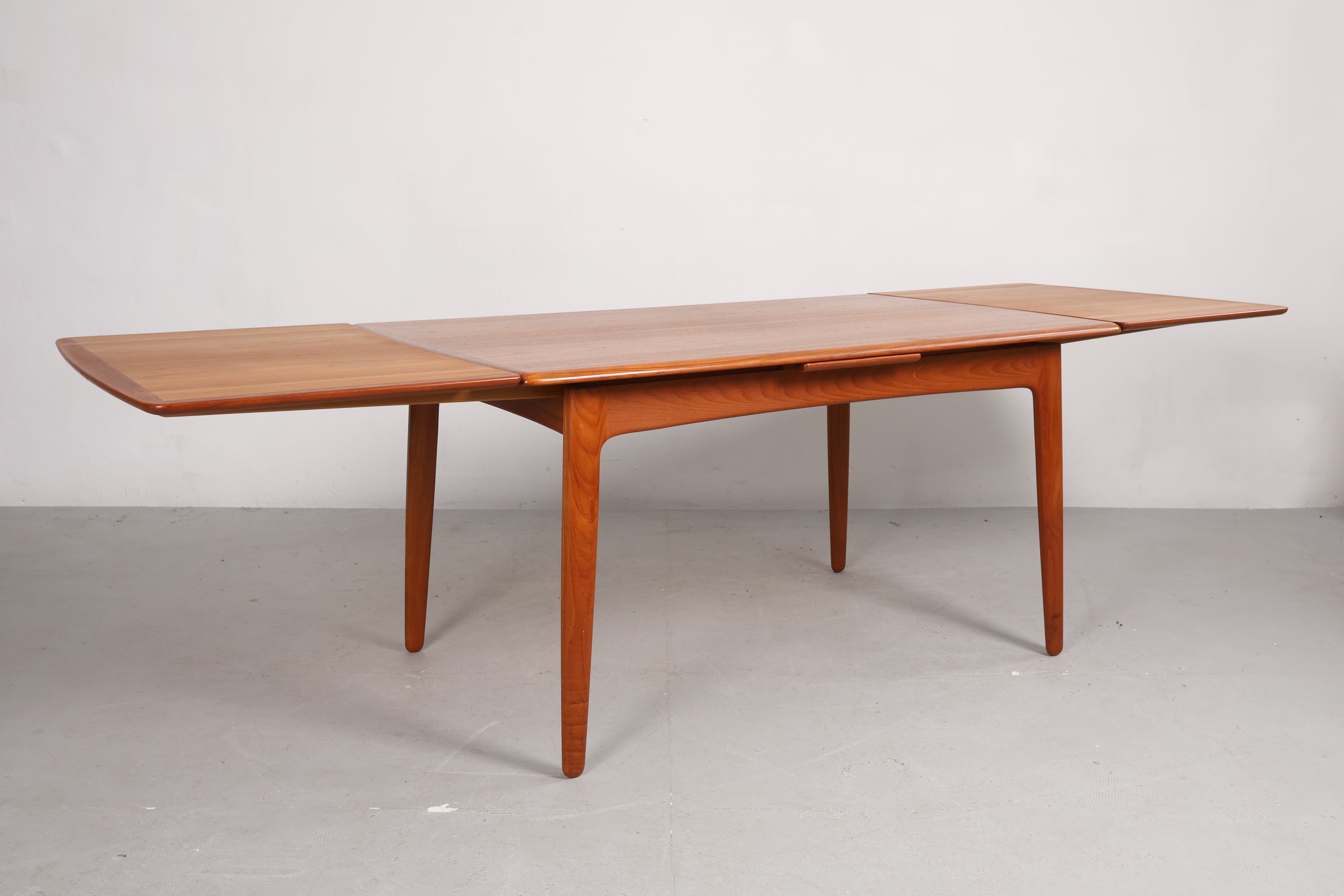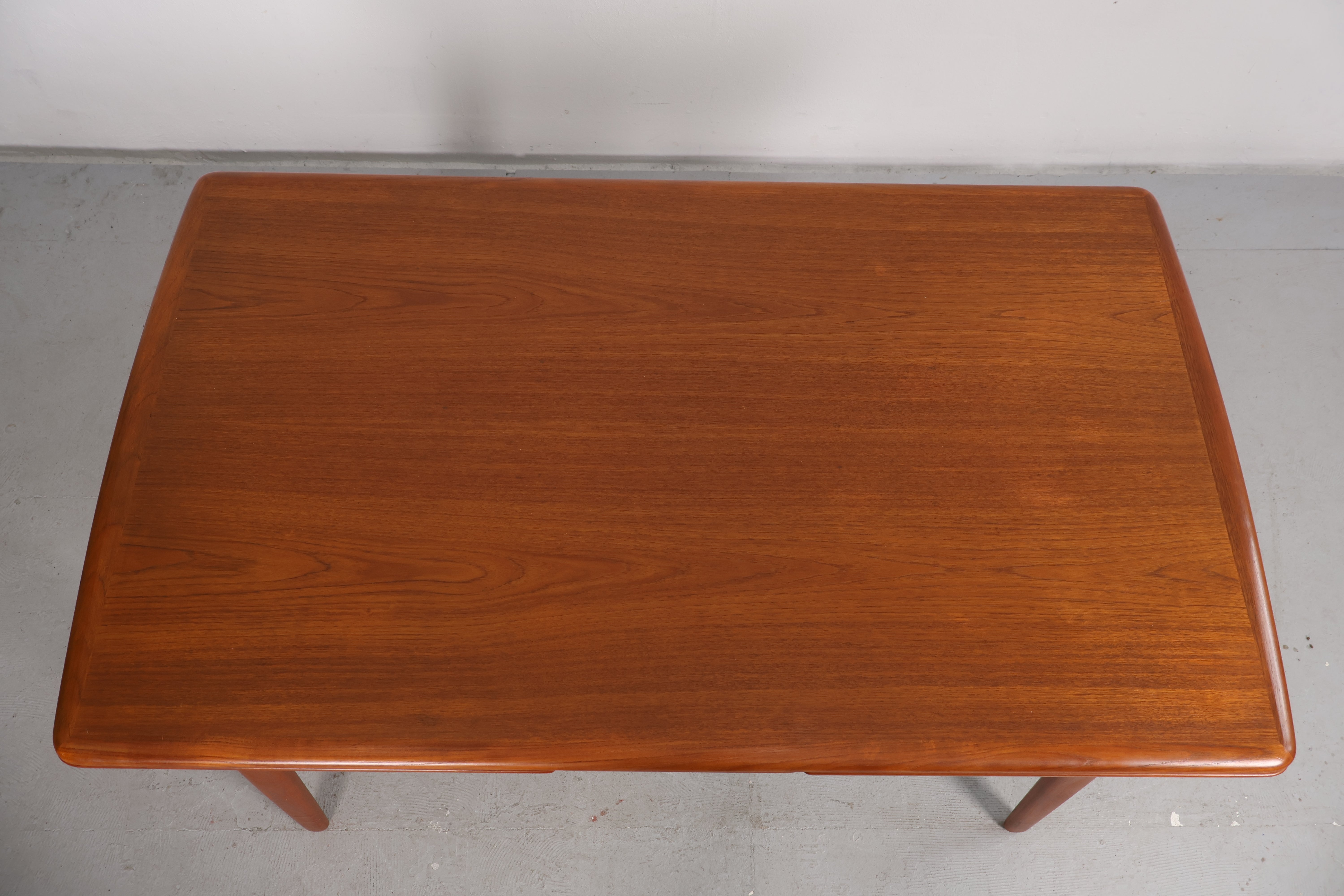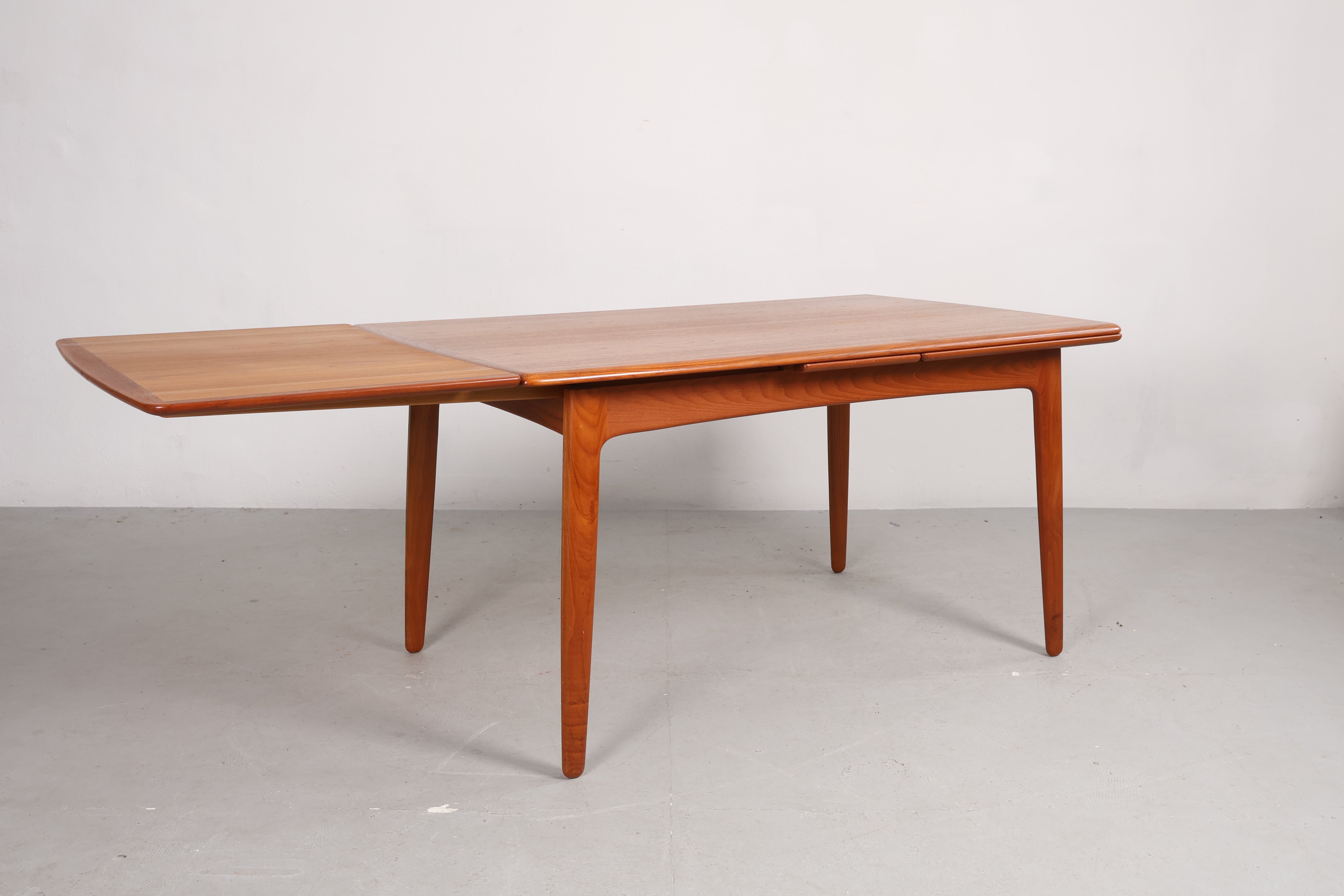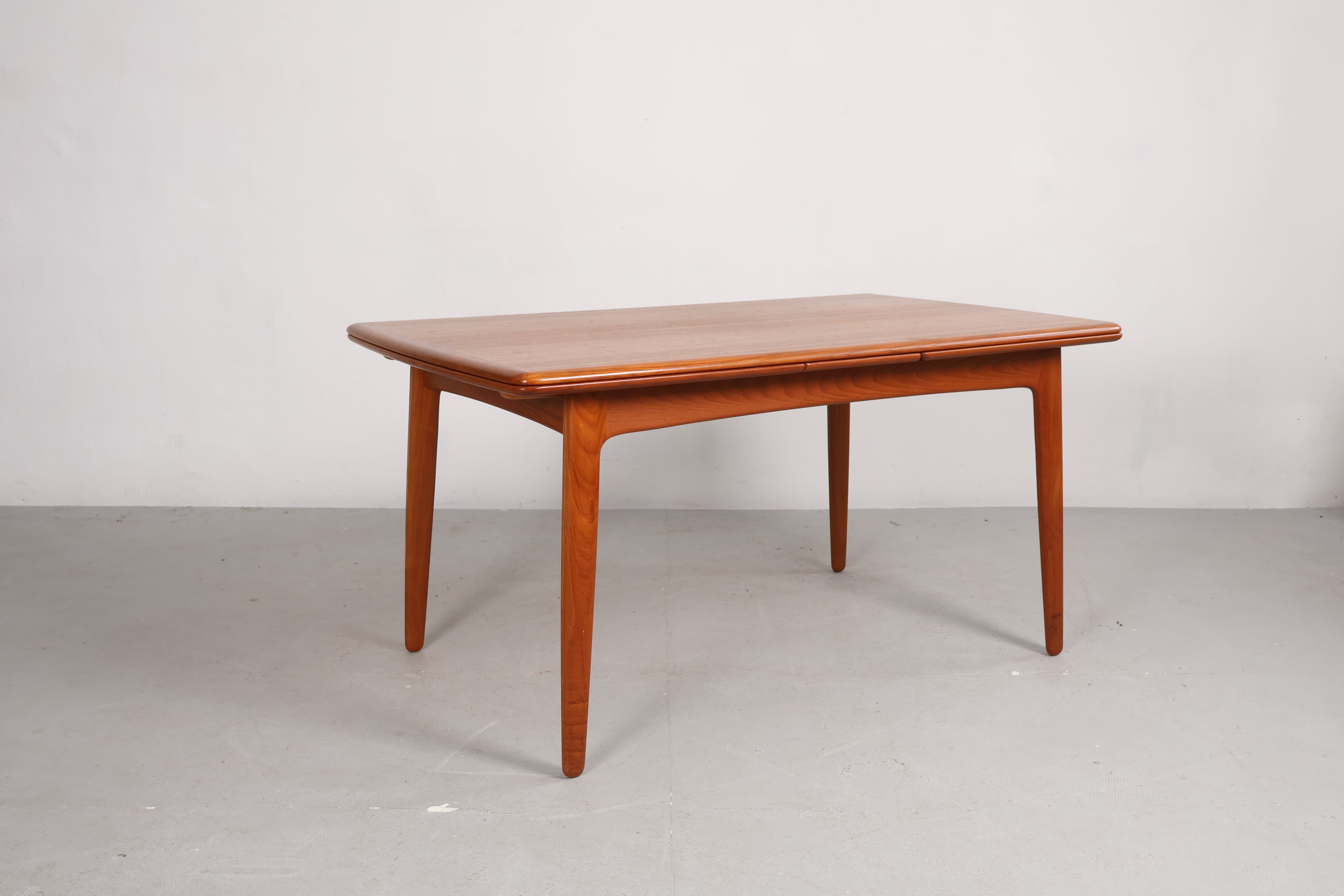 Esstisch aus den 60er-Jahren von Svend Aage Madsen. Hergestellt in Dänemark. Gefertigt aus Teak. Höhe 72 cm, Breite 145 cm, Tiefe 85 cm.