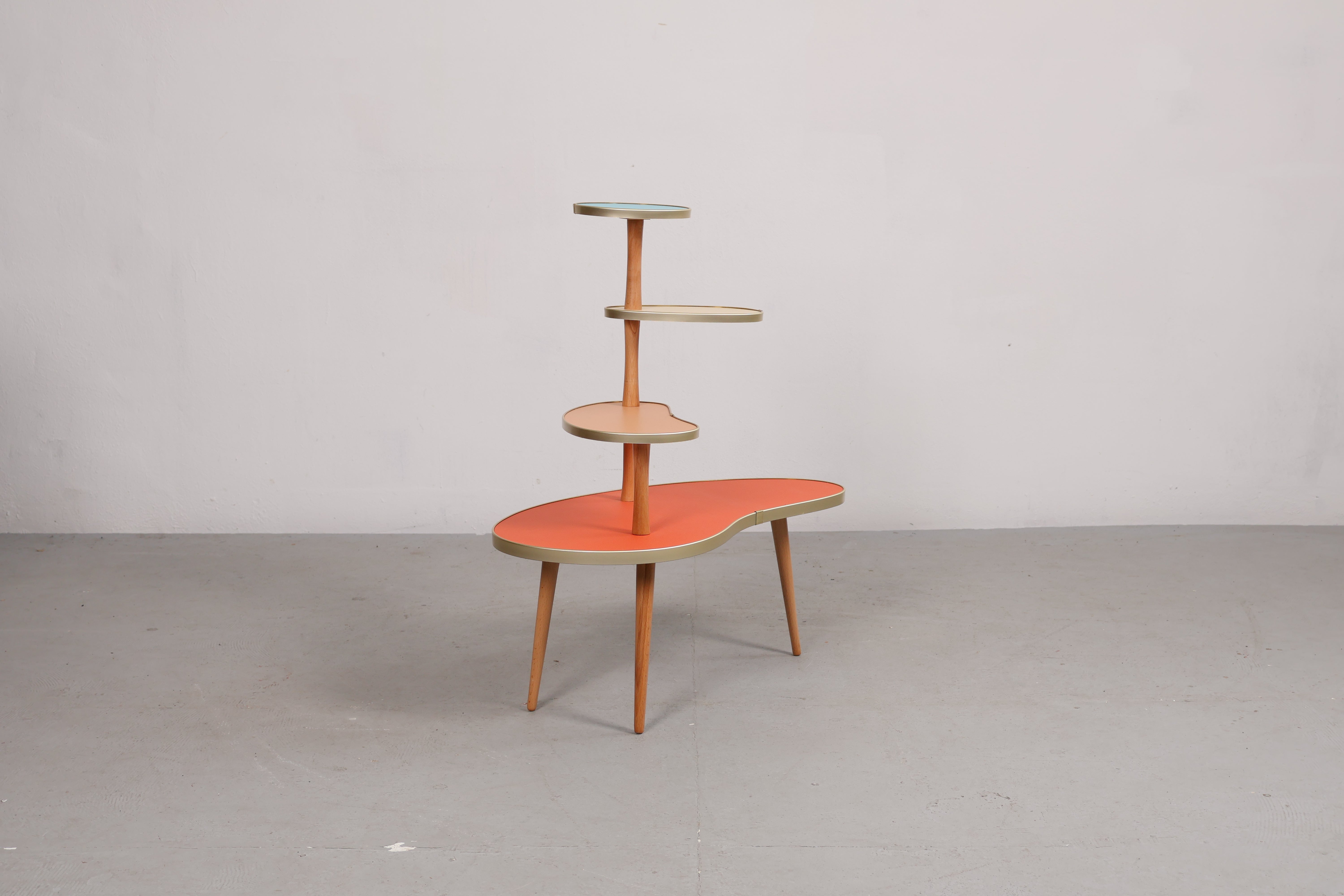 Etagere aus den 50er-Jahren. Hergestellt in Deutschland. Höhe 79 cm, Breite 73 cm, Tiefe 37 cm.