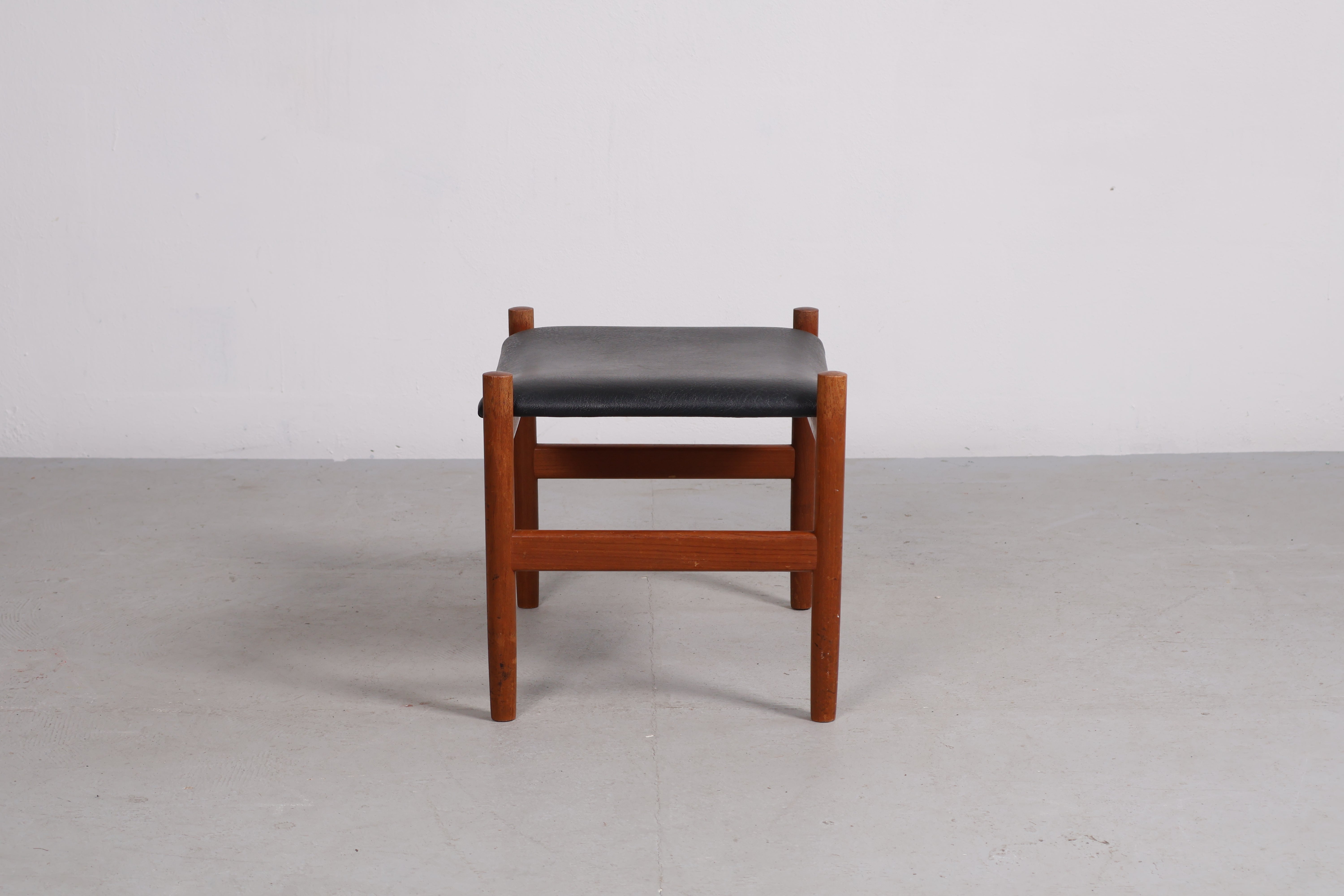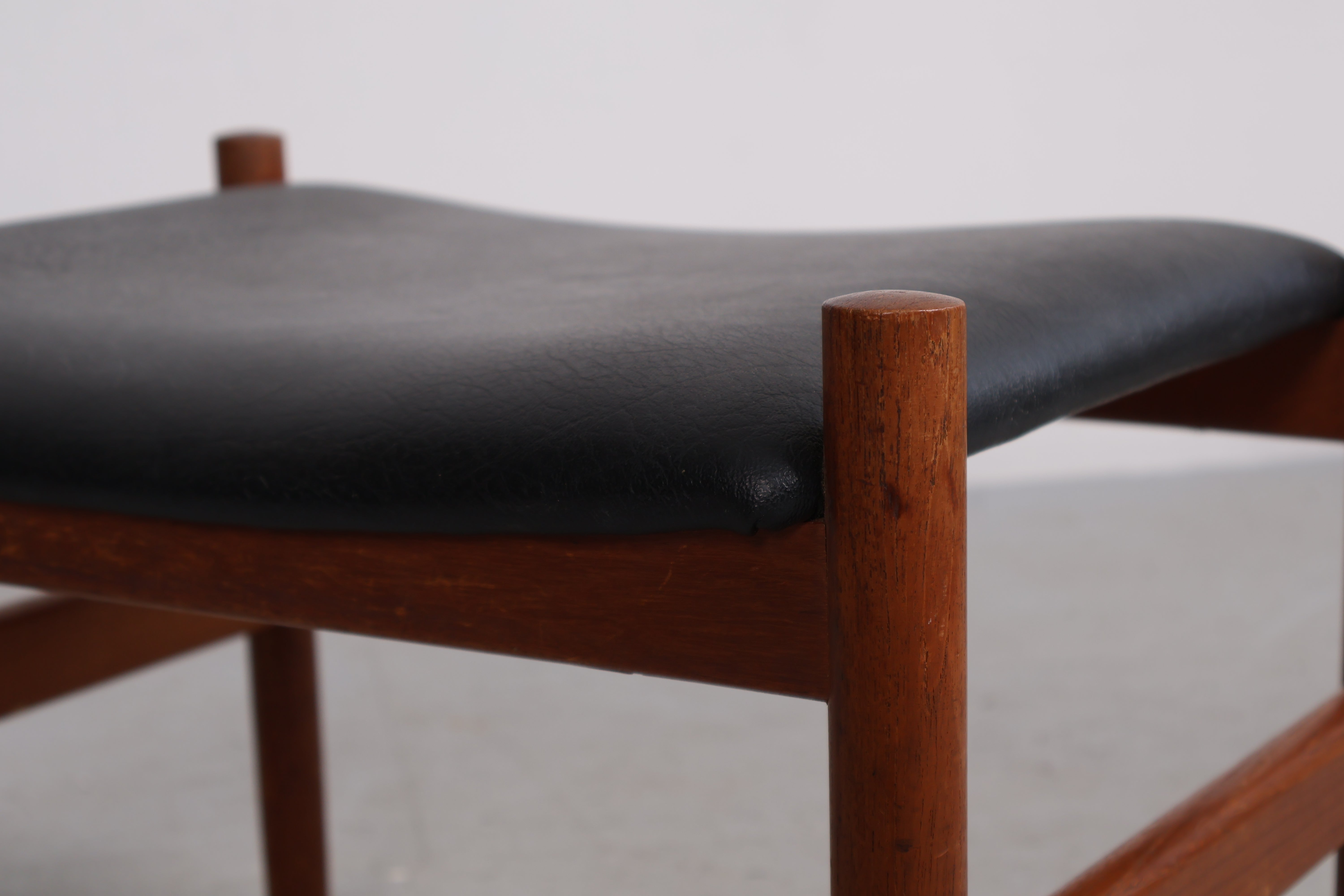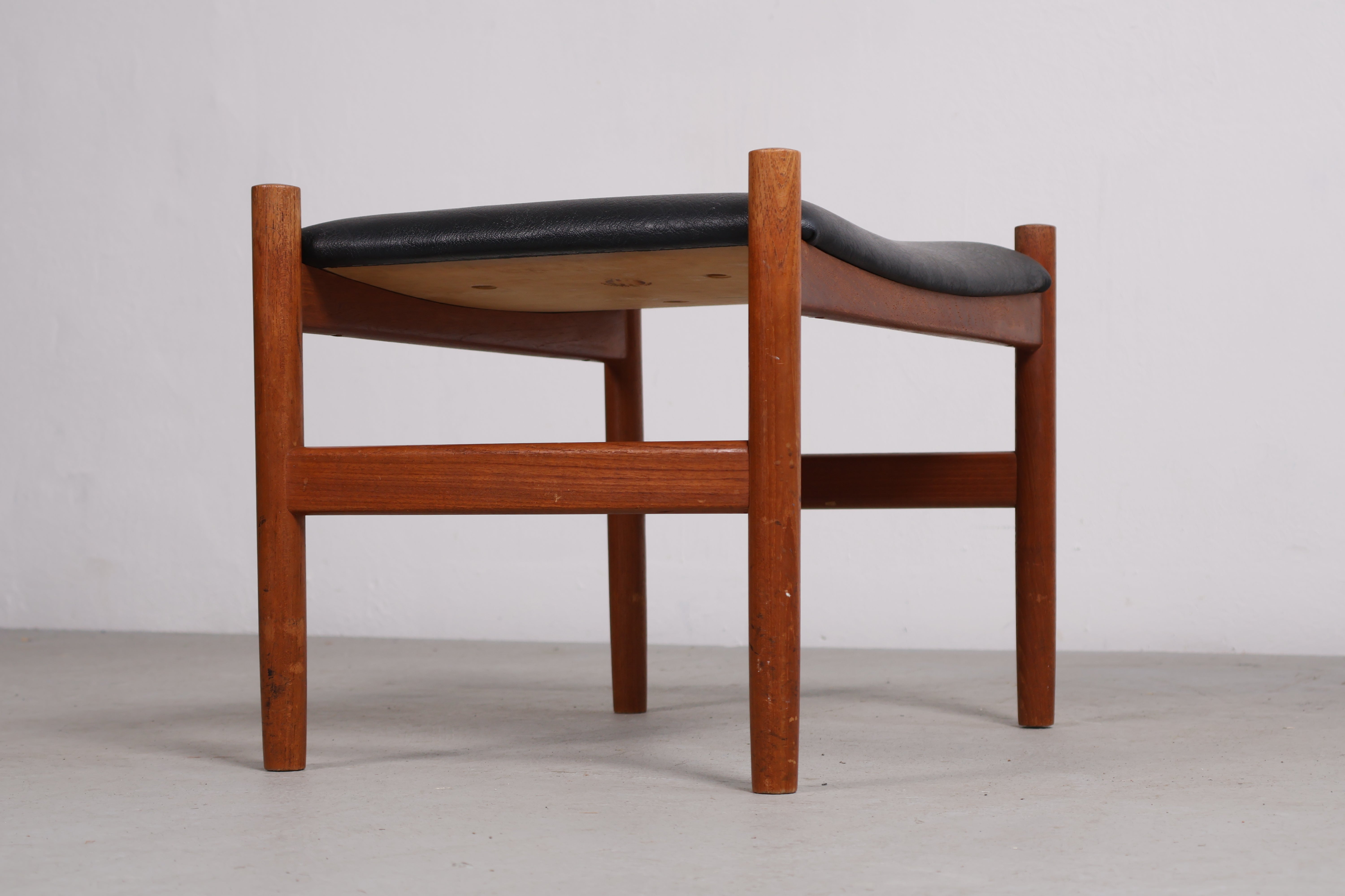 Hocker aus den 60er-Jahren für Magnus Olesen. Hergestellt in Dänemark. Gefertigt aus Teak. Höhe 38 cm, Breite 53 cm, Tiefe 38 cm.