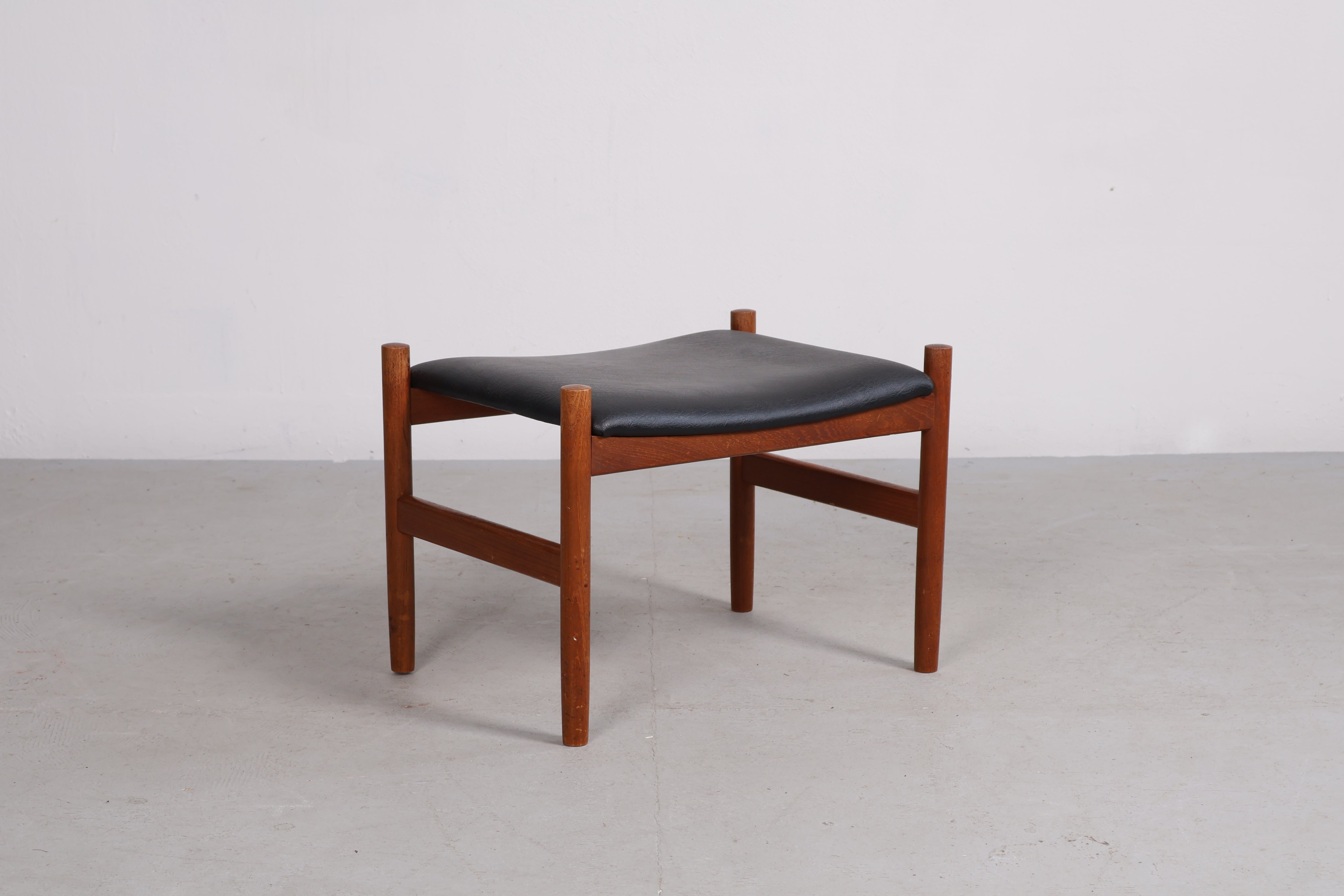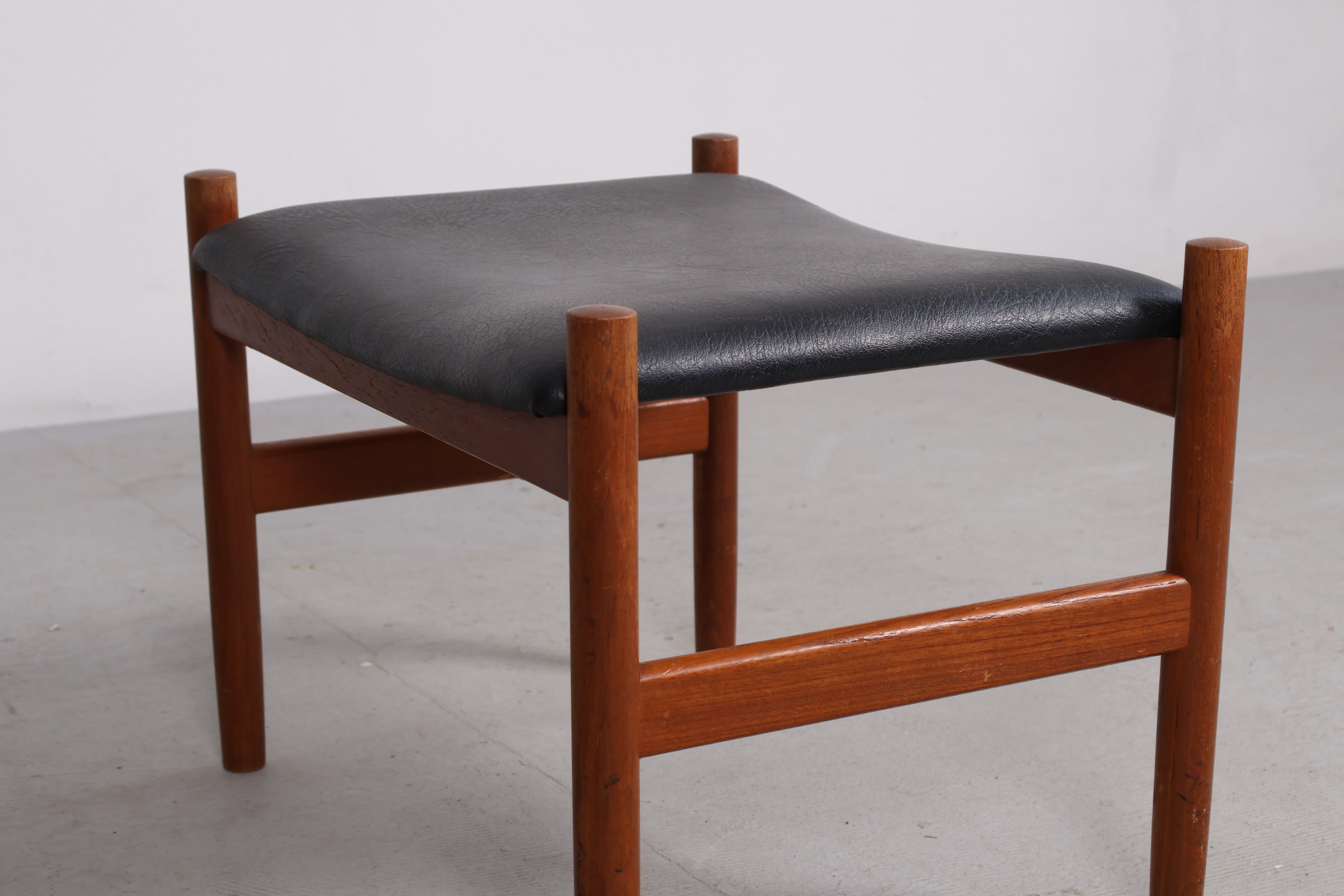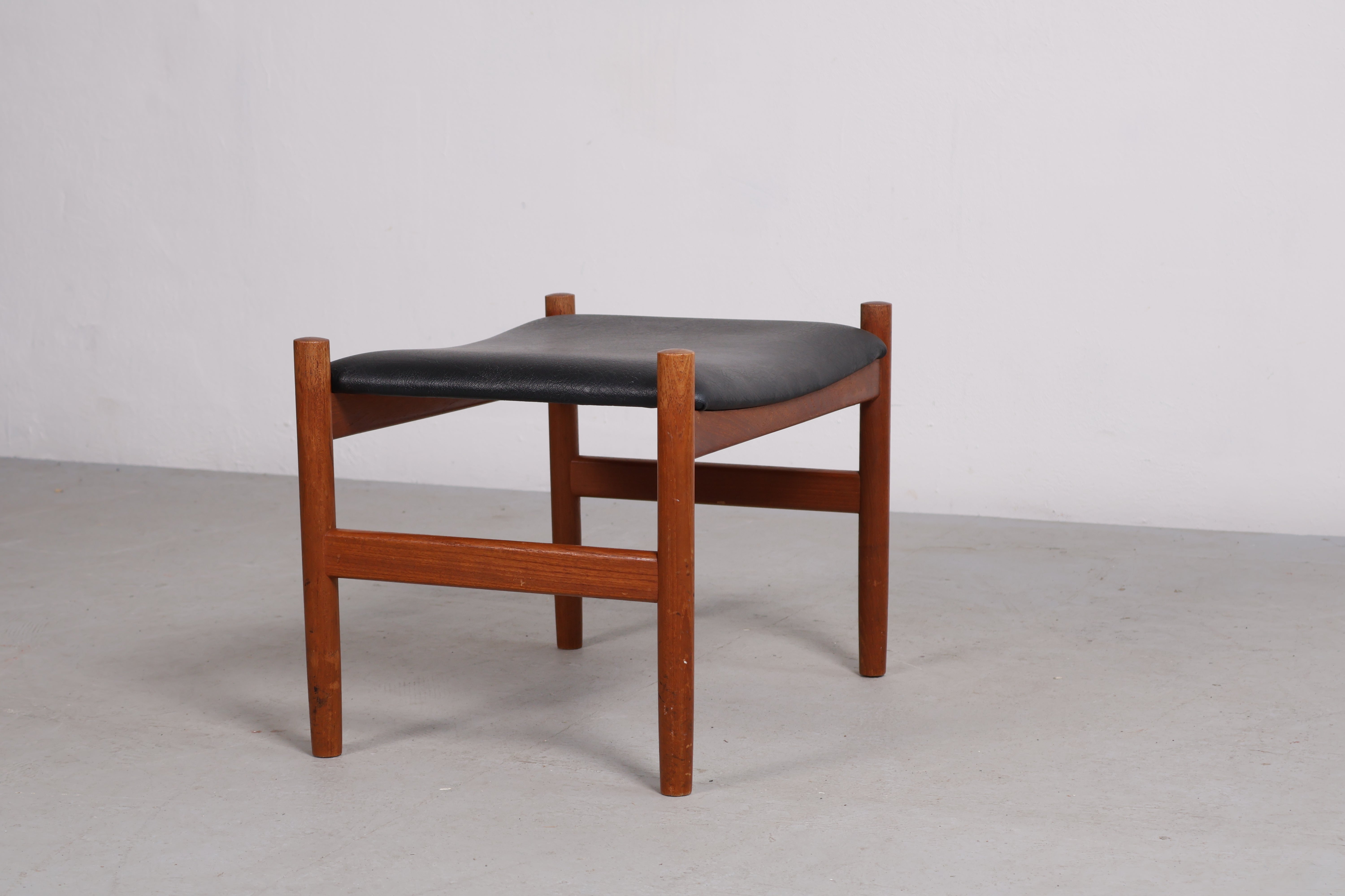 Hocker aus den 60er-Jahren für Magnus Olesen. Hergestellt in Dänemark. Gefertigt aus Teak. Höhe 38 cm, Breite 53 cm, Tiefe 38 cm.