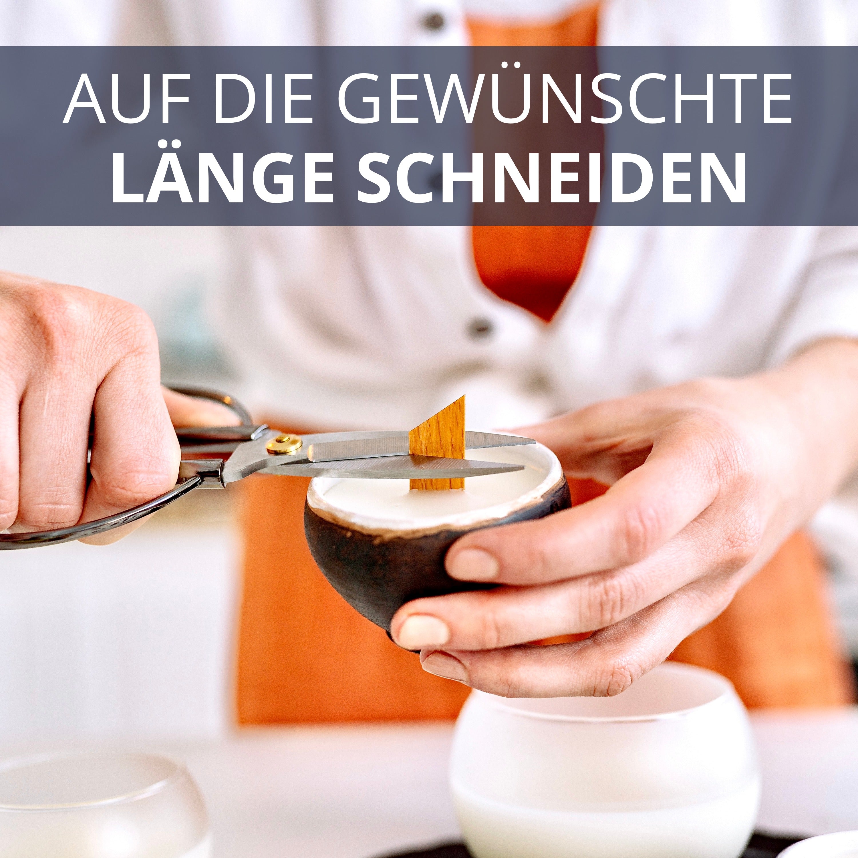 Unsere Holzdochte mit 70 mm Länge sind perfekt zum Gießen eigener Kerzen geeignet, bei denen Sie Wert auf Qualität und Natürlichkeit legen. Unsere Holzdochte bestehen aus dünnem und unbehandeltem natürlichen Holz. Jeder dieser Dochte wird so angefertigt, dass er nach dem Anzünden eine saubere (d. h. raucharme und rückstandsfreie) helle Flamme liefert. Die Verwendung dieses Dochtes ist einfach. Befestige den Holzdocht an dem Metallhalter. Lege es auf den Boden des Behälters. Platziere es mittig und gieße das Wachs drüber. Es ist für Kerzen mit bis zu einem Durchmesser von 75mm geeignet. Vor der Verwendung solltest du den Docht auf ca. 1cm kürzen. Dieser Docht ist für mit unseren 300ml bestens geeignet.