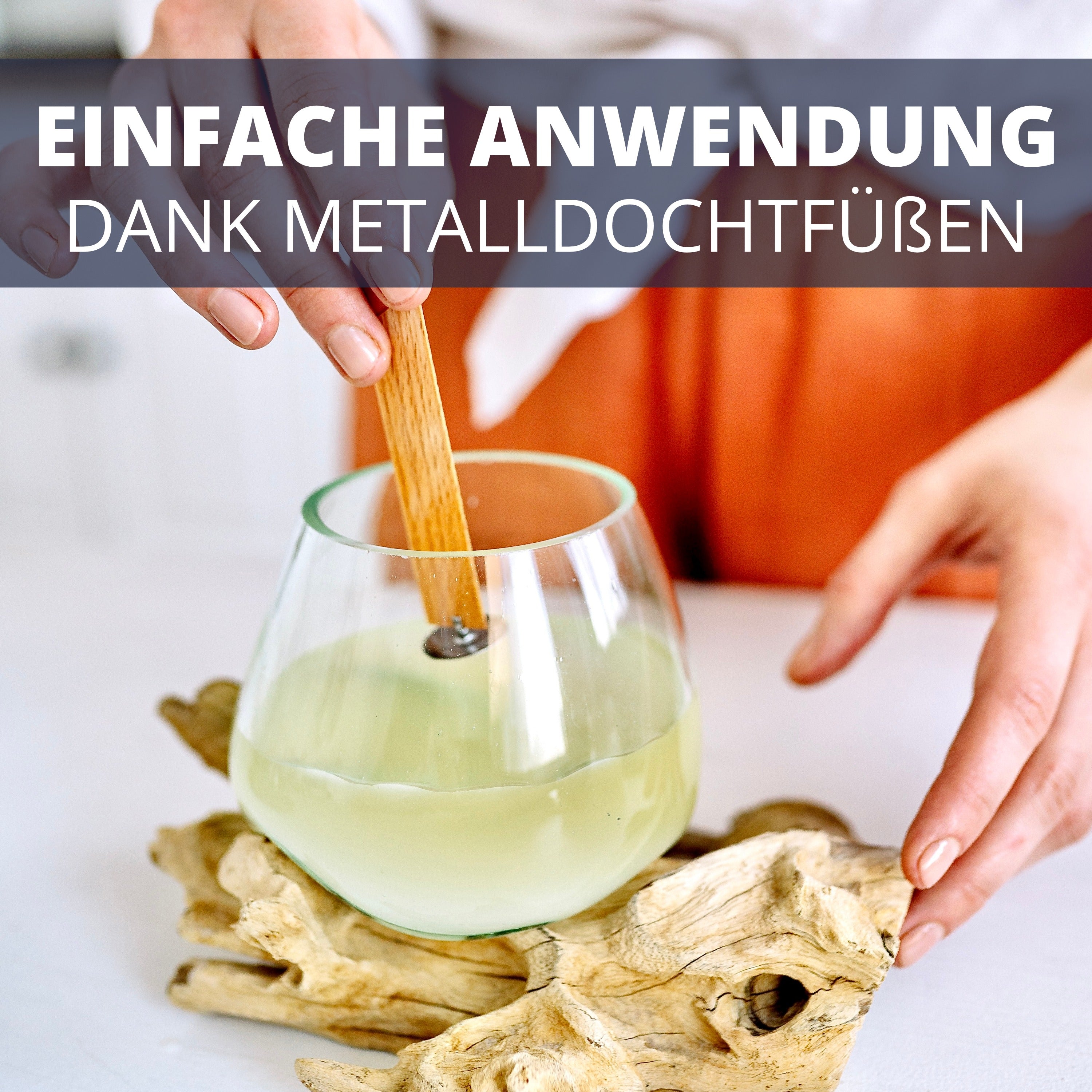 Unsere Holzdochte mit 70 mm Länge sind perfekt zum Gießen eigener Kerzen geeignet, bei denen Sie Wert auf Qualität und Natürlichkeit legen. Unsere Holzdochte bestehen aus dünnem und unbehandeltem natürlichen Holz. Jeder dieser Dochte wird so angefertigt, dass er nach dem Anzünden eine saubere (d. h. raucharme und rückstandsfreie) helle Flamme liefert. Die Verwendung dieses Dochtes ist einfach. Befestige den Holzdocht an dem Metallhalter. Lege es auf den Boden des Behälters. Platziere es mittig und gieße das Wachs drüber. Es ist für Kerzen mit bis zu einem Durchmesser von 75mm geeignet. Vor der Verwendung solltest du den Docht auf ca. 1cm kürzen. Dieser Docht ist für mit unseren 300ml bestens geeignet.