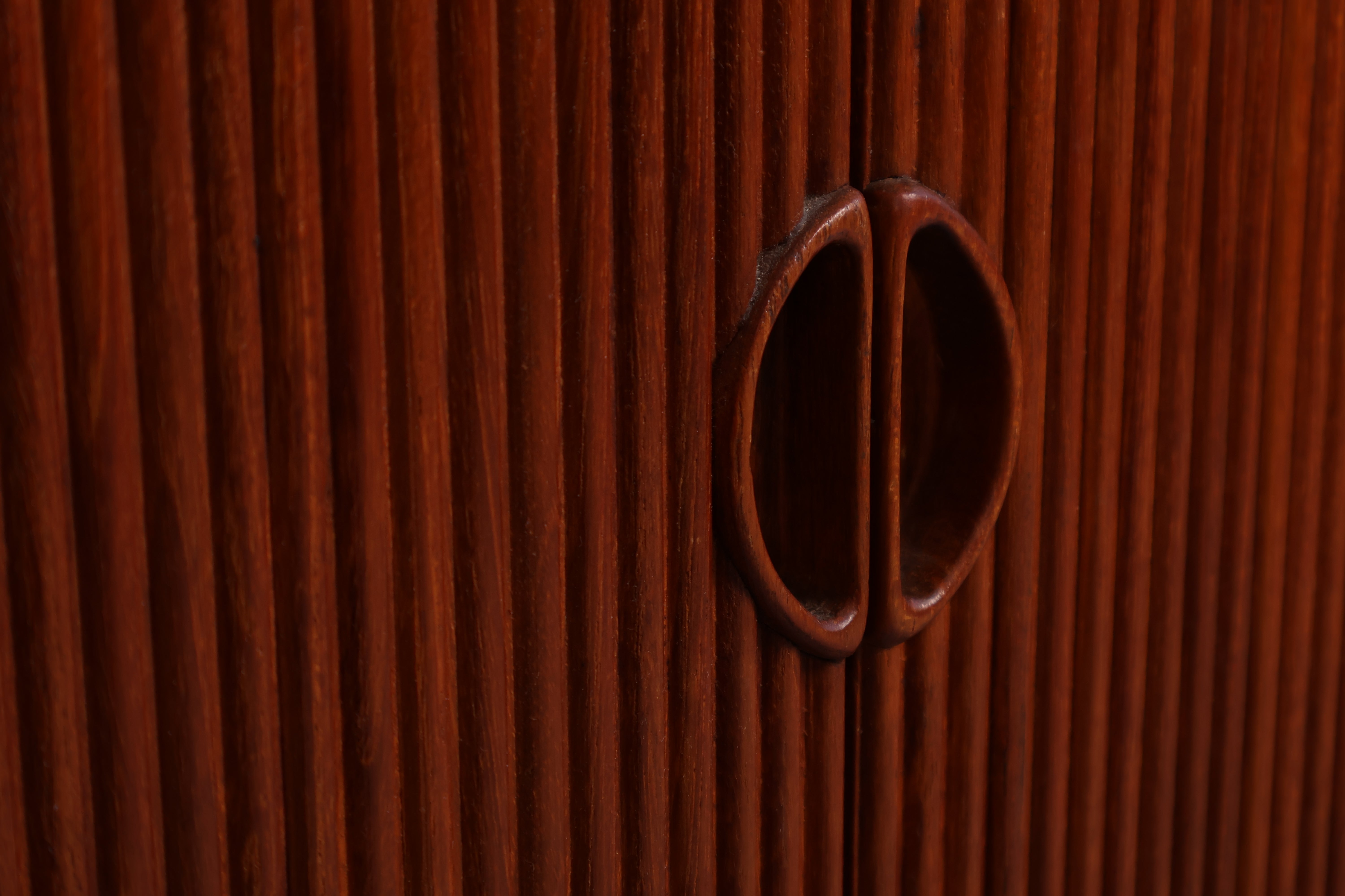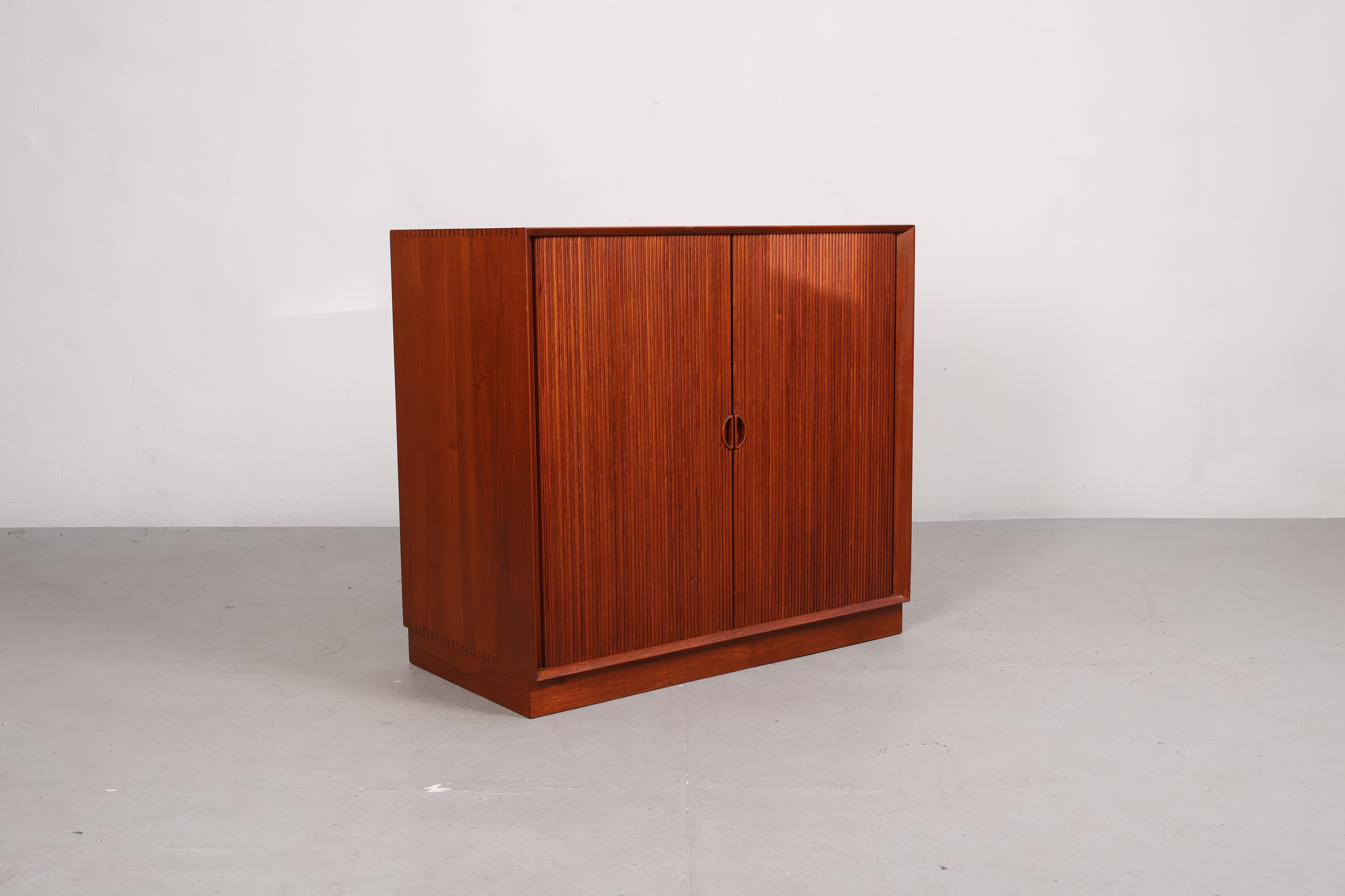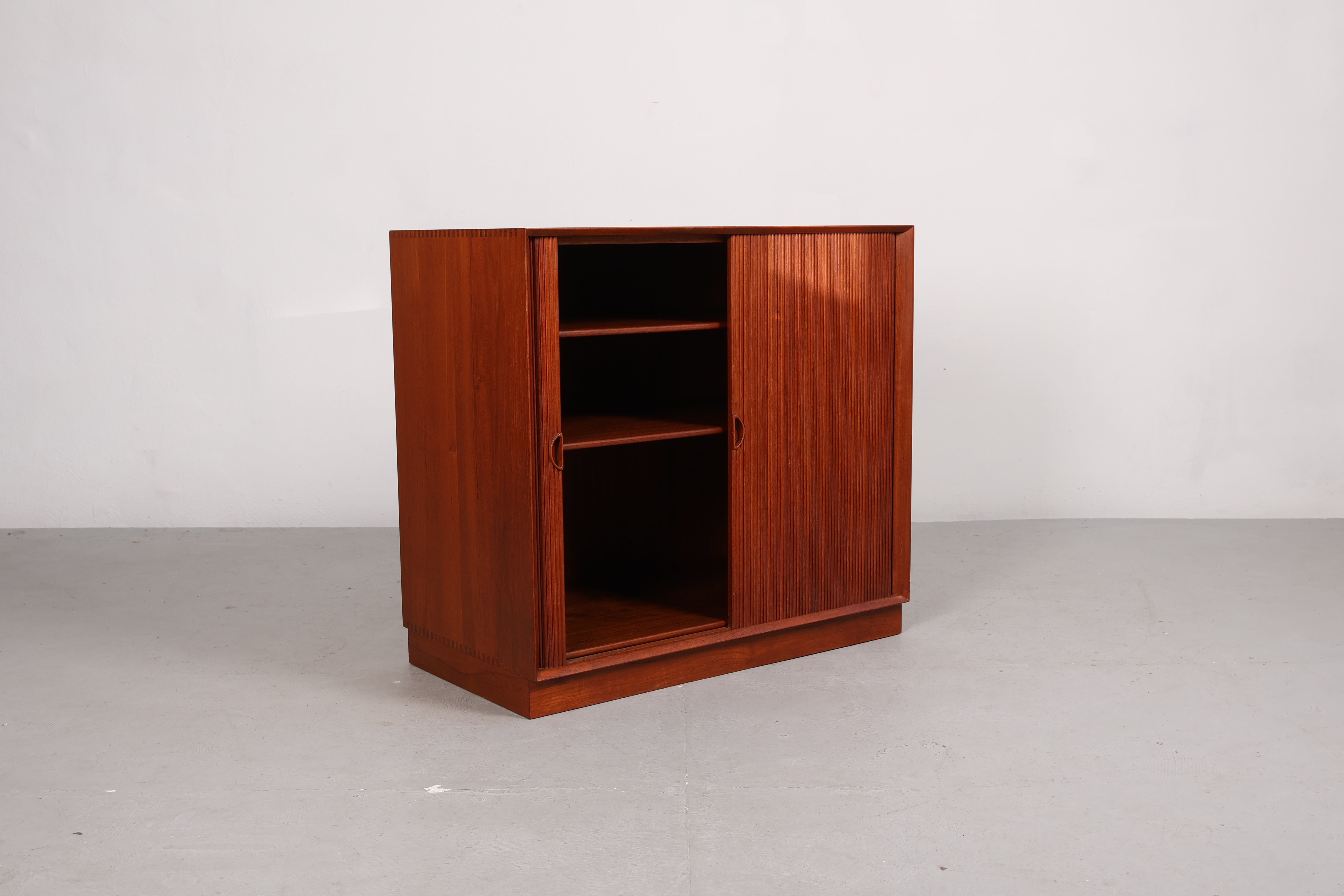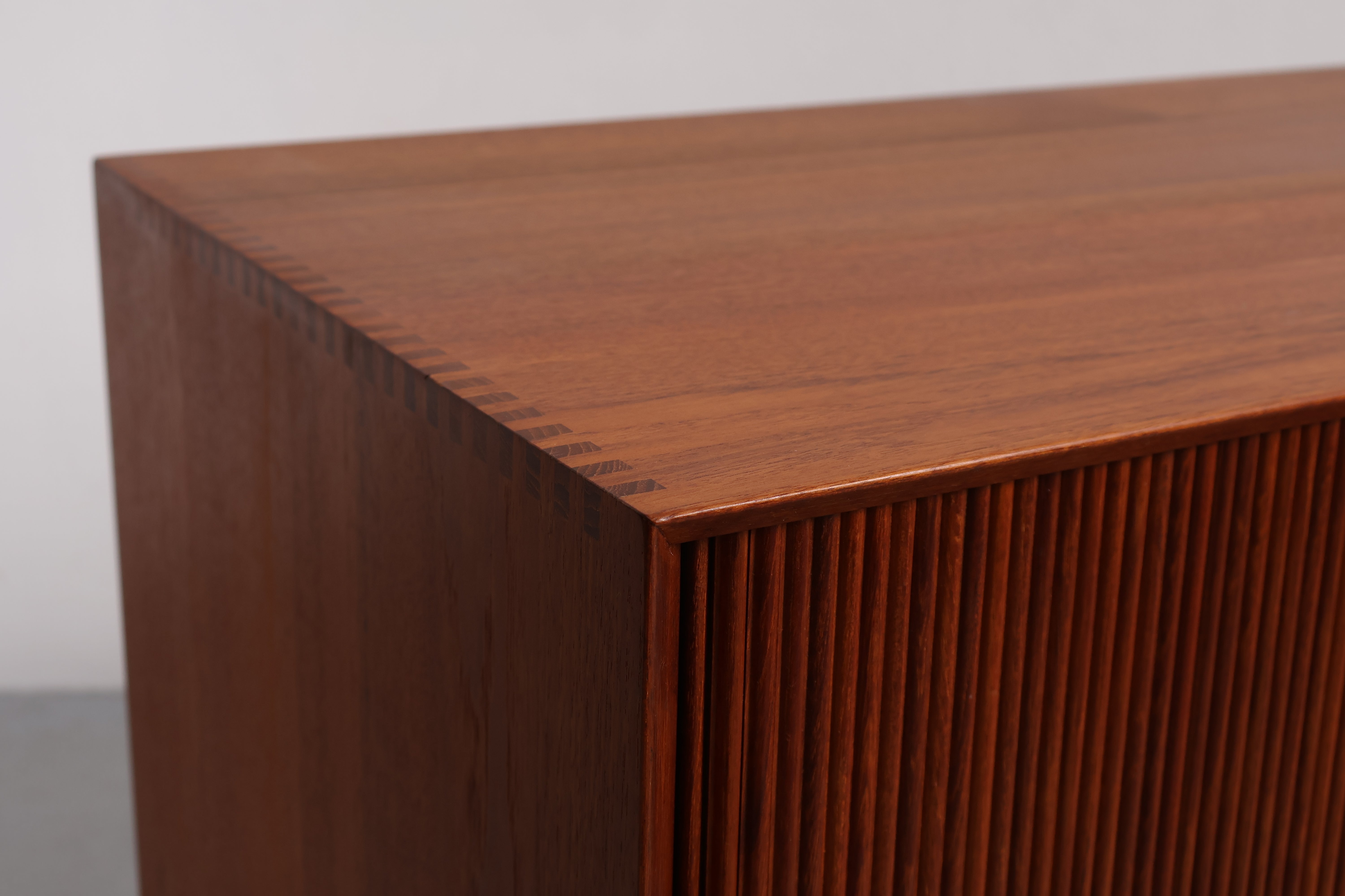 Kommode „Lamellentüren“ aus den 60er-Jahren von Peter Hvidt. Hergestellt in Dänemark. Gefertigt aus Teak. Höhe 83 cm, Breite 90 cm, Tiefe 48 cm.