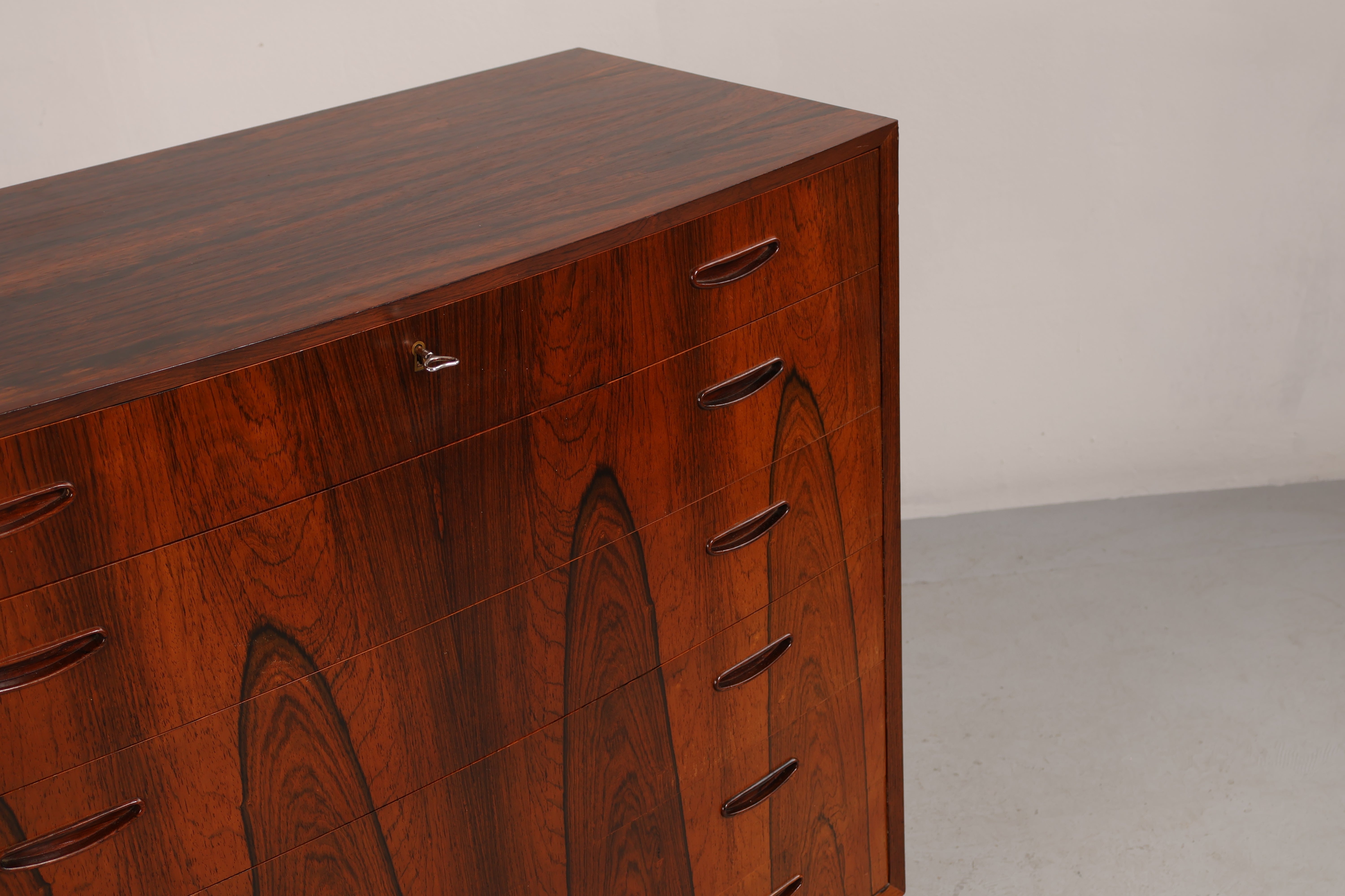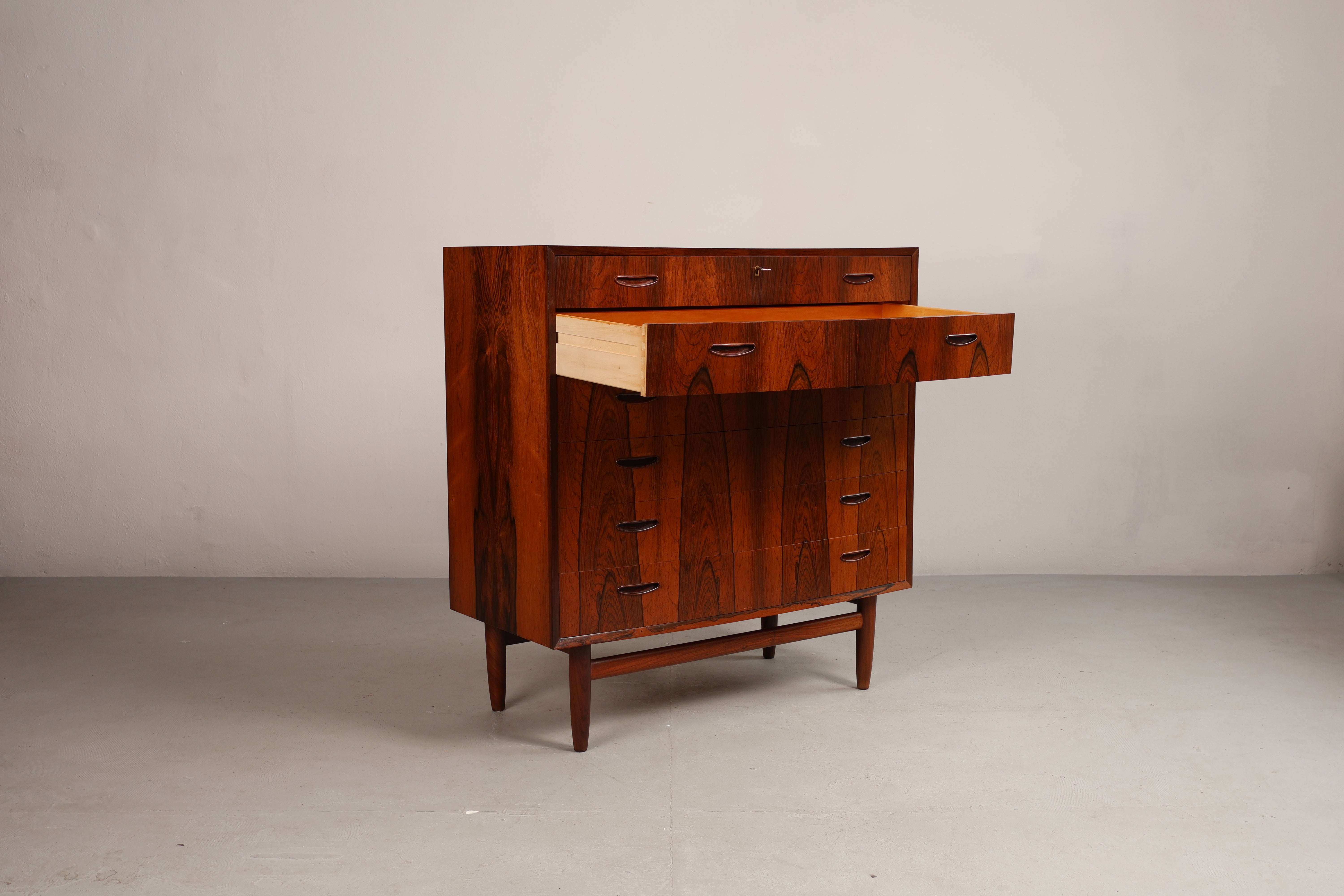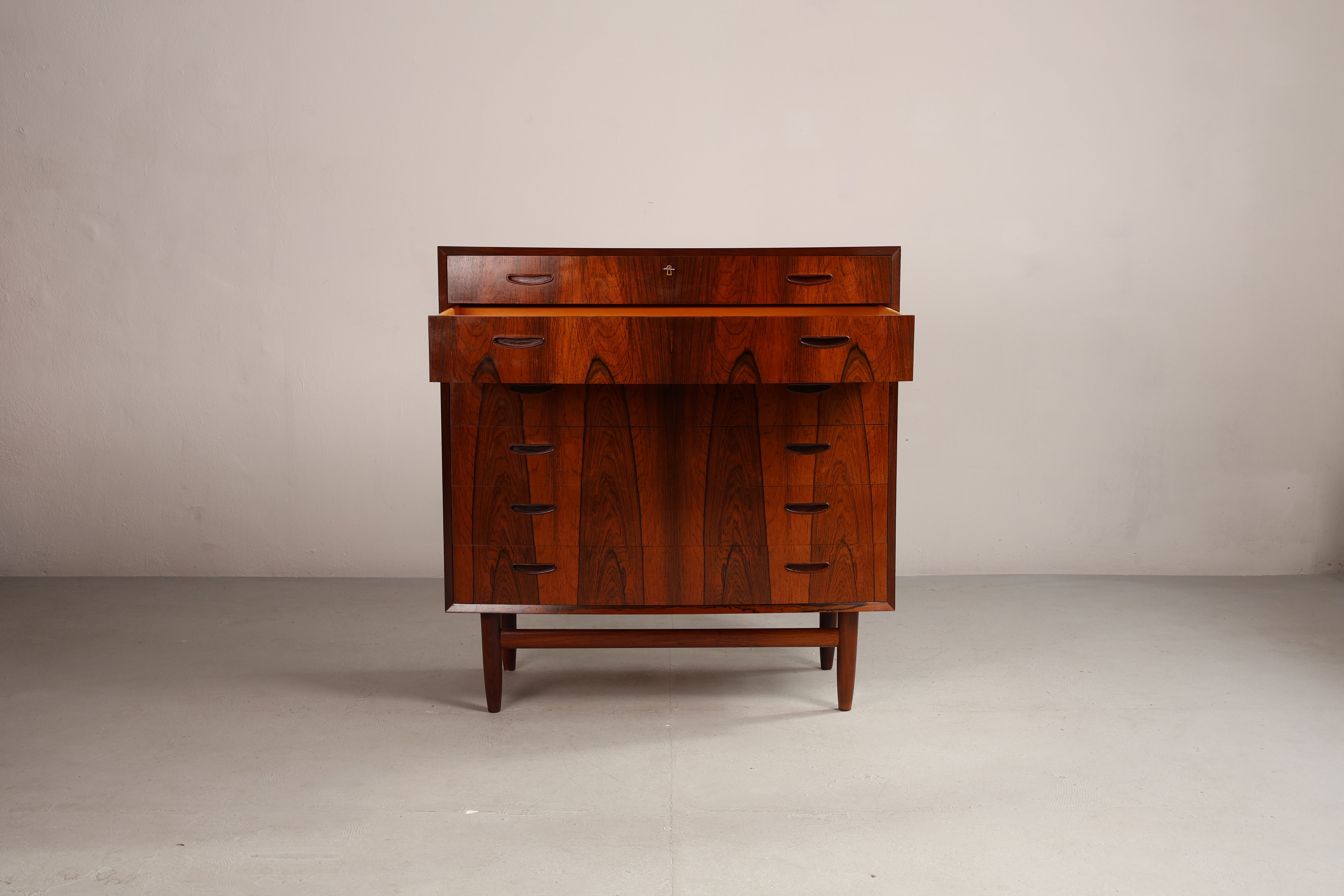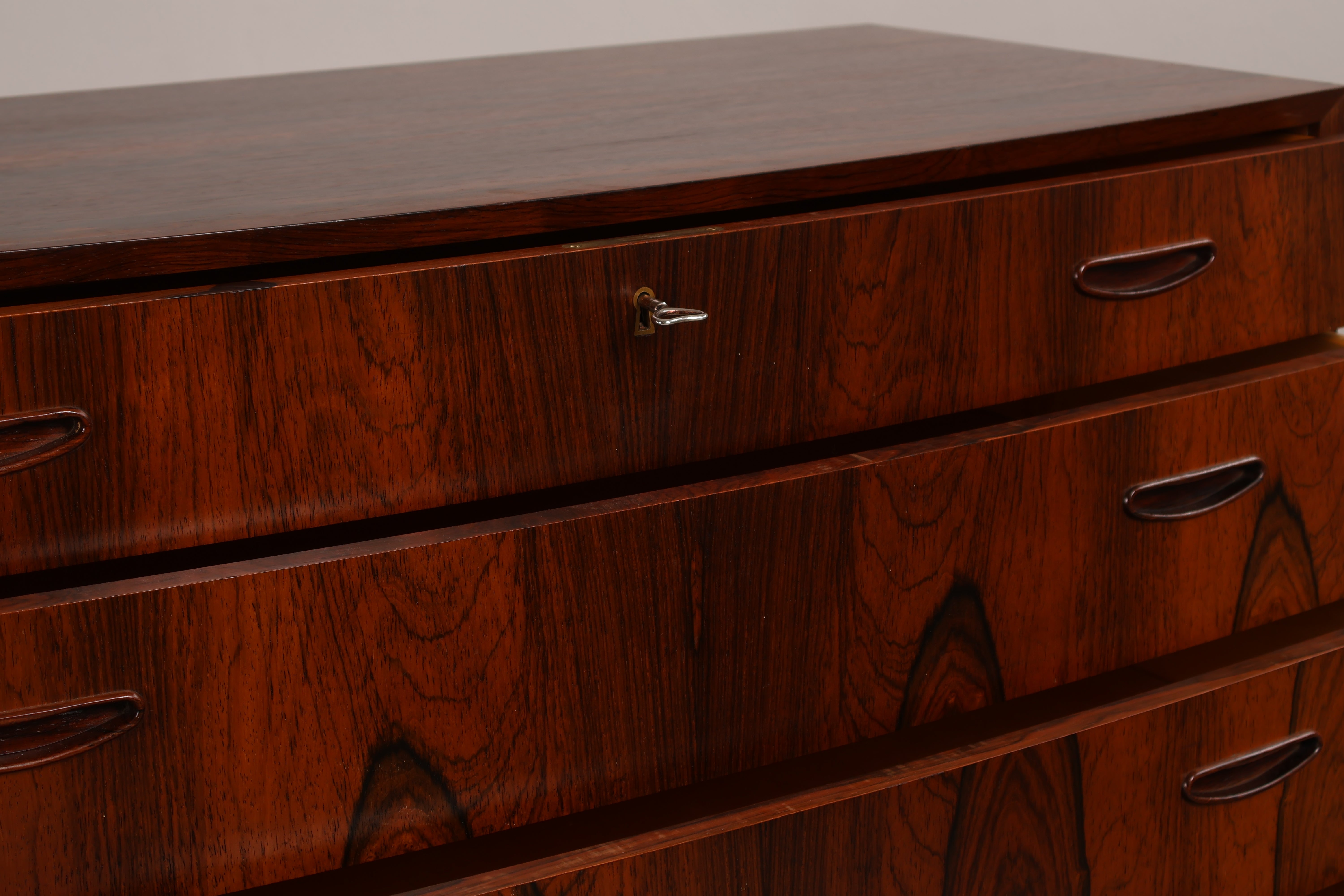 Kommode aus den 60er-Jahren. Hergestellt in Dänemark. Gefertigt aus Palisander. Höhe 103 cm, Breite 98 cm, Tiefe 47 cm.