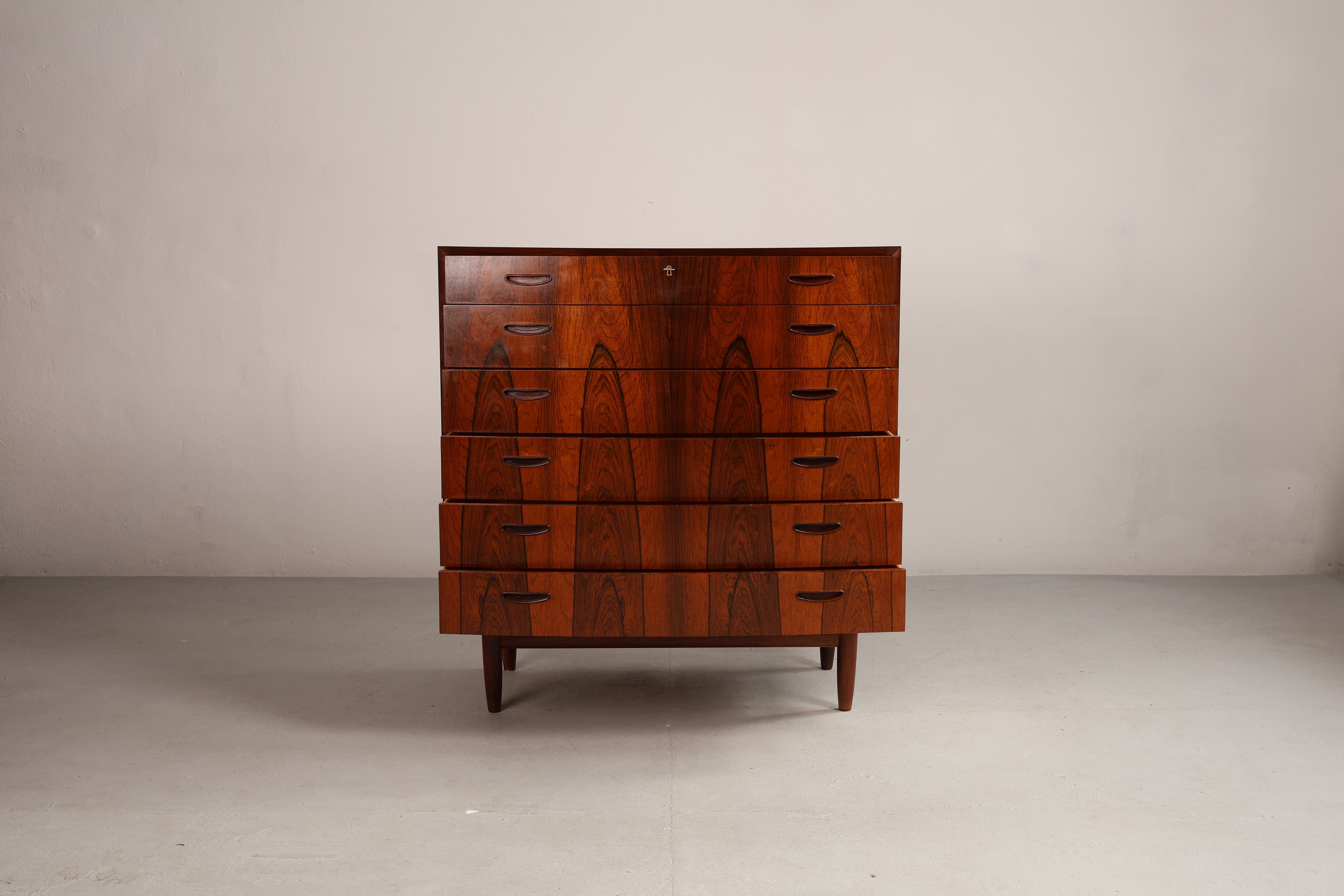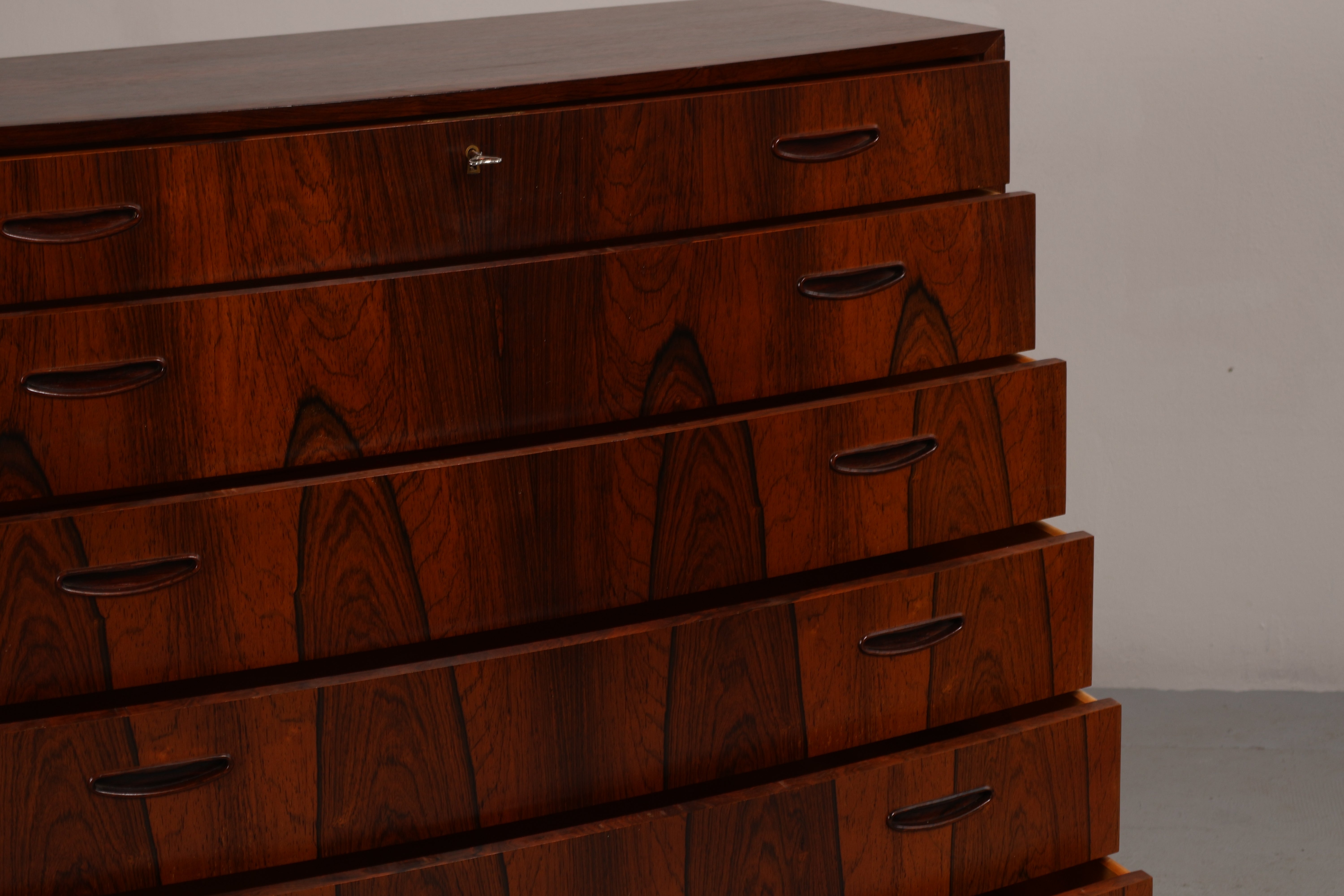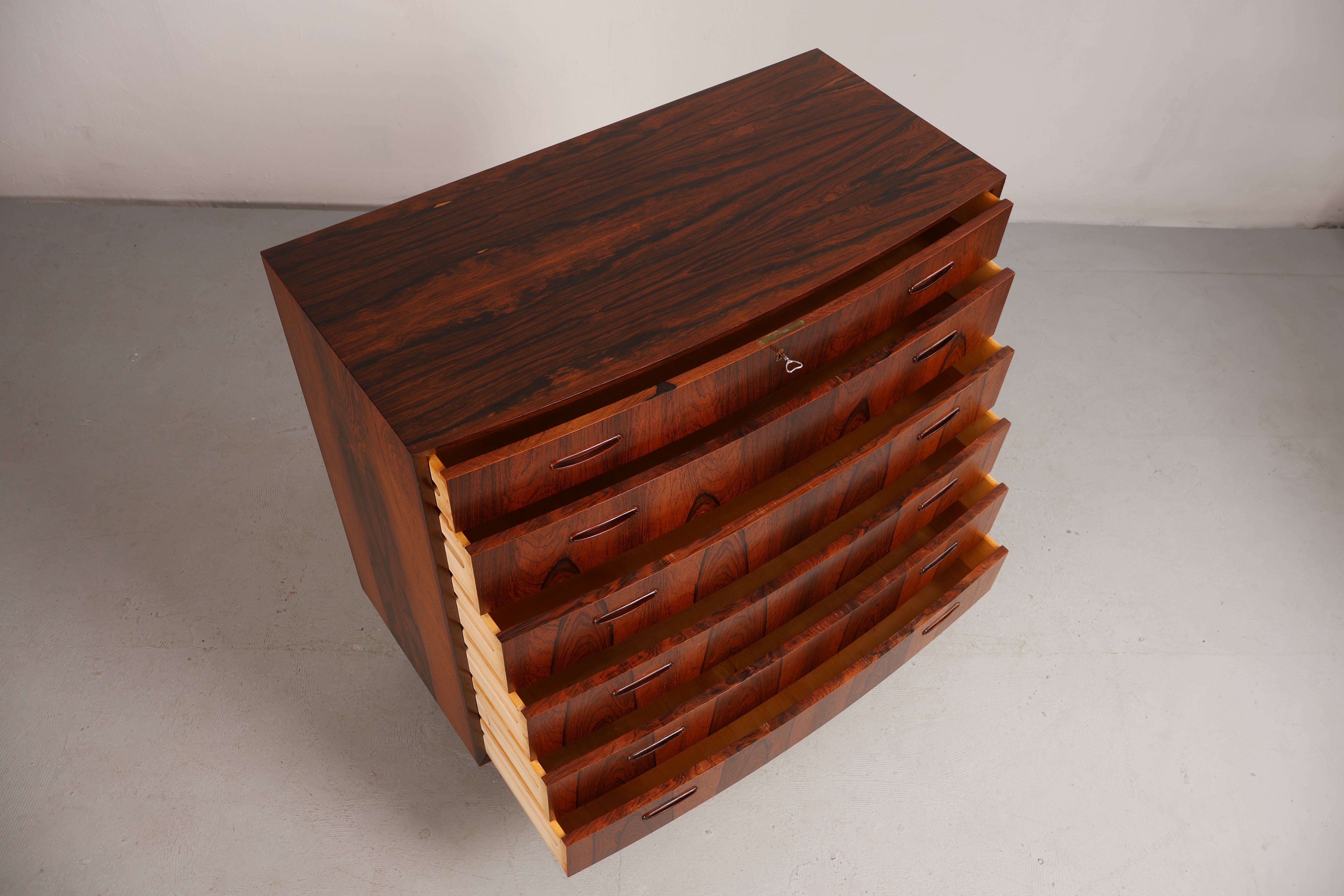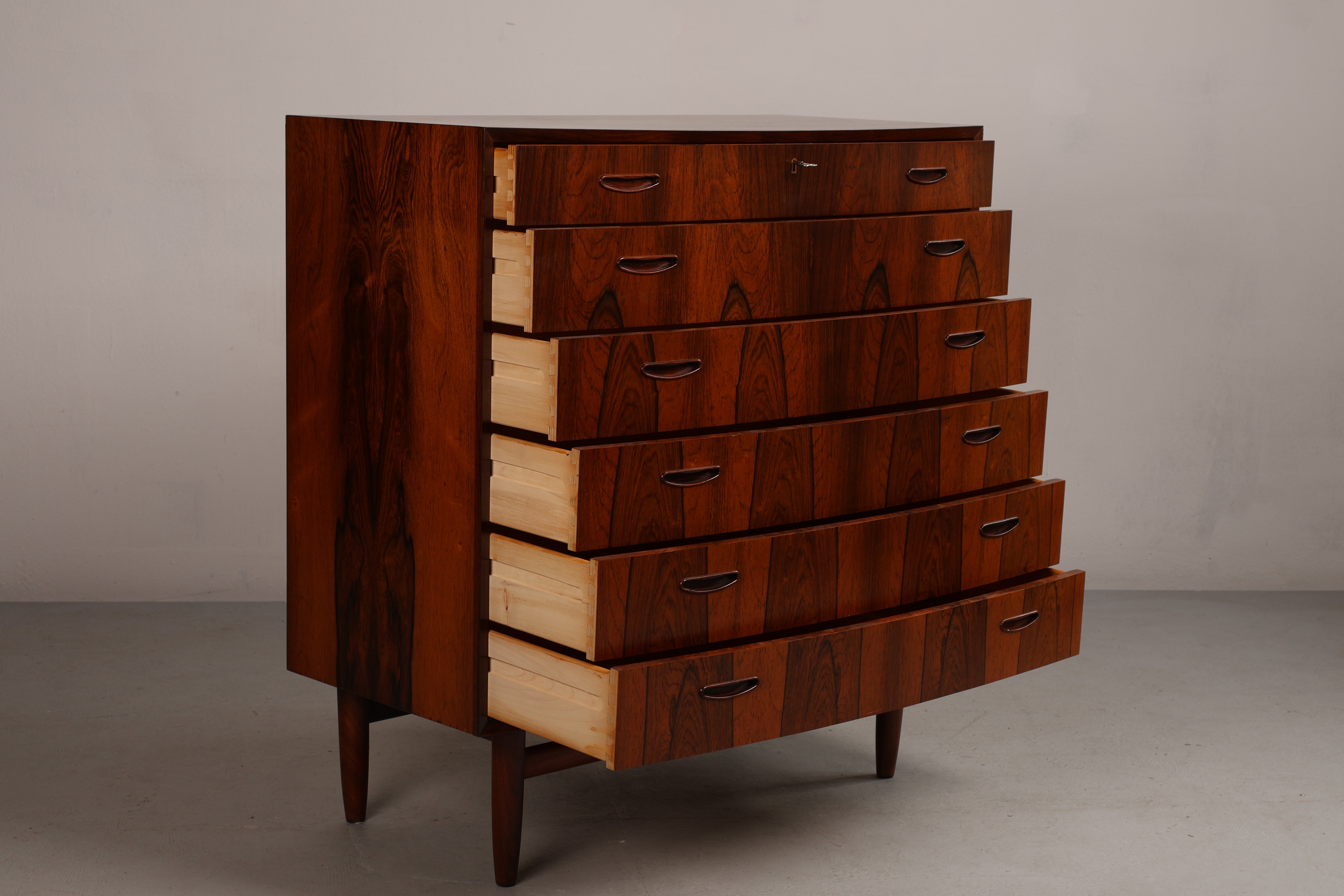 Kommode aus den 60er-Jahren. Hergestellt in Dänemark. Gefertigt aus Palisander. Höhe 103 cm, Breite 98 cm, Tiefe 47 cm.