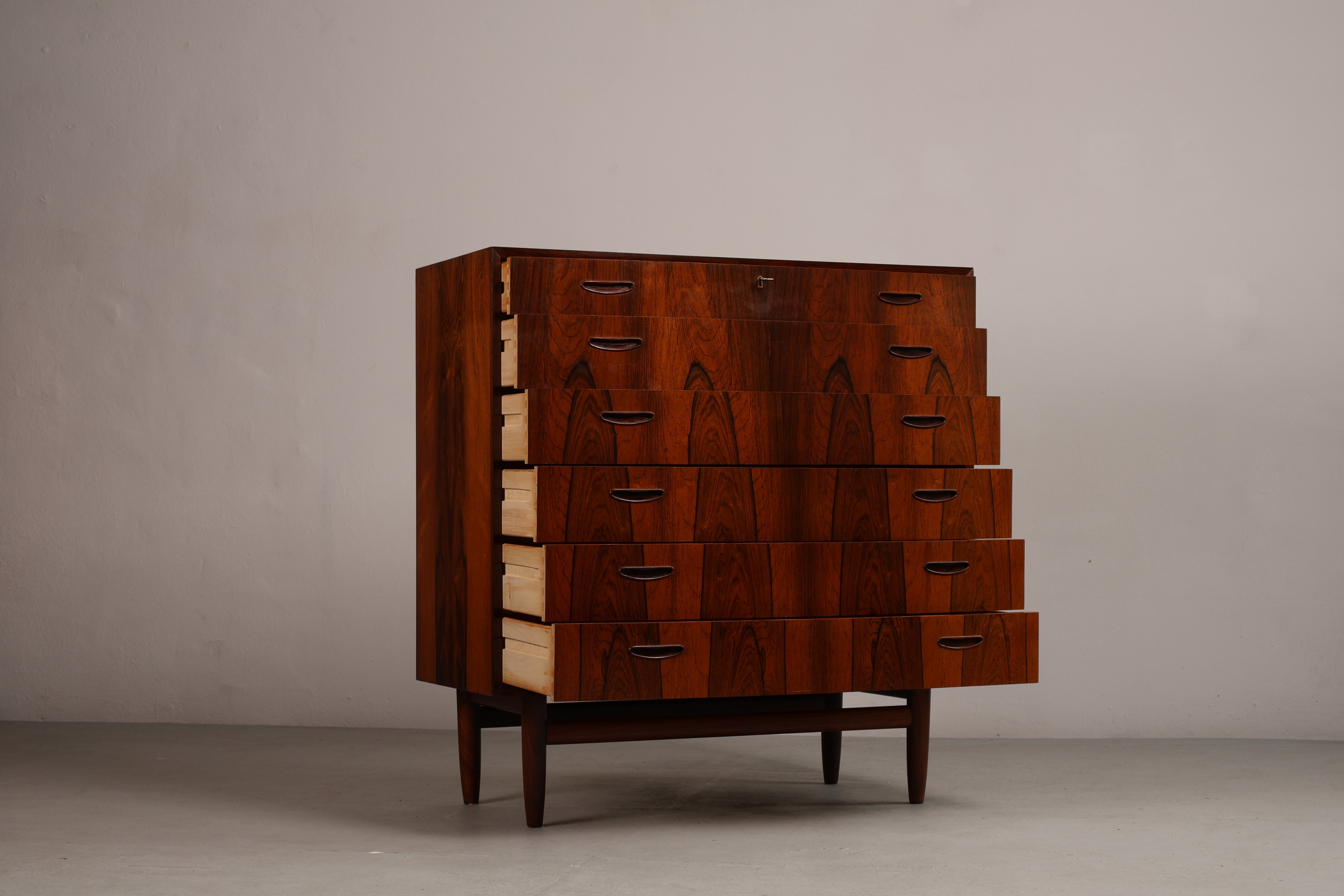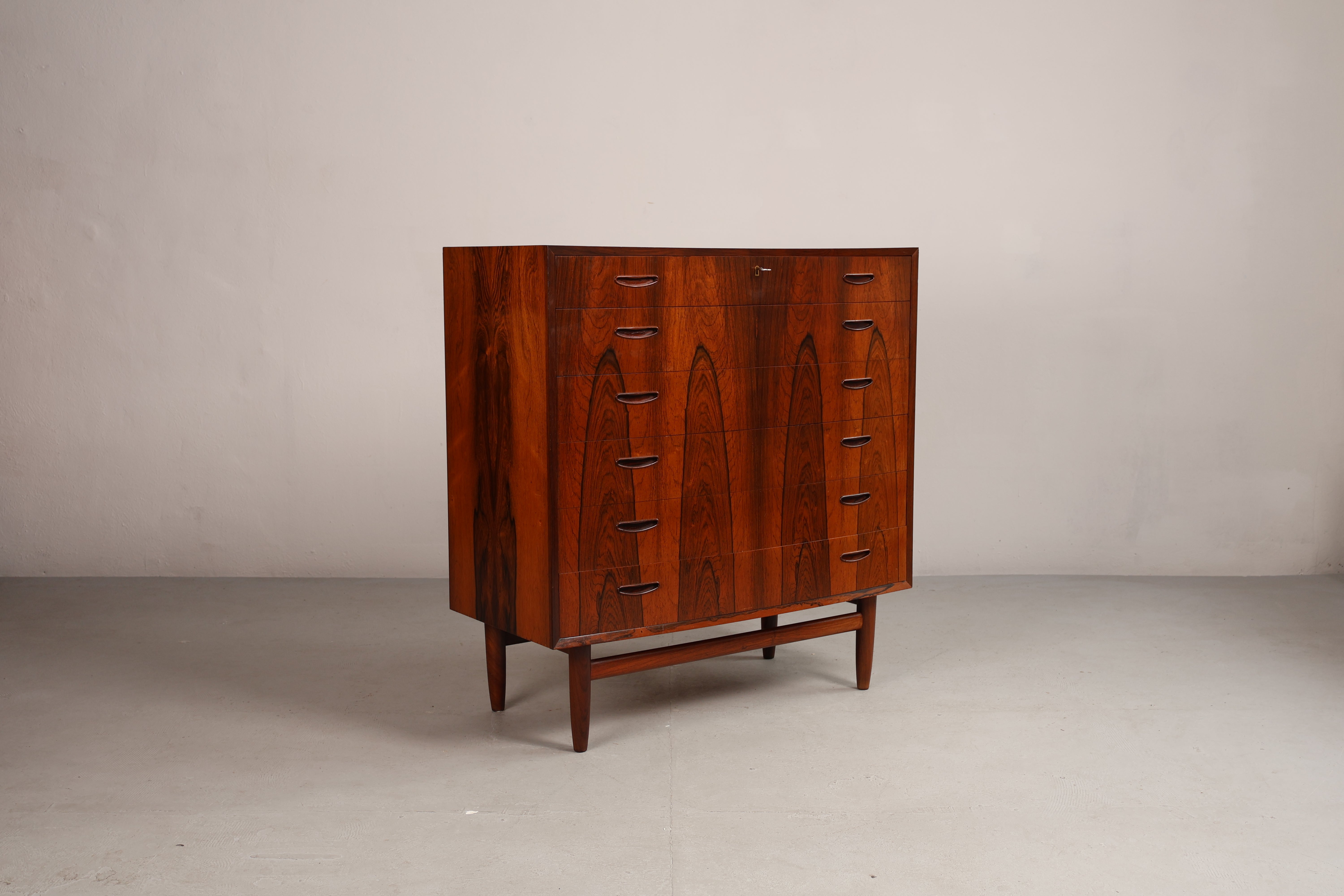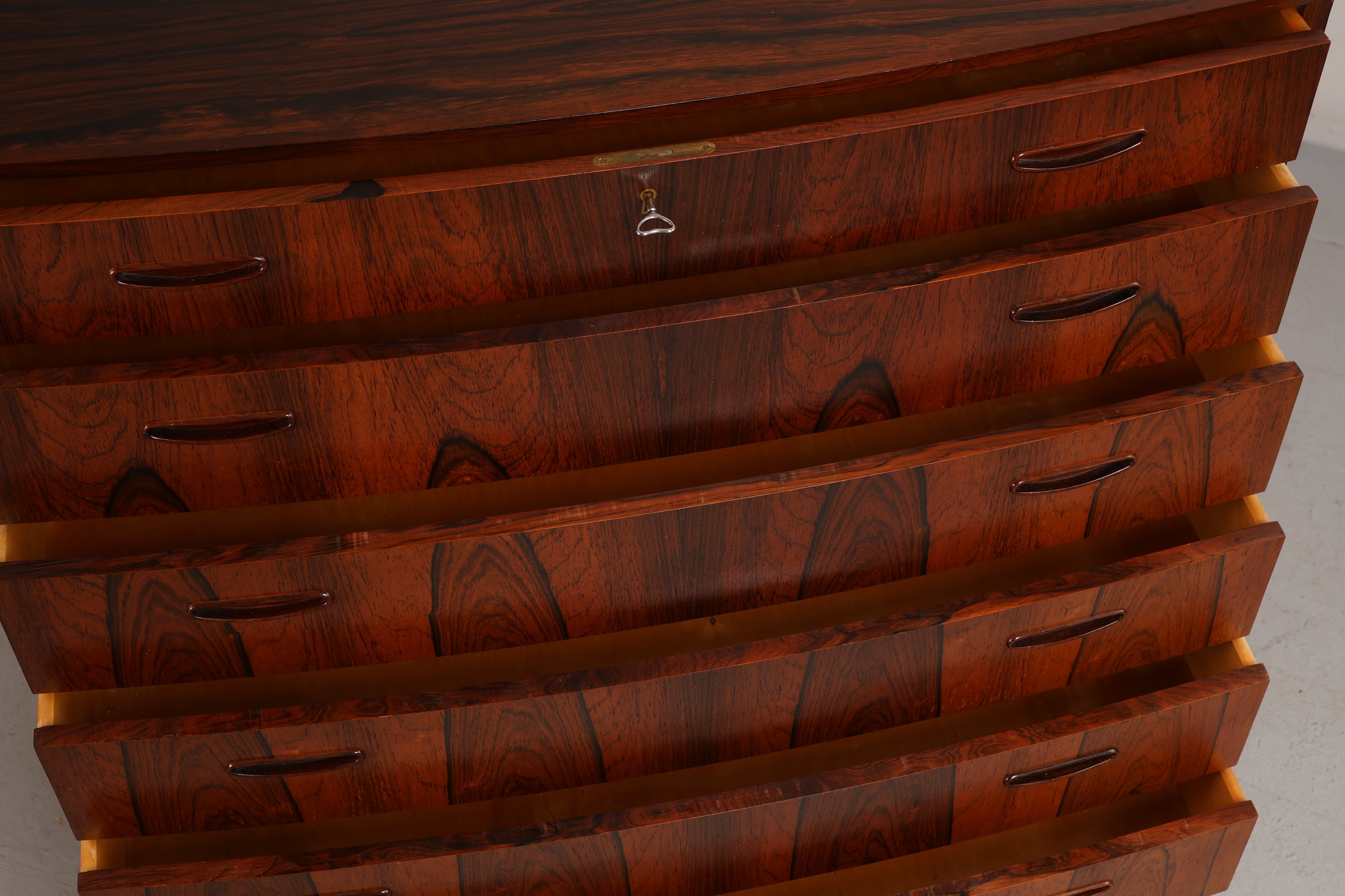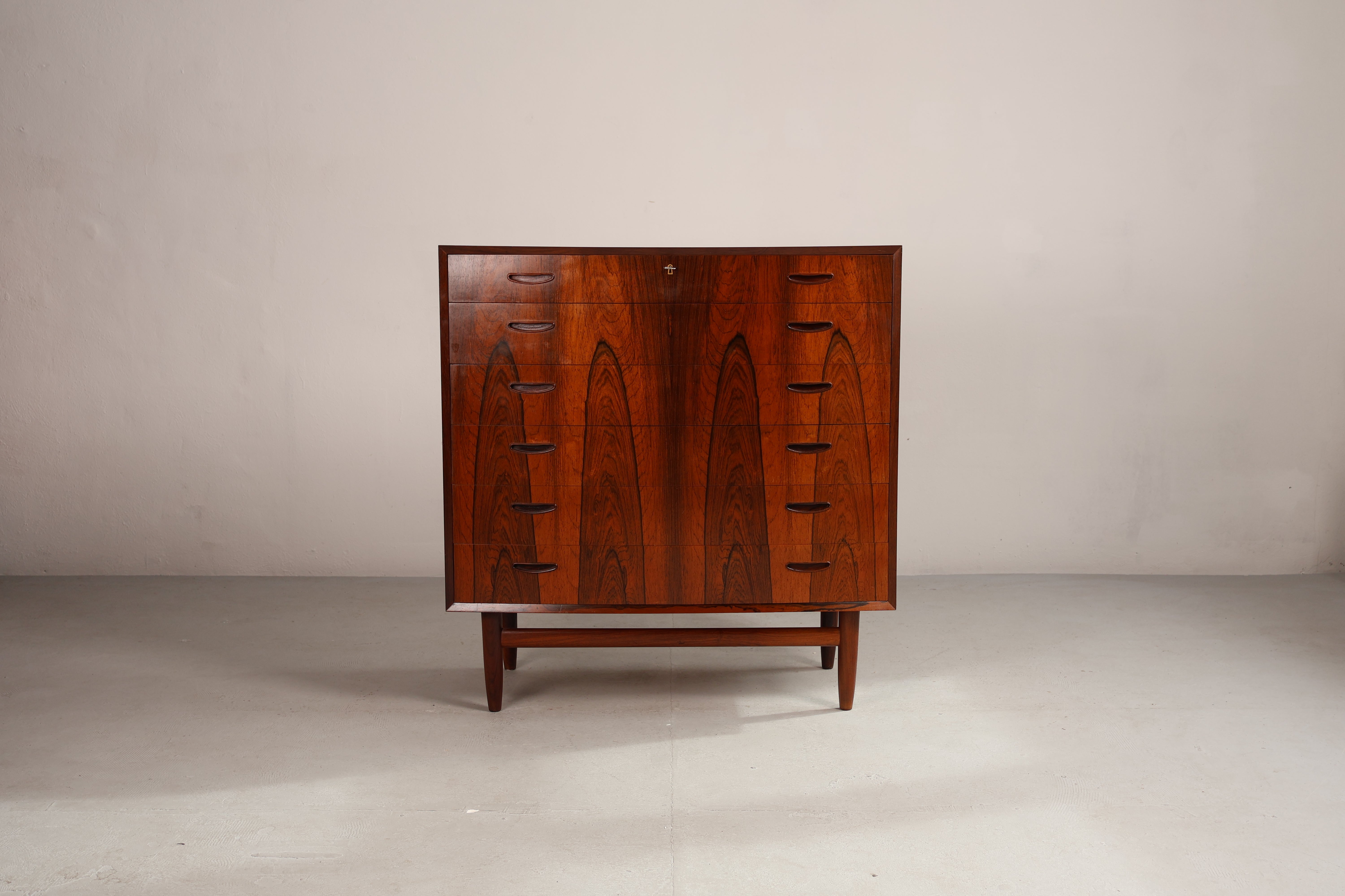 Kommode aus den 60er-Jahren. Hergestellt in Dänemark. Gefertigt aus Palisander. Höhe 103 cm, Breite 98 cm, Tiefe 47 cm.