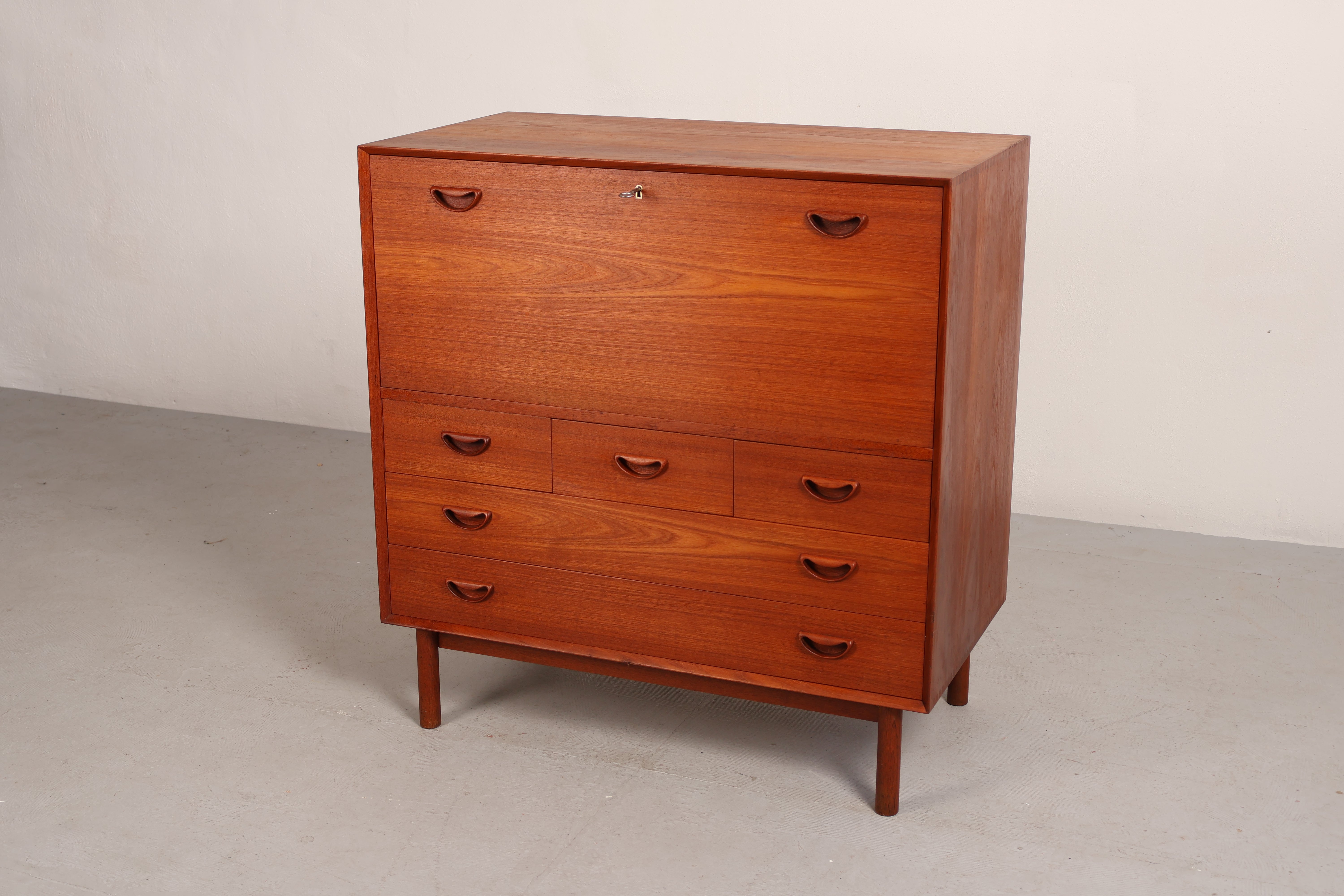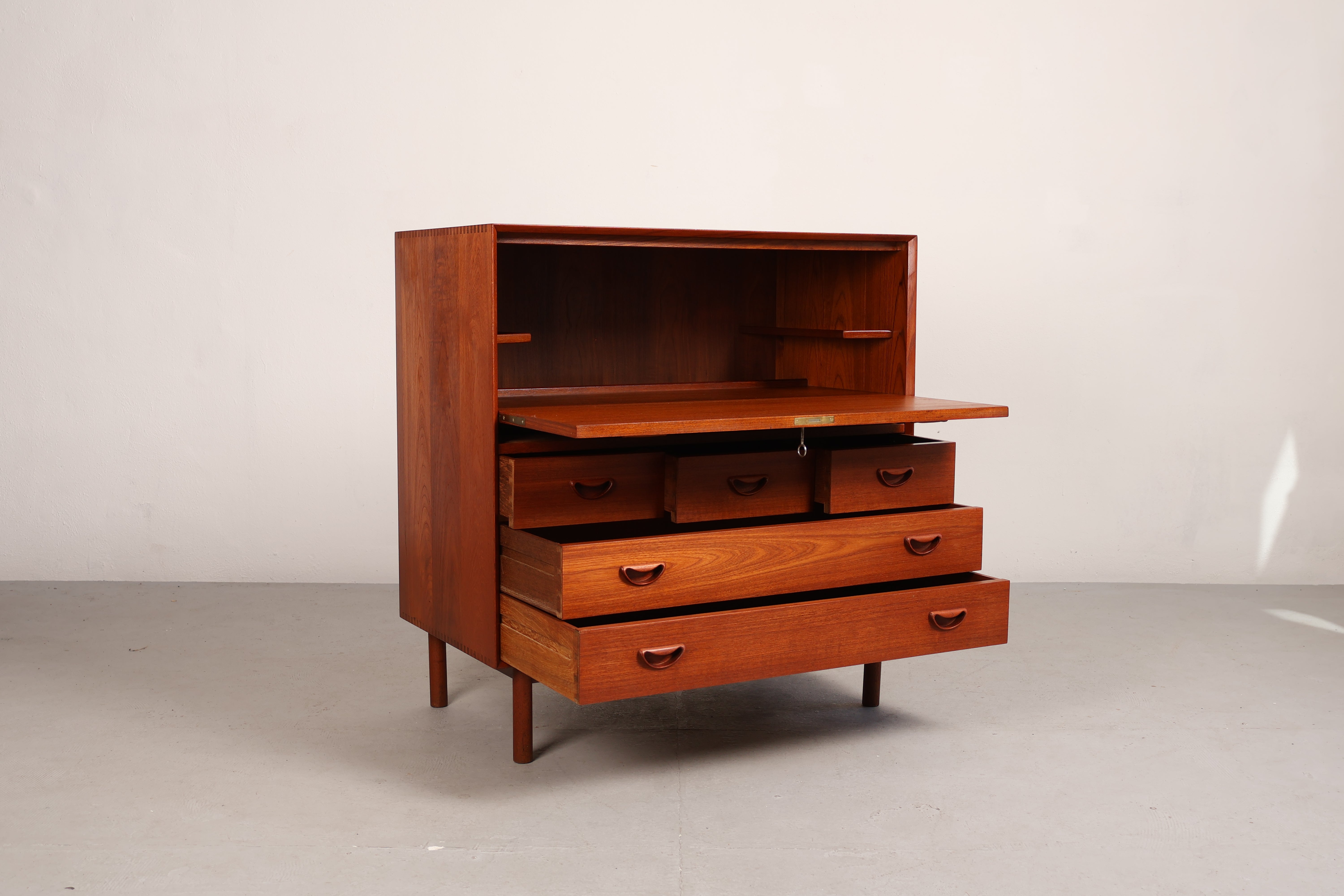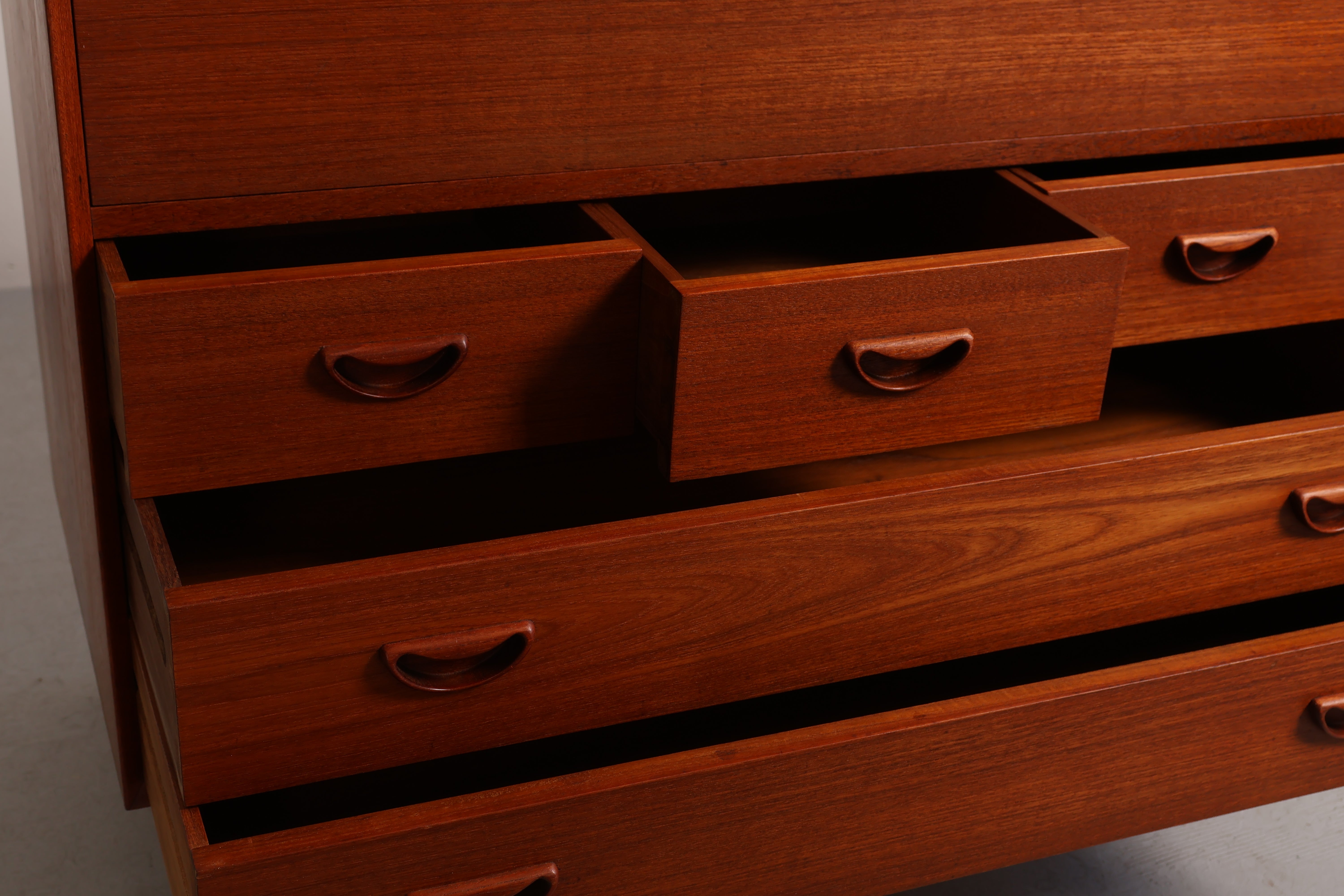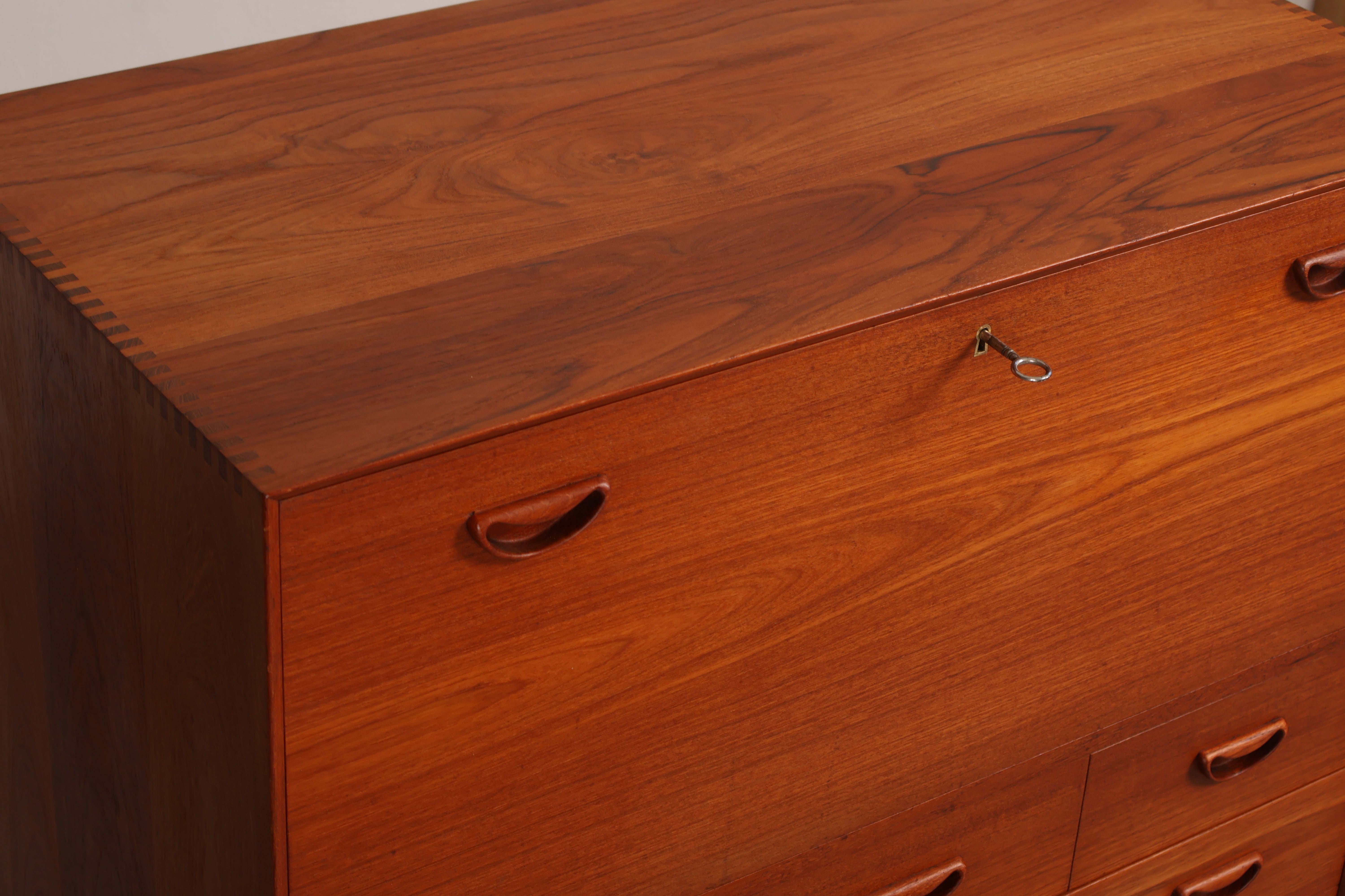 Kommode „Schubladen“ aus den 60er-Jahren von Peter Hvidt. Hergestellt in Dänemark. Gefertigt aus Teak. Höhe 94 cm, Breite 90 cm, Tiefe 48 cm.