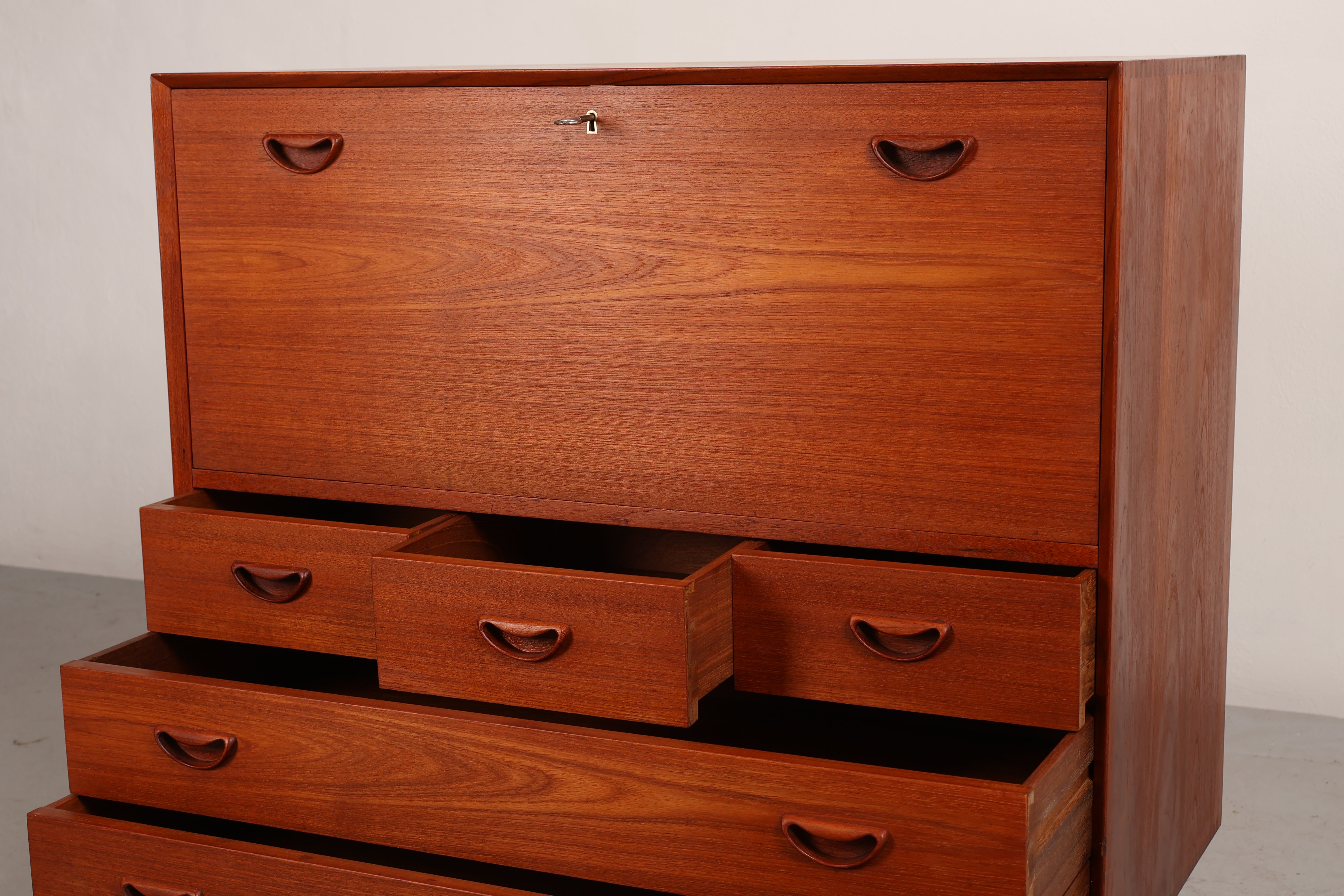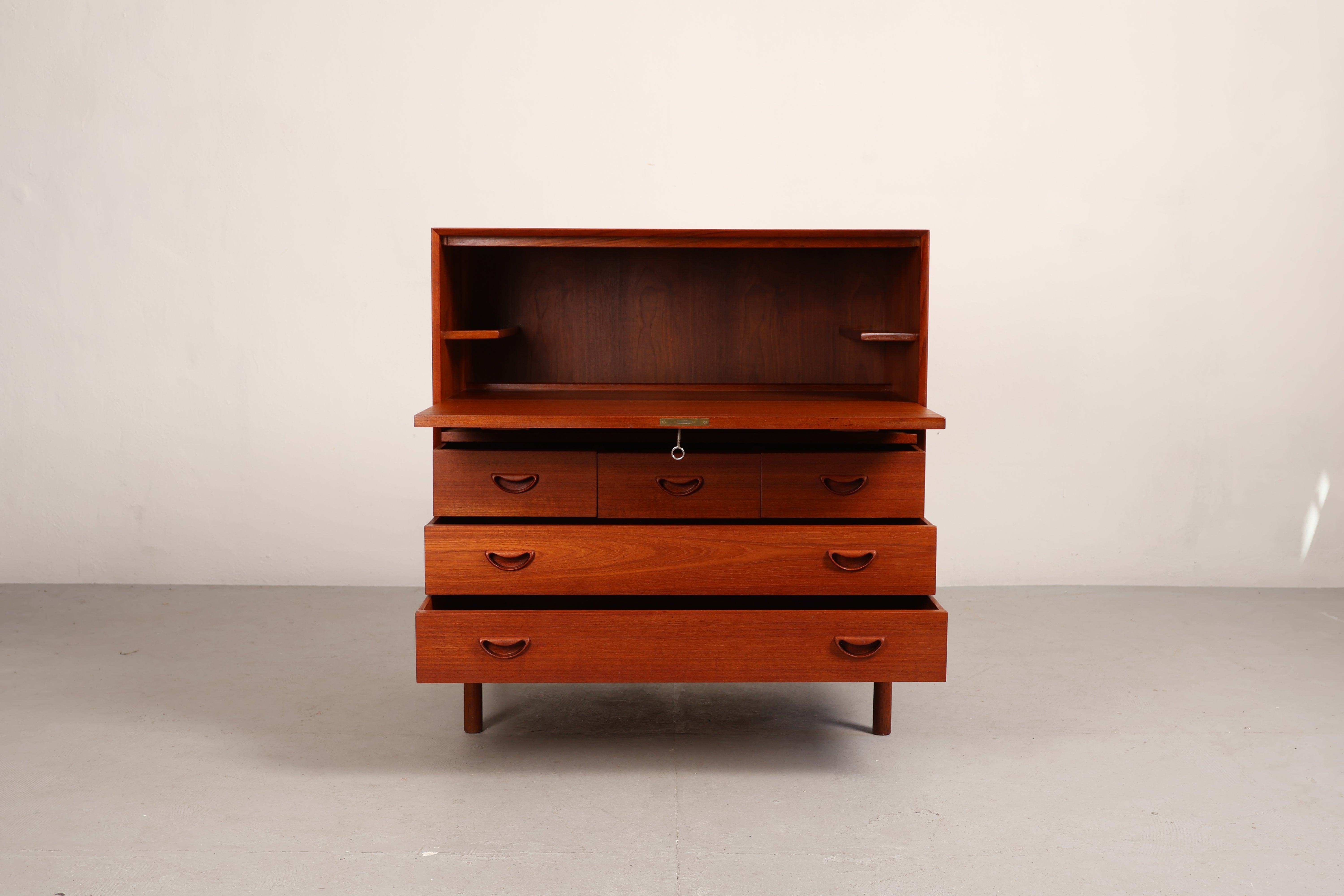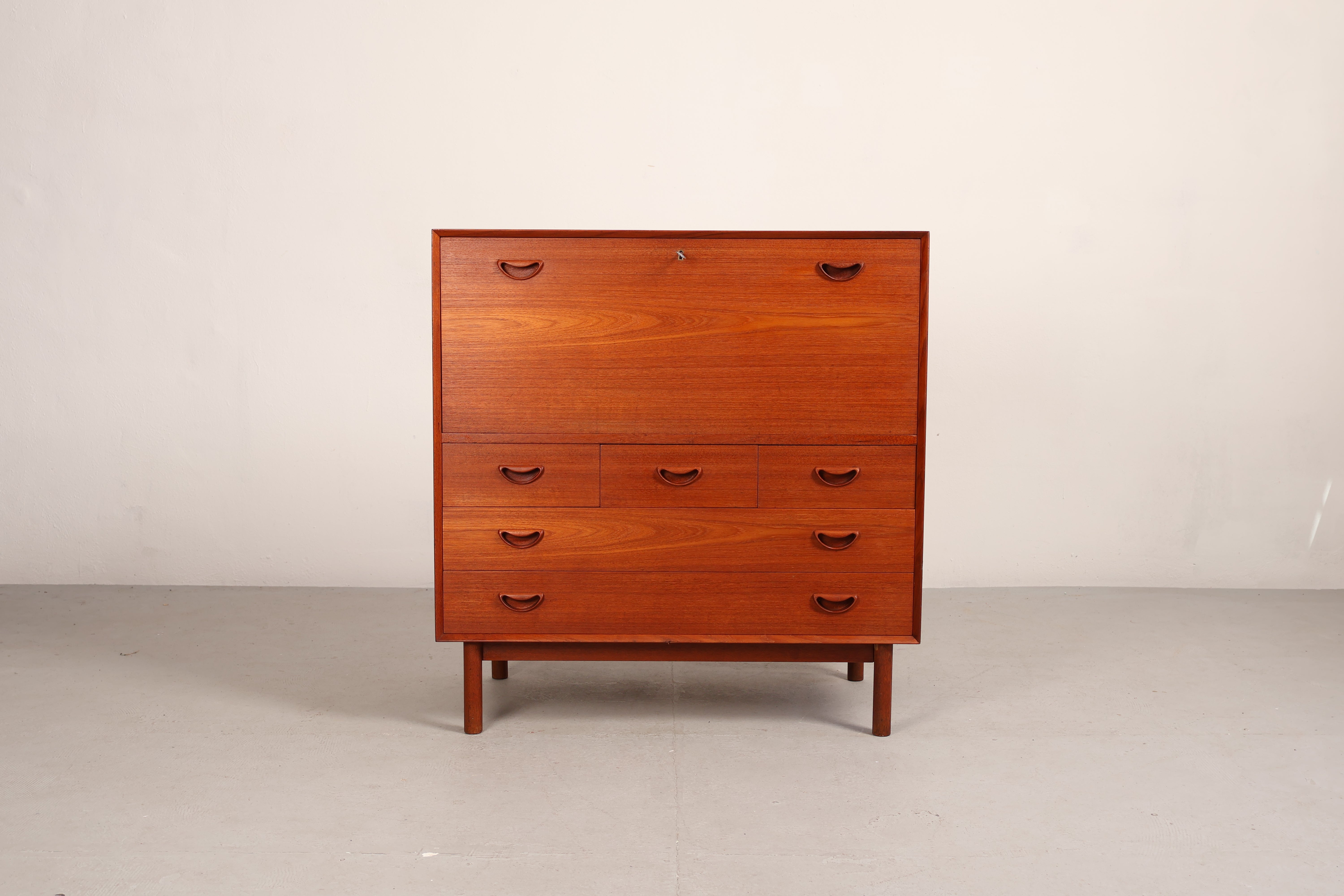 Kommode „Schubladen“ aus den 60er-Jahren von Peter Hvidt. Hergestellt in Dänemark. Gefertigt aus Teak. Höhe 94 cm, Breite 90 cm, Tiefe 48 cm.
