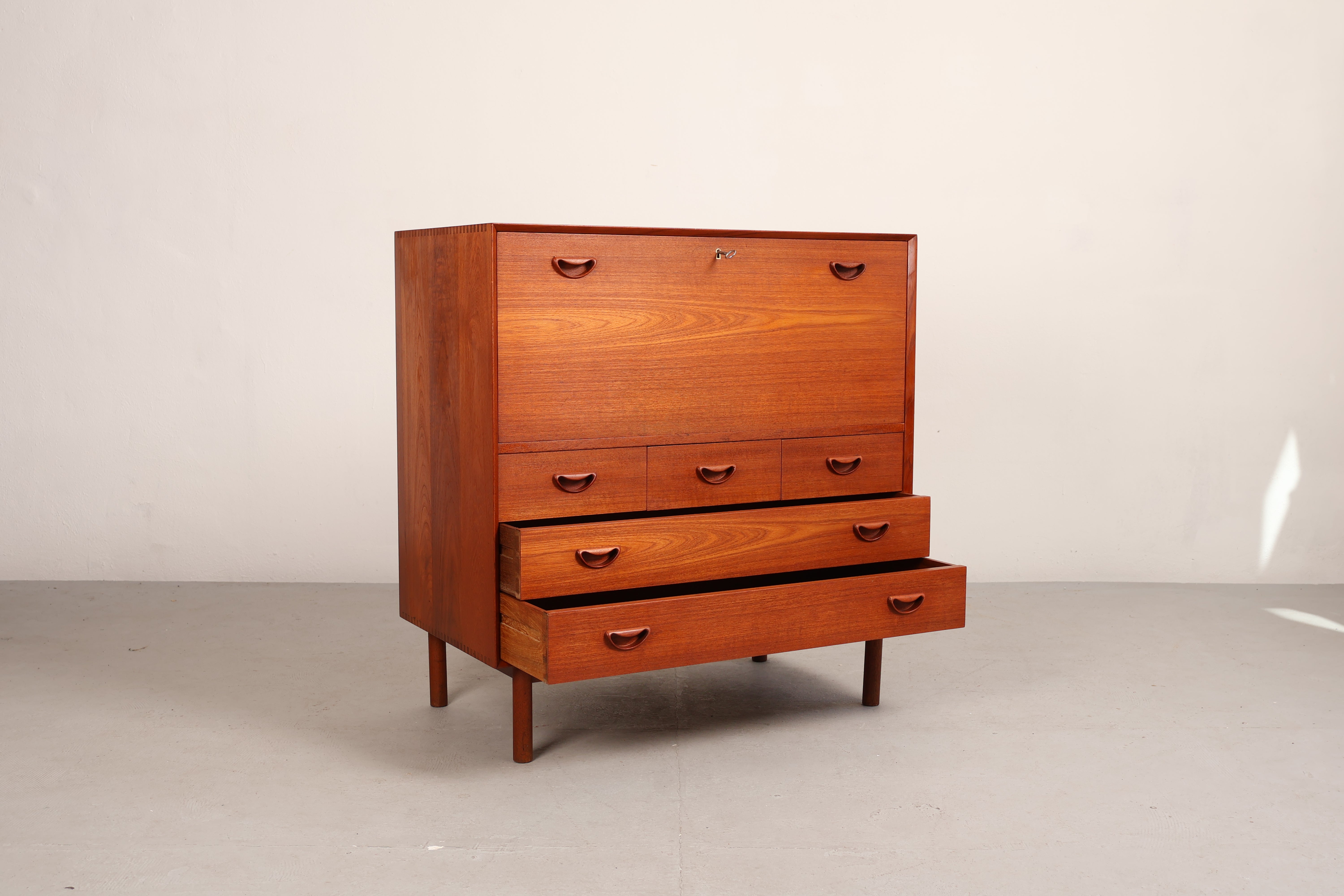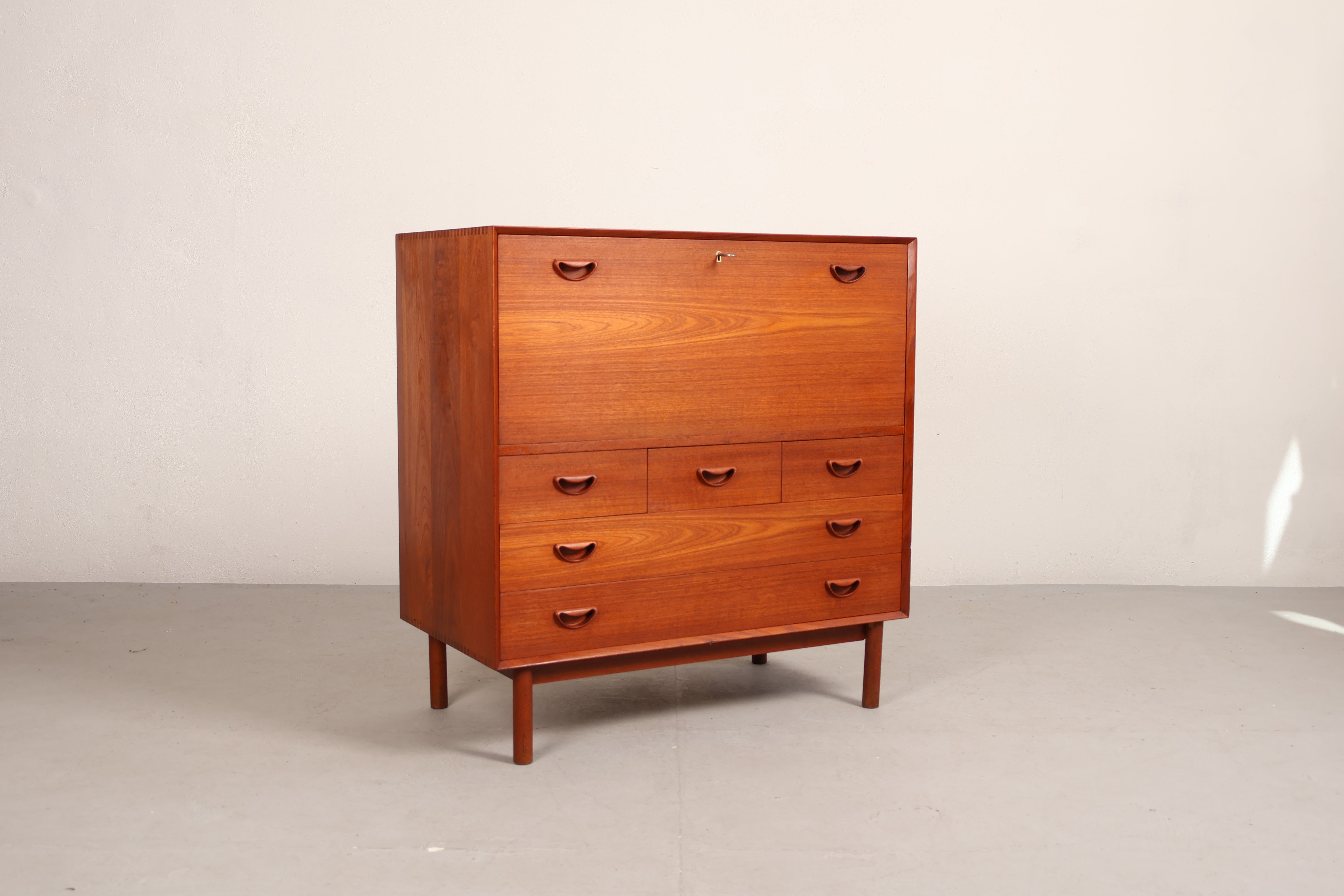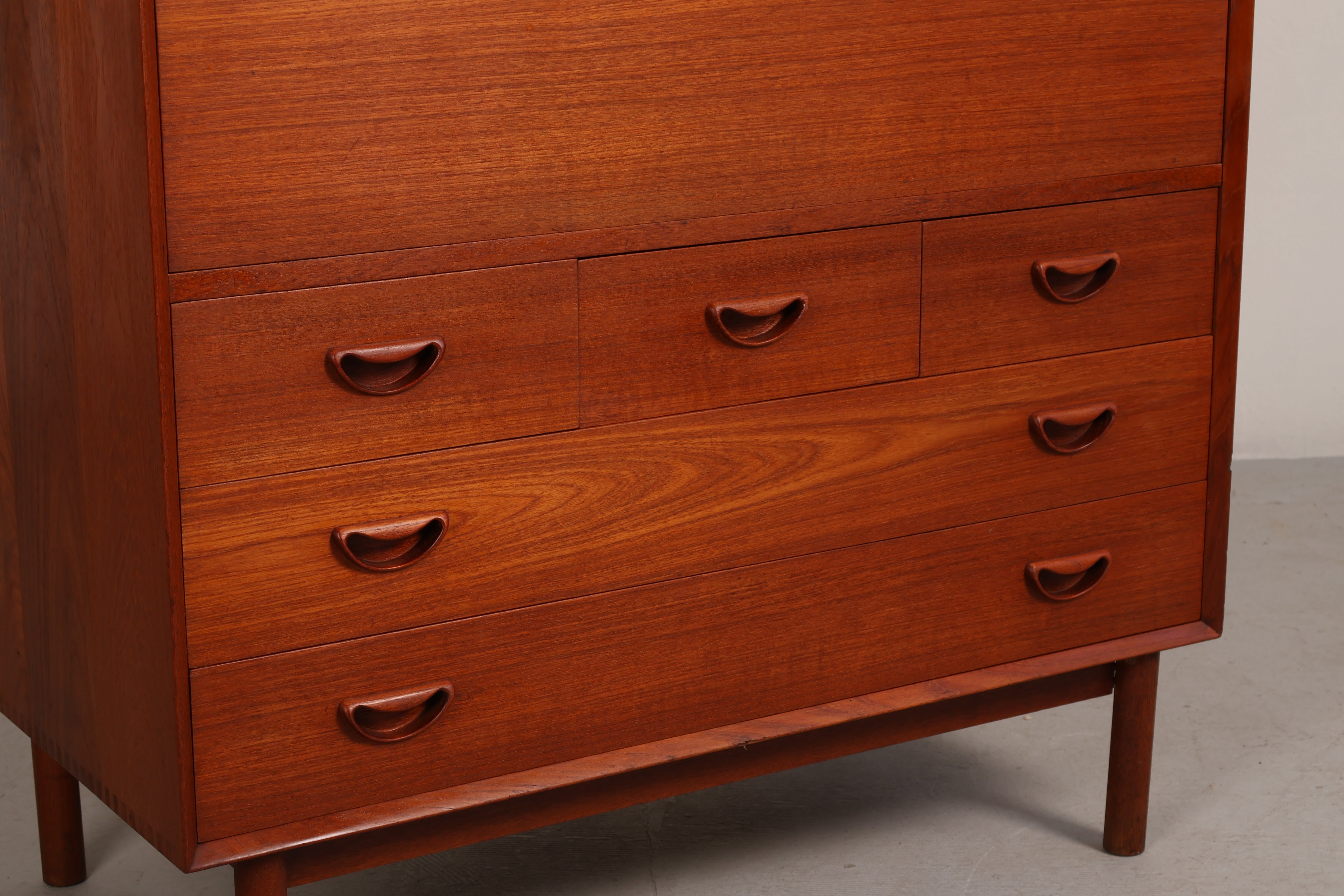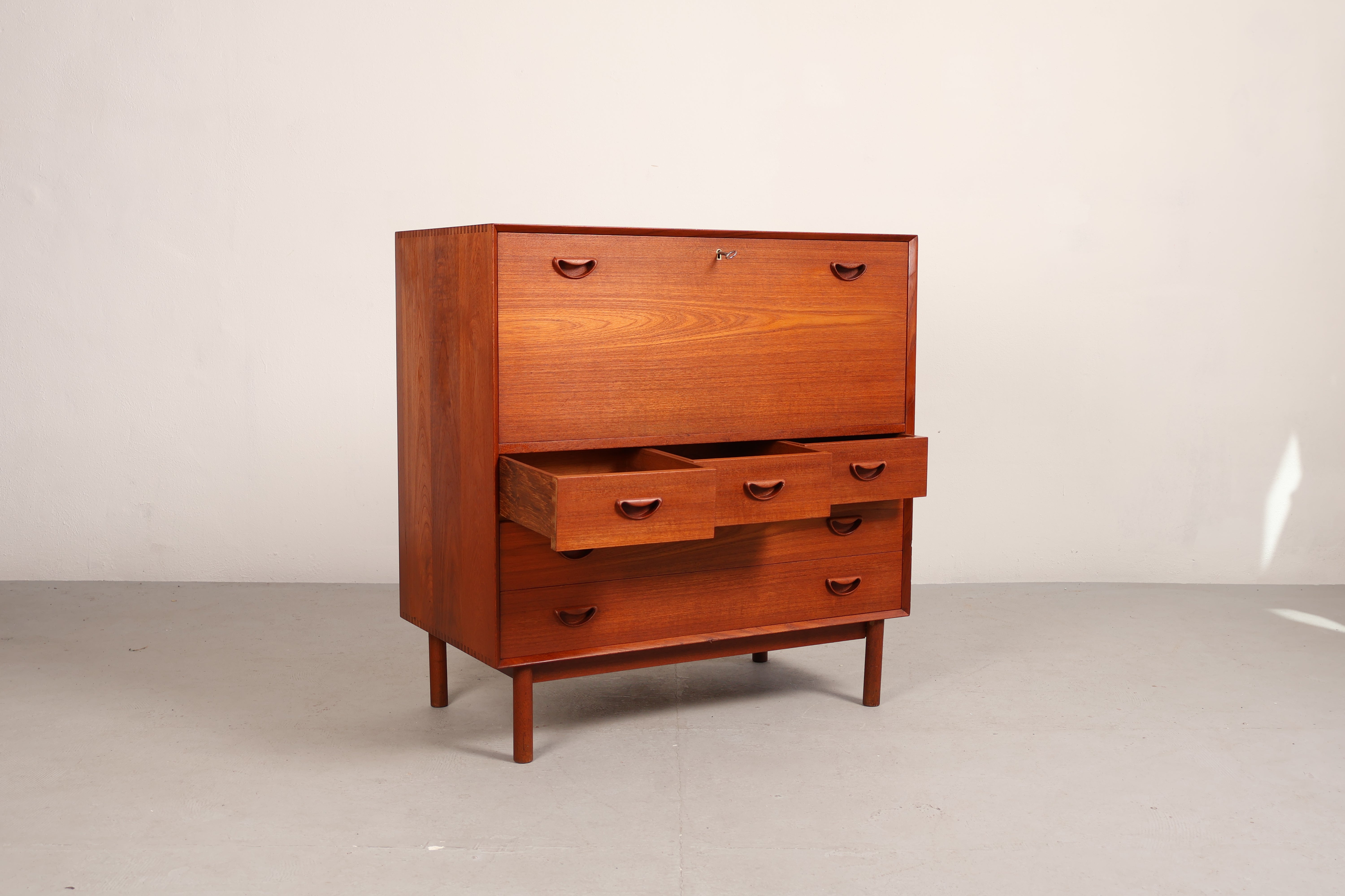 Kommode „Schubladen“ aus den 60er-Jahren von Peter Hvidt. Hergestellt in Dänemark. Gefertigt aus Teak. Höhe 94 cm, Breite 90 cm, Tiefe 48 cm.