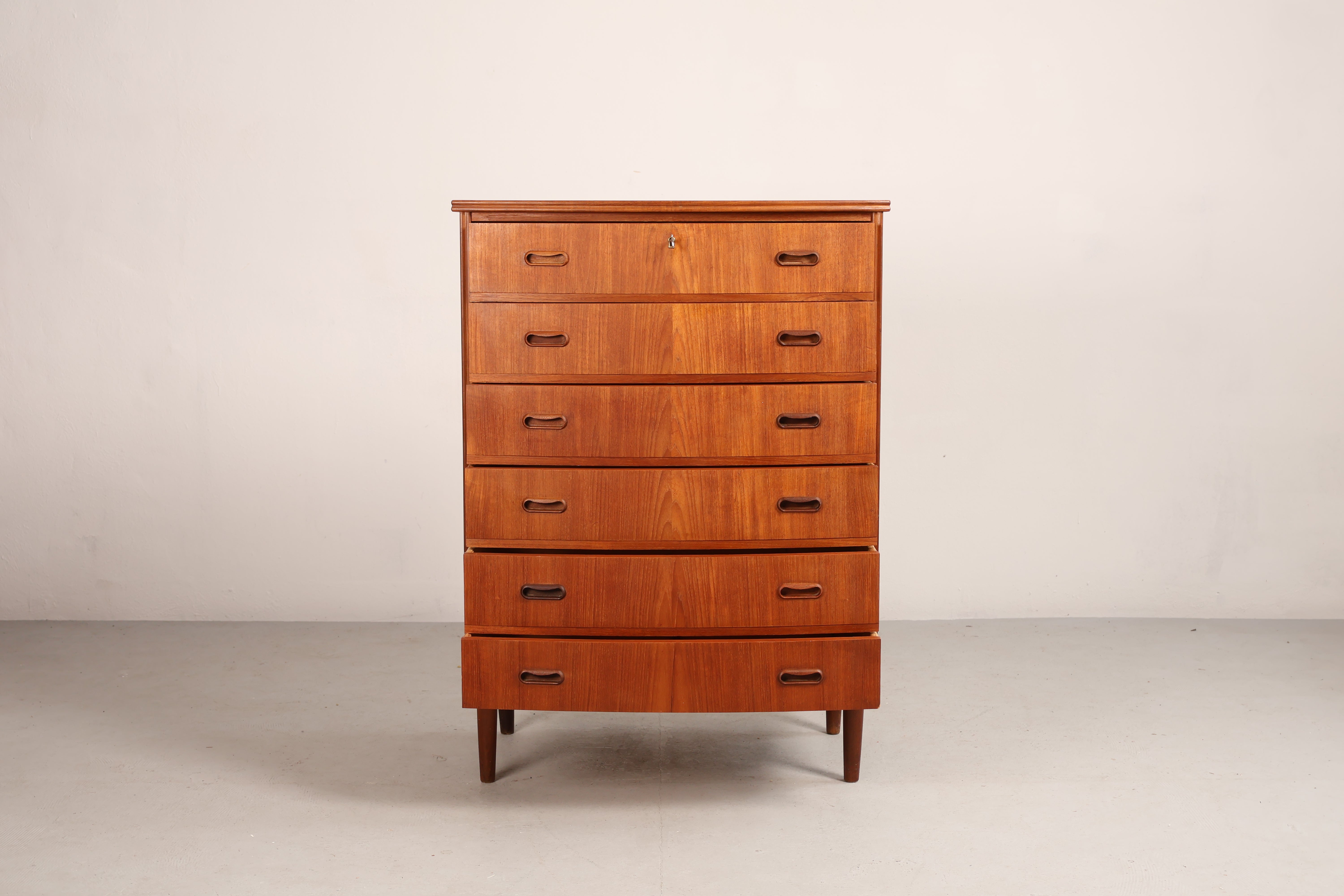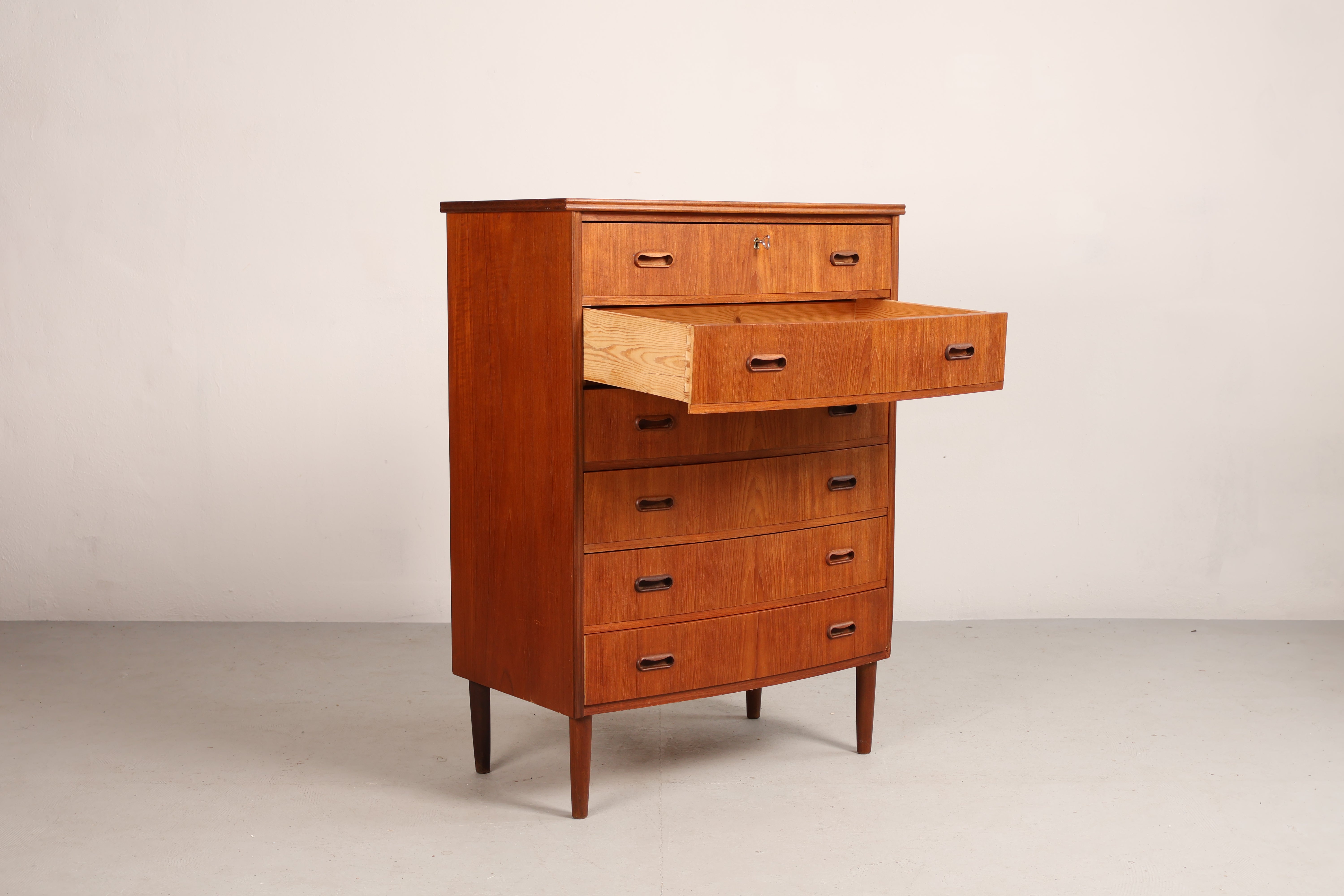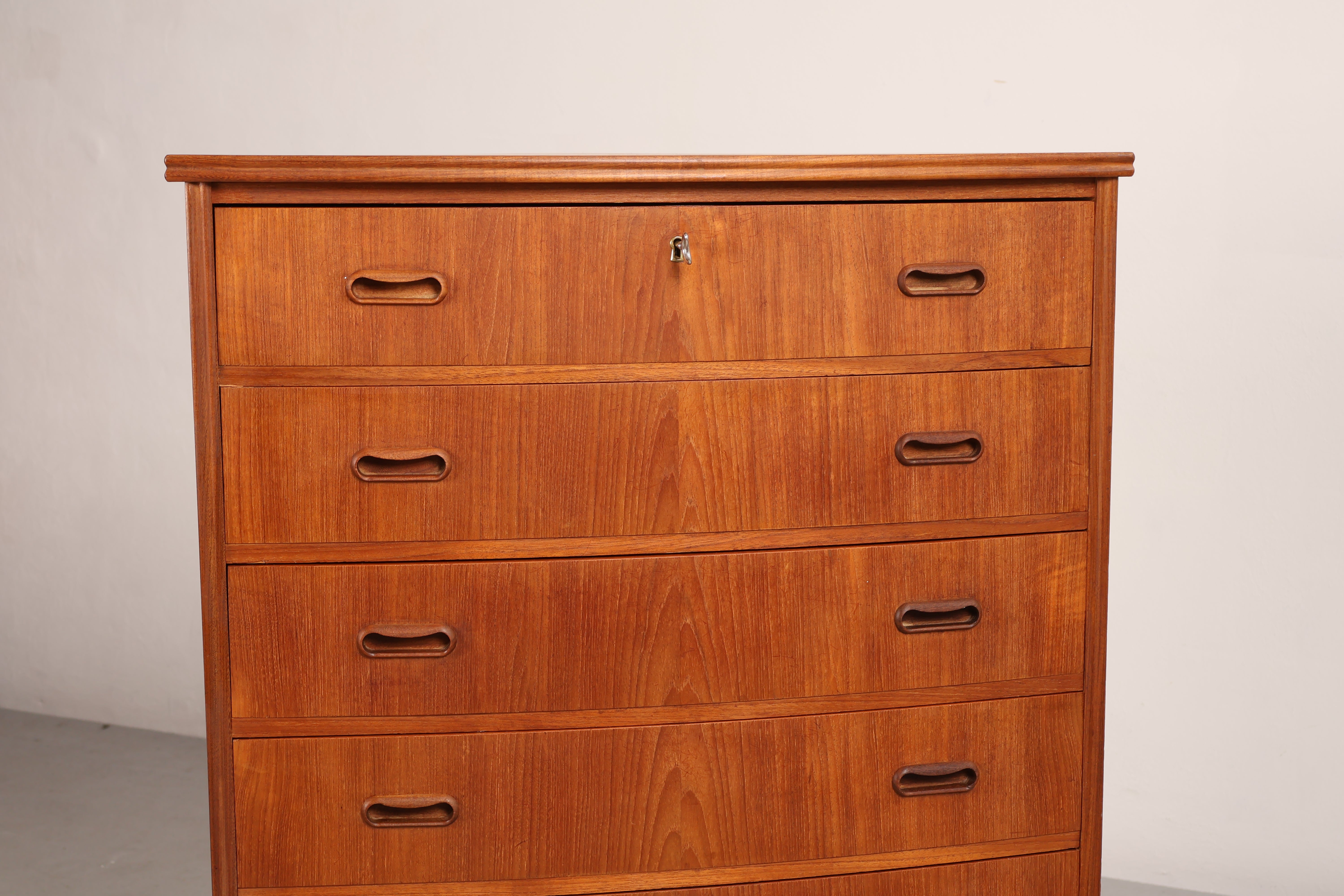 Kommode aus den 60er-Jahren. Hergestellt in Dänemark. Gefertigt aus Teak. Höhe 107 cm, Breite 78 cm, Tiefe 46 cm.