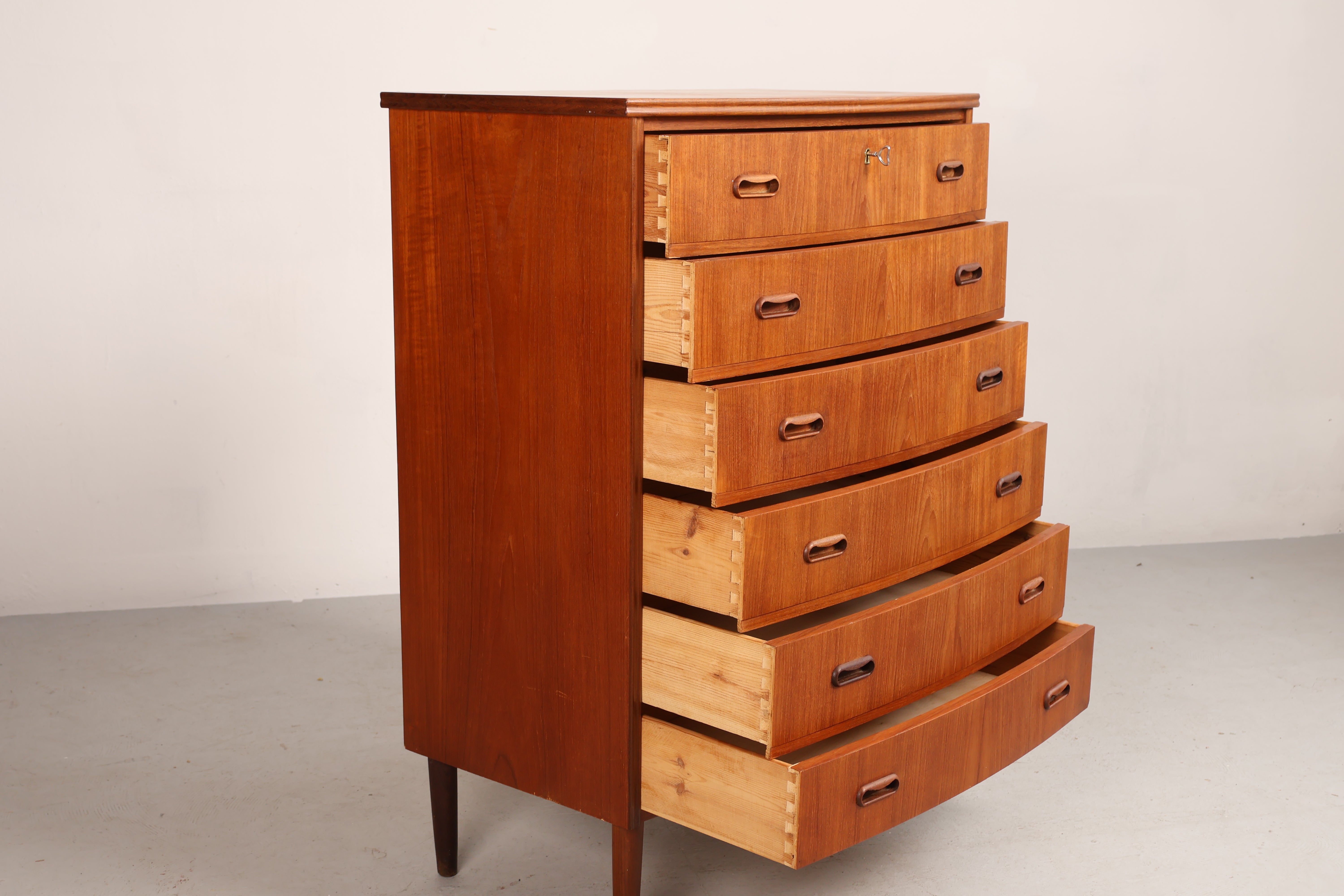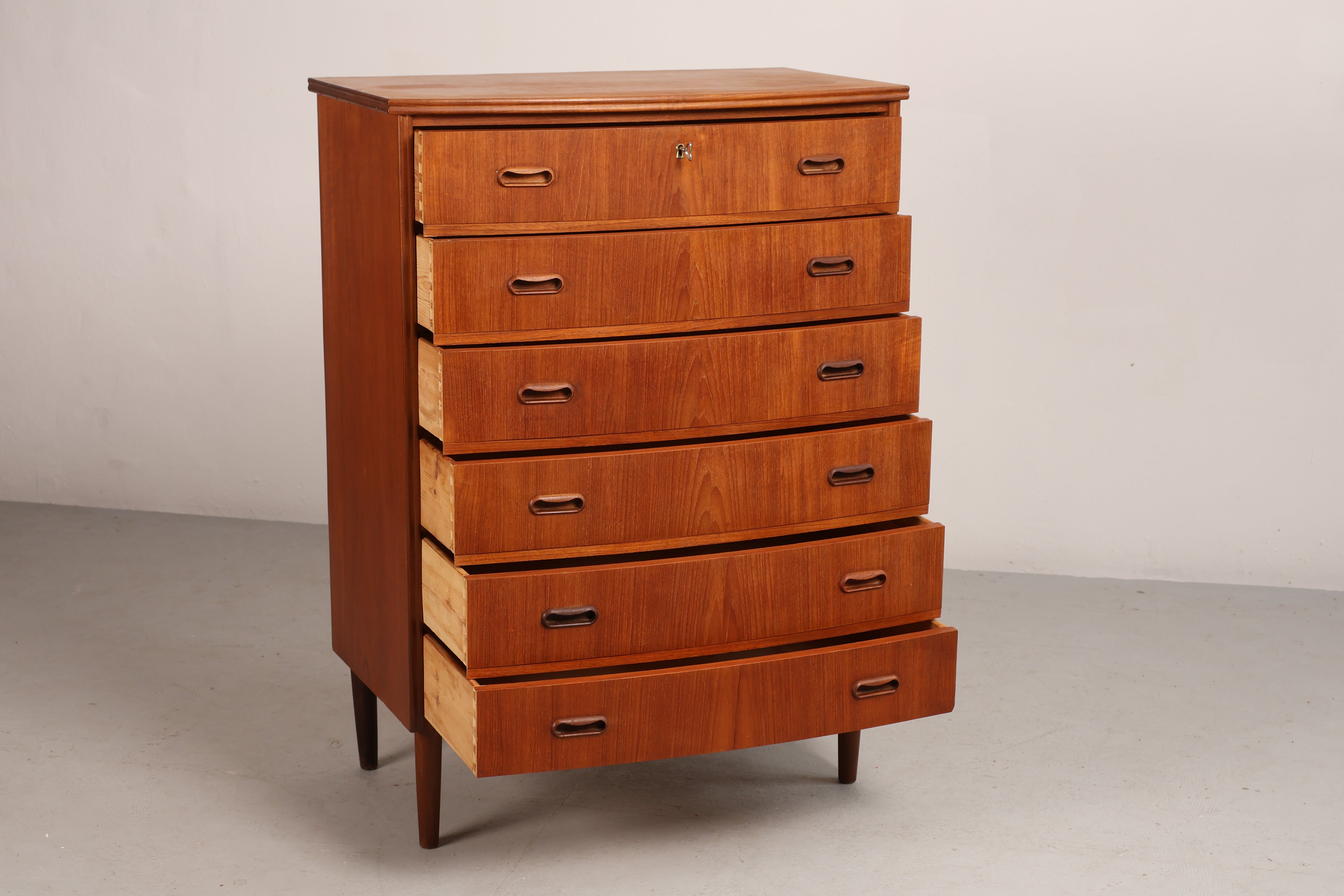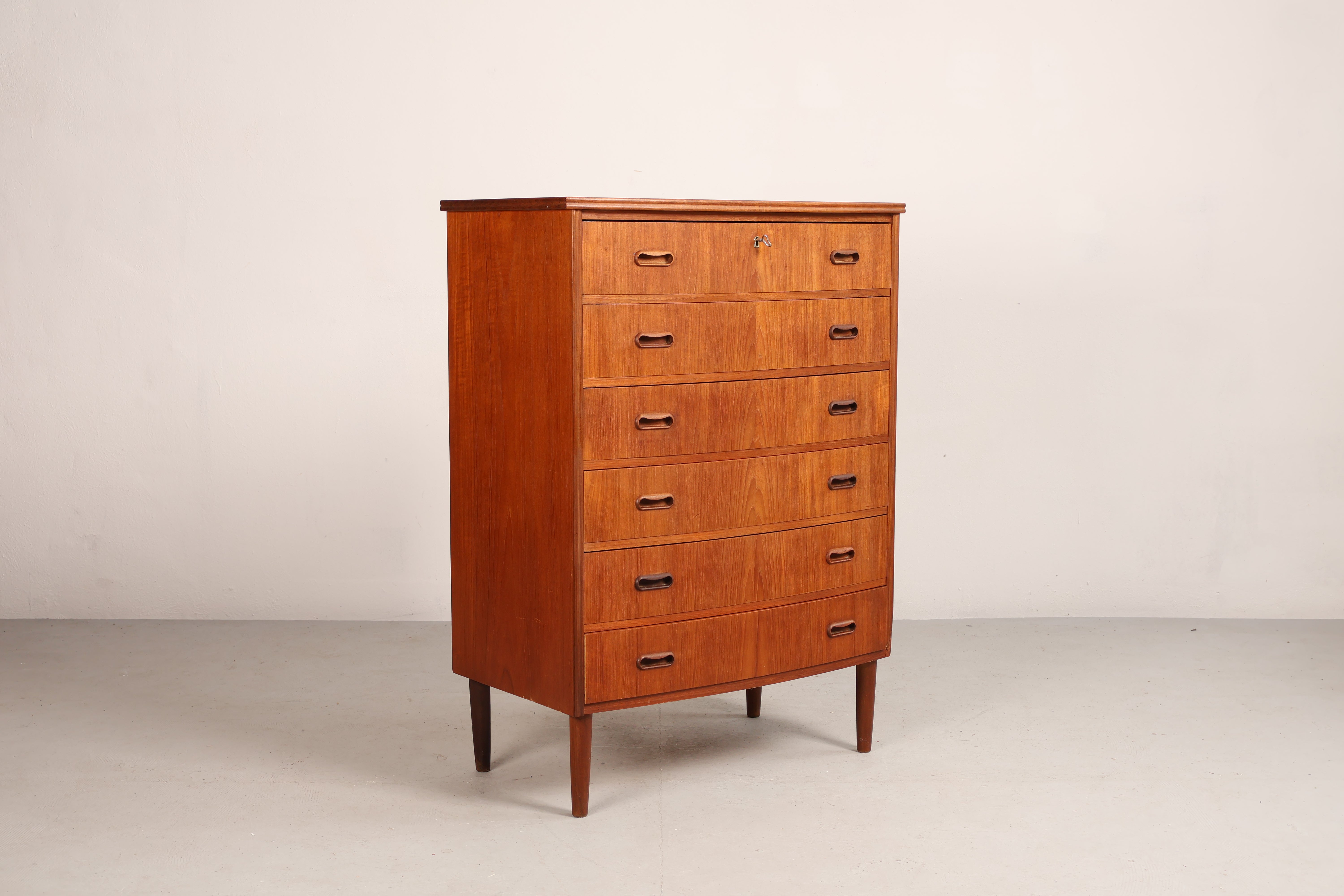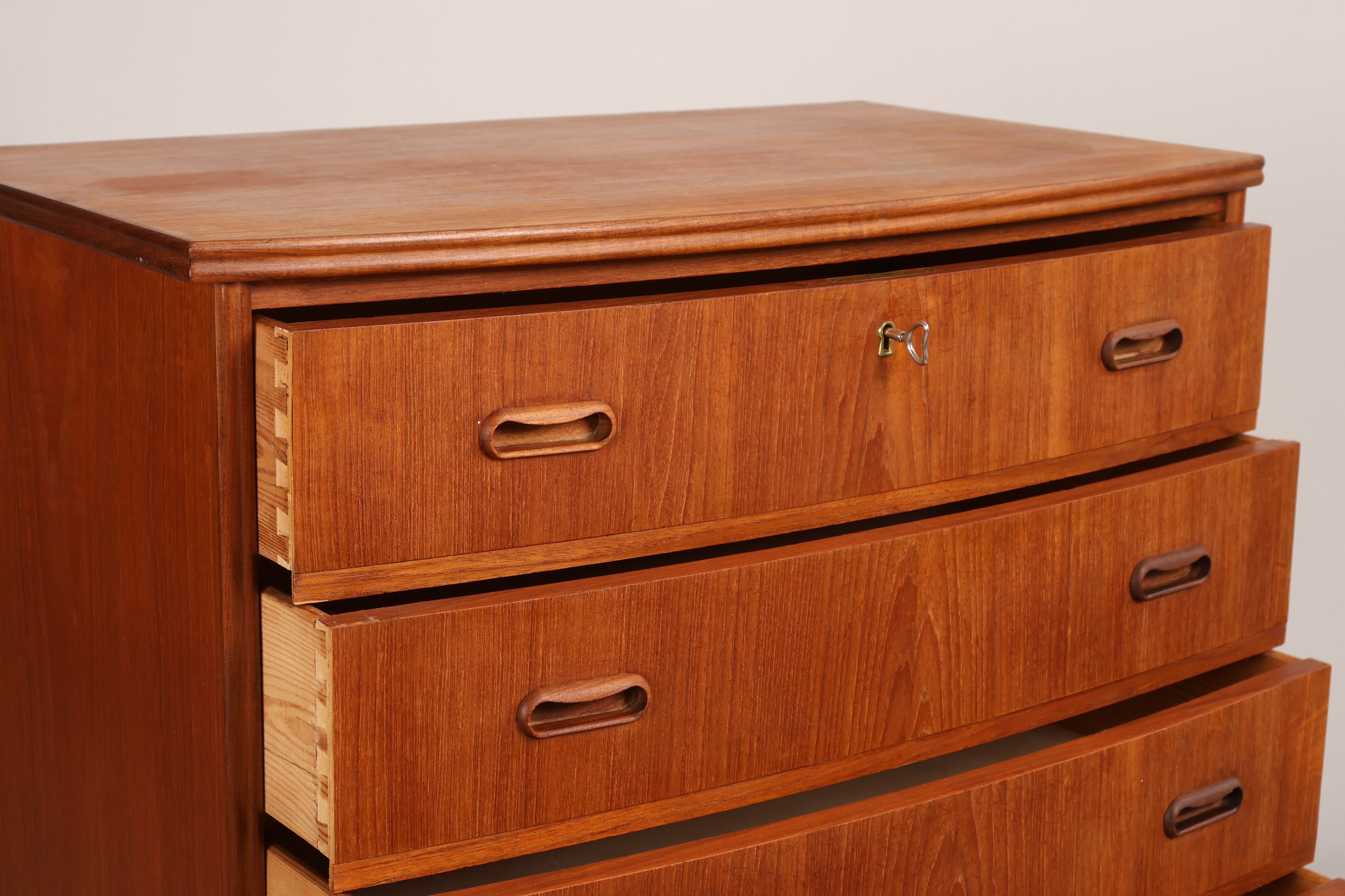 Kommode aus den 60er-Jahren. Hergestellt in Dänemark. Gefertigt aus Teak. Höhe 107 cm, Breite 78 cm, Tiefe 46 cm.