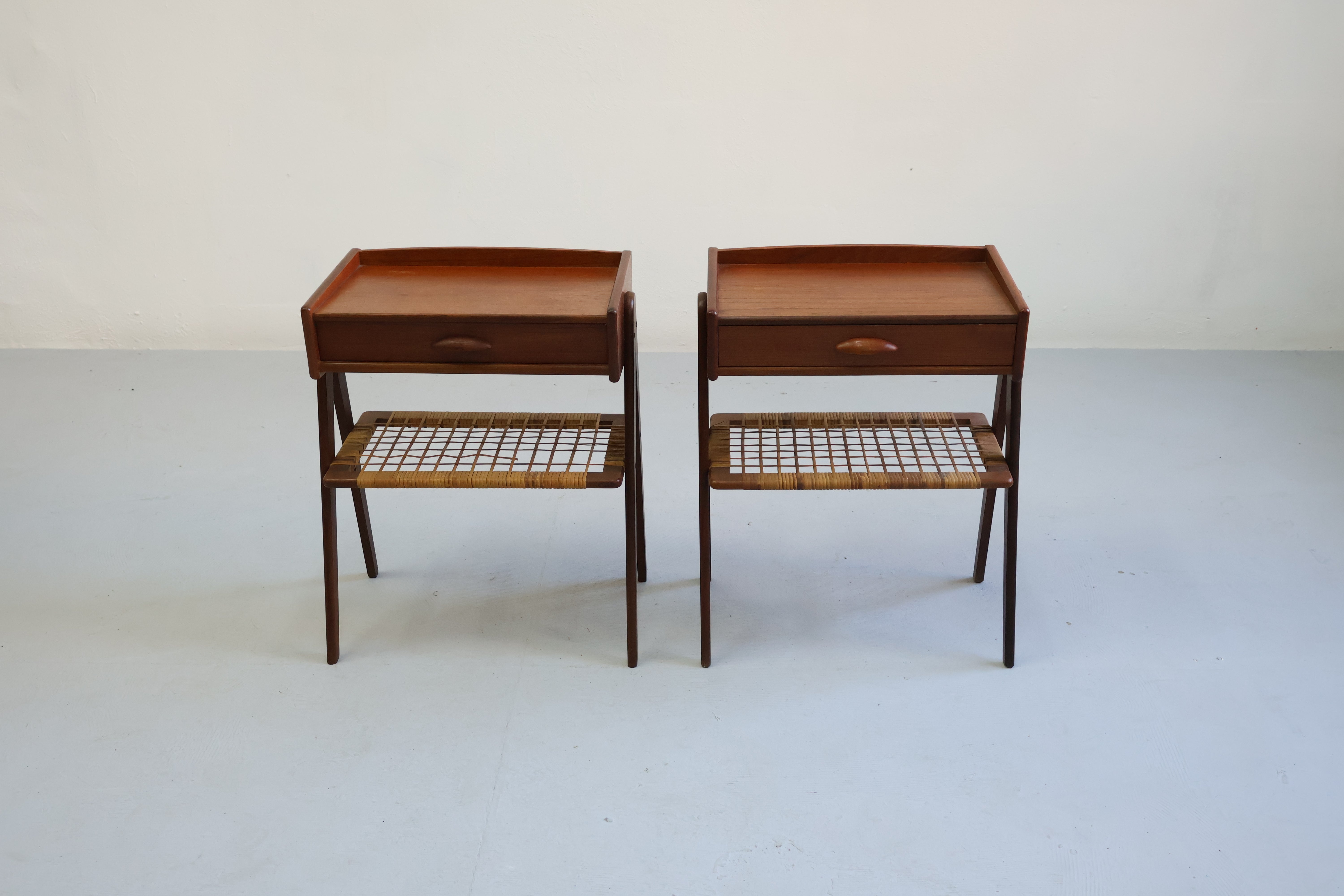 Nachttische aus den 60er-Jahren von Søren Rasmussen. Hergestellt in Dänemark. Gefertigt aus Teak. Höhe 58 cm, Breite 48 cm, Tiefe 31 cm.