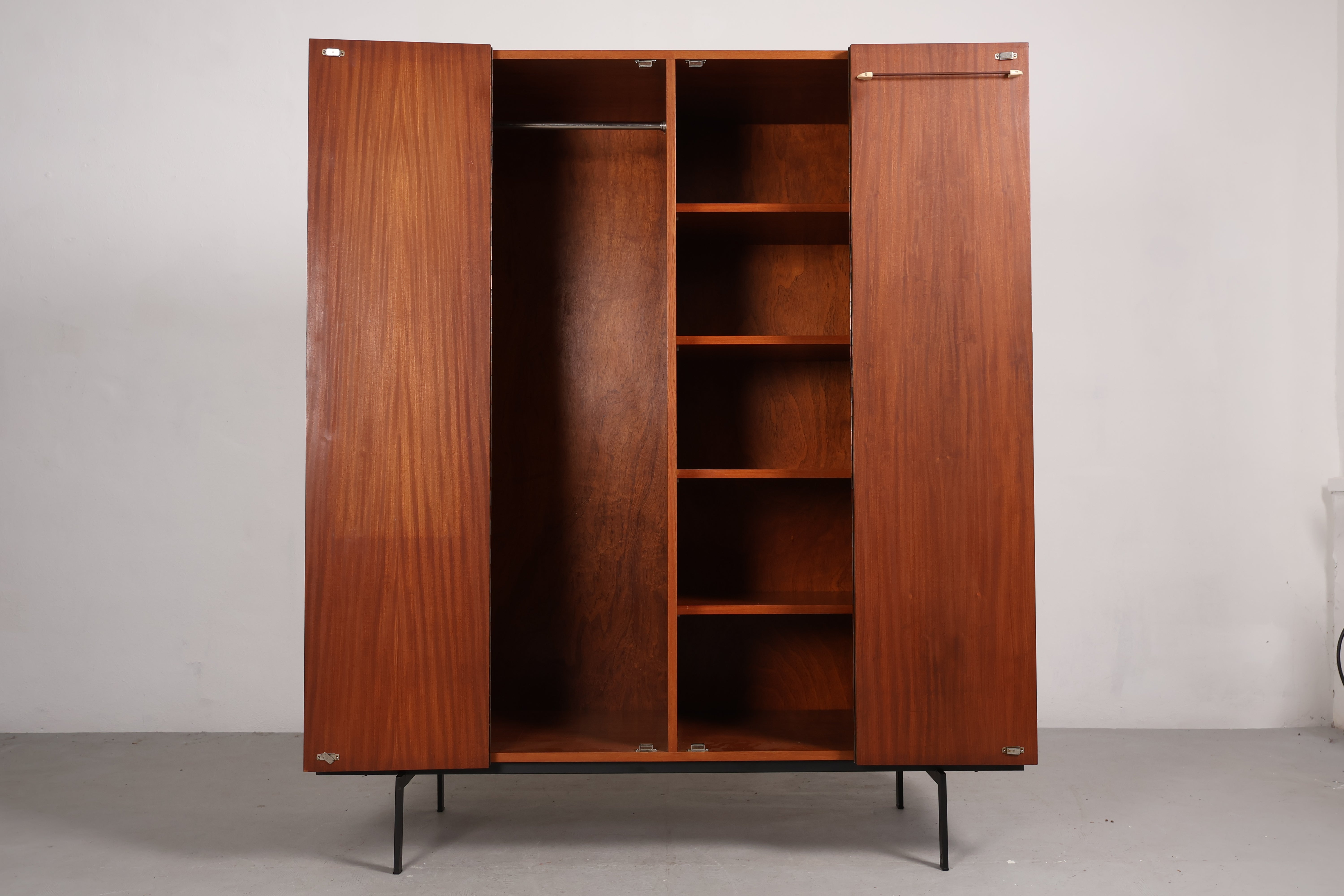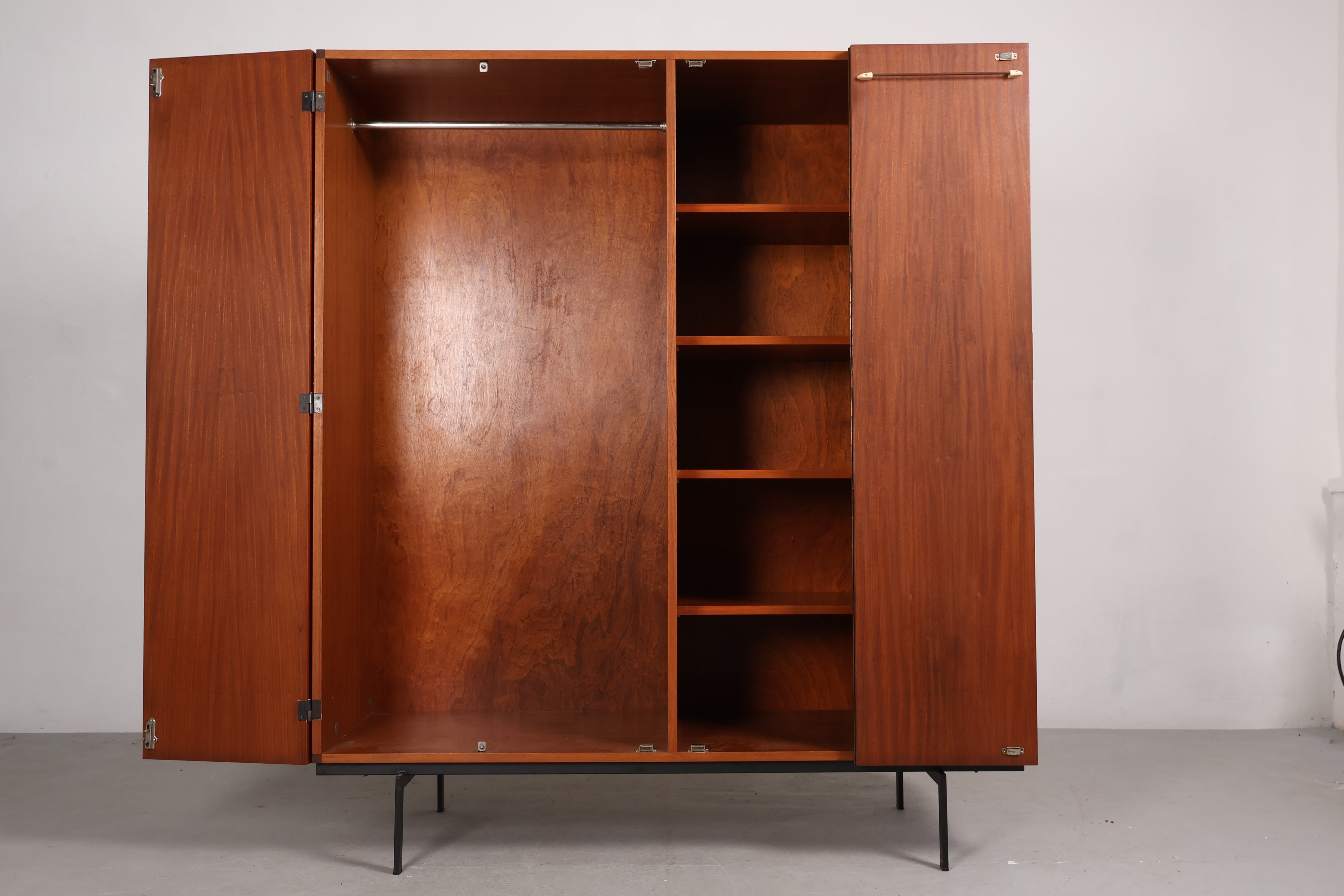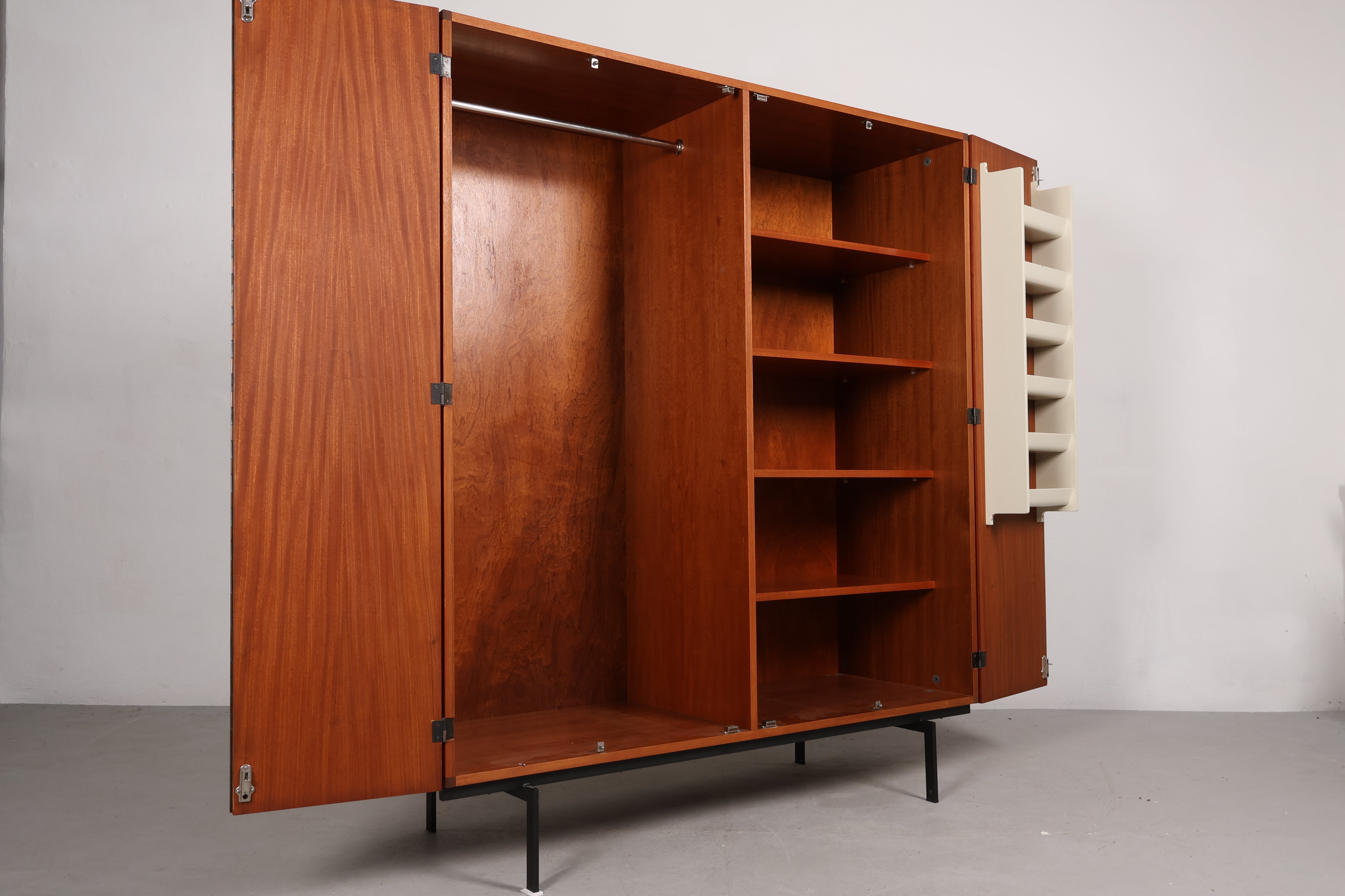 Schrank aus den 60er-Jahren von Cees Braakman. Hergestellt in Dänemark. Gefertigt aus Teak. Höhe 173 cm, Breite 150 cm, Tiefe 55 cm.