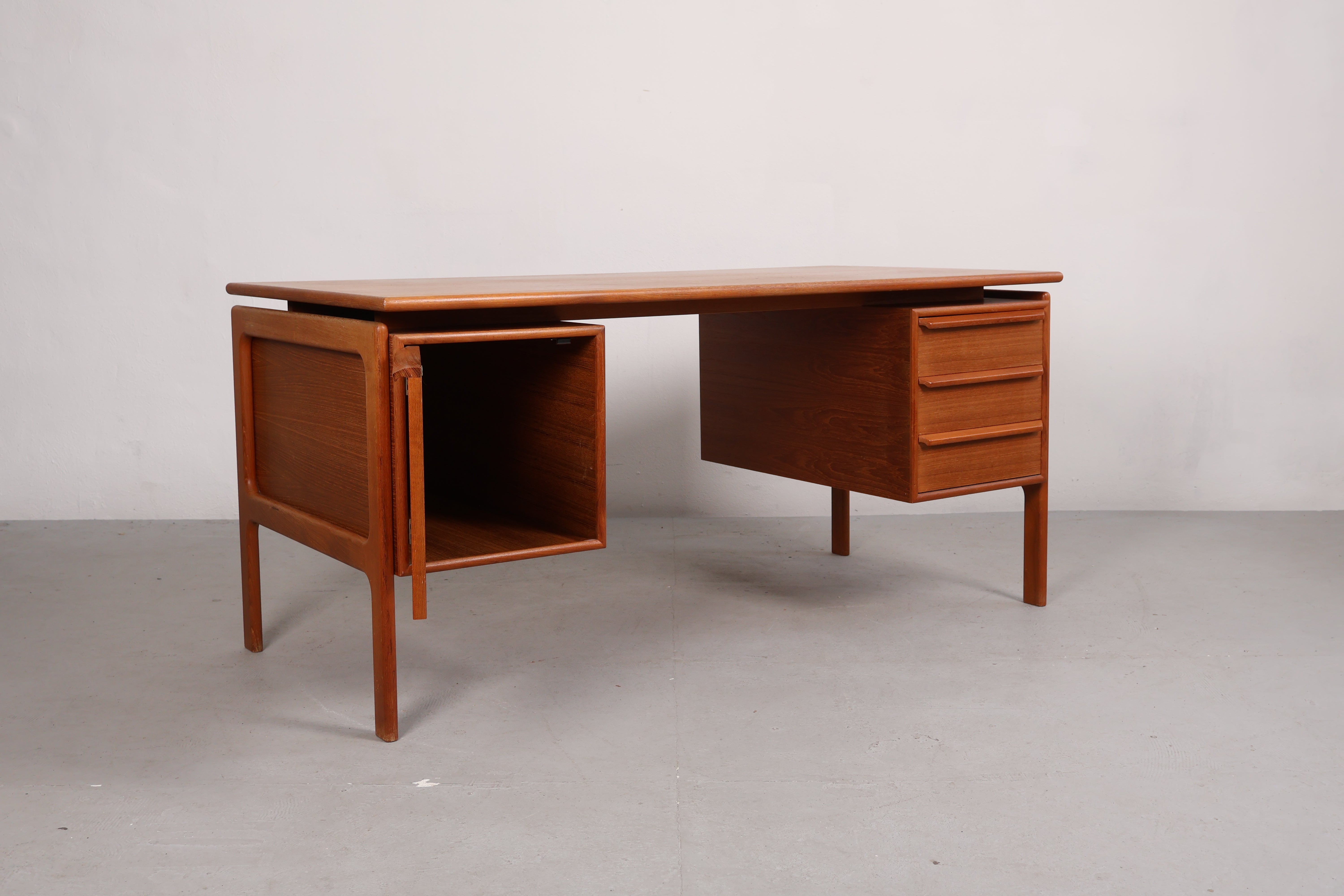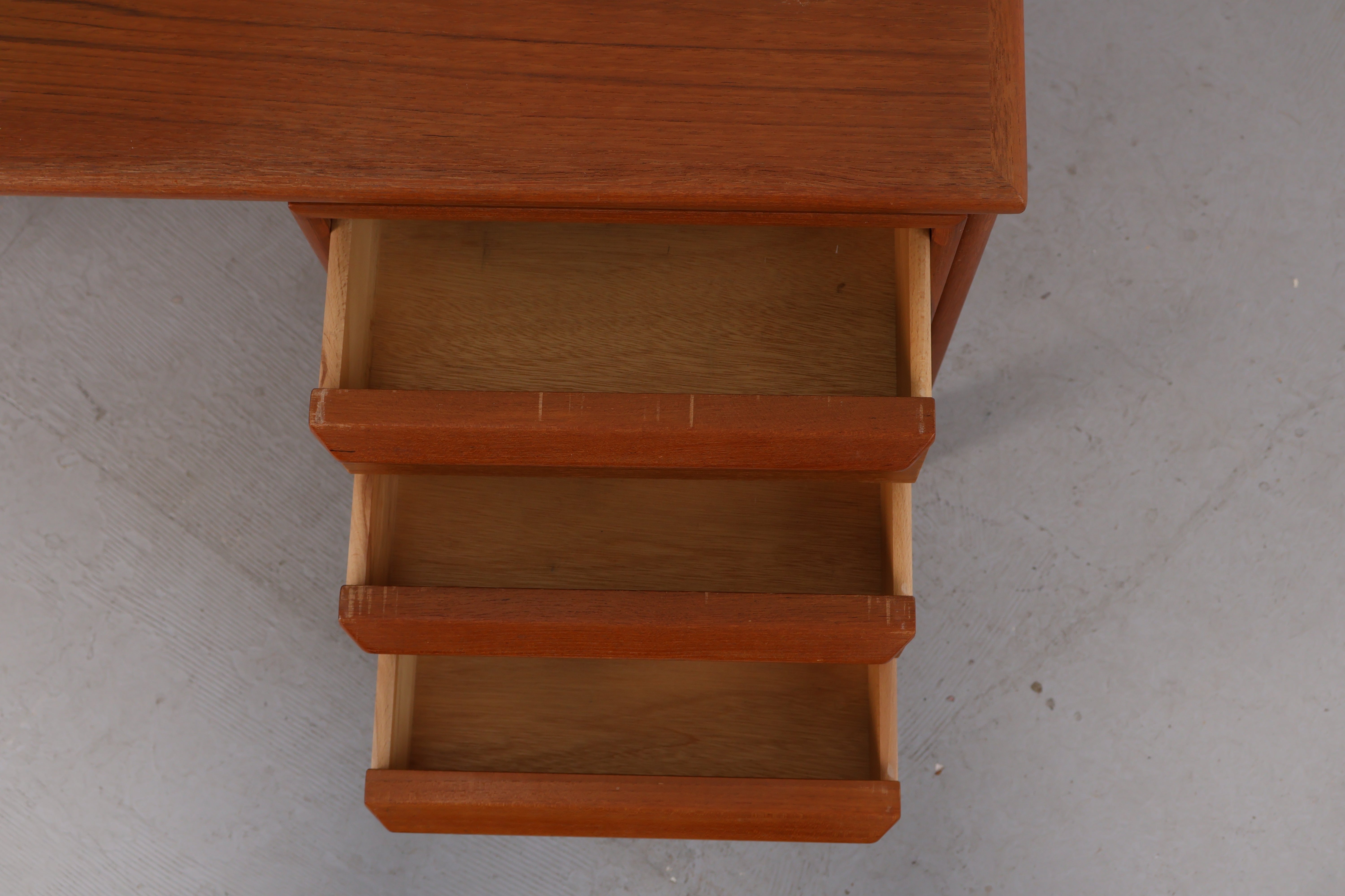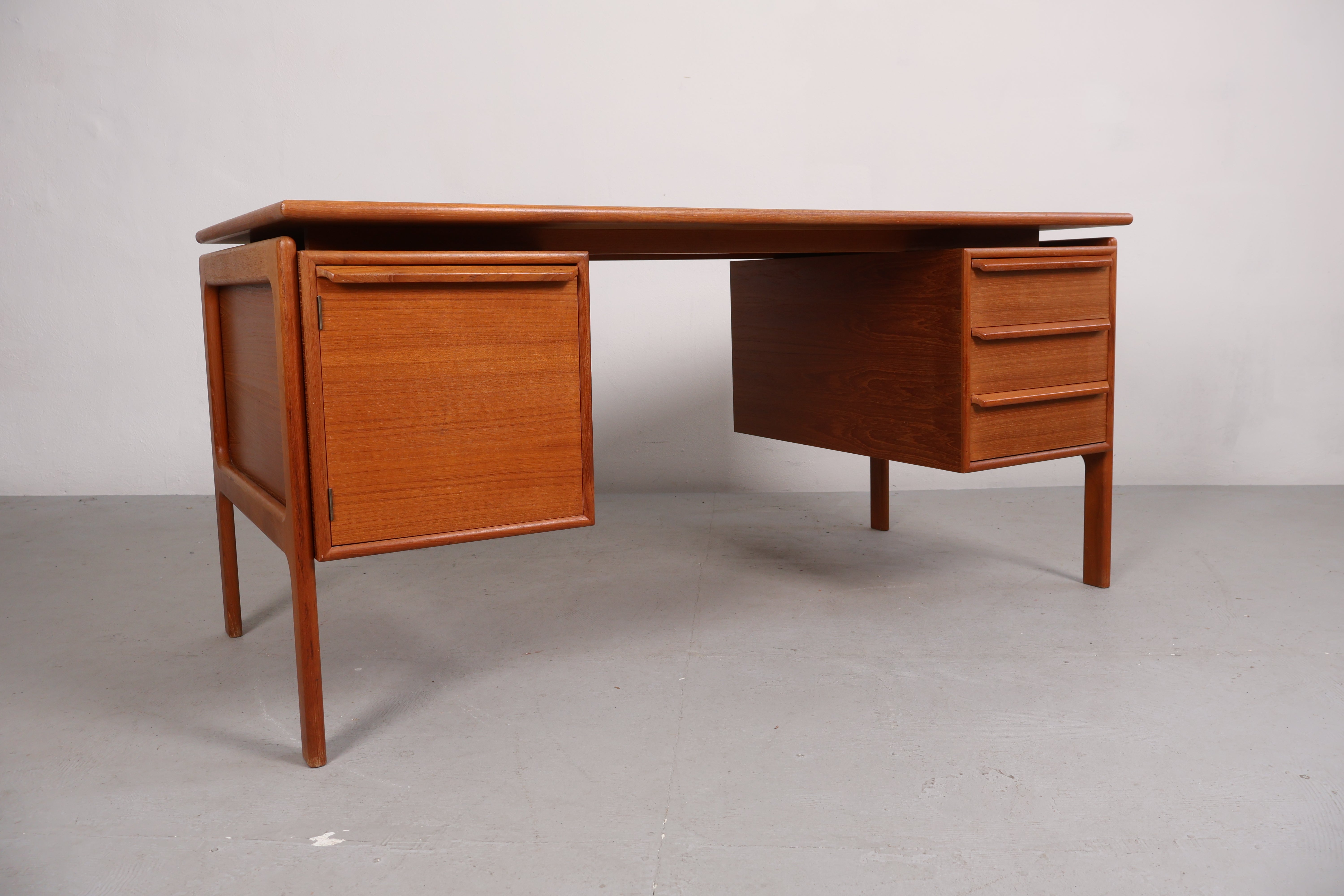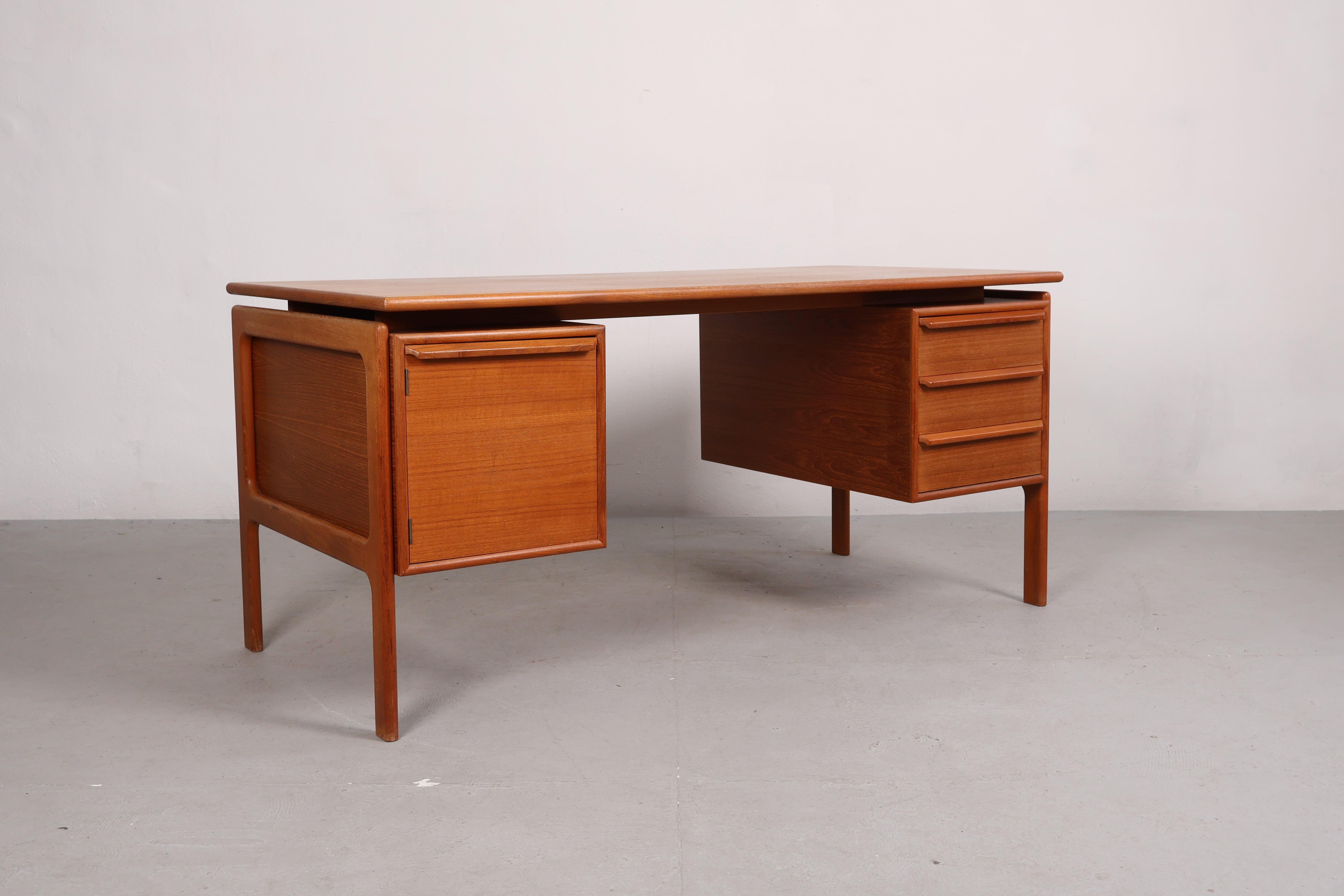 Schreibtisch aus den 60er-Jahren für G.V. Møbler. Hergestellt in Dänemark. Gefertigt aus Teak. Höhe 71 cm, Breite 150 cm, Tiefe 75 cm.