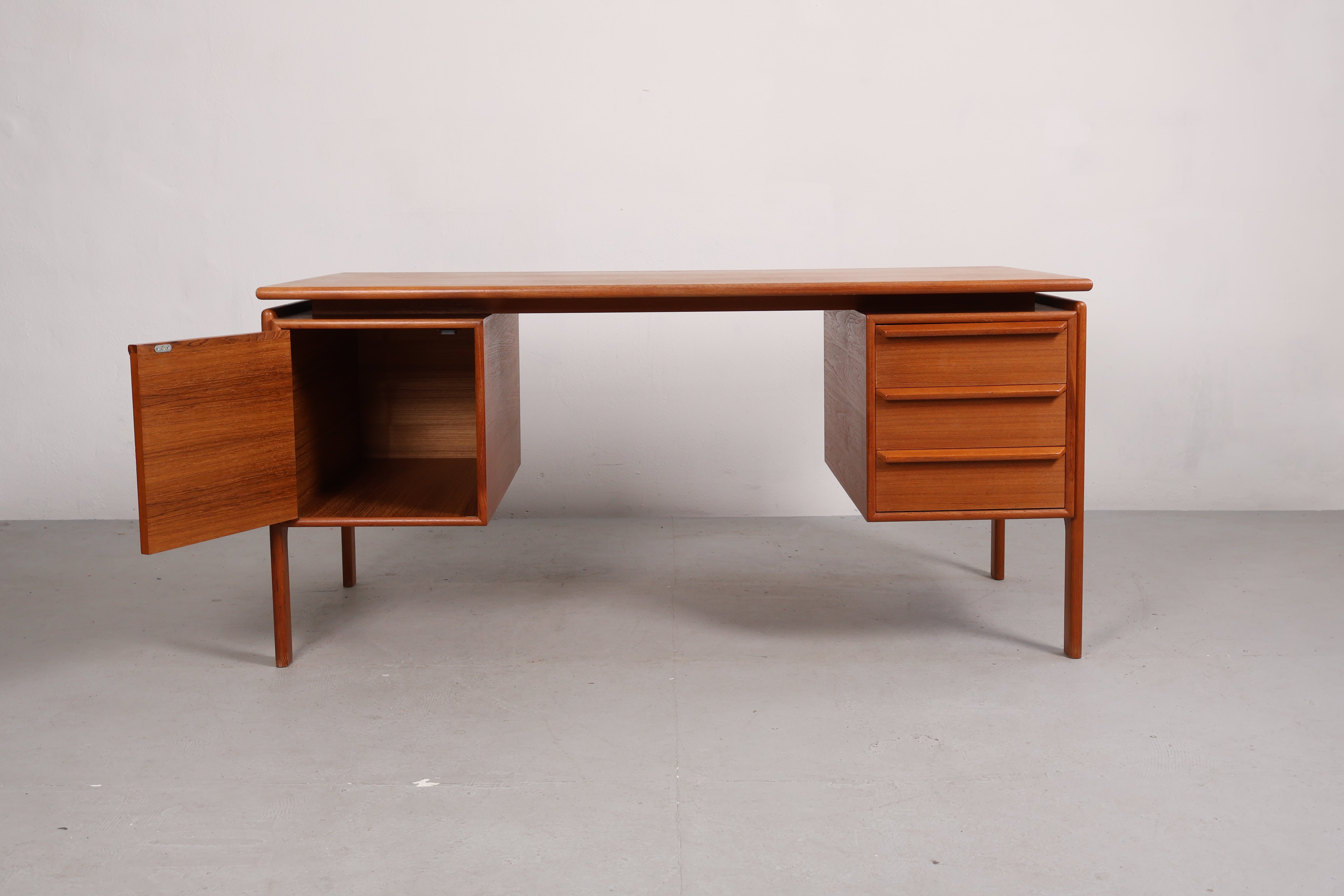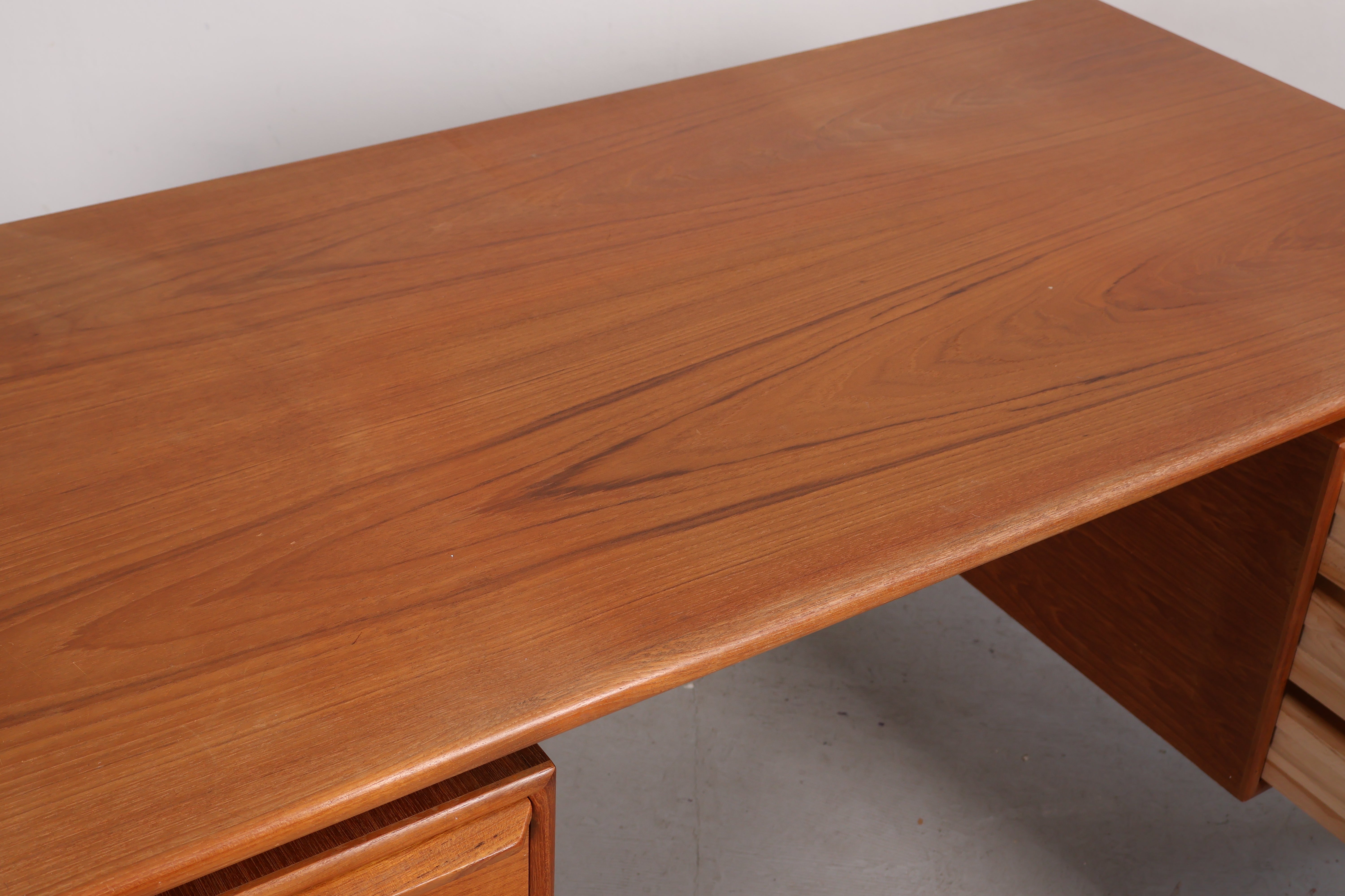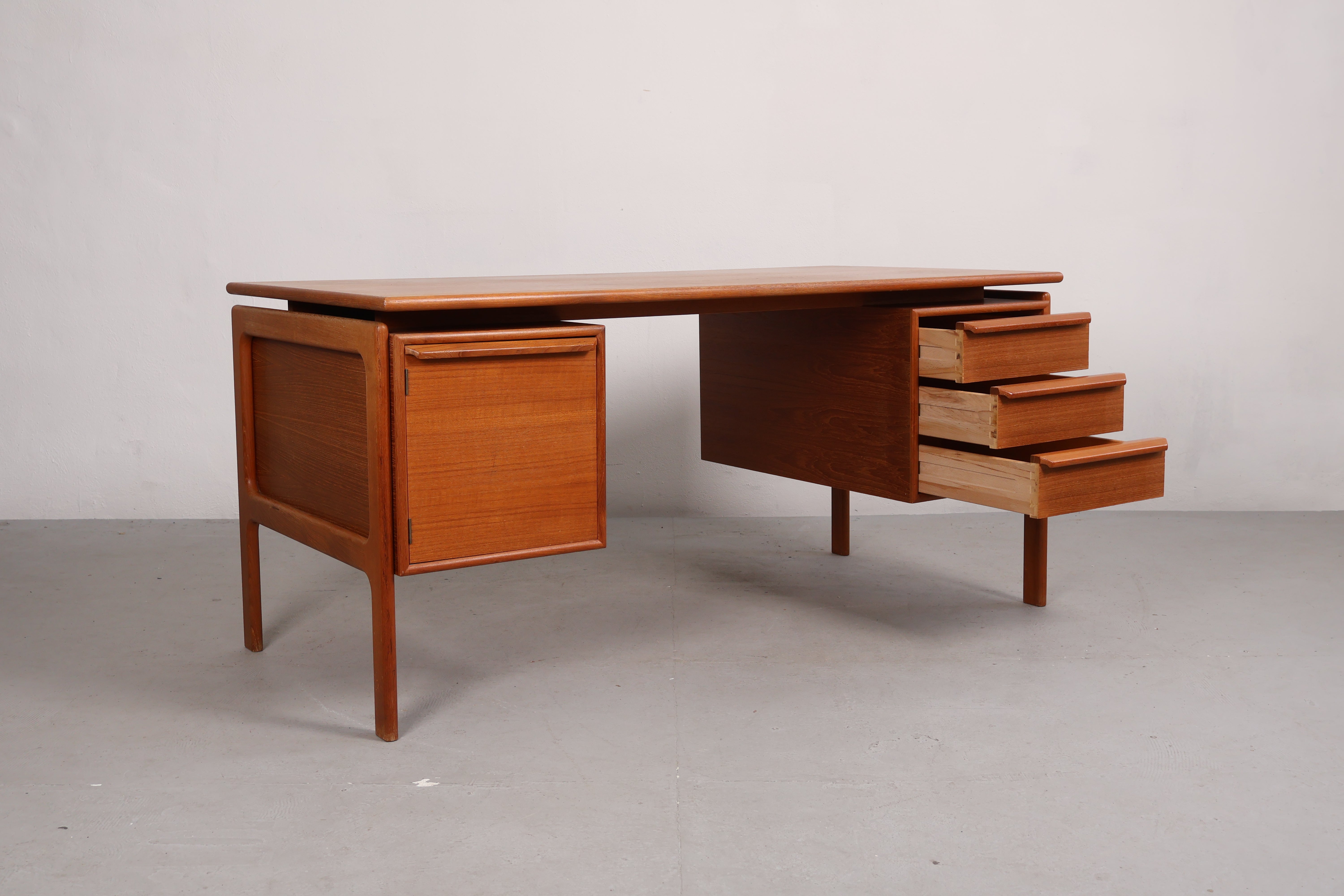 Schreibtisch aus den 60er-Jahren für G.V. Møbler. Hergestellt in Dänemark. Gefertigt aus Teak. Höhe 71 cm, Breite 150 cm, Tiefe 75 cm.