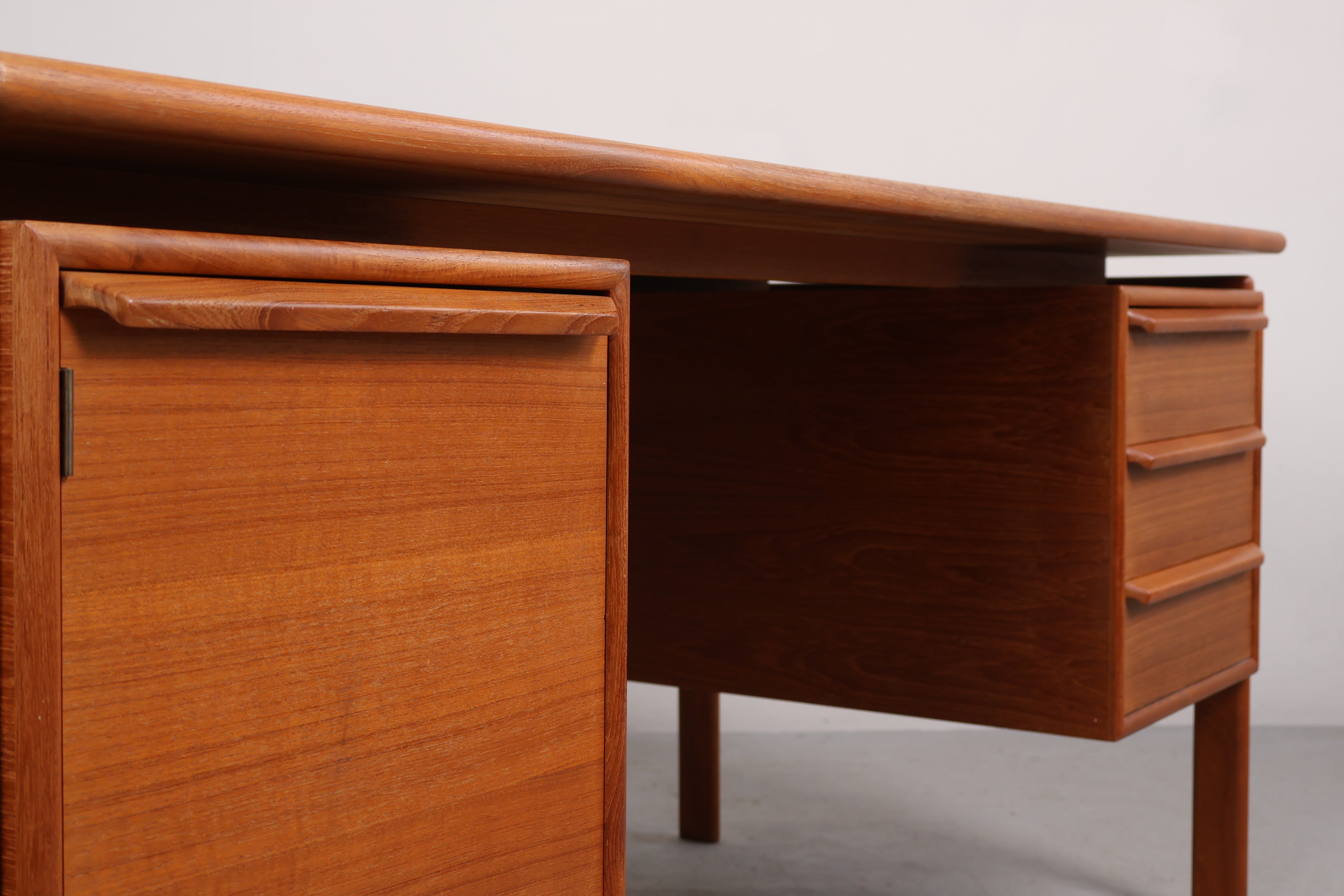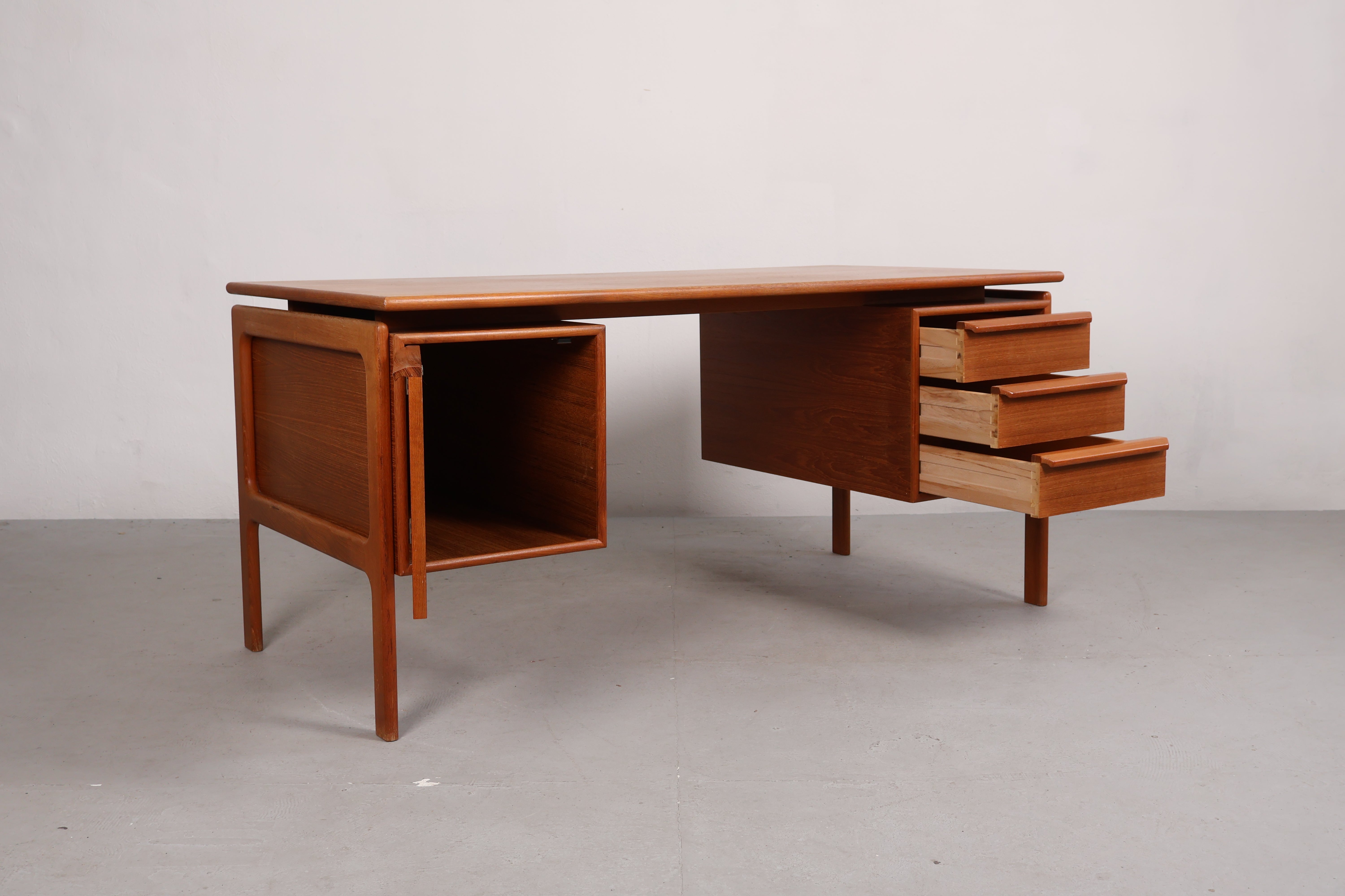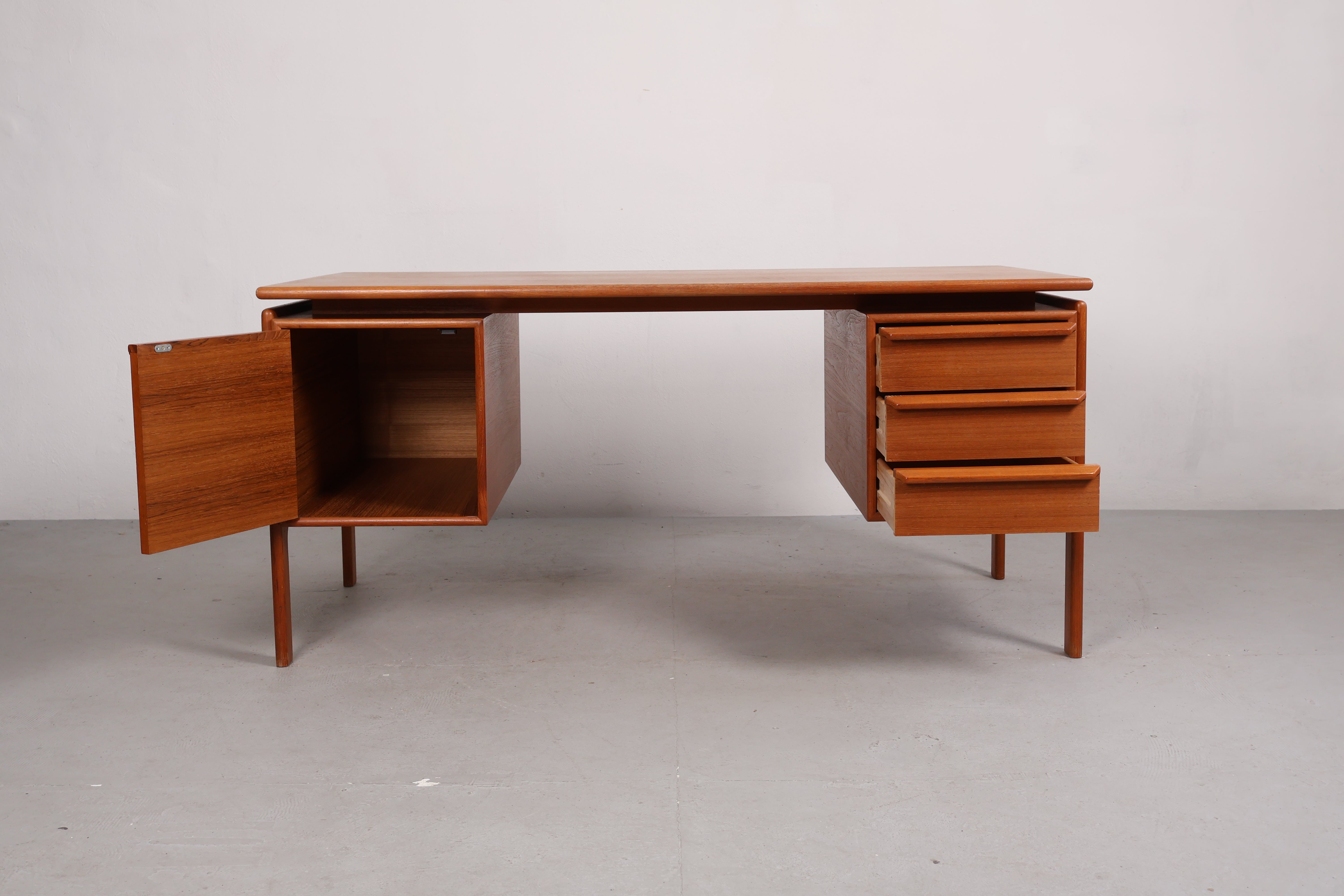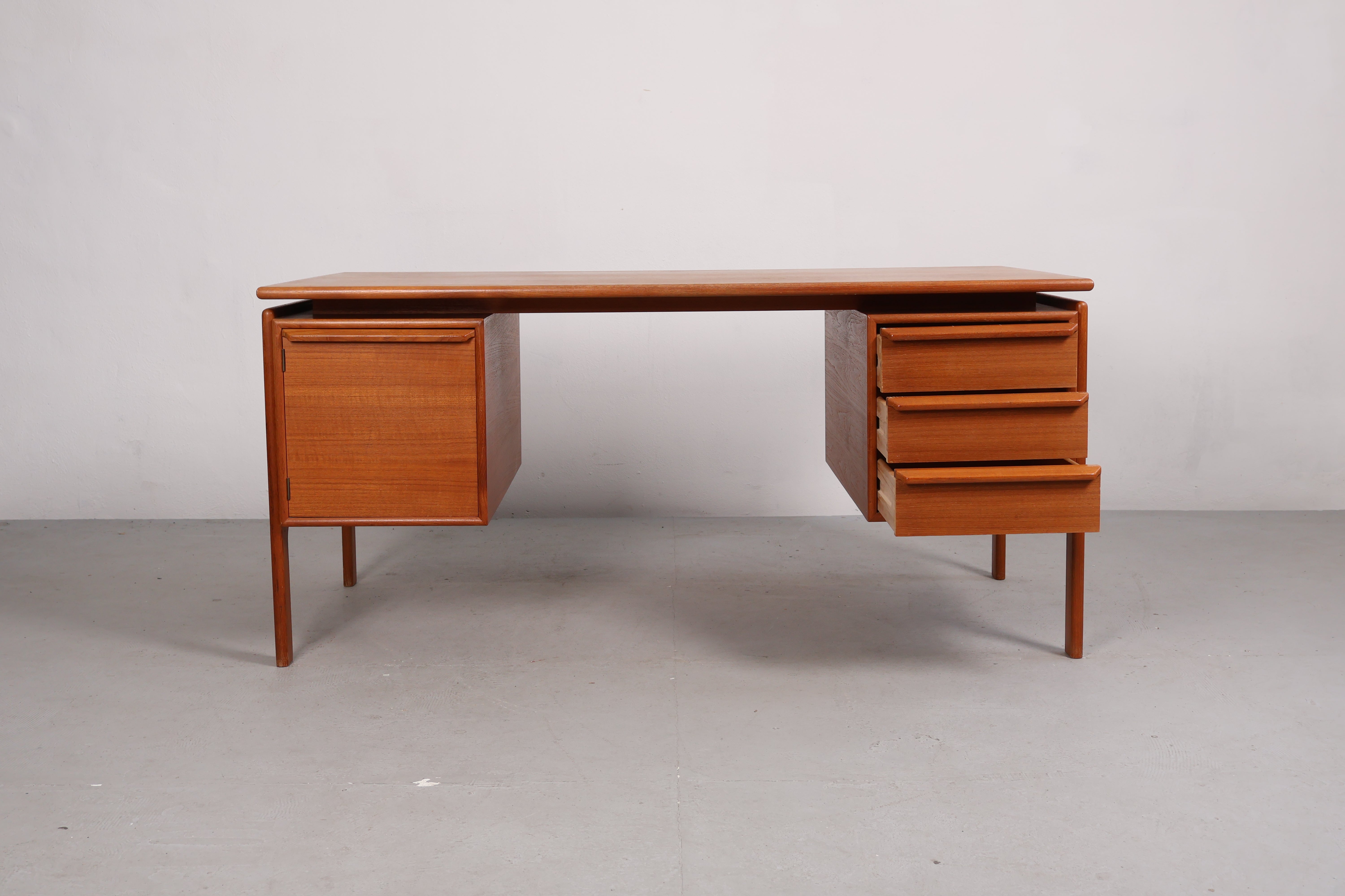 Schreibtisch aus den 60er-Jahren für G.V. Møbler. Hergestellt in Dänemark. Gefertigt aus Teak. Höhe 71 cm, Breite 150 cm, Tiefe 75 cm.