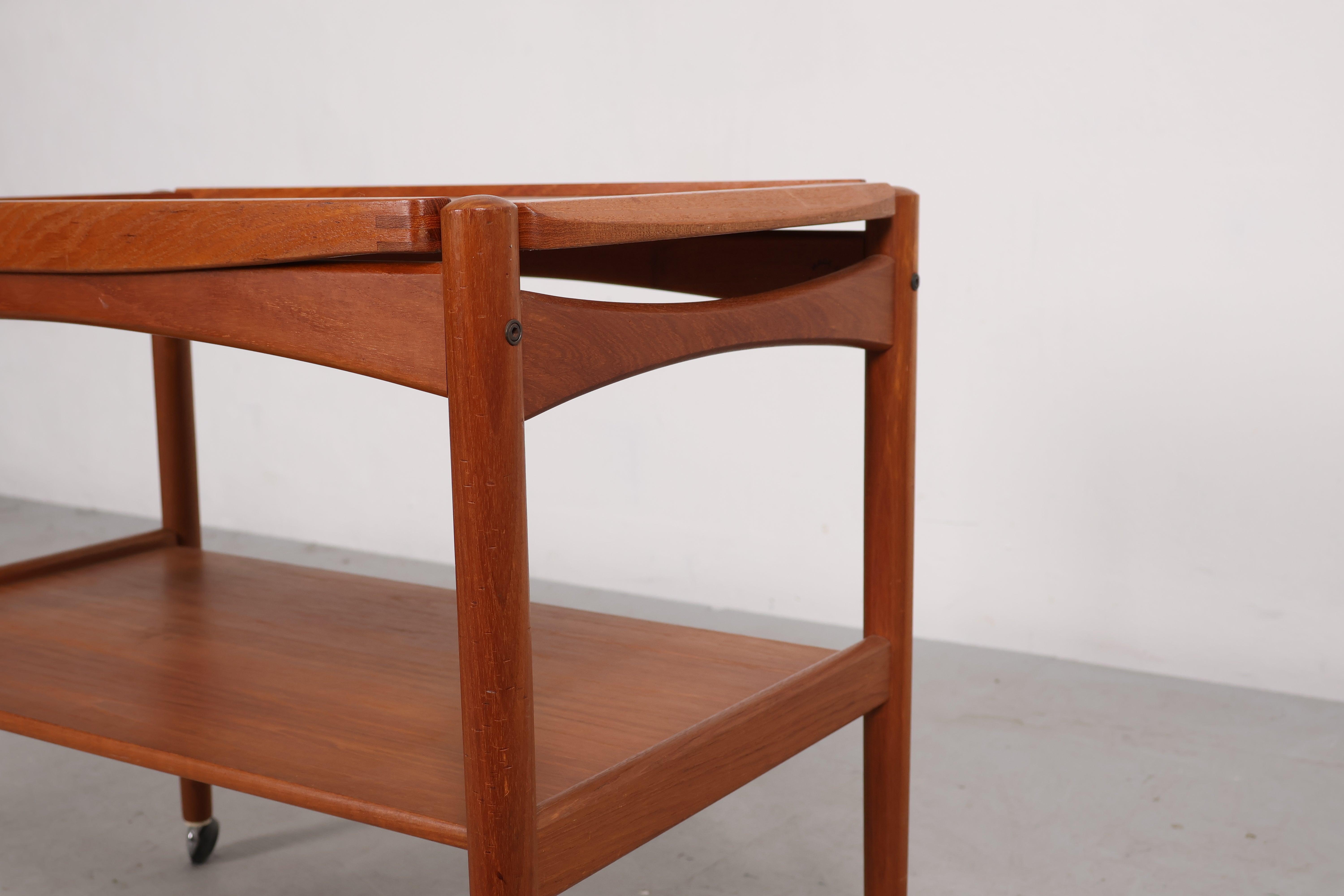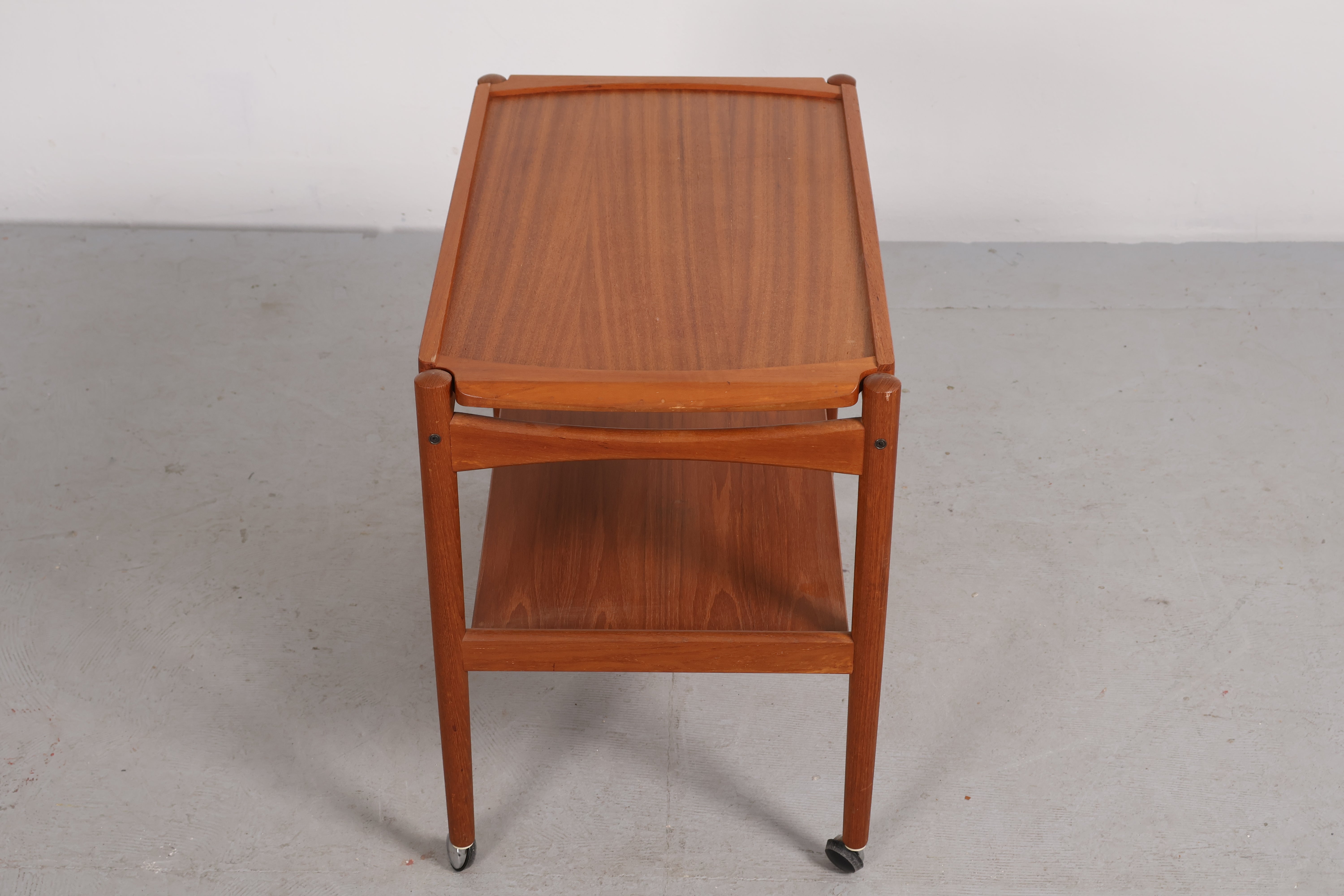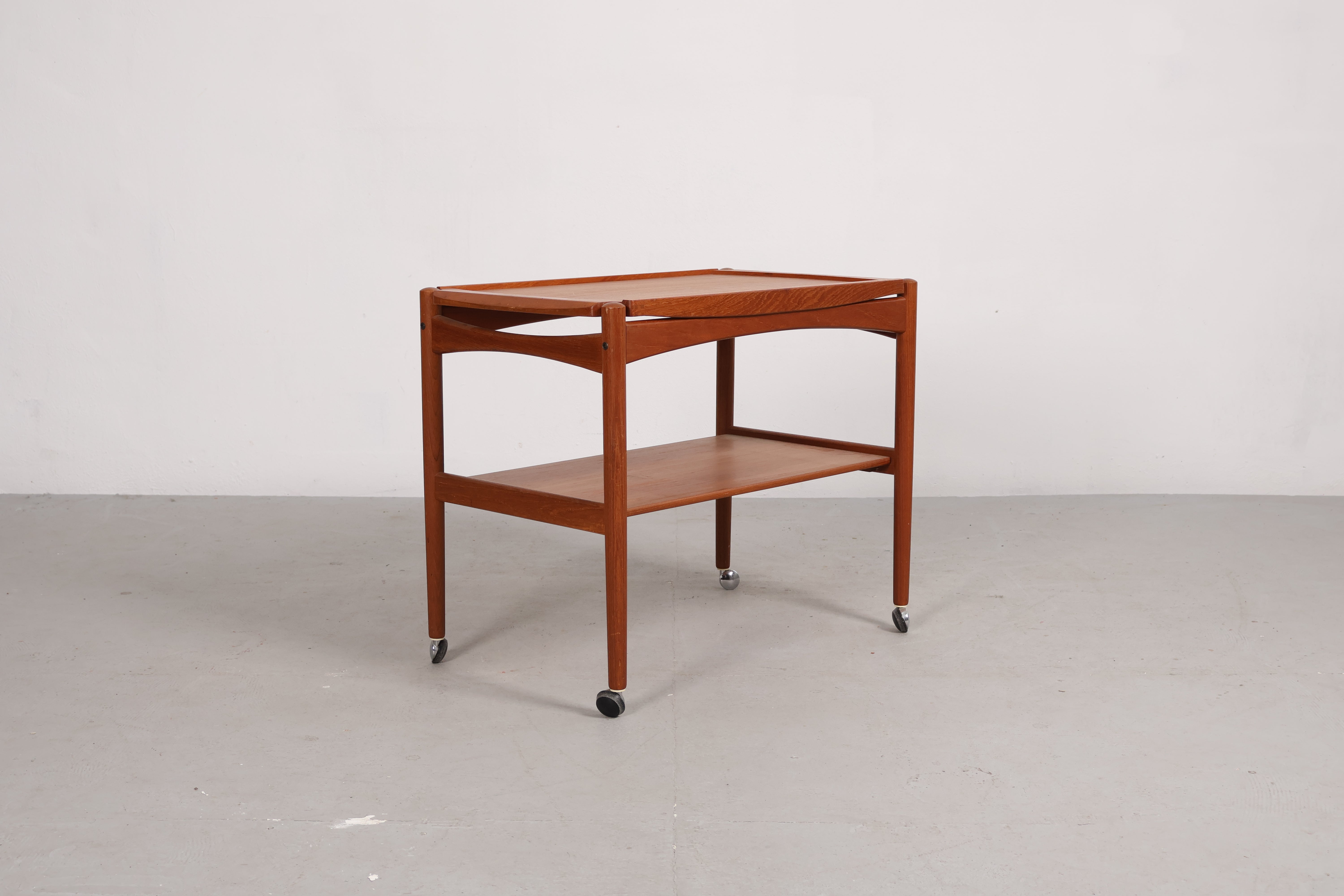 Servierwagen aus den 60er-Jahren für Poul Hundevad. Hergestellt in Dänemark. Gefertigt aus Teak. Höhe 60 cm, Breite 71 cm, Tiefe 44 cm.