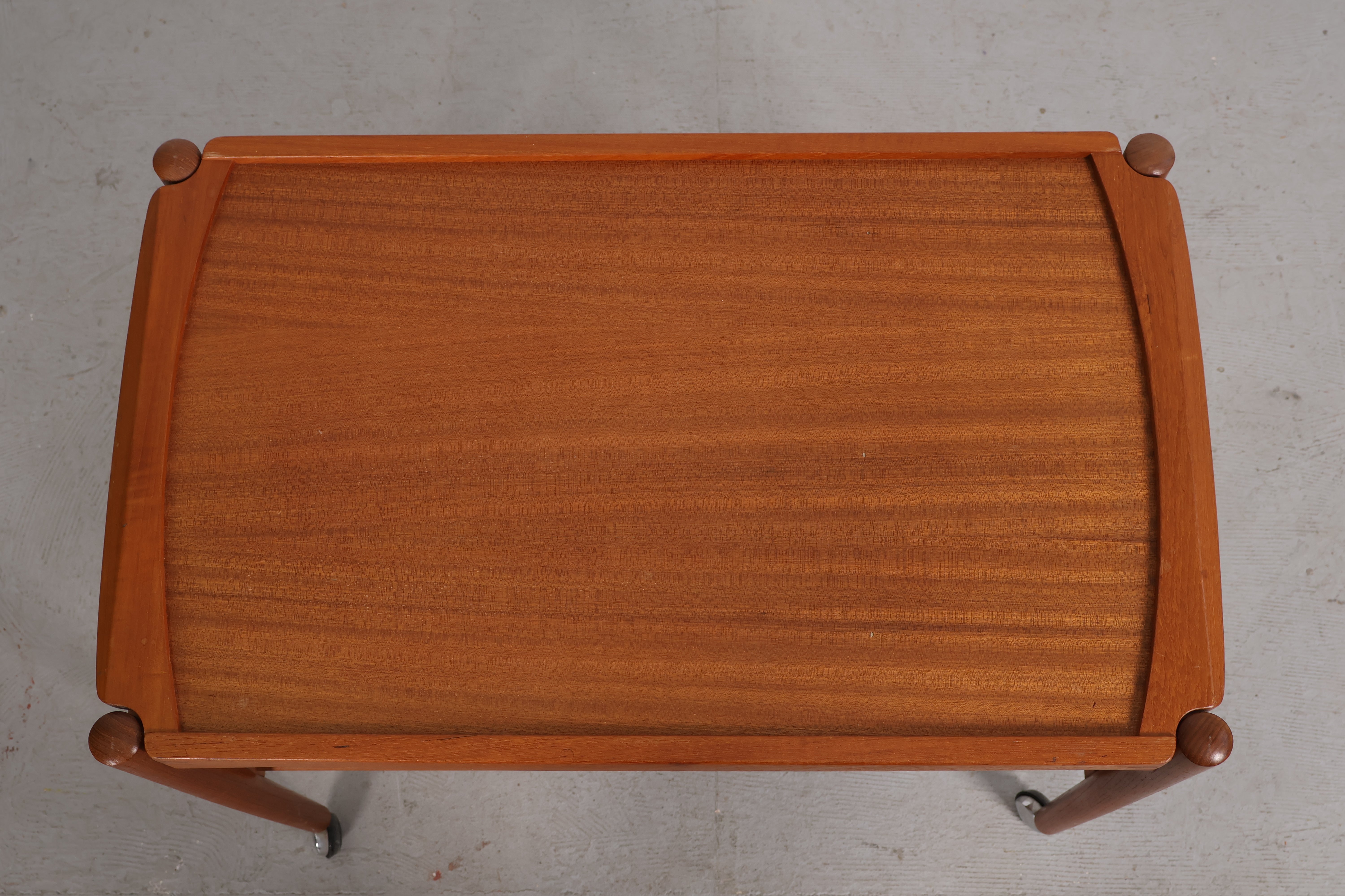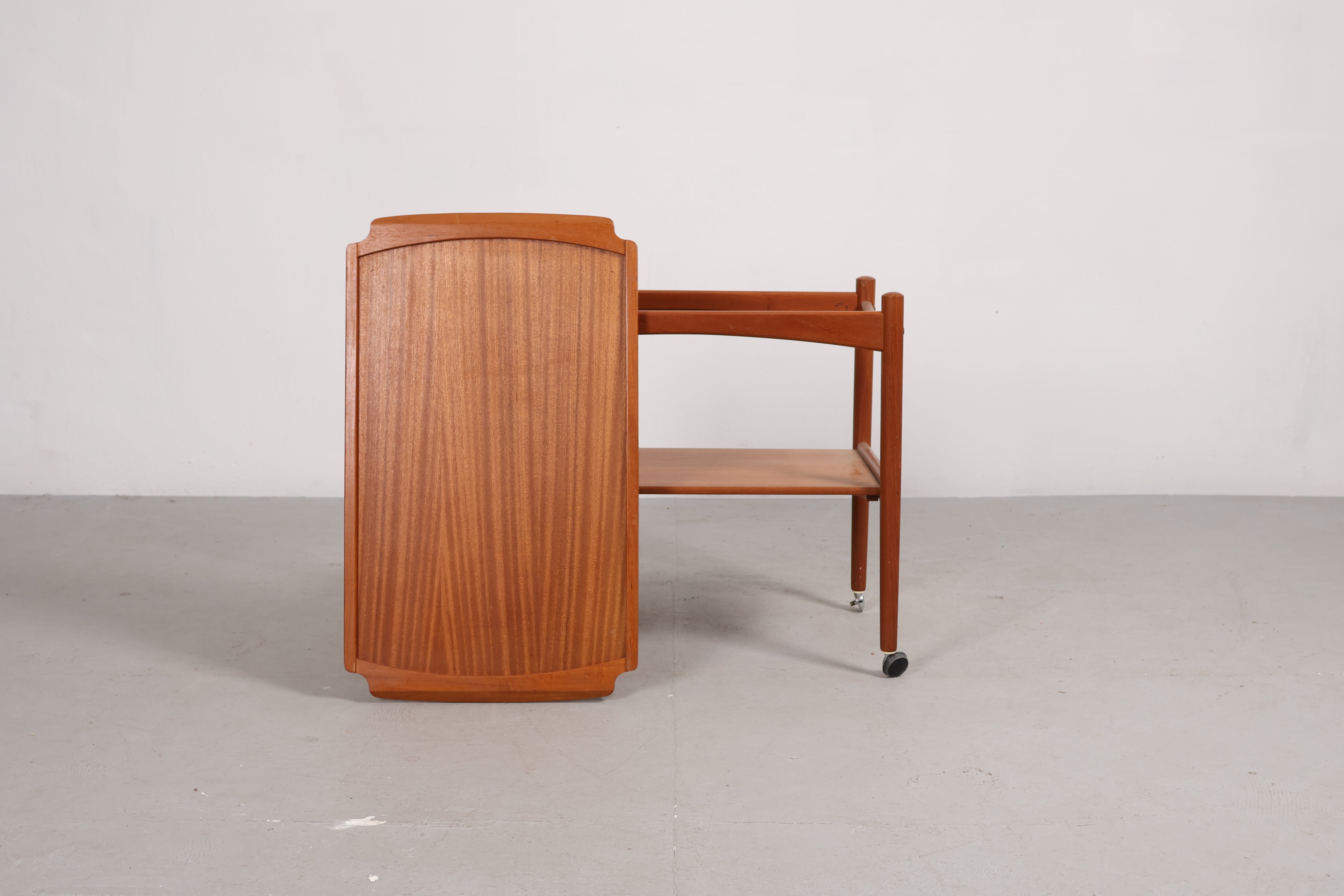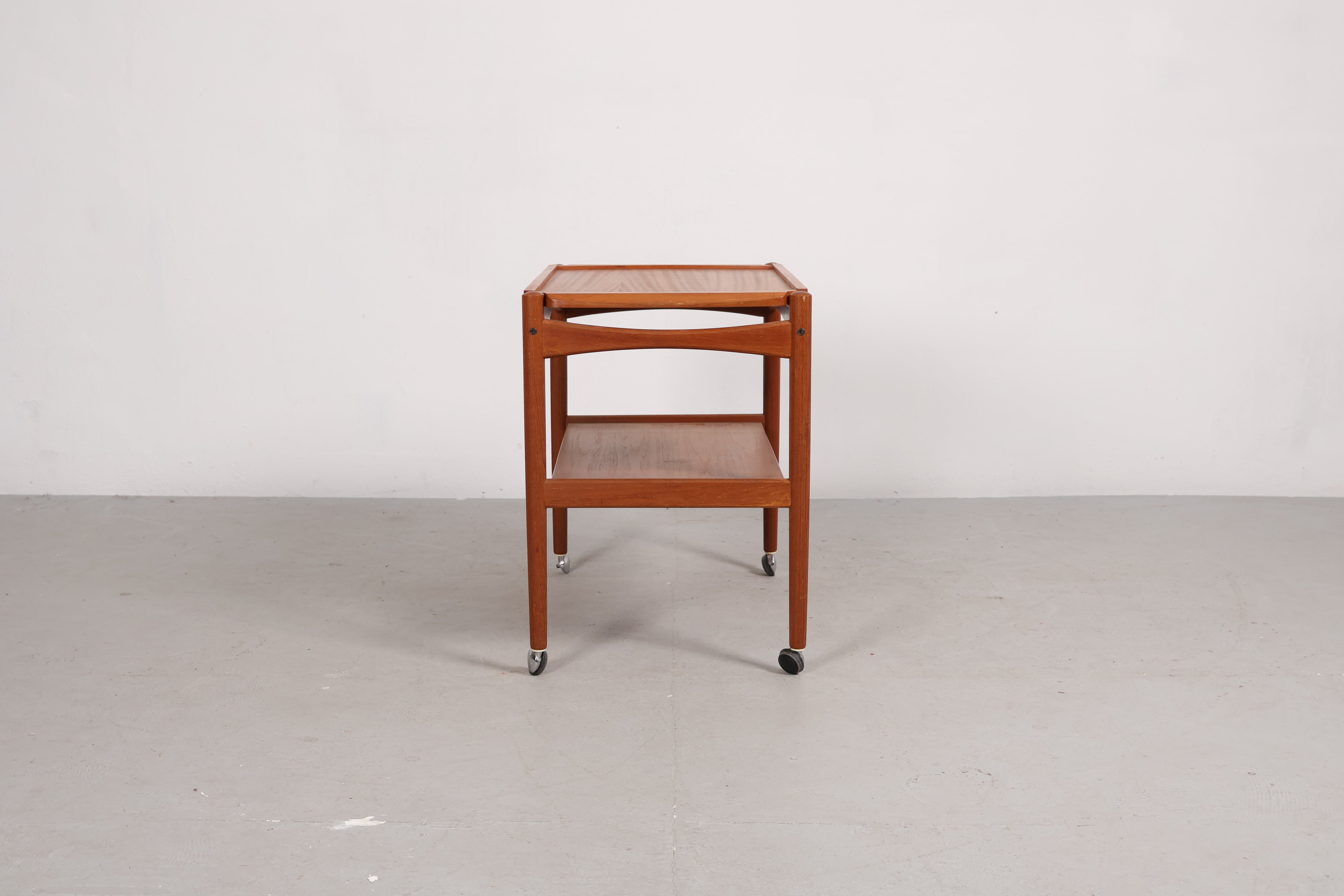 Servierwagen aus den 60er-Jahren für Poul Hundevad. Hergestellt in Dänemark. Gefertigt aus Teak. Höhe 60 cm, Breite 71 cm, Tiefe 44 cm.