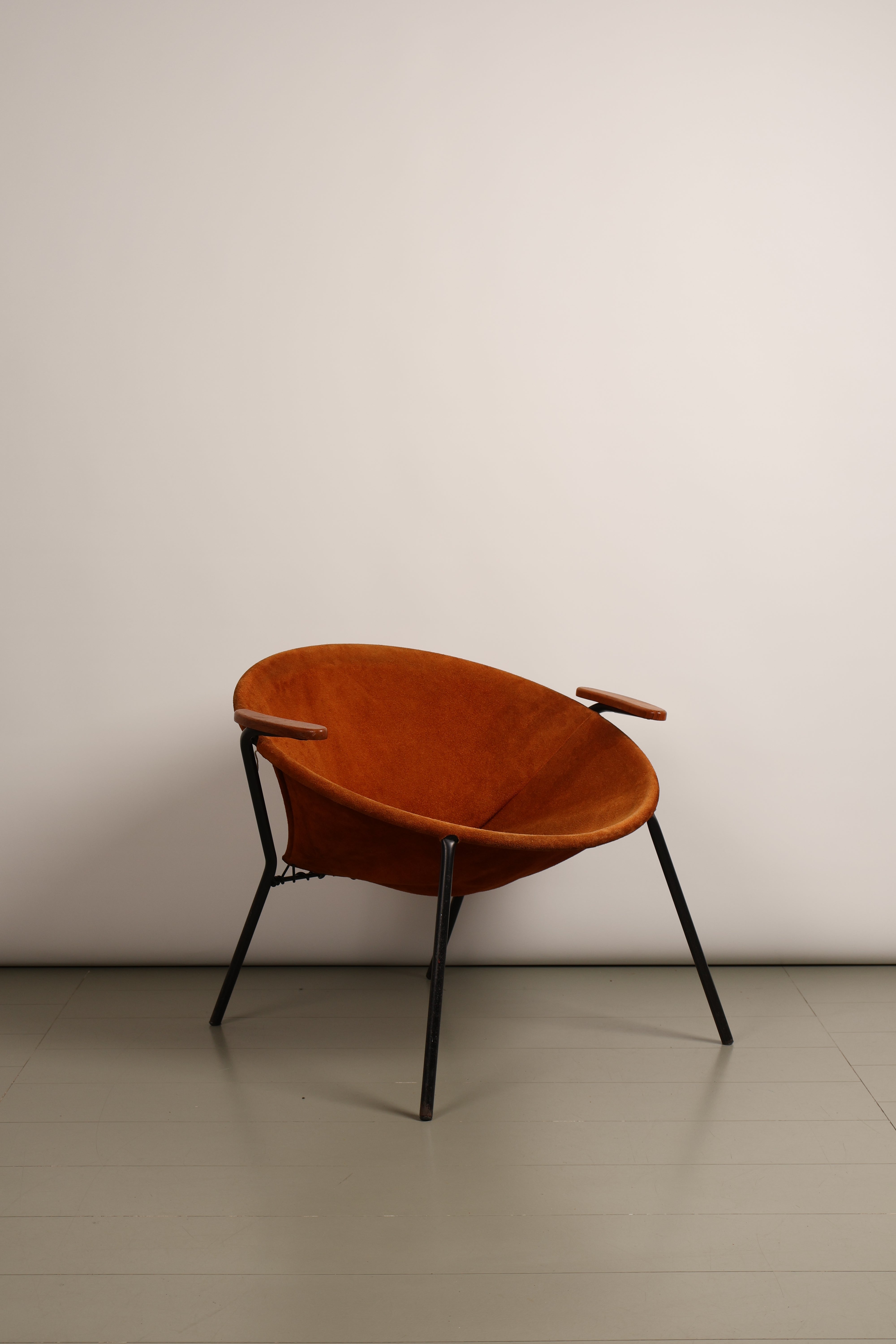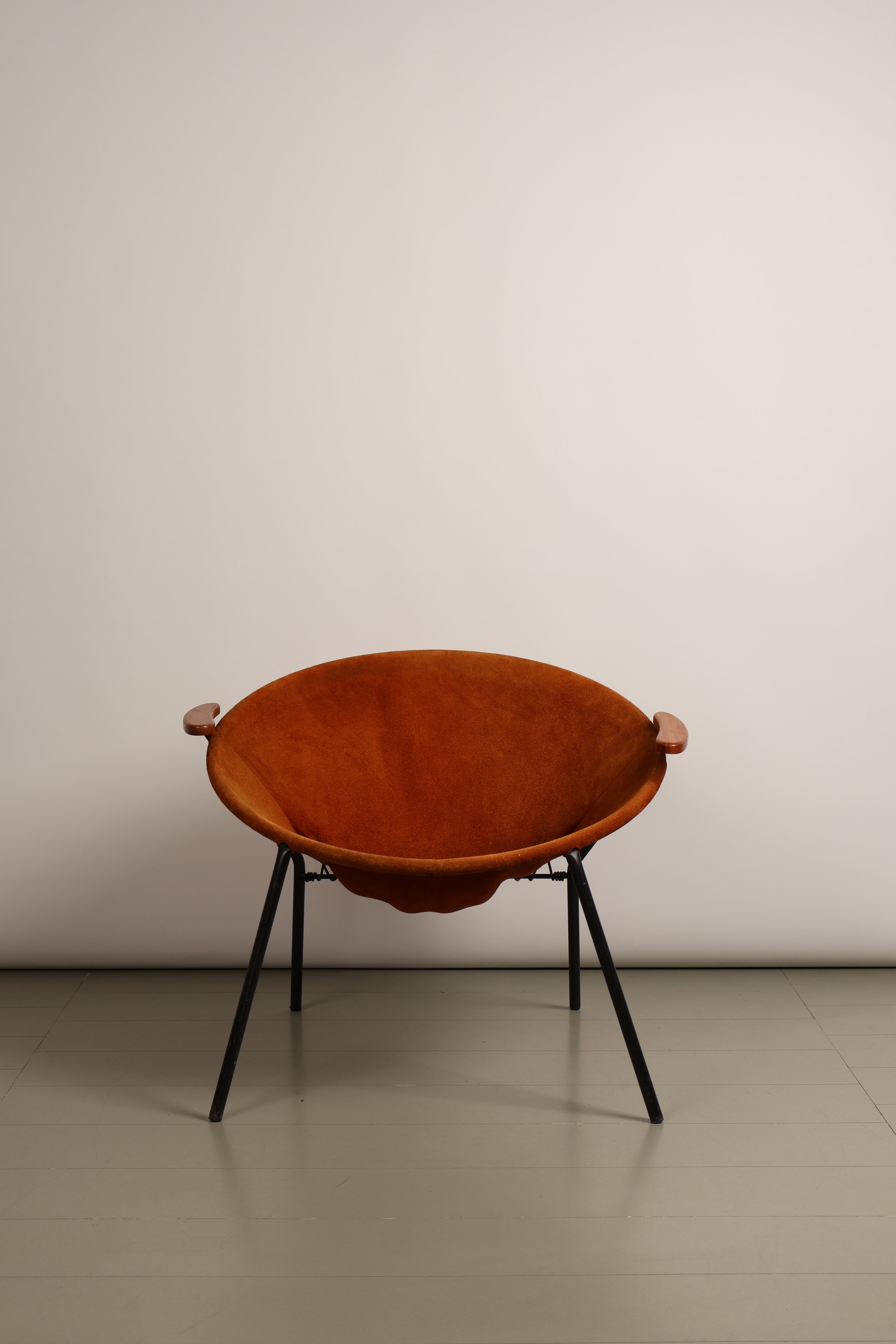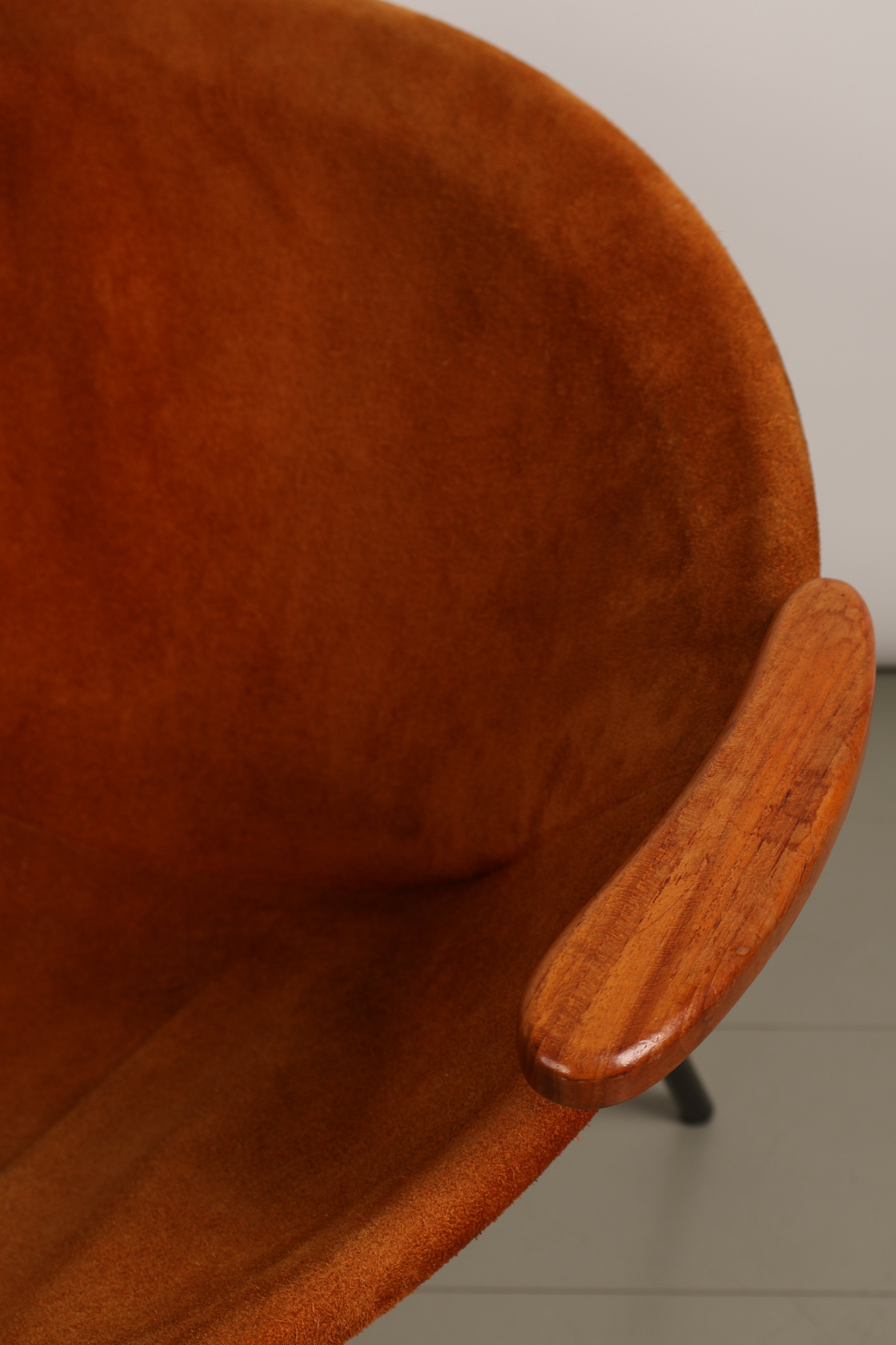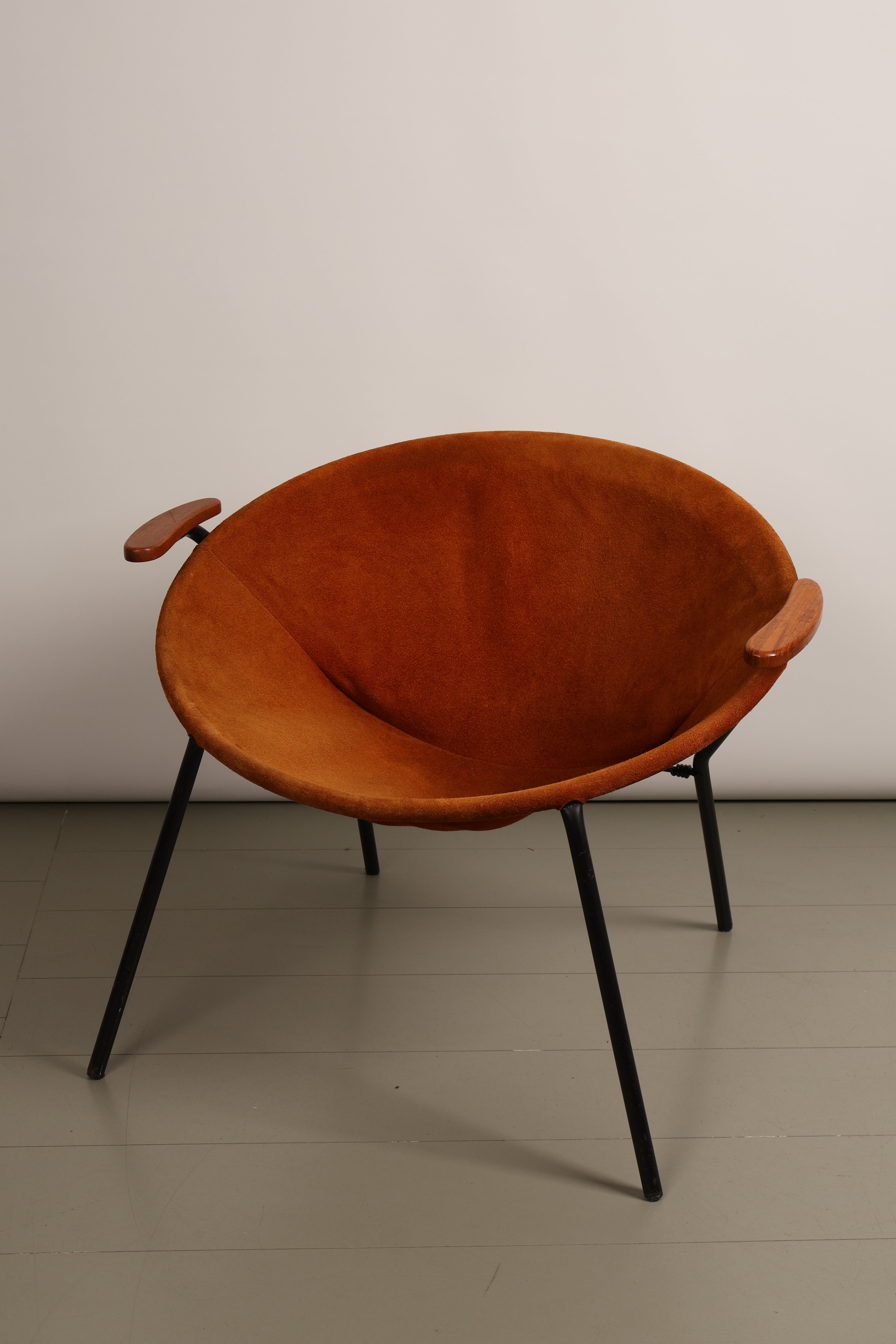 Sessel „Balloon Chair“ von Hans Olsen, Wildleder, Teak, Metall, 60er, Dänemark