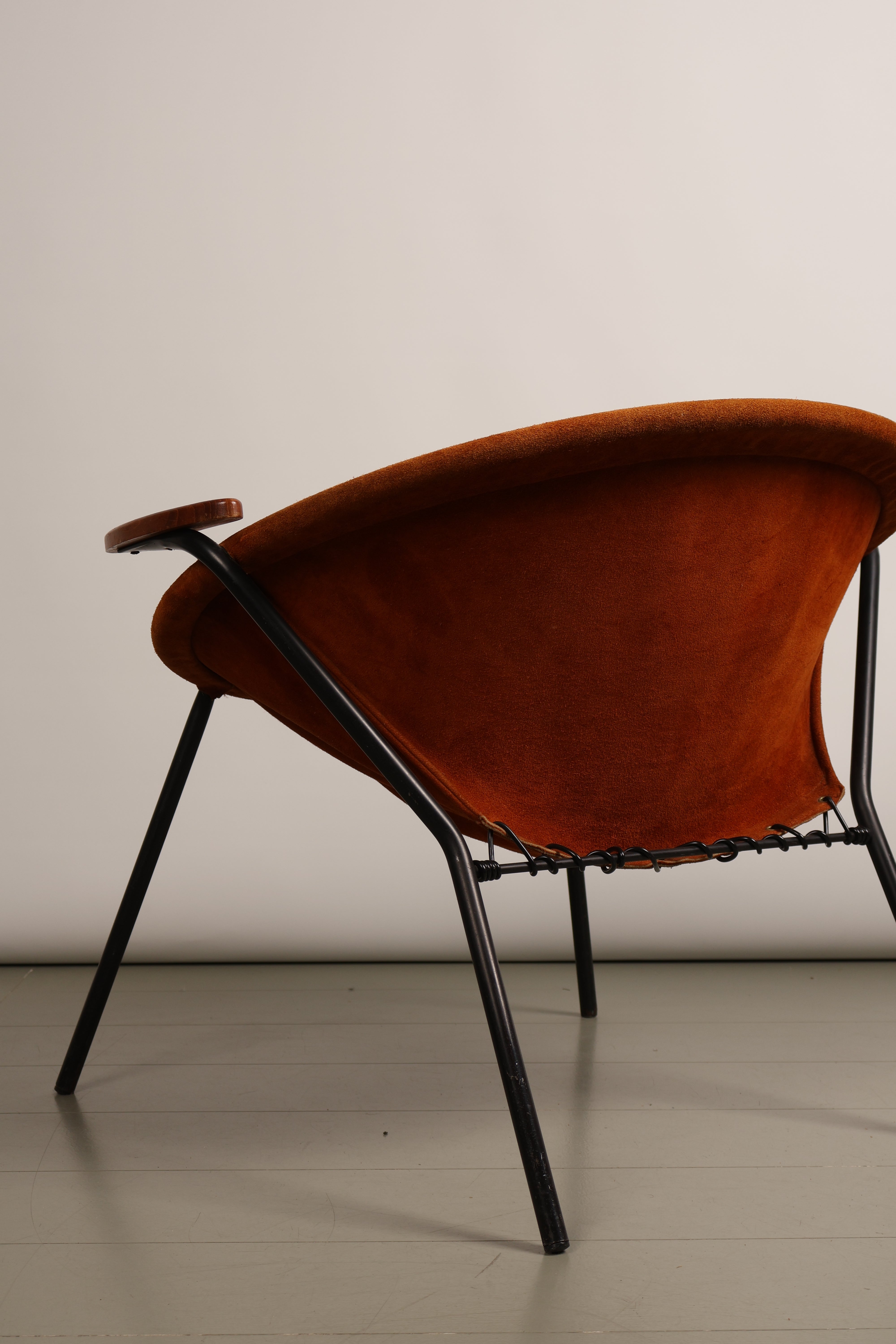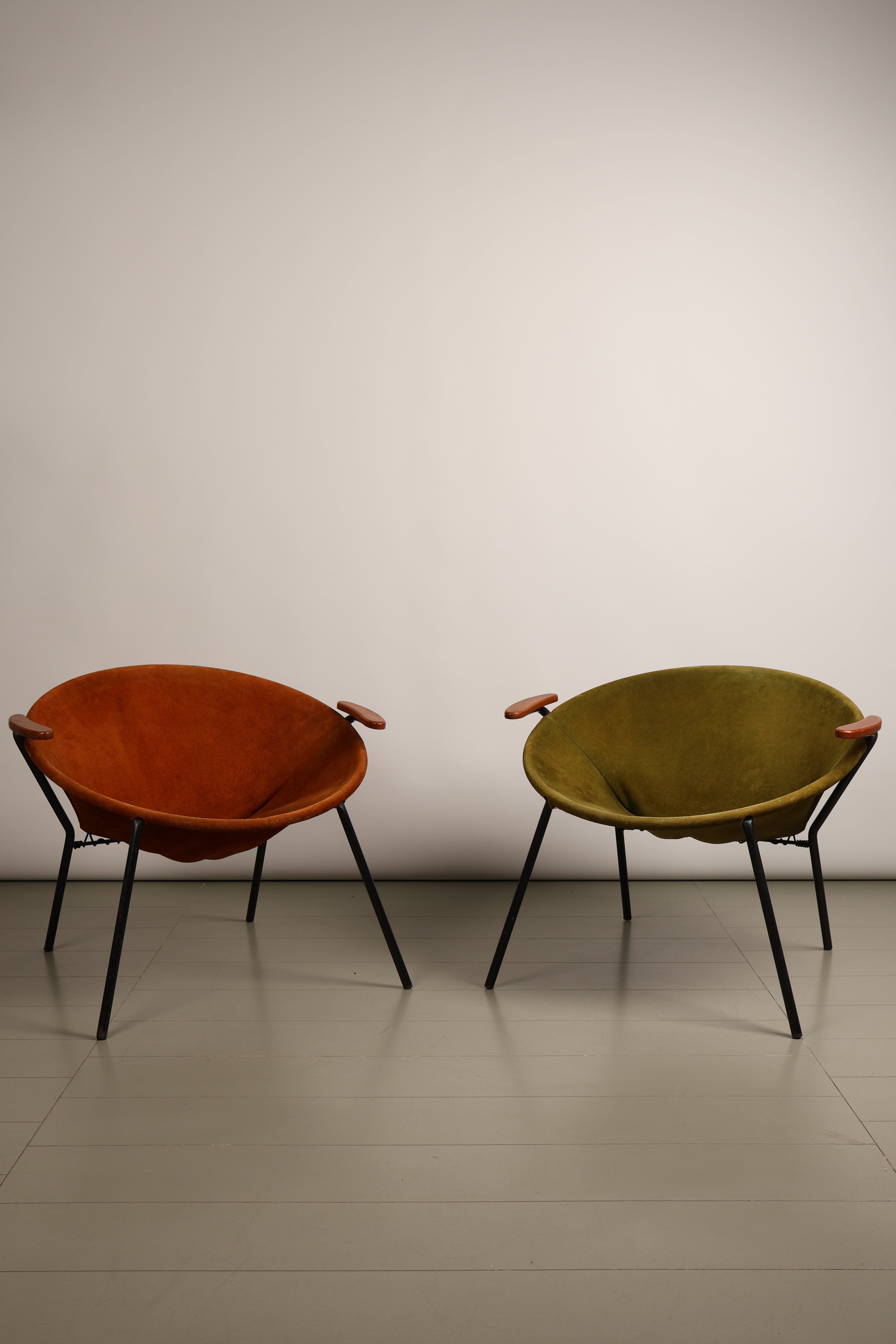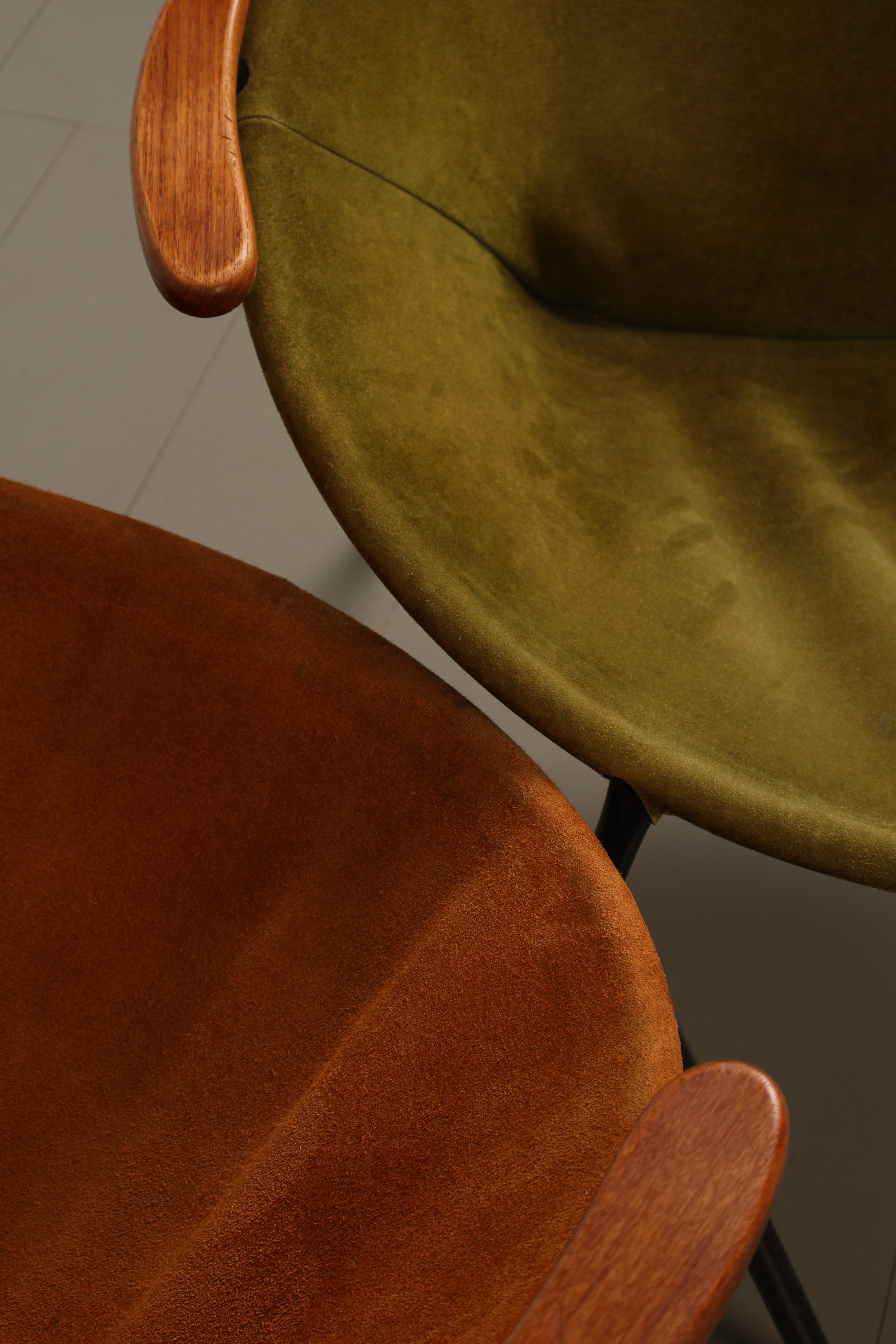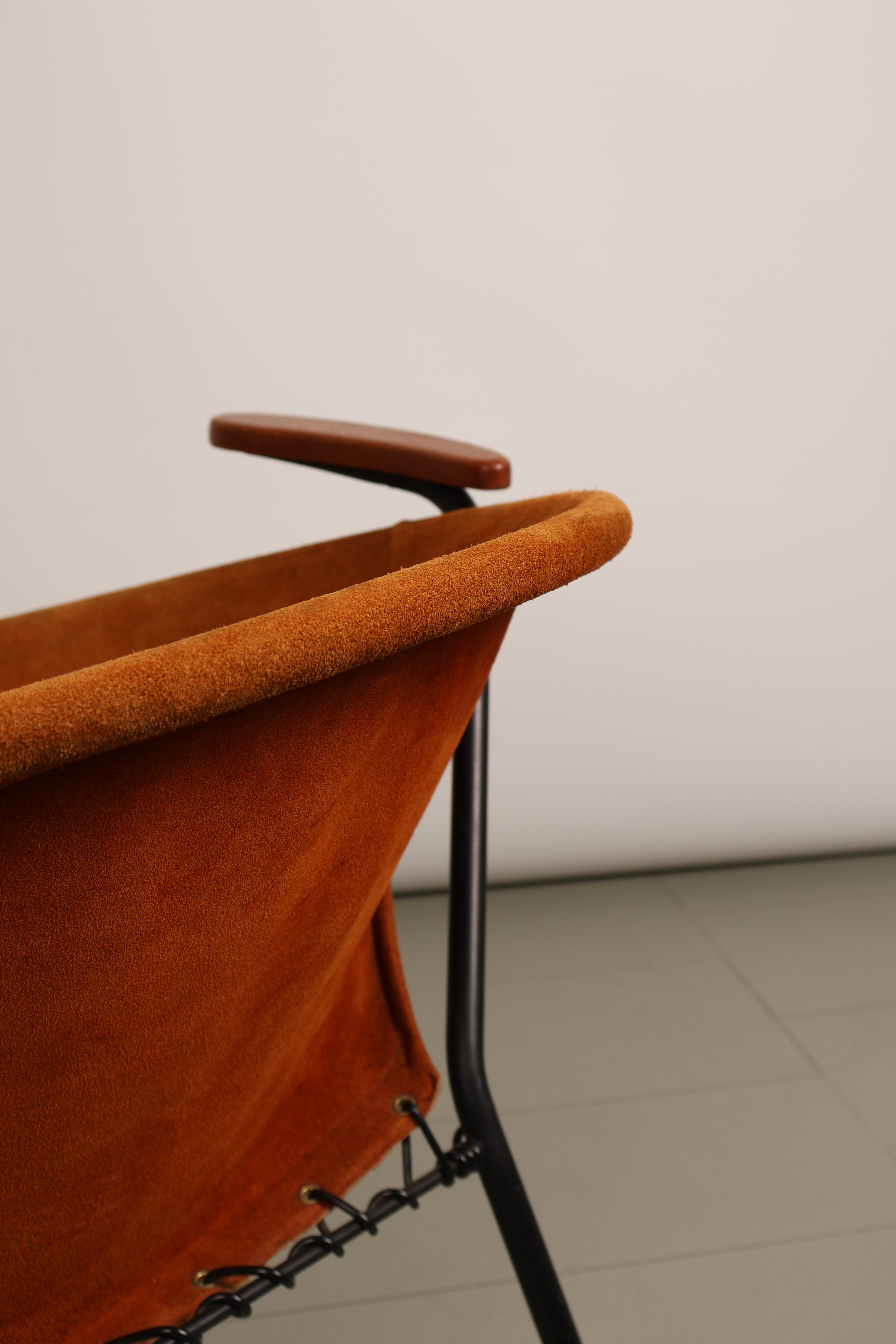 Sessel „Balloon Chair“ von Hans Olsen, Wildleder, Teak, Metall, 60er, Dänemark